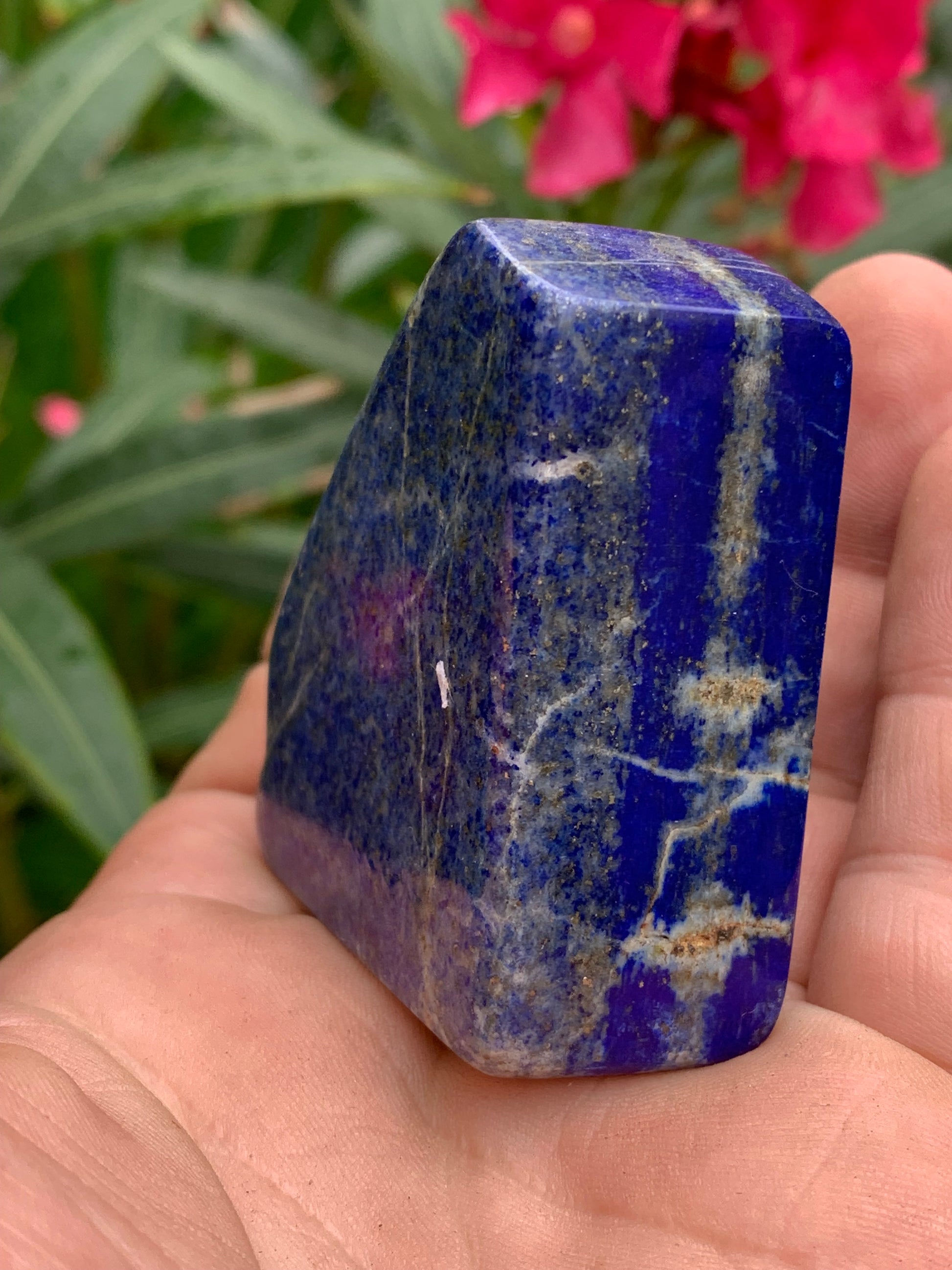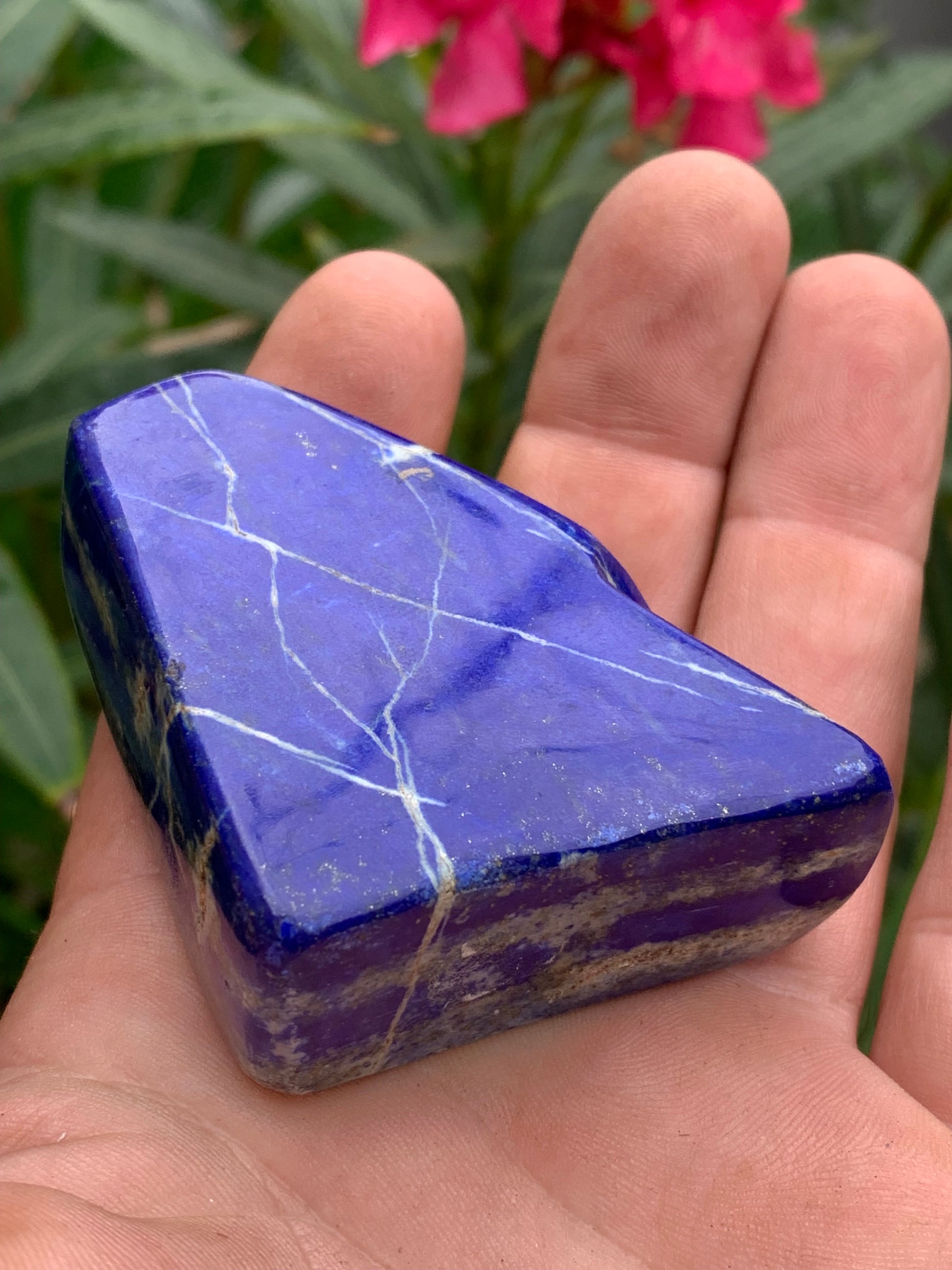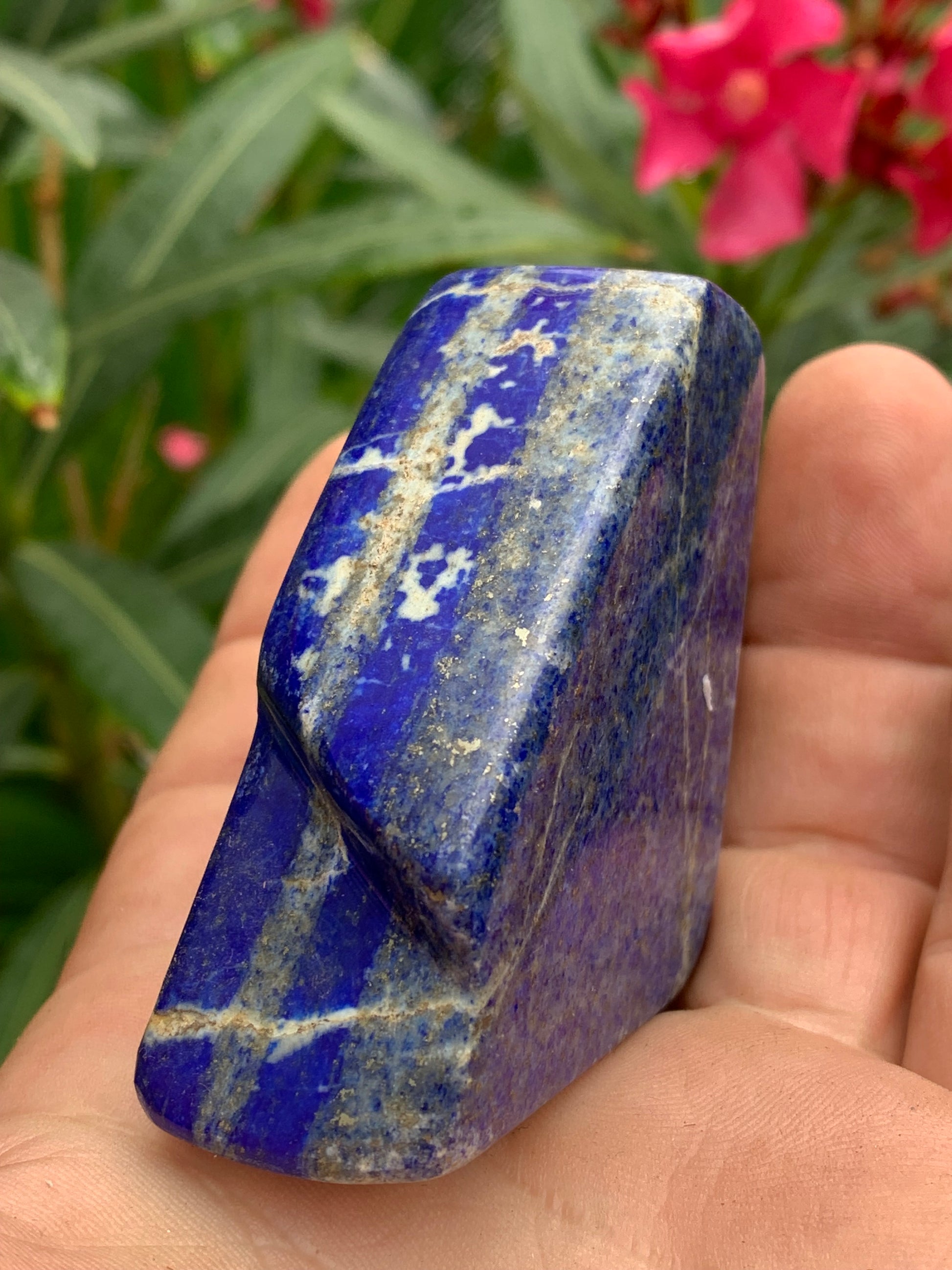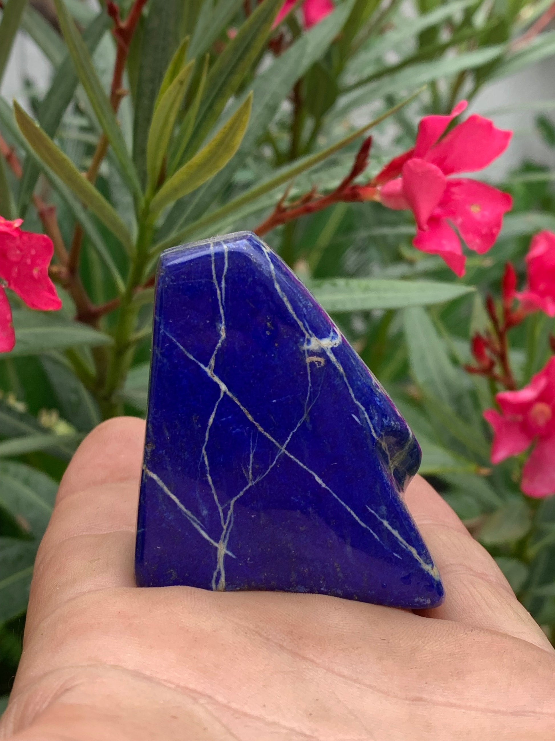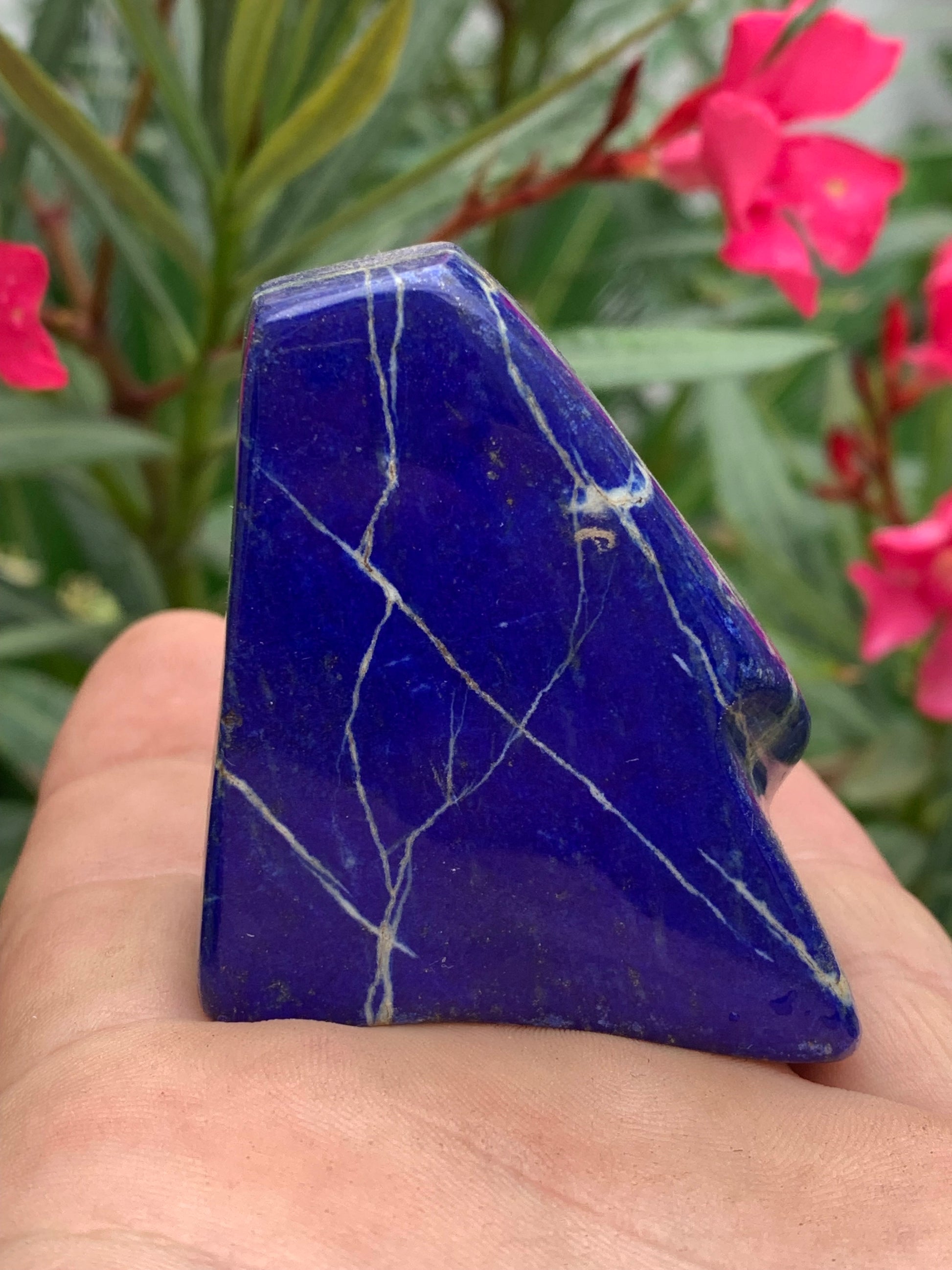 Lapis lazuli, forme libre polie de 57 x 49 x 24 mm - 142,3 grammes. Un bleu envoûtant et fascinant, pierre des pharaons !