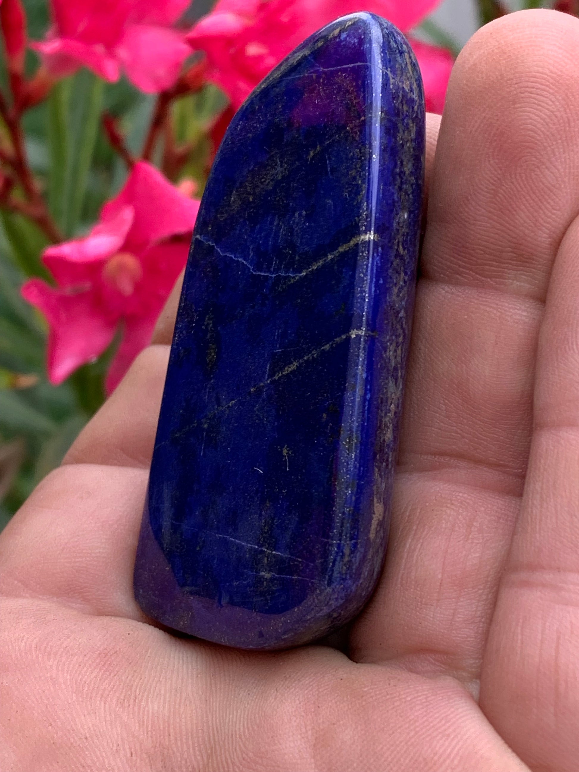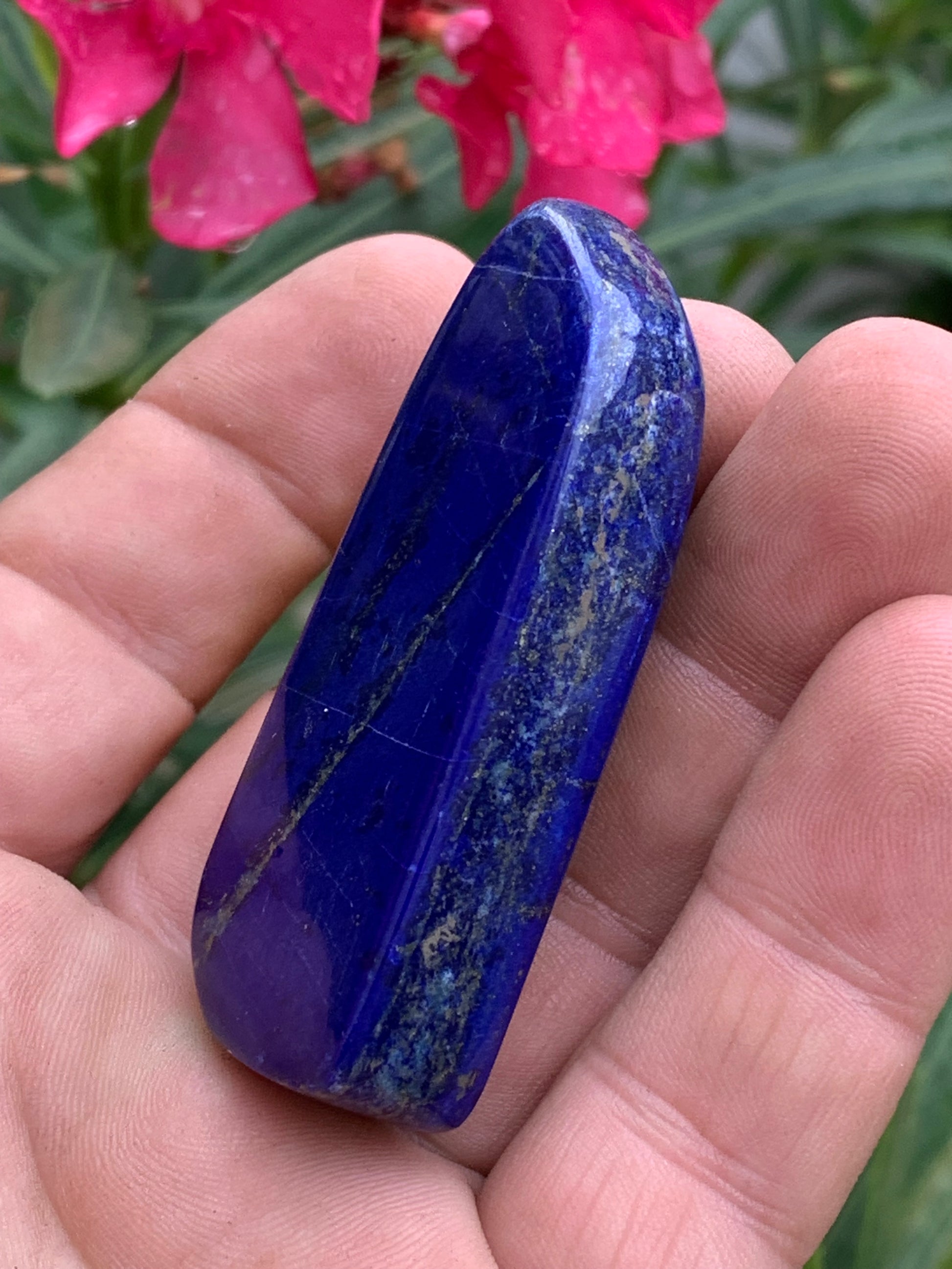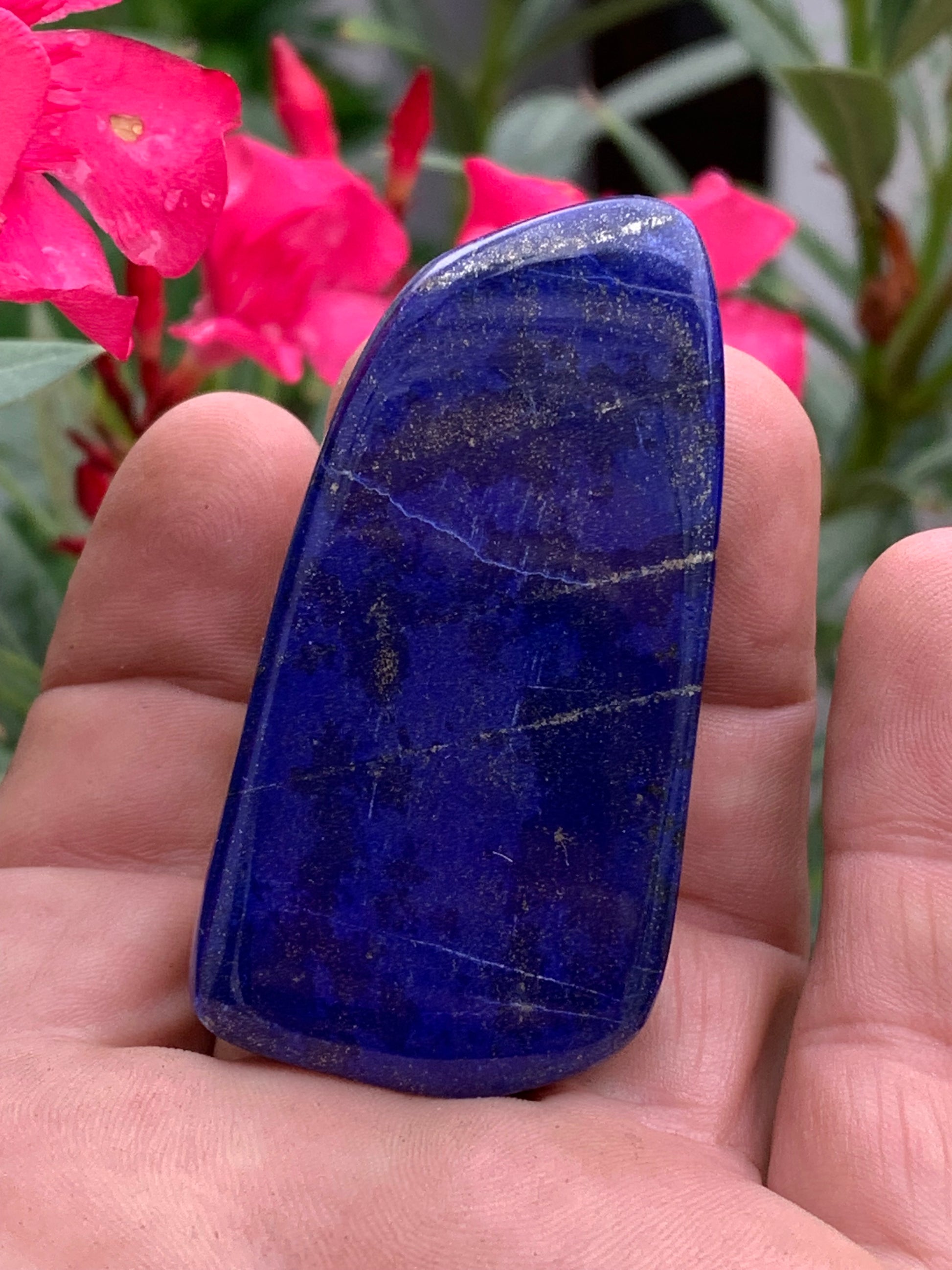 Lapis lazuli, forme libre polie de 64 x 33 x 14 mm - 60,4 grammes. Un bleu envoûtant et fascinant, pierre des pharaons !