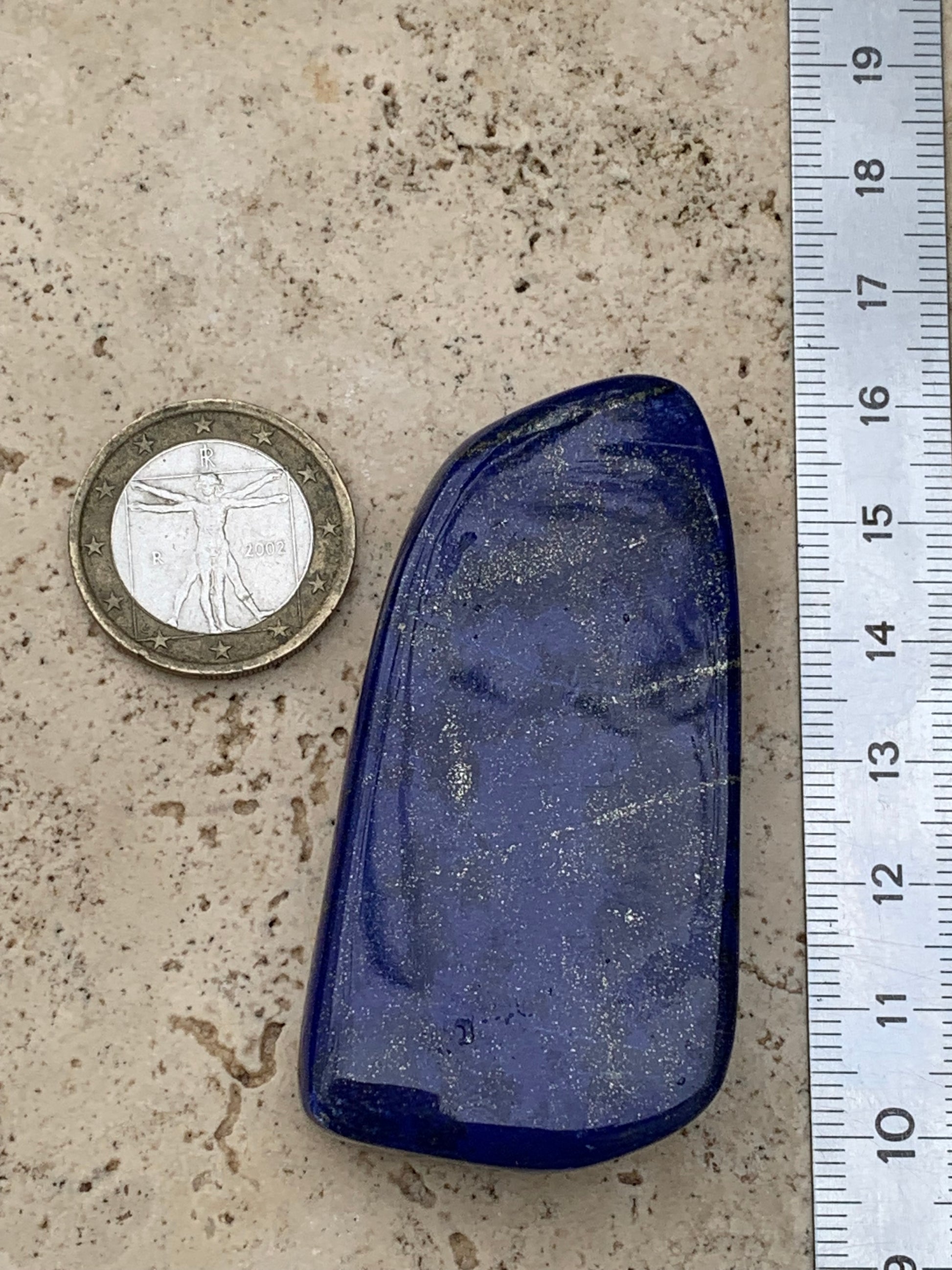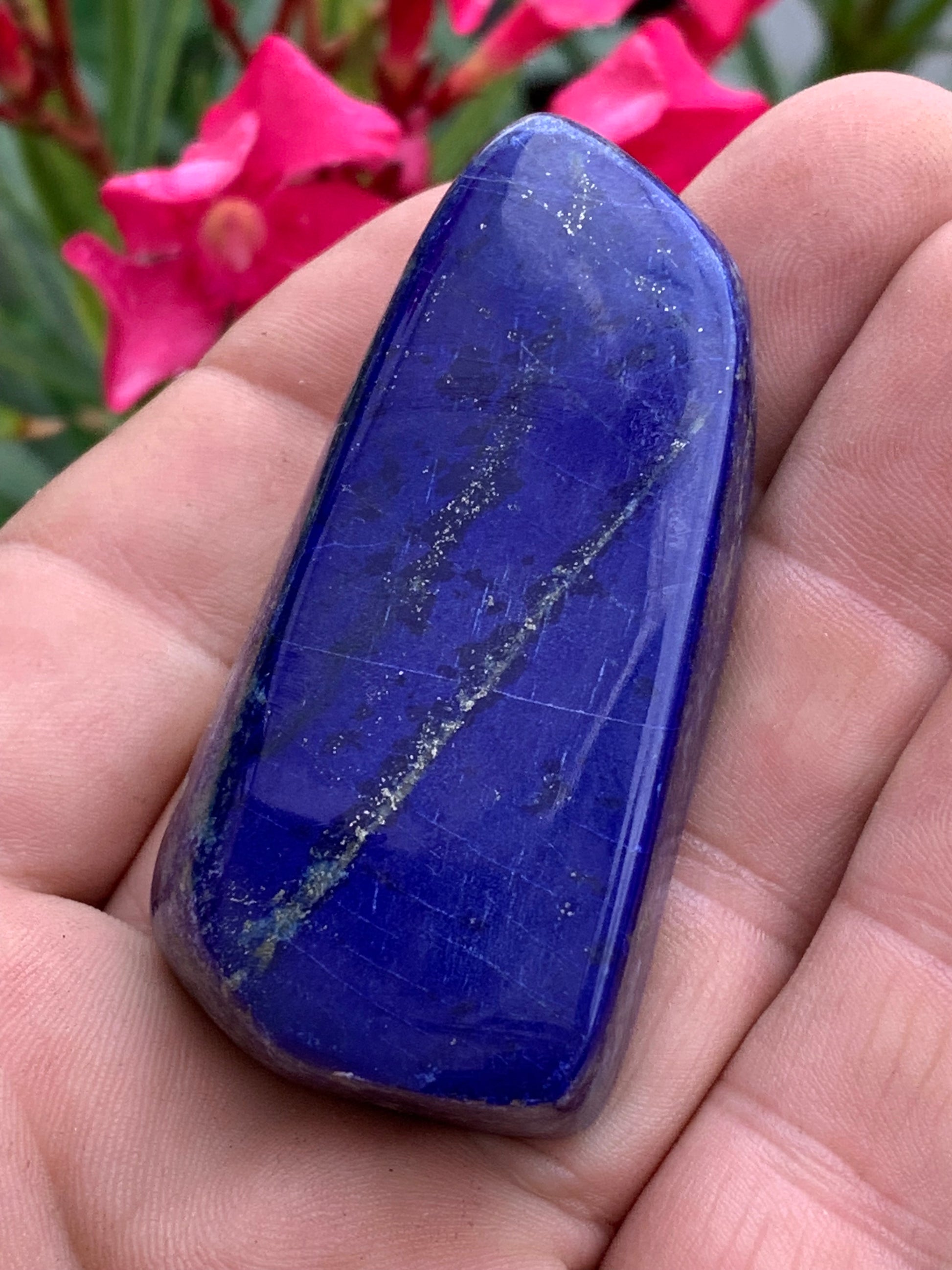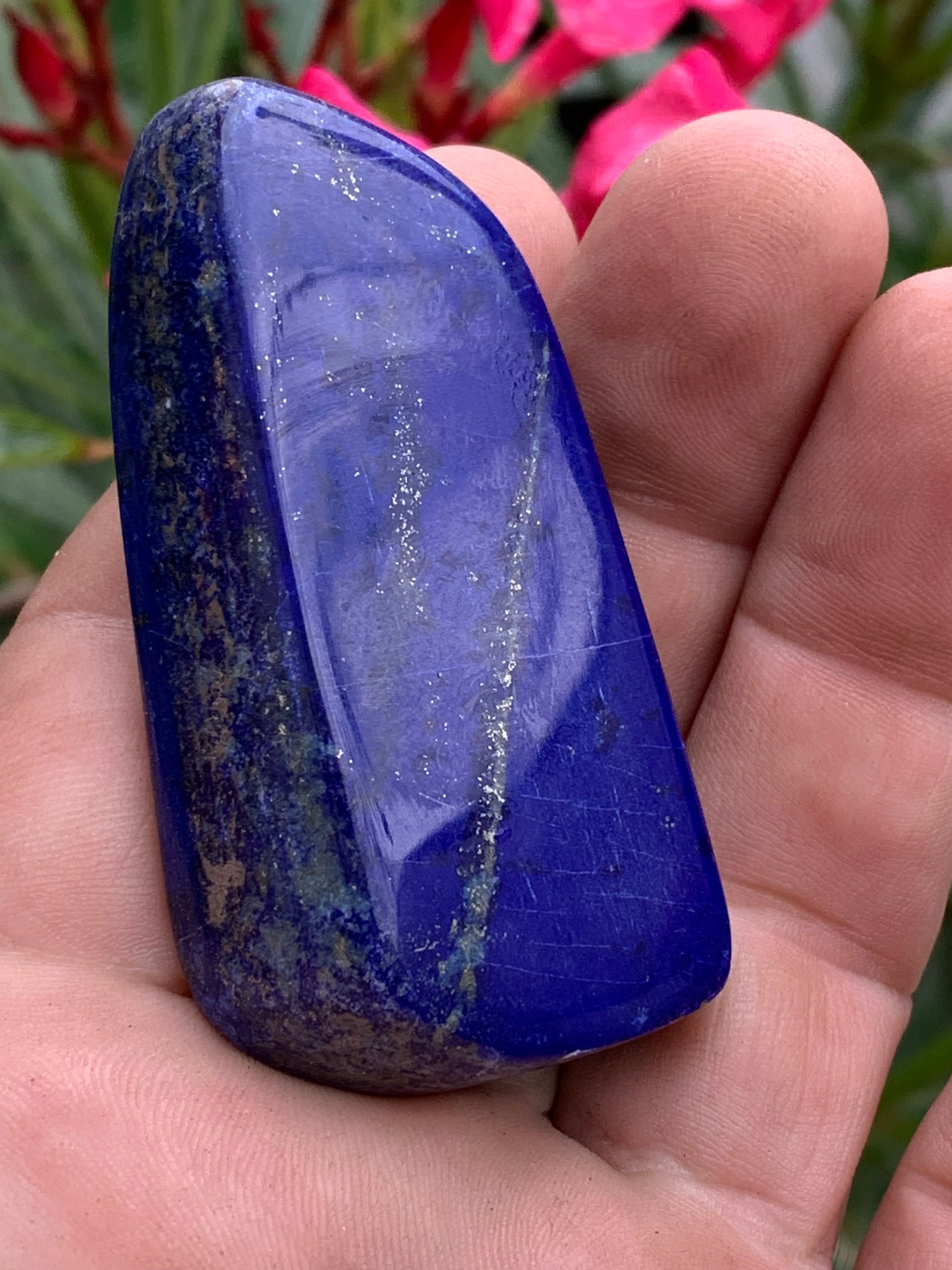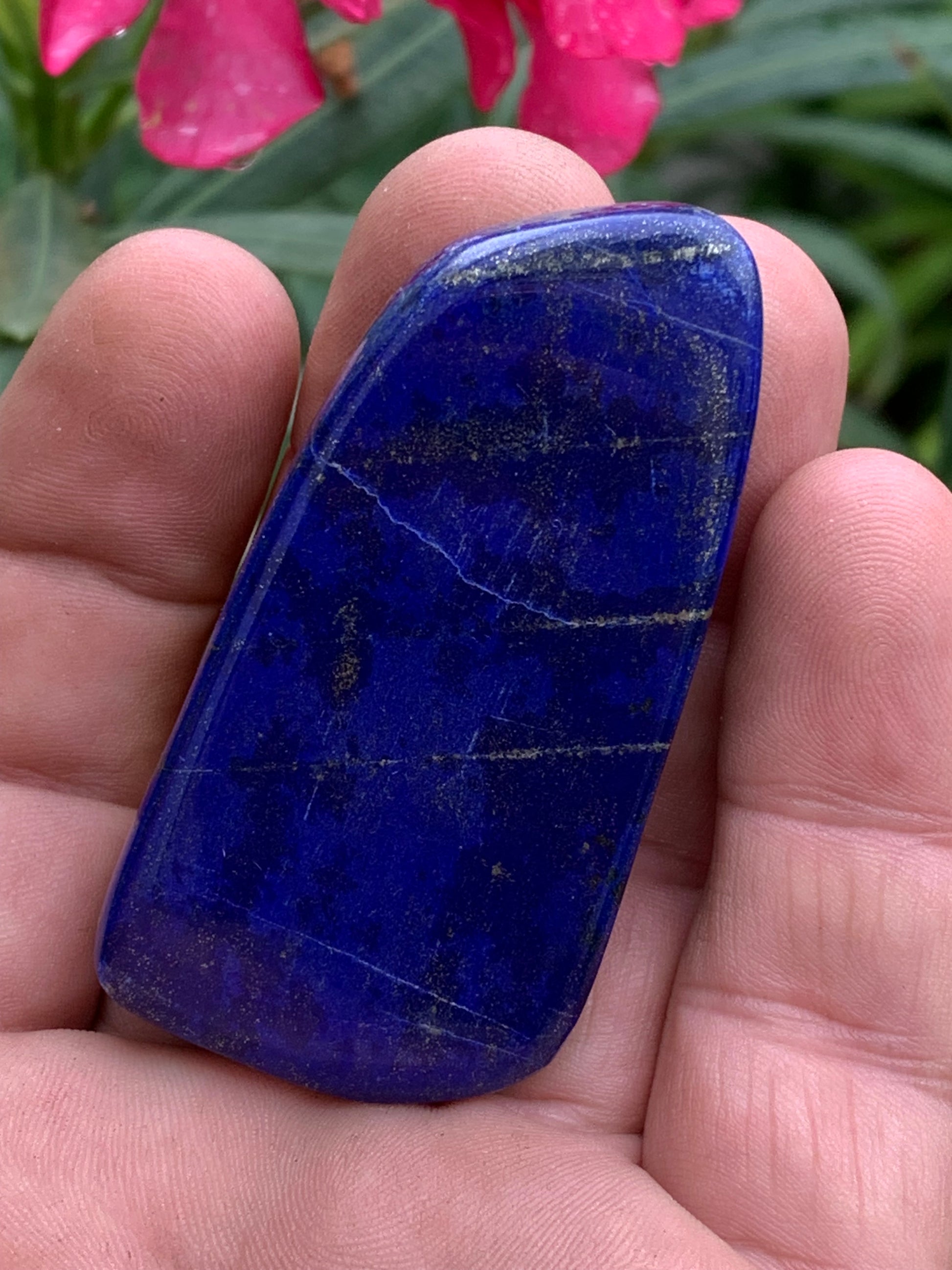 Lapis lazuli, forme libre polie de 64 x 33 x 14 mm - 60,4 grammes. Un bleu envoûtant et fascinant, pierre des pharaons !