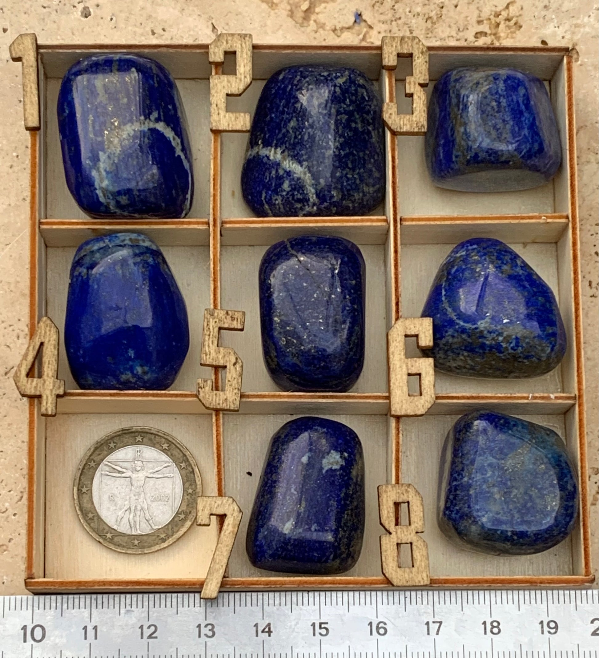 Lapis lazuli, pierres roulées de 30 x 20 x 15 mm - 20 grammes environ. Un bleu envoûtant et fascinant, pierre des pharaons !