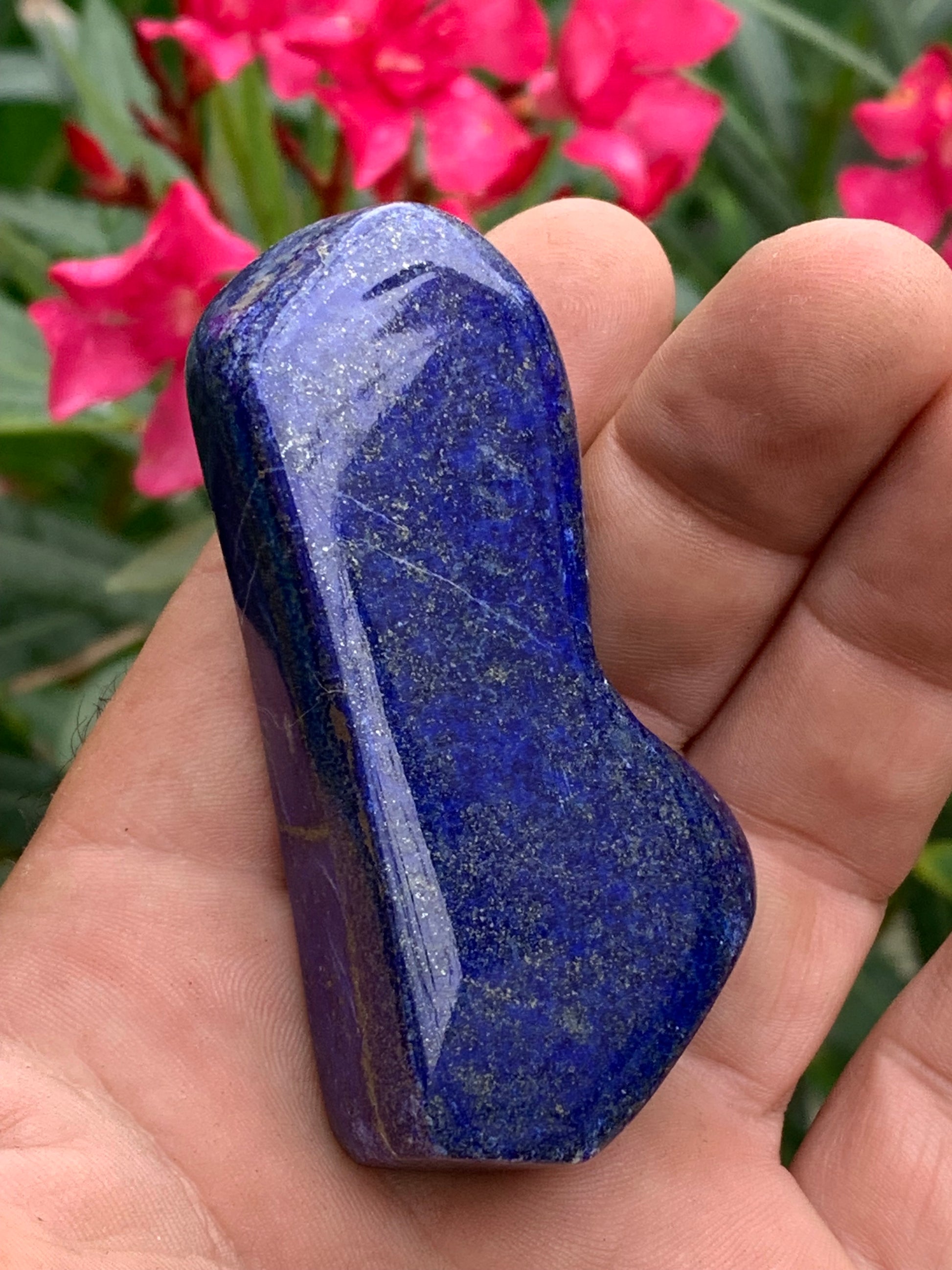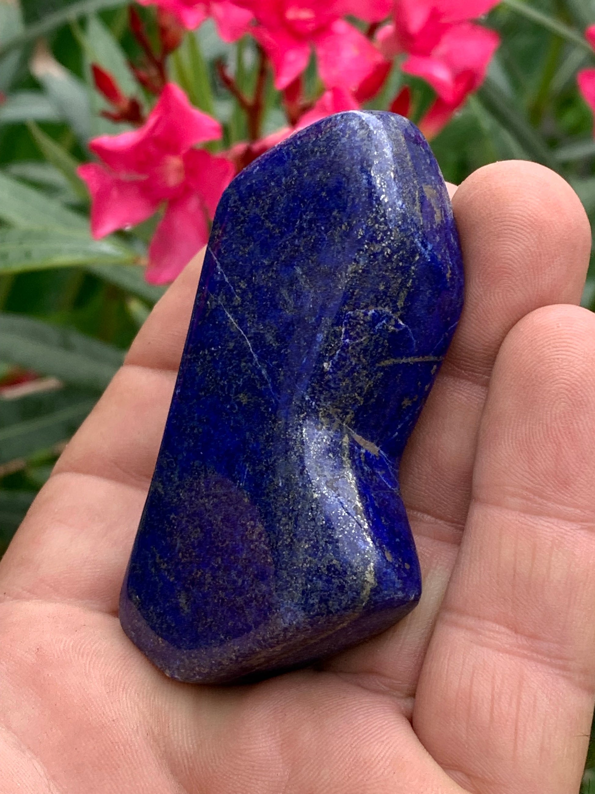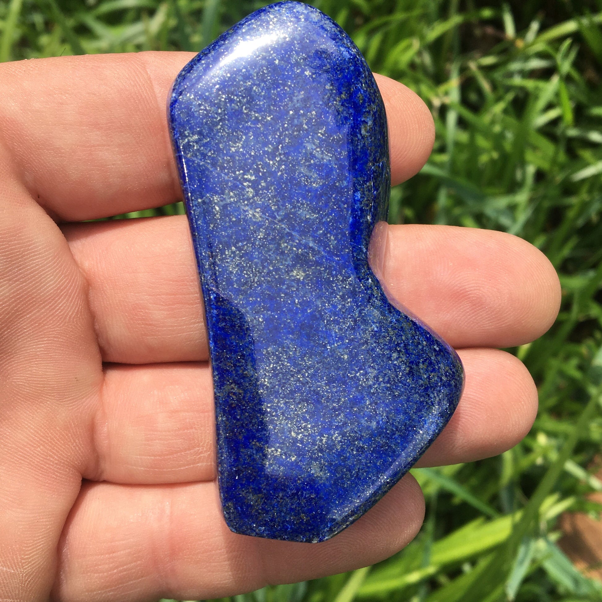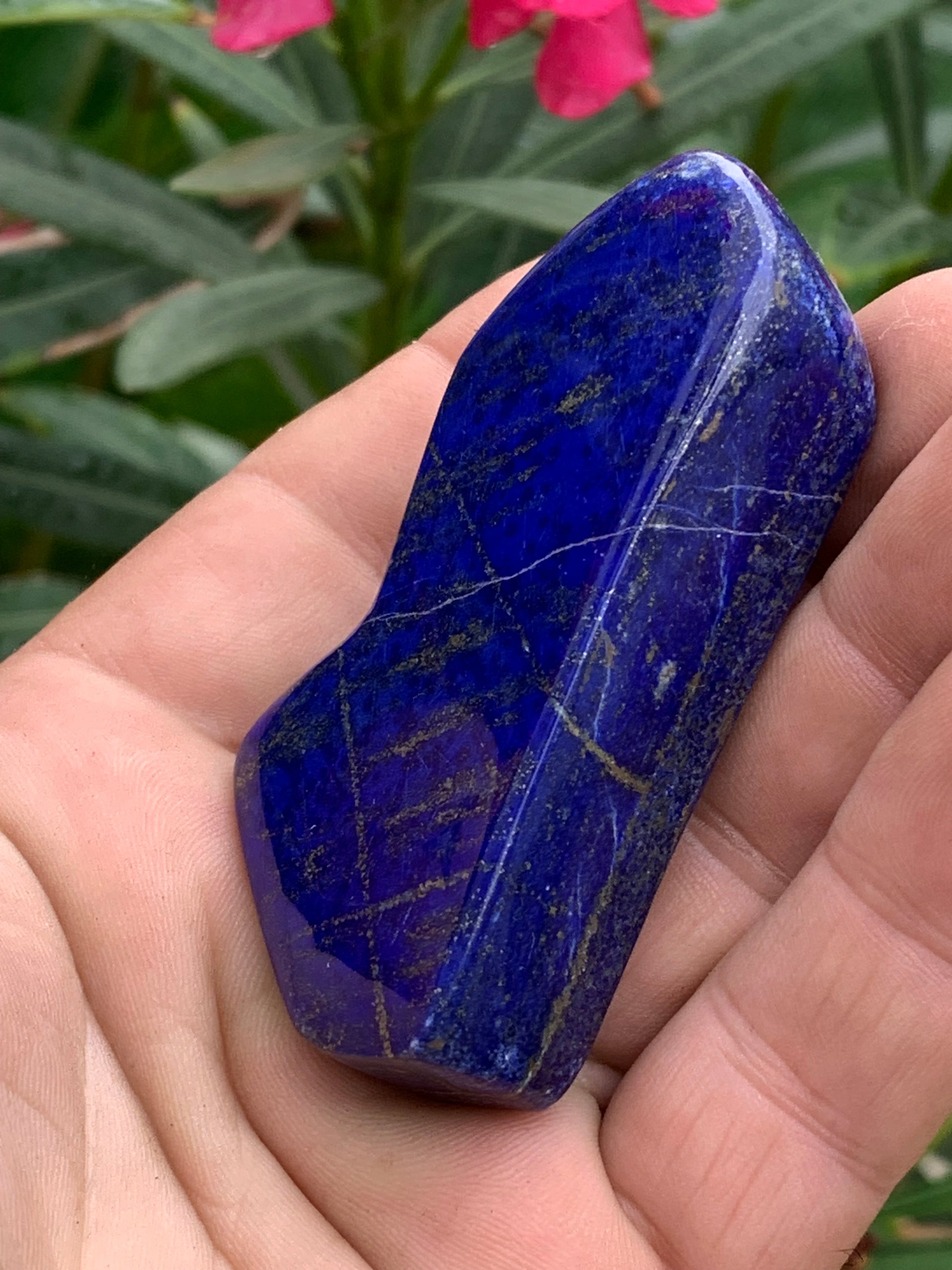 Lapis lazuli, forme libre polie de 74 x 38 x 18 mm - 100 grammes. Un bleu envoûtant et fascinant, pierre des pharaons !