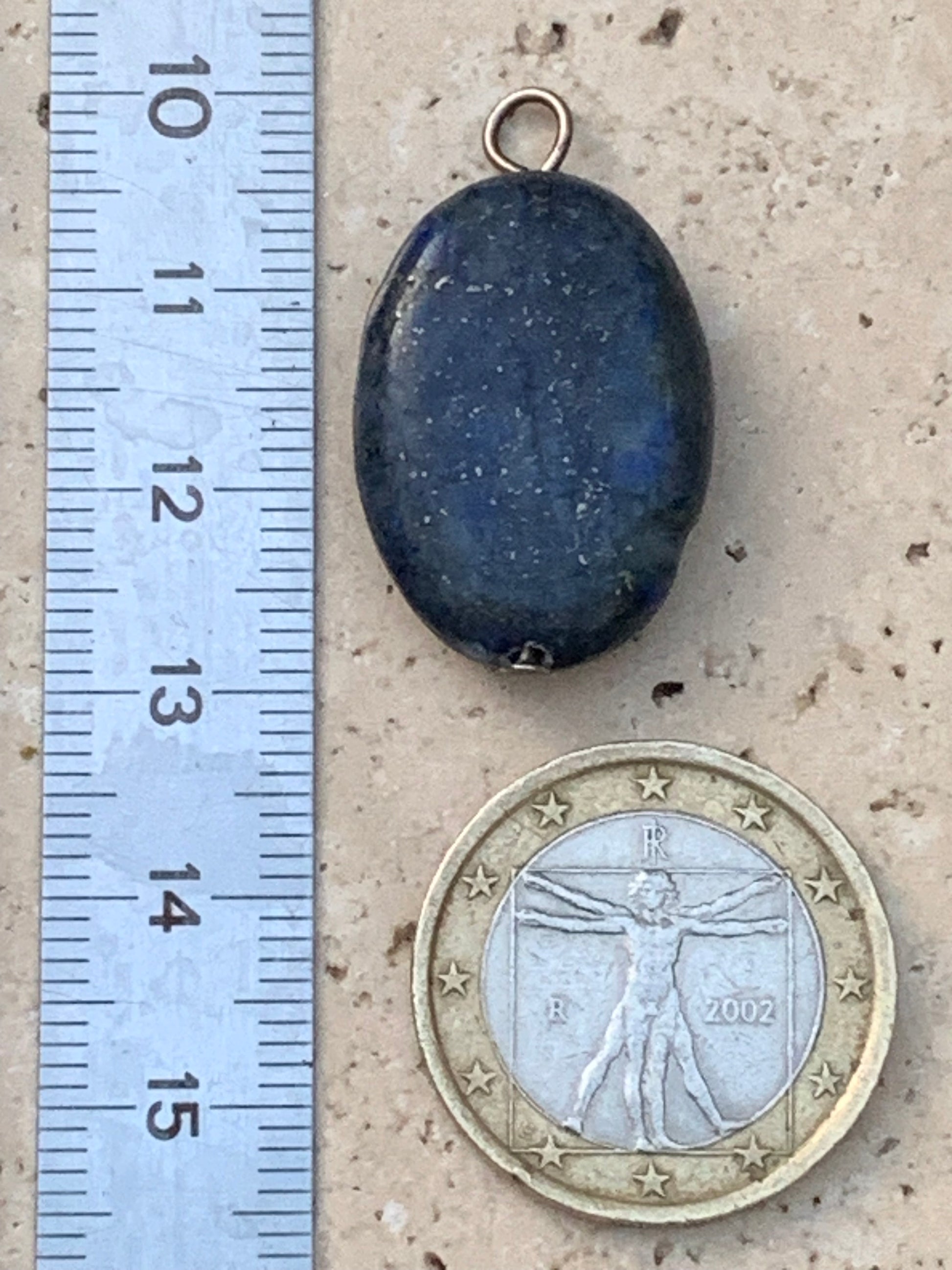Lapis lazuli, pendentif de 30 millimètres de hauteur totale x 18 x 7. Vendu avec un cordon réglable de couleur noire !