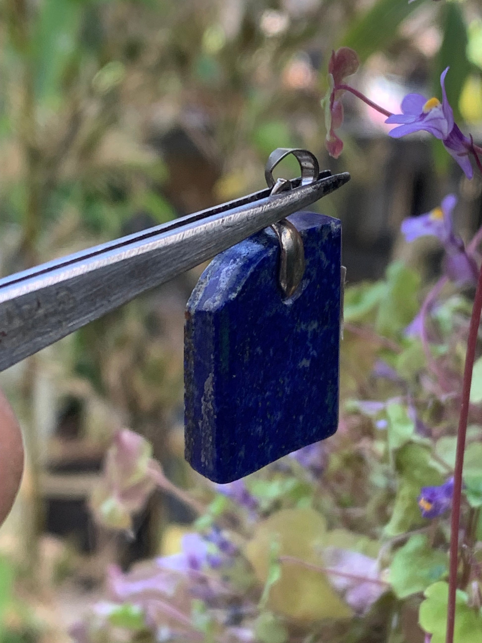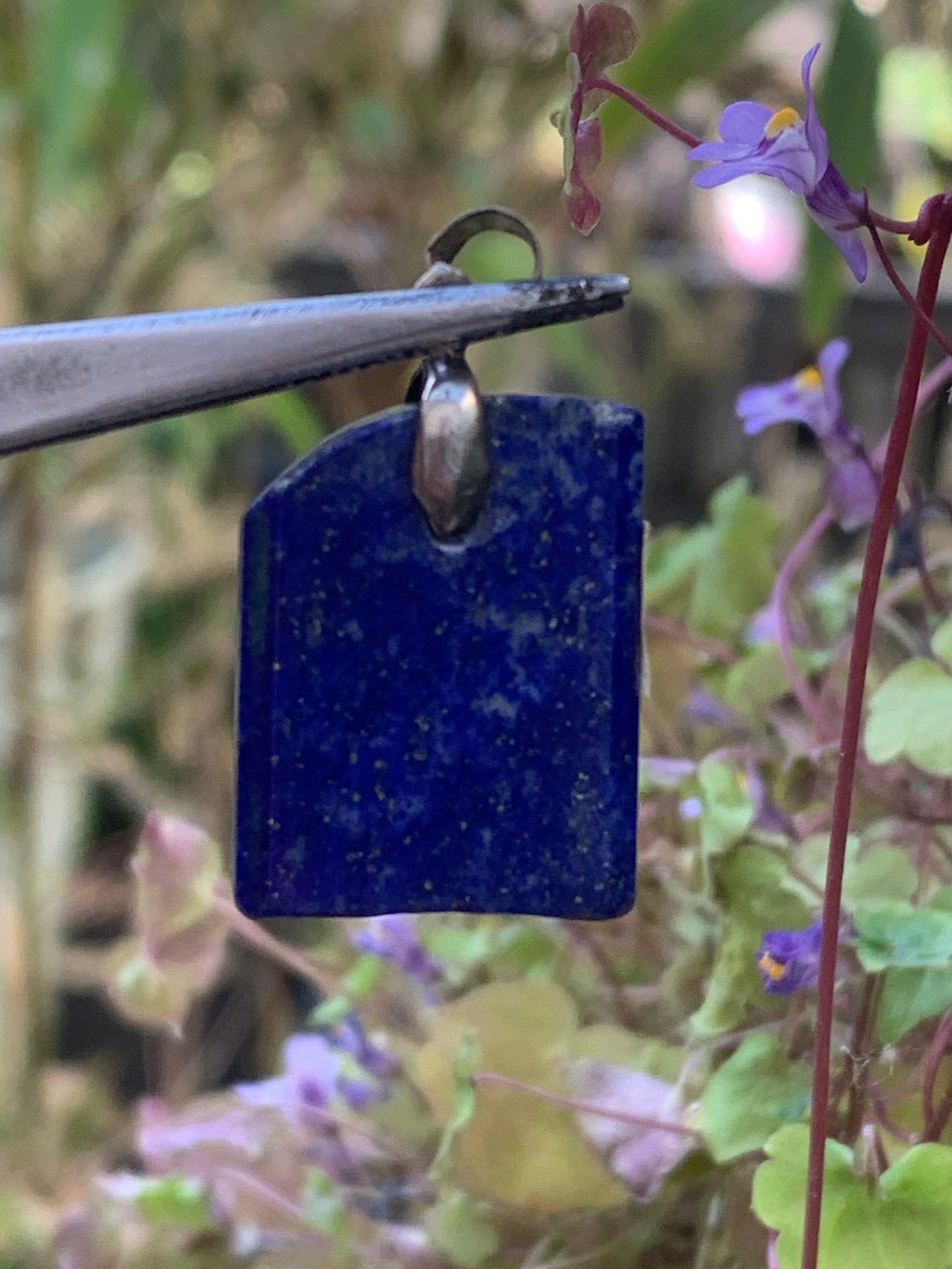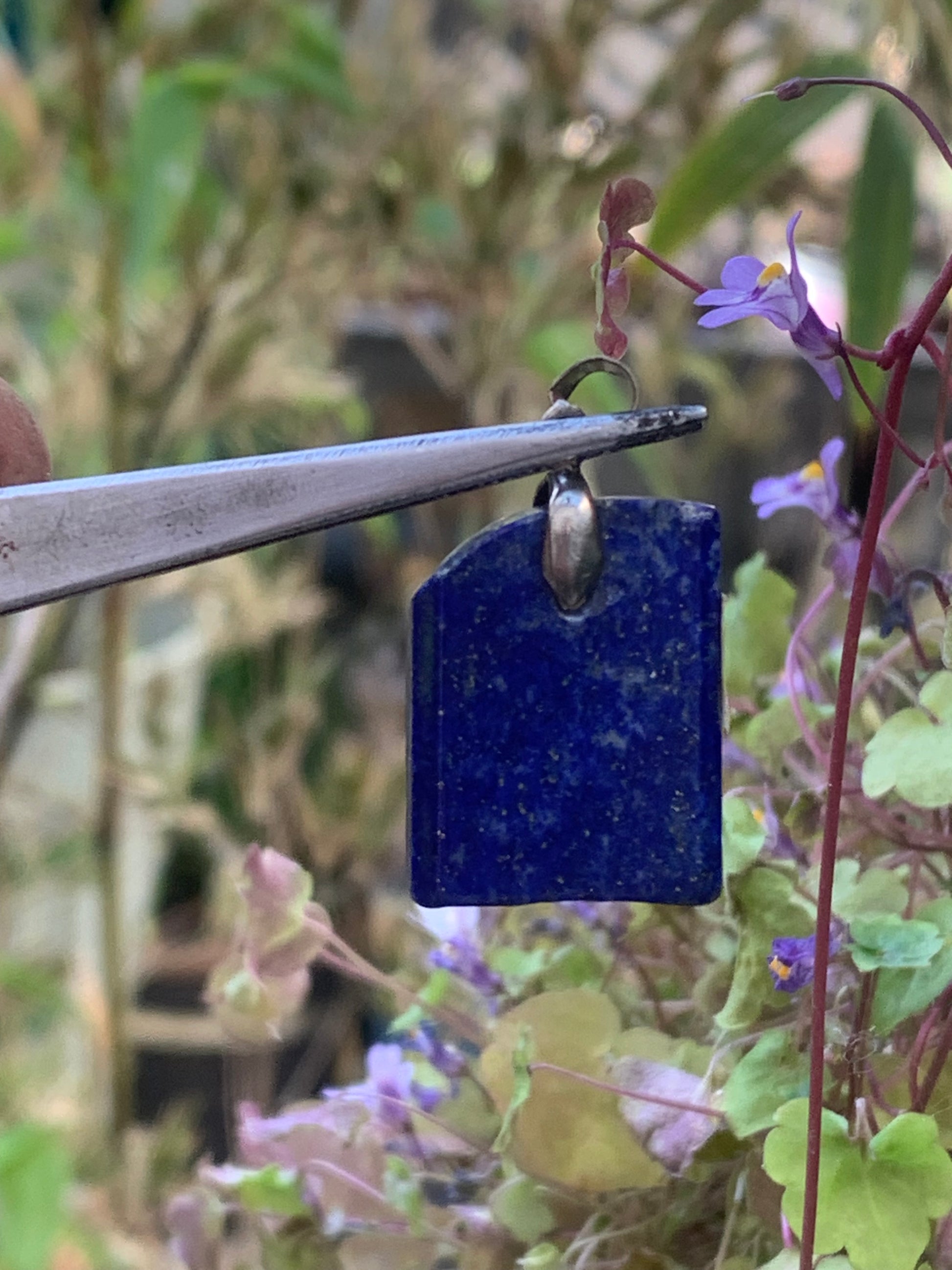Lapis lazuli, pendentif de 32 millimètres de hauteur x 18 millimètres de largeur x 6 d'épaisseur. Vendu avec un cordon réglable de couleur noire !