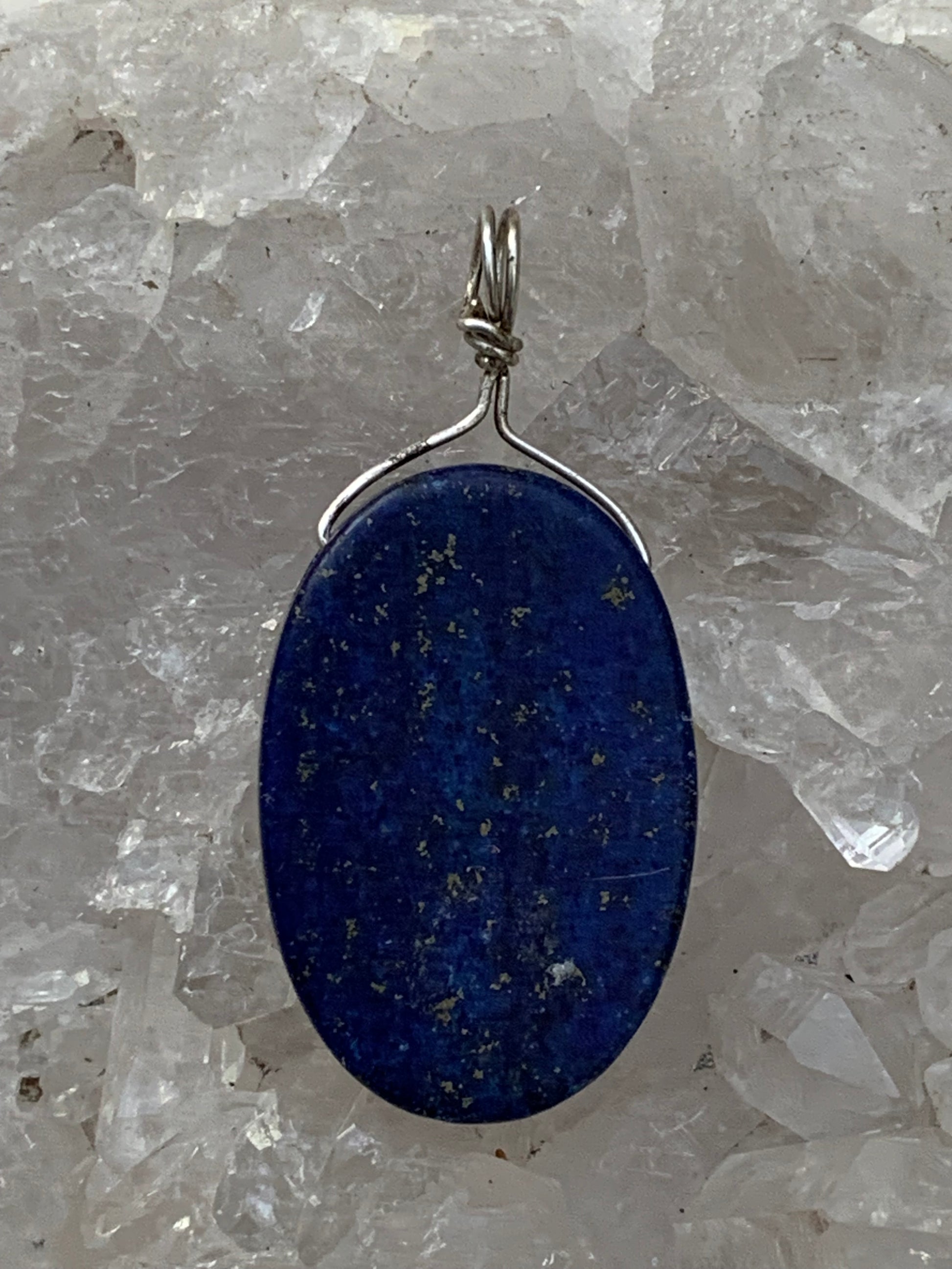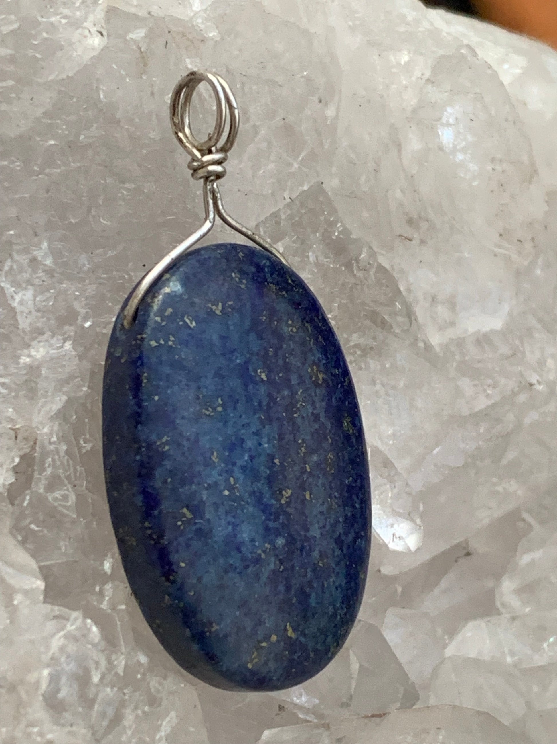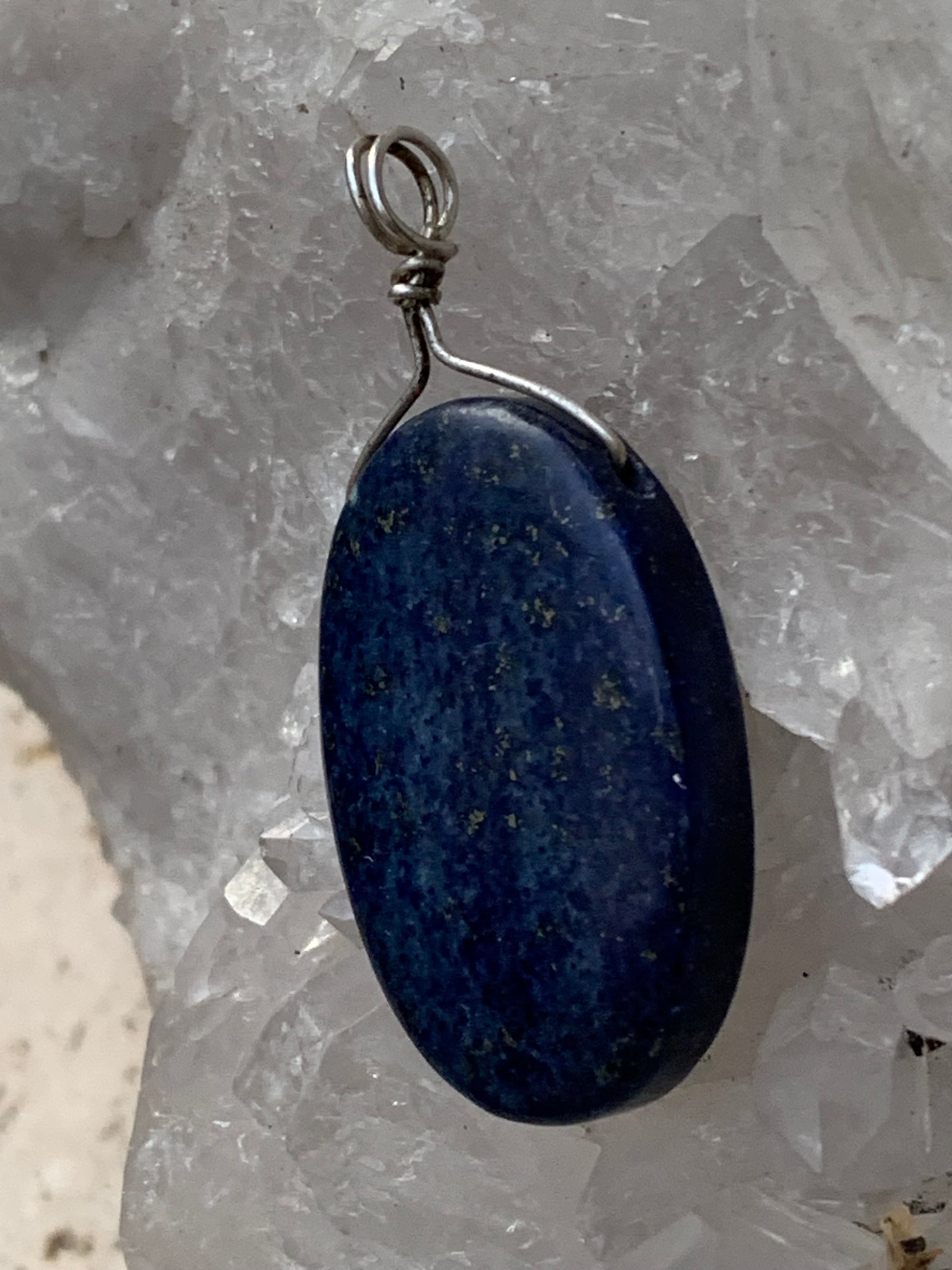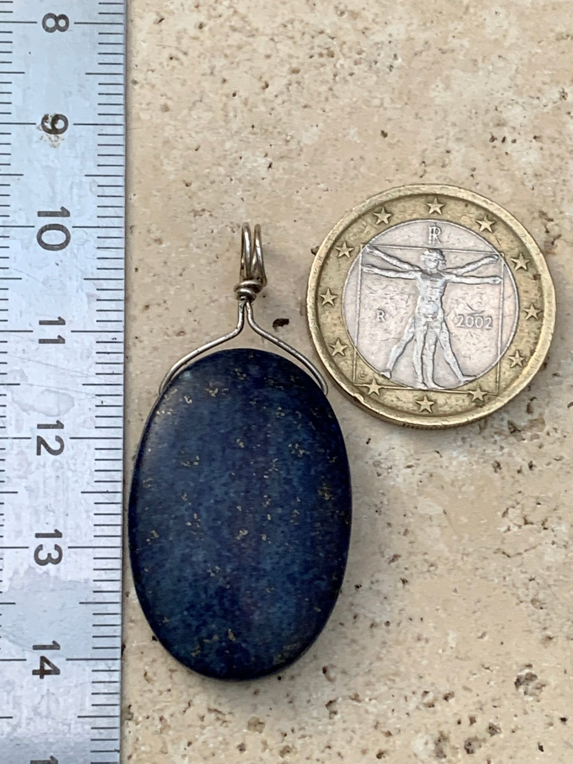 Lapis lazuli, pendentif en Argent 925, de 42 millimètres de hauteur x 20 millimètres de largeur x 7 d'épaisseur. Vendu avec un cordon réglable de couleur noire !
