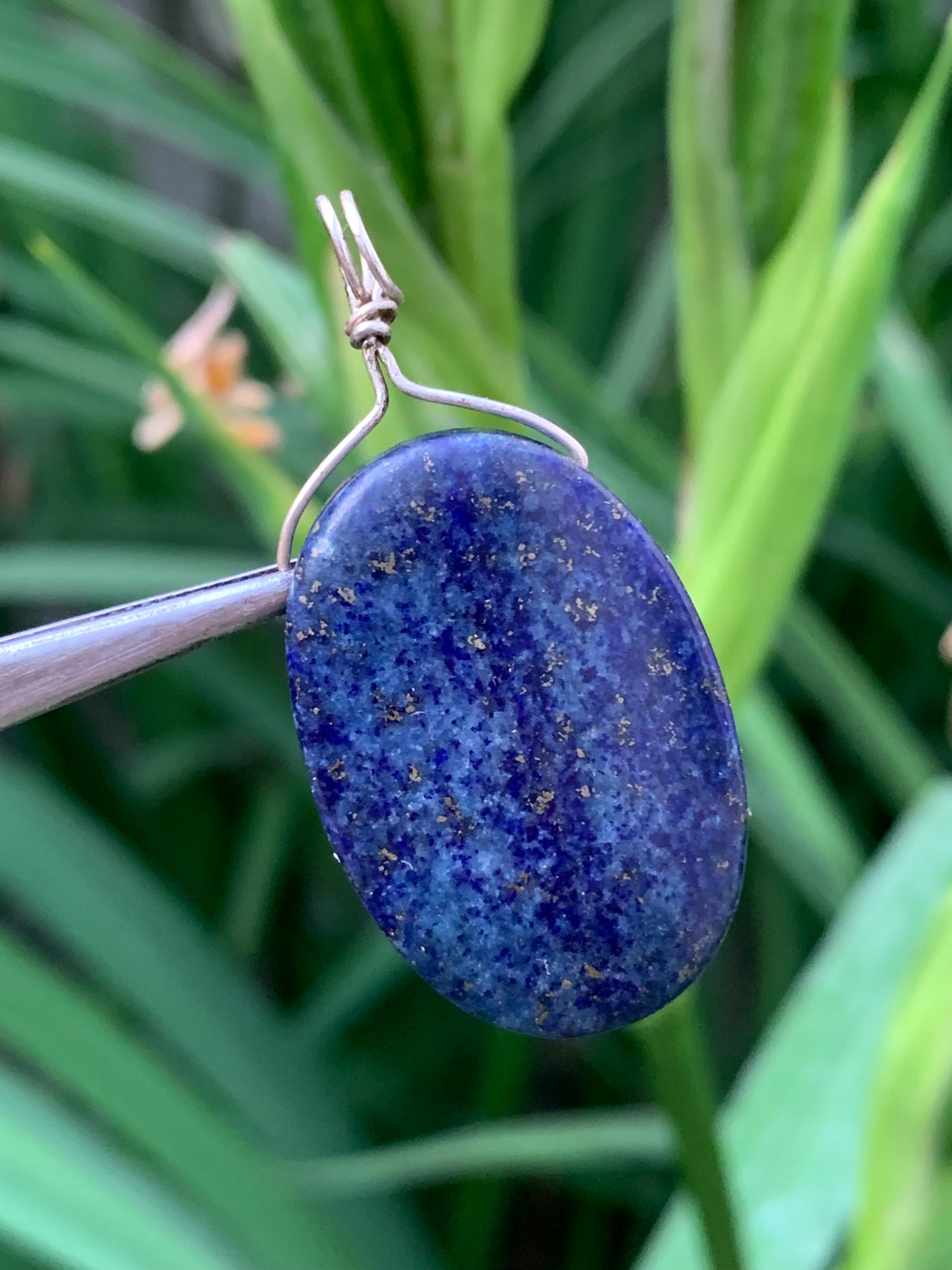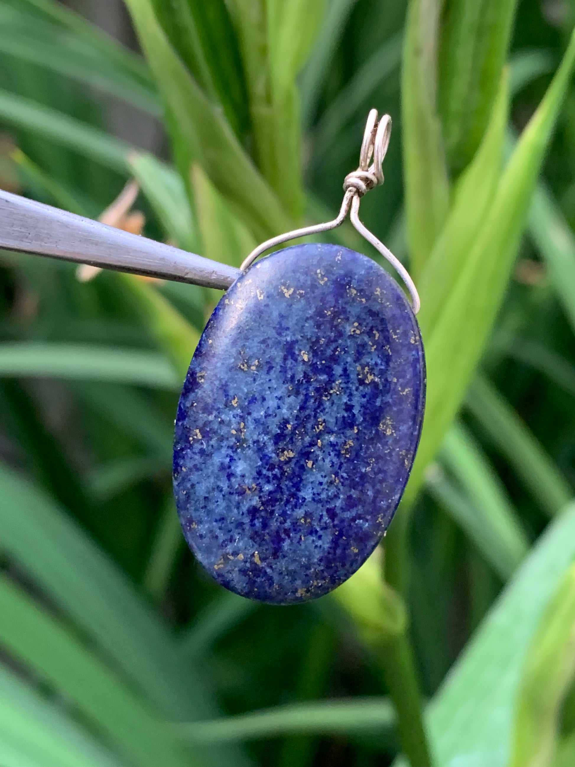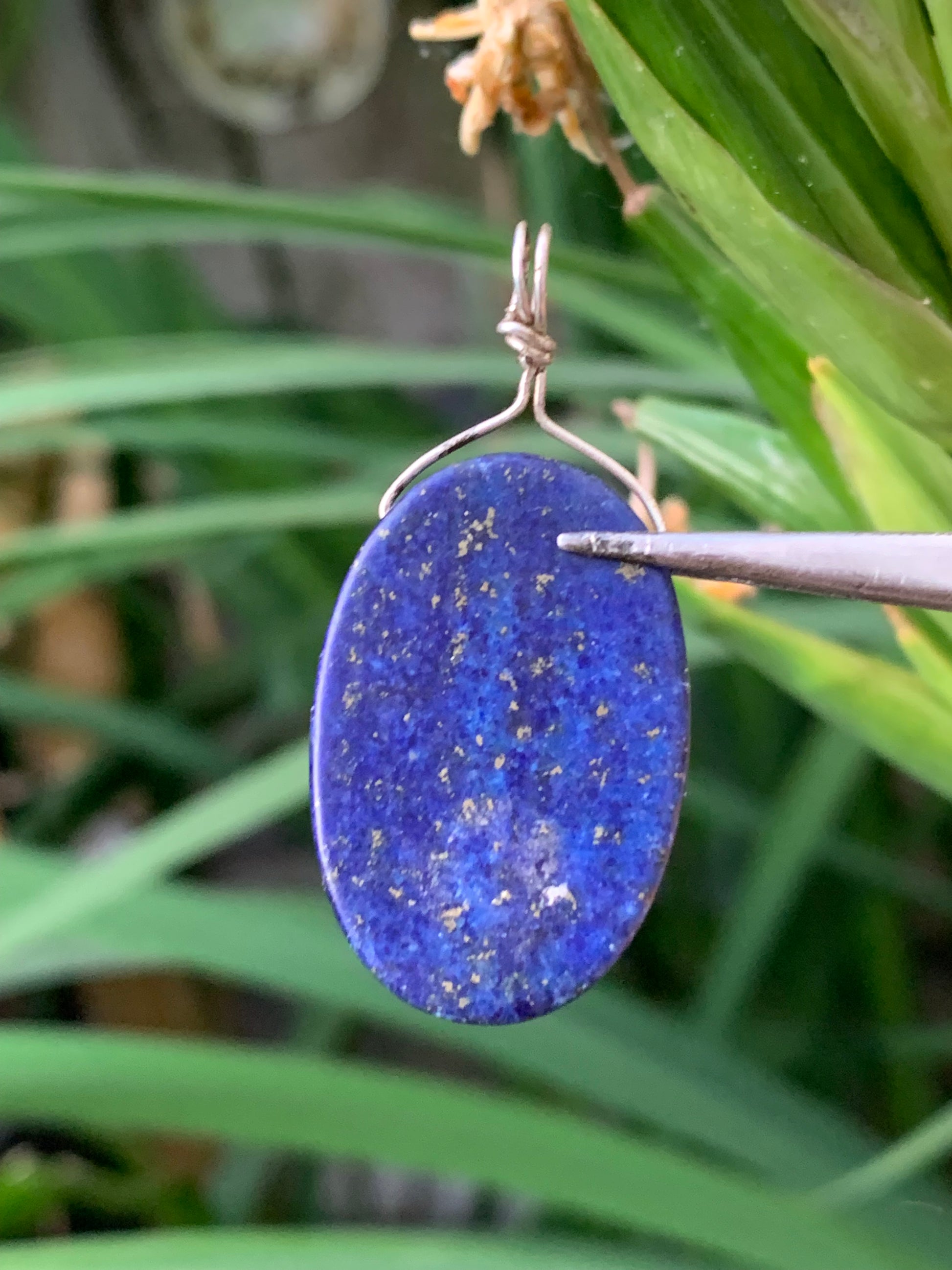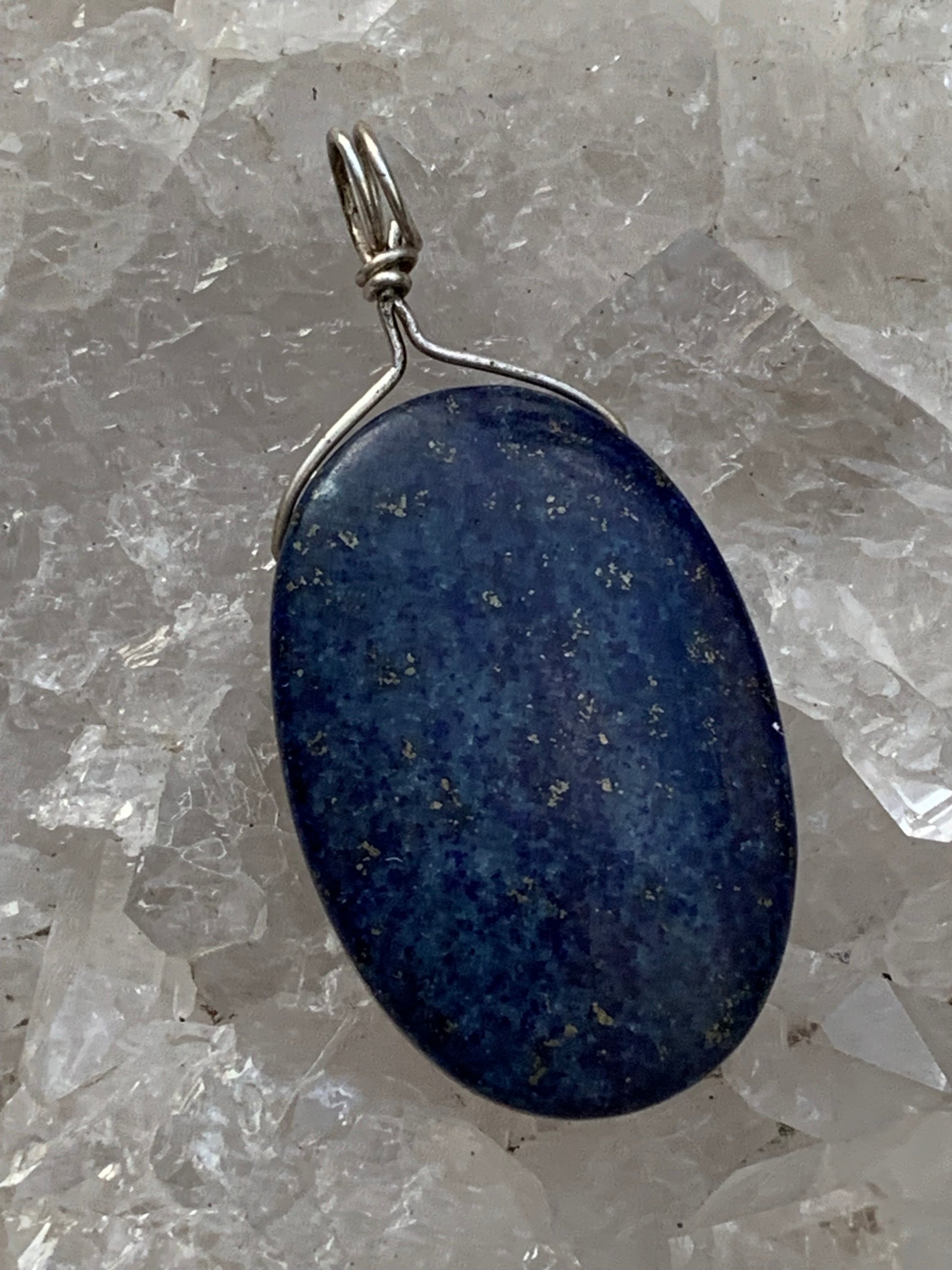 Lapis lazuli, pendentif en Argent 925, de 42 millimètres de hauteur x 20 millimètres de largeur x 7 d'épaisseur. Vendu avec un cordon réglable de couleur noire !