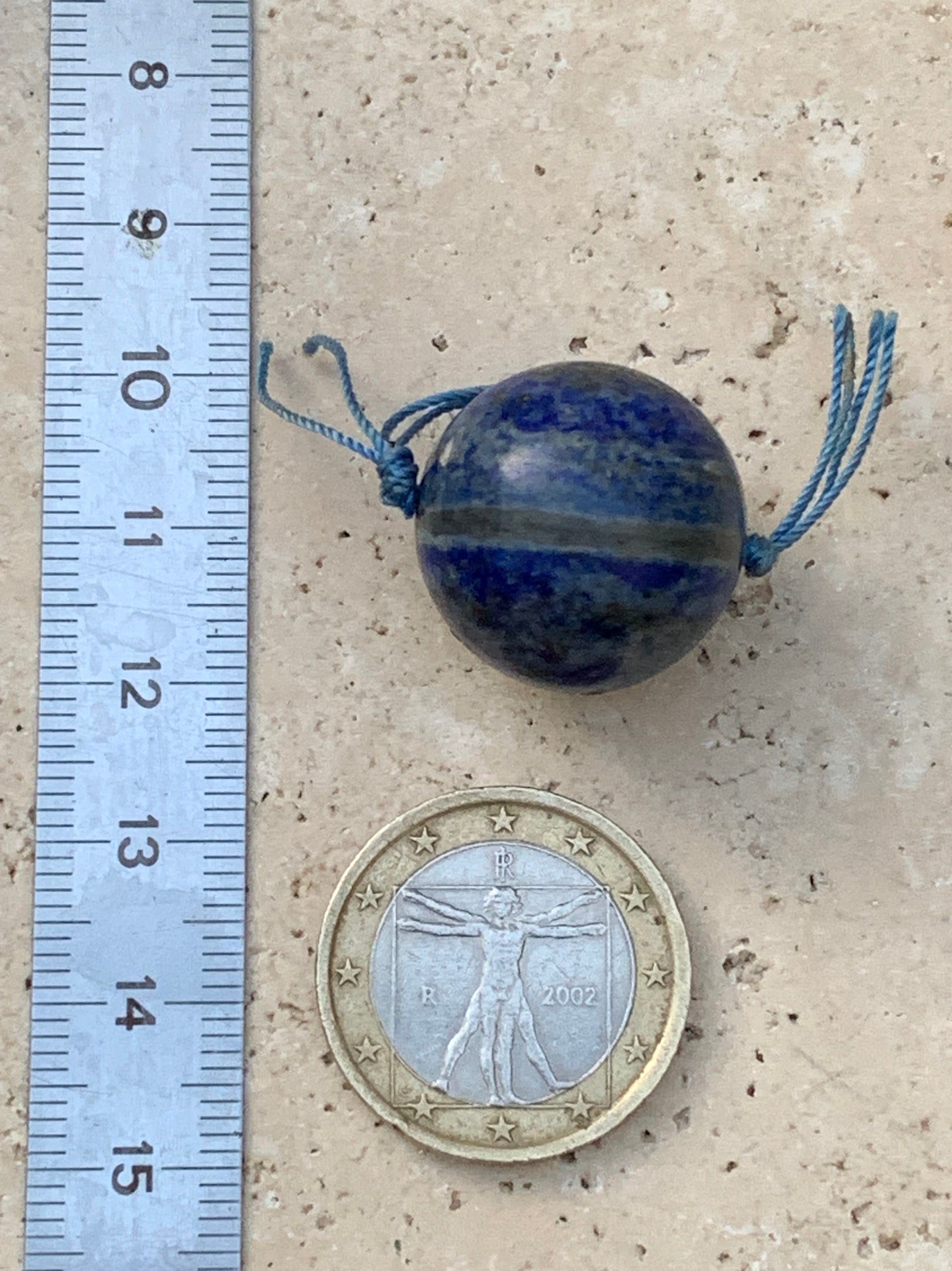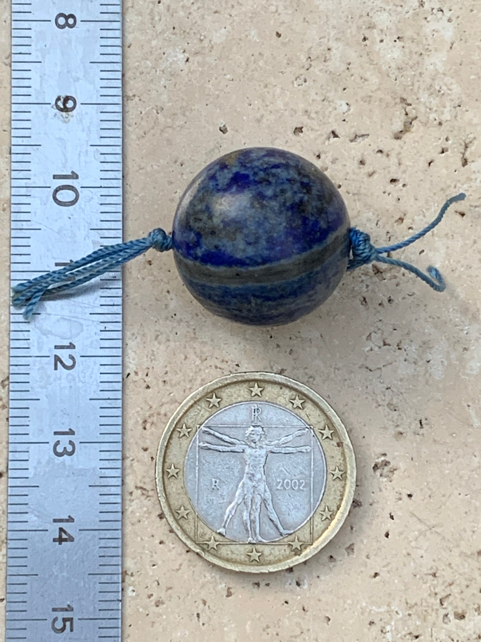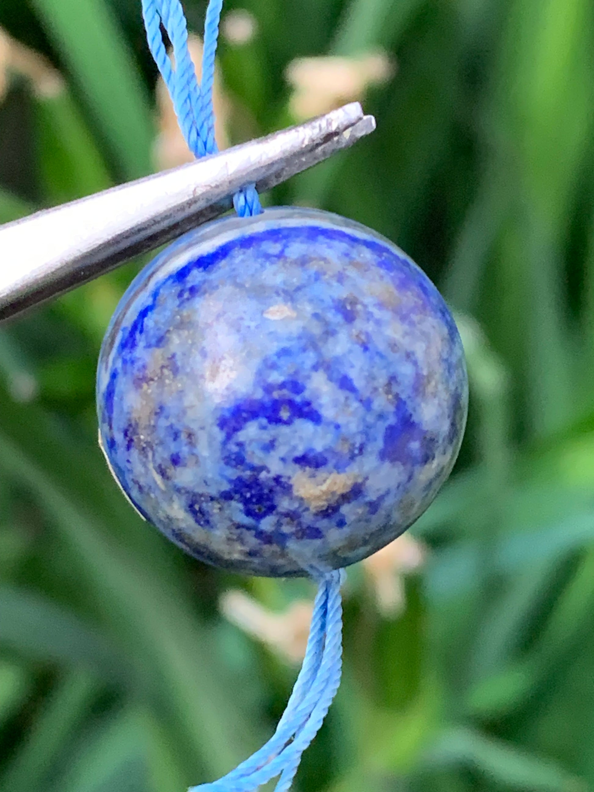 Lapis lazuli, pendentif en perle de 20 millimètres de diamètre. Vendu avec un cordon réglable de couleur noire !