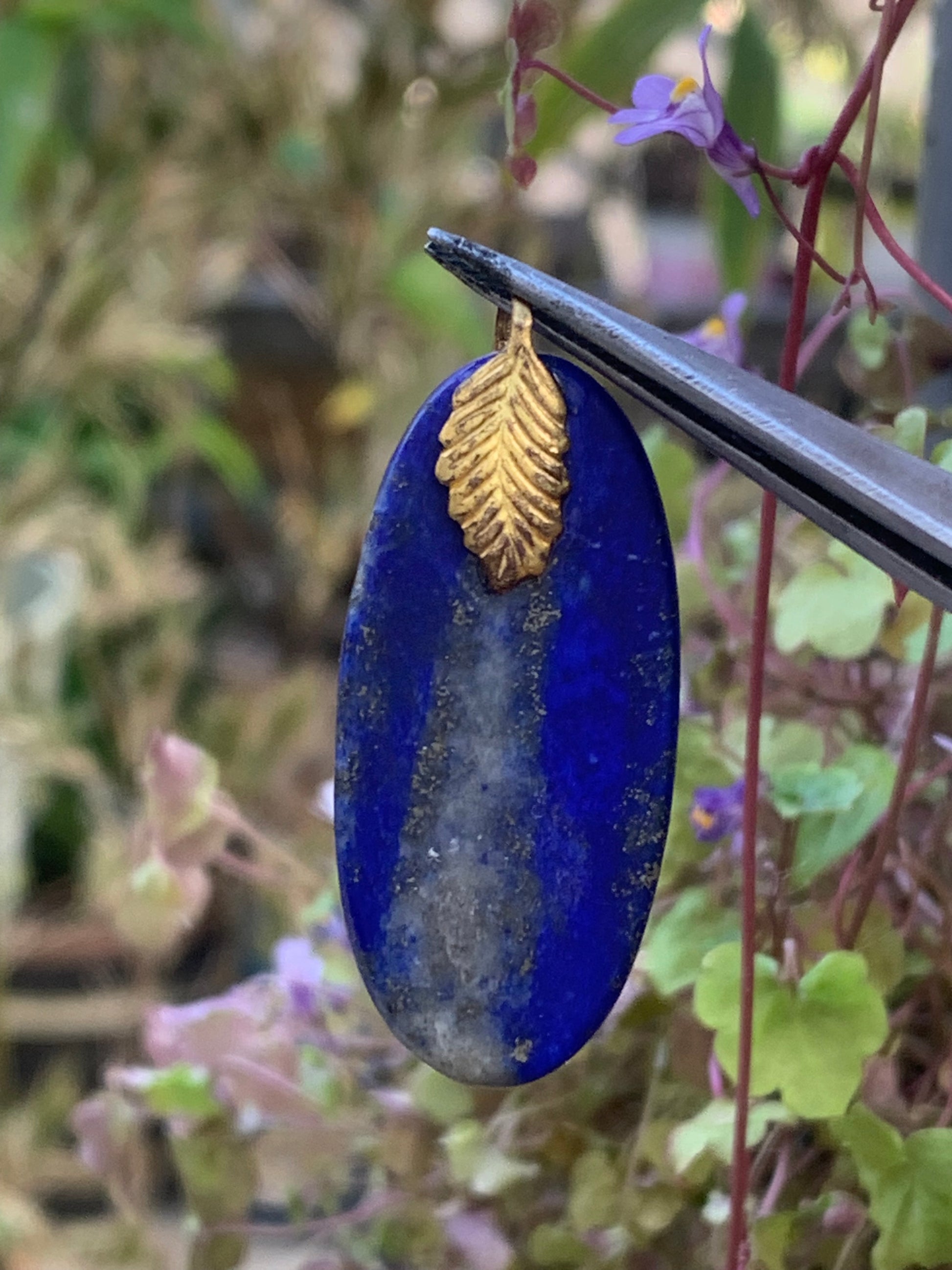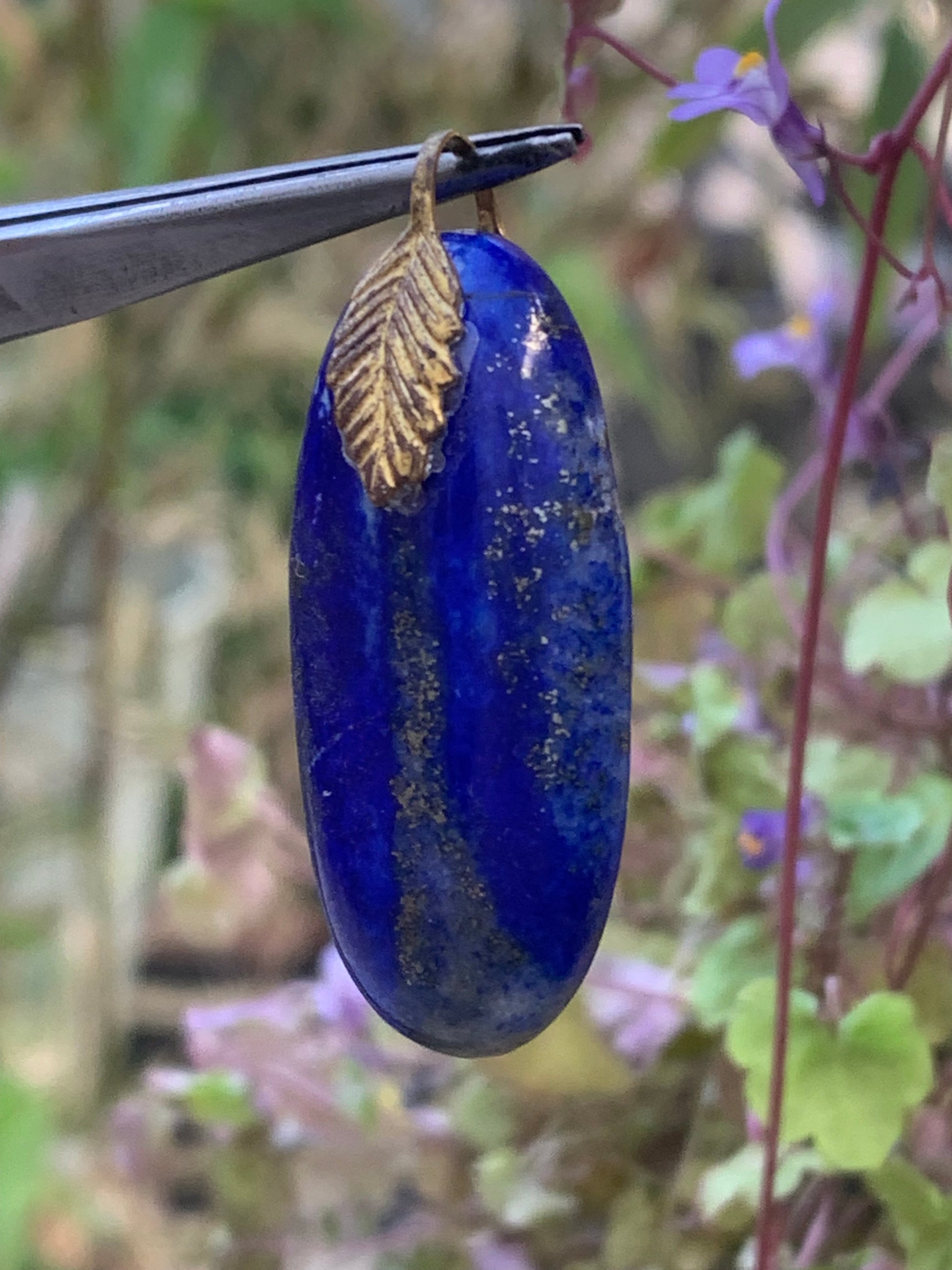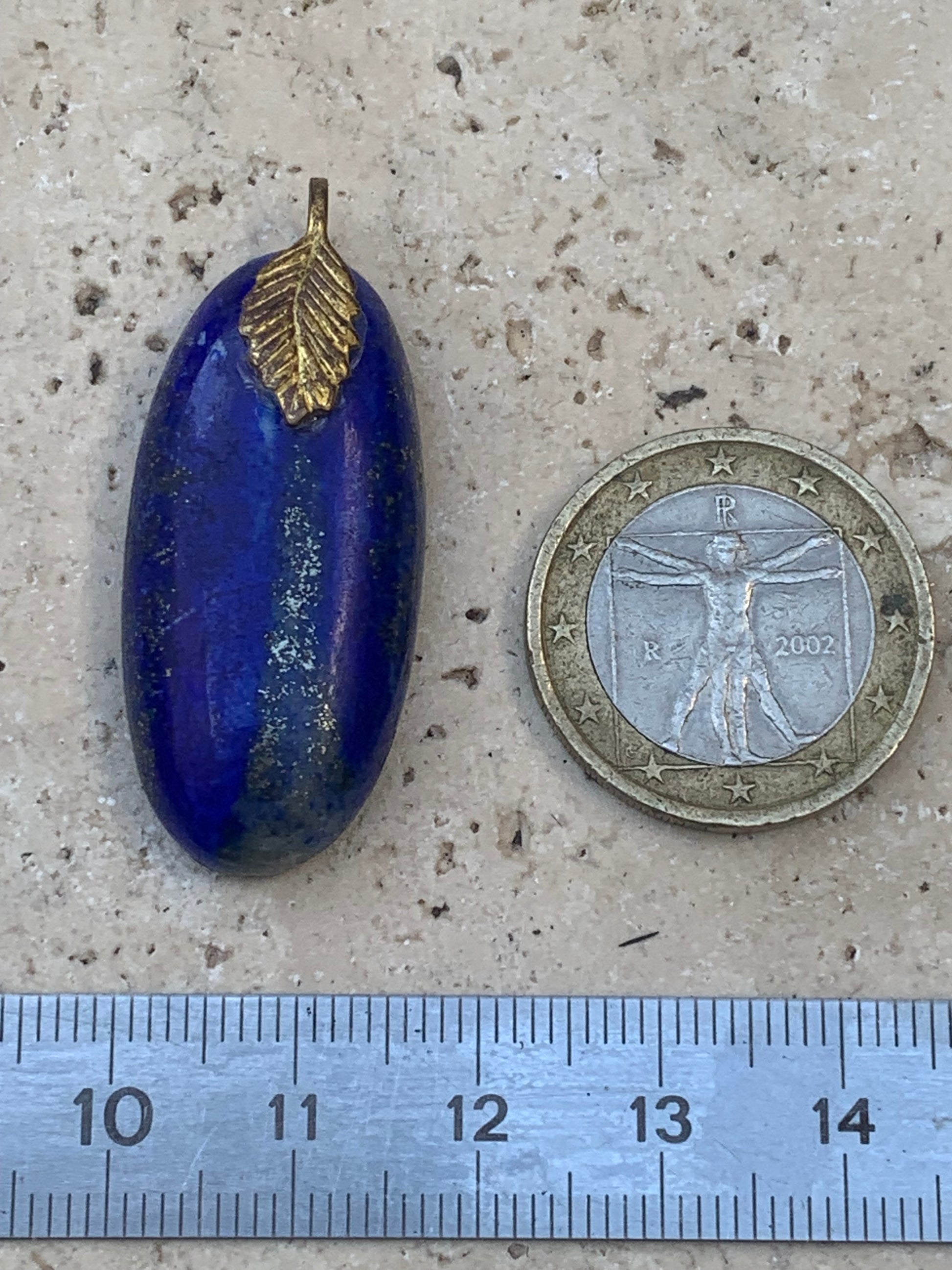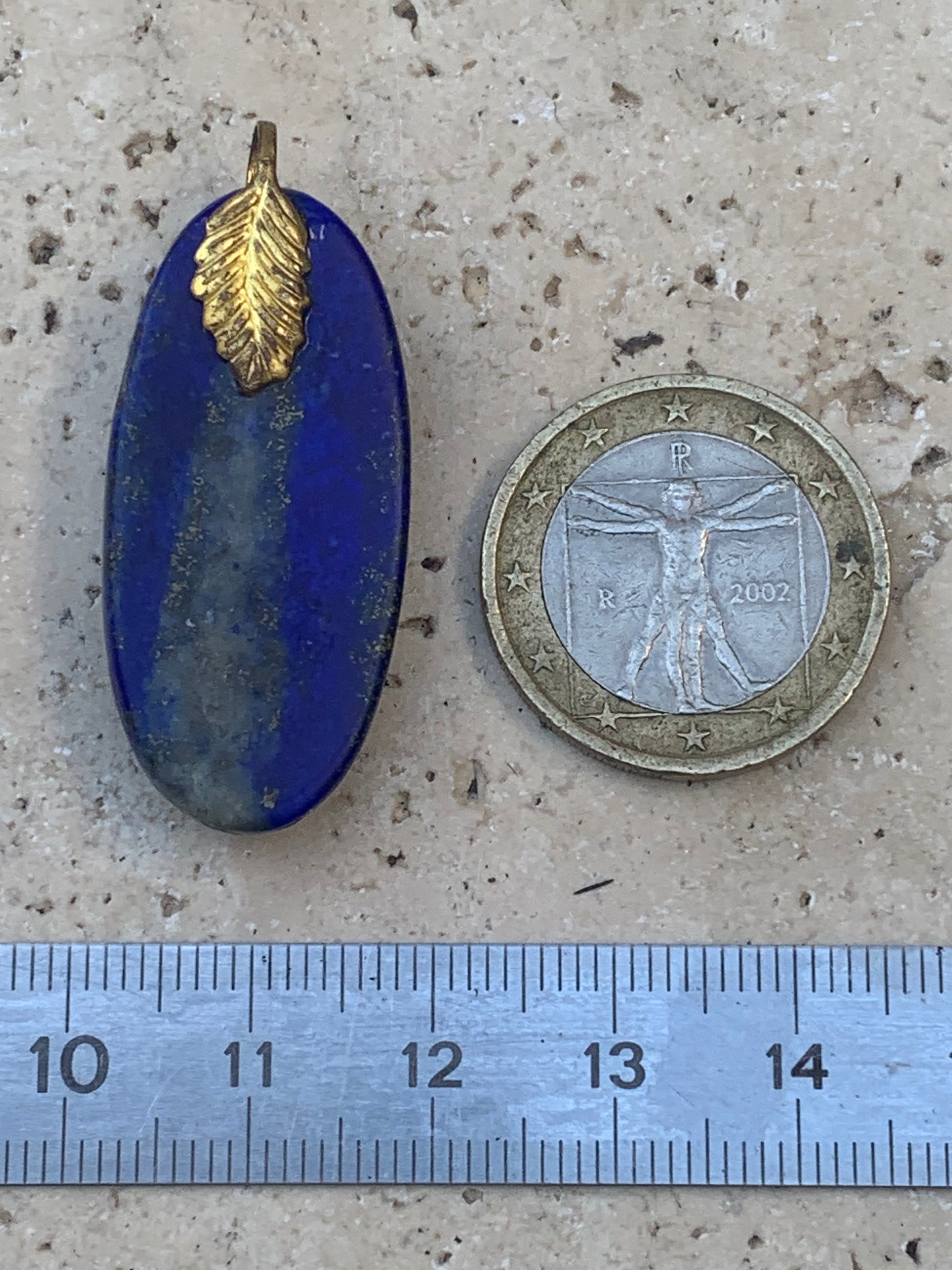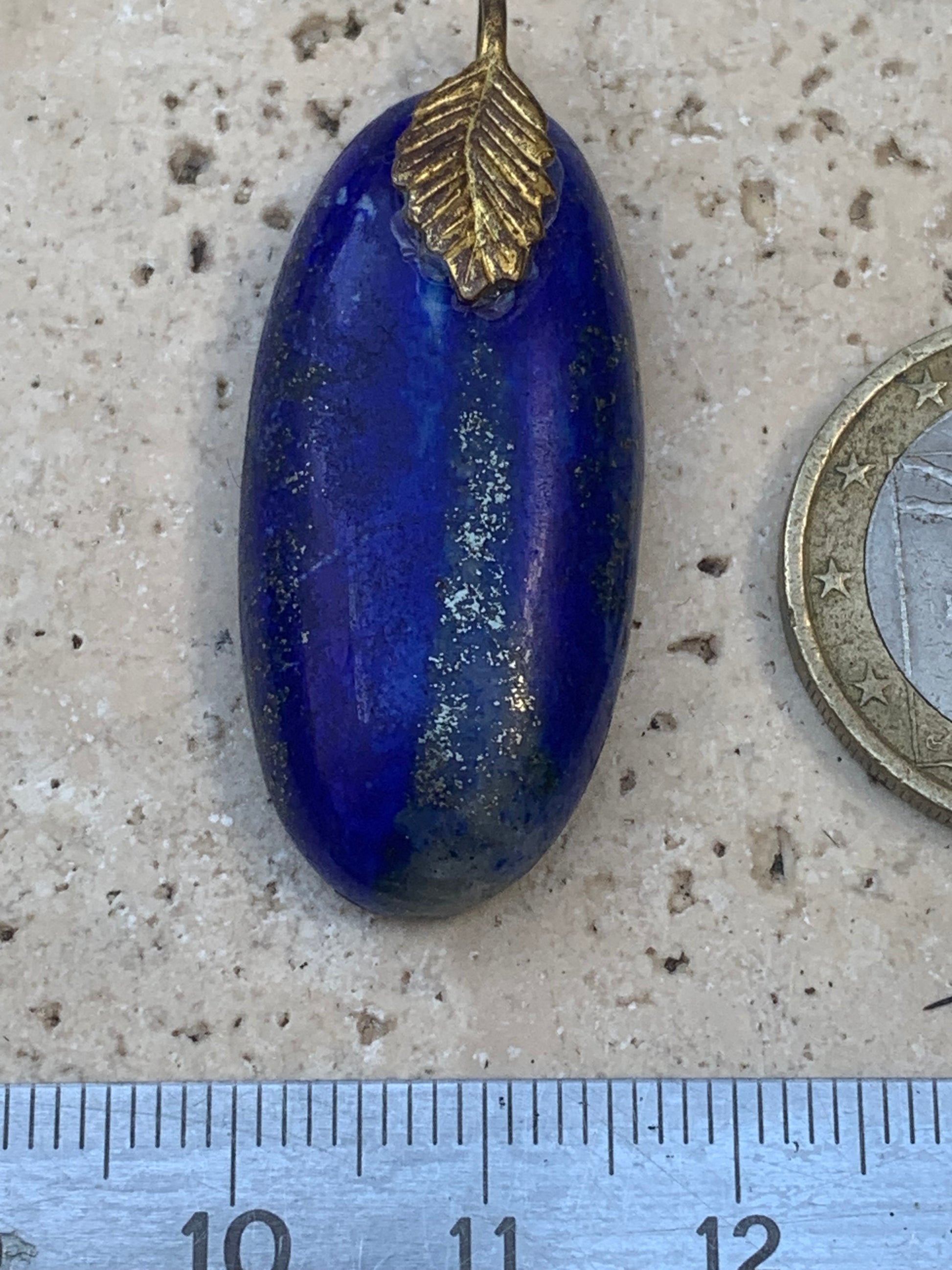 Lapis lazuli, pendentif fait par G & Z, de 40 millimètres de hauteur x 17 millimètres de largeur x 7 d'épaisseur. Vendu avec un cordon réglable de couleur noire !