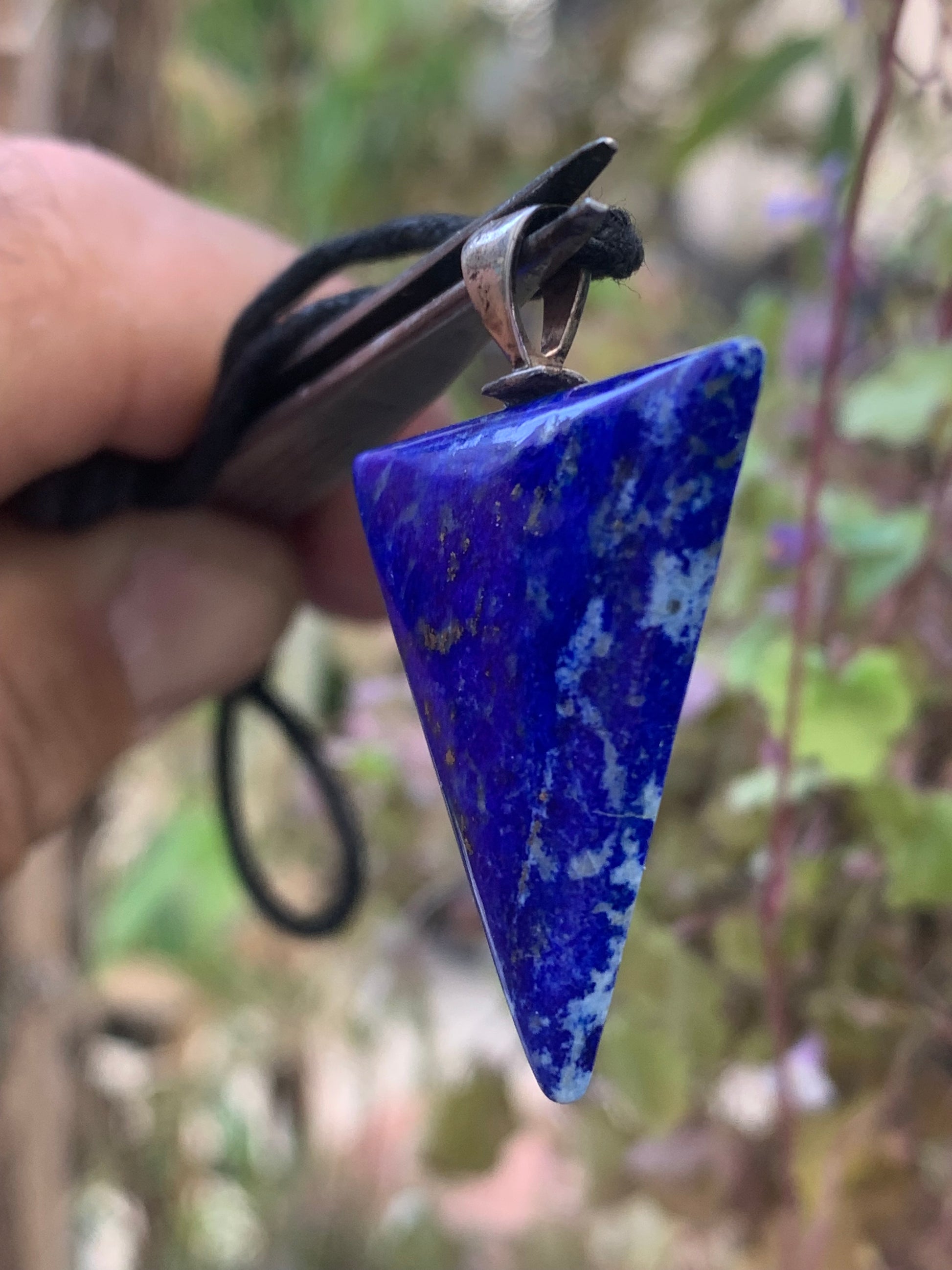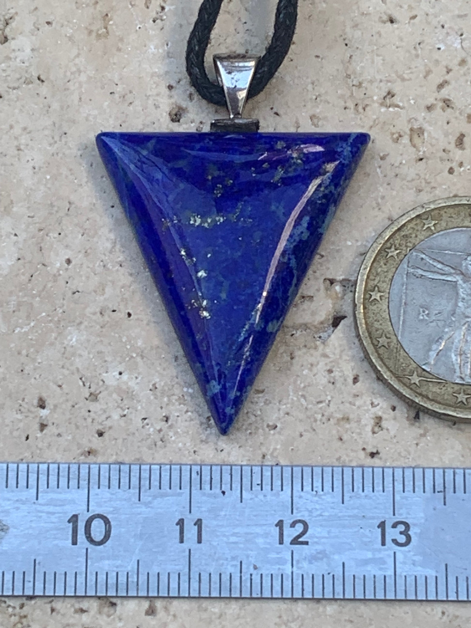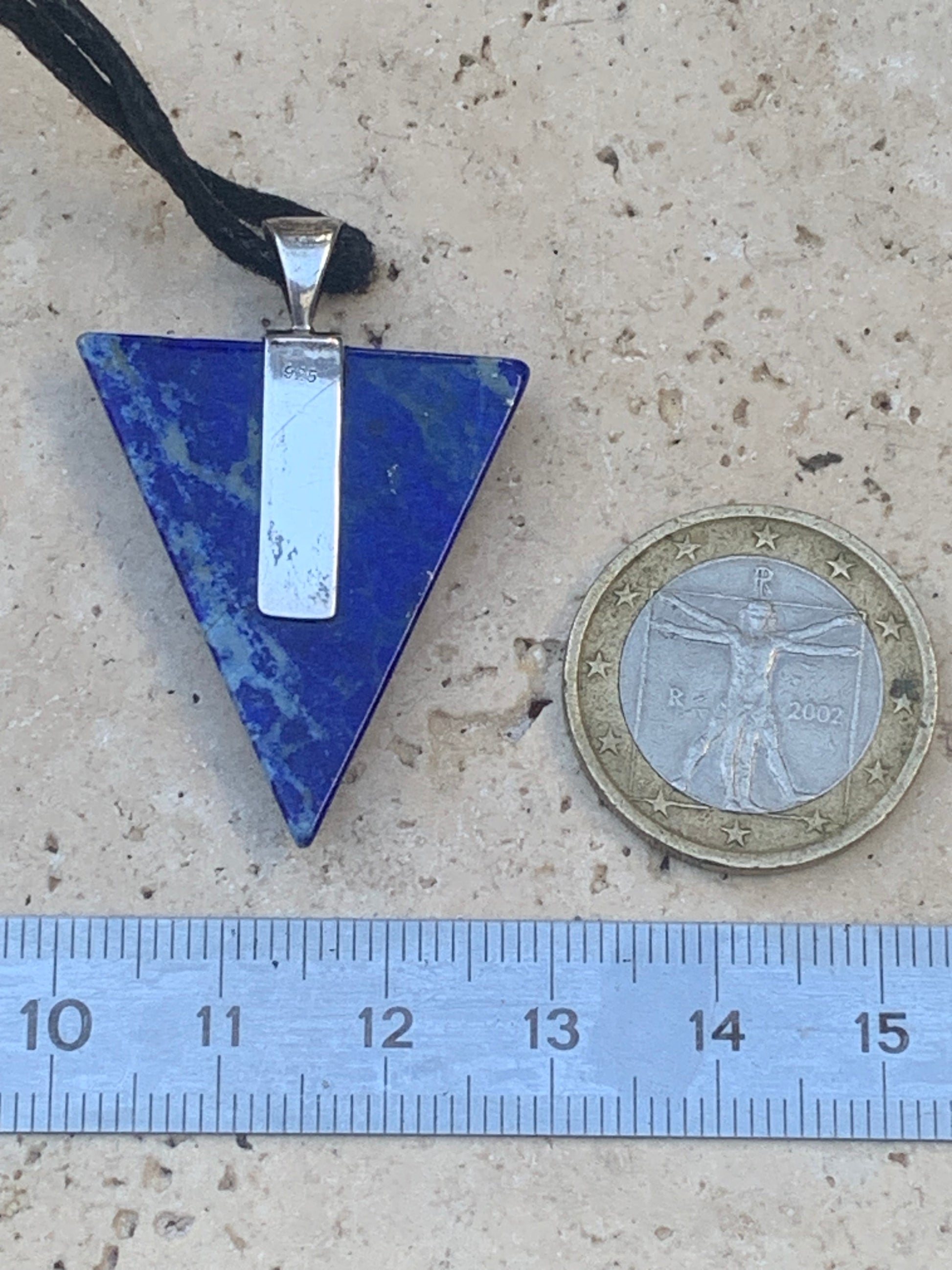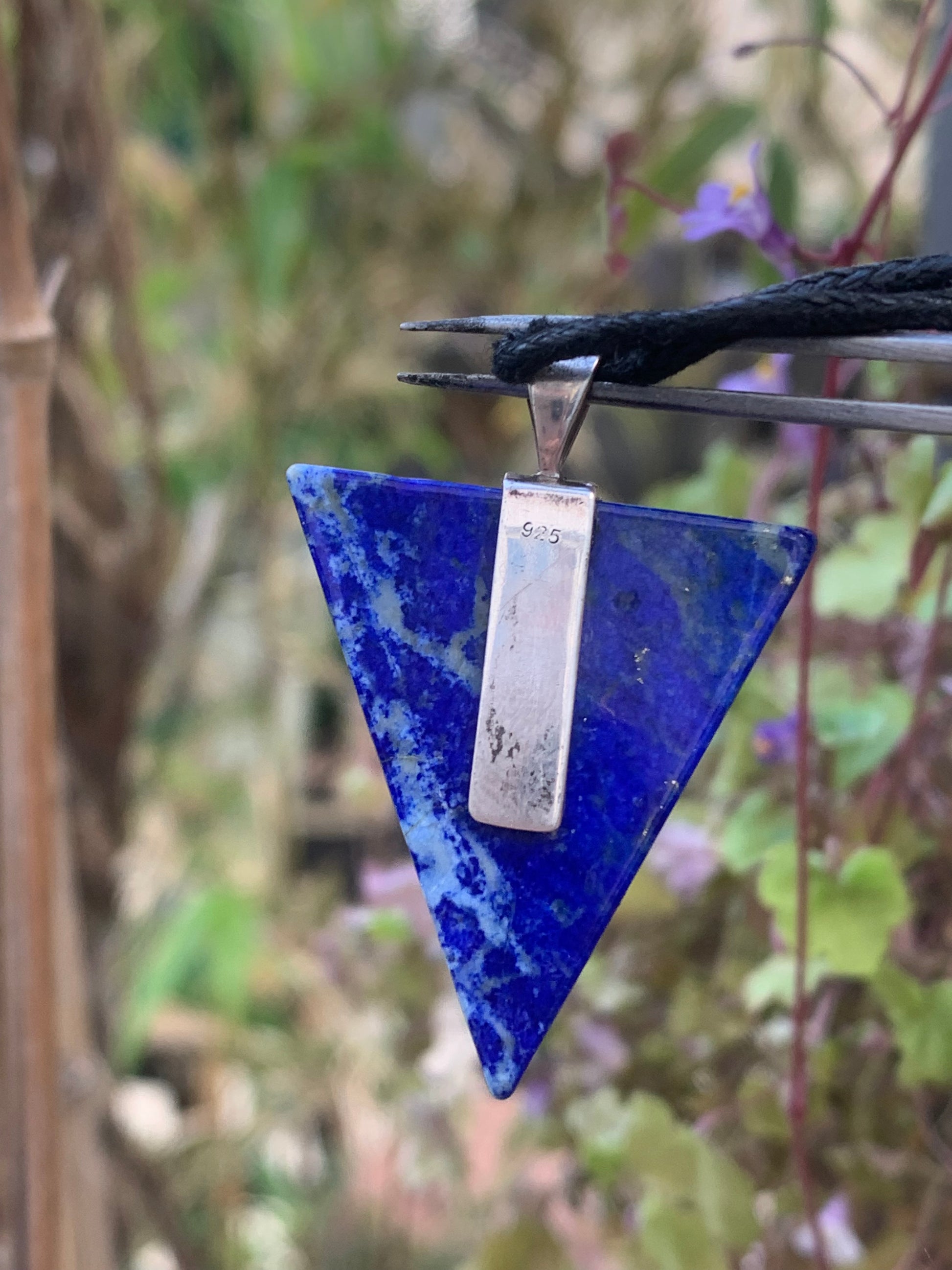 Lapis lazuli, petit pendentif en Argent 925 fait par G & Z, de 40 millimètres de hauteur x 28 millimètres de largeur x 6 d'épaisseur. Vendu avec un cordon réglable de couleur noire !