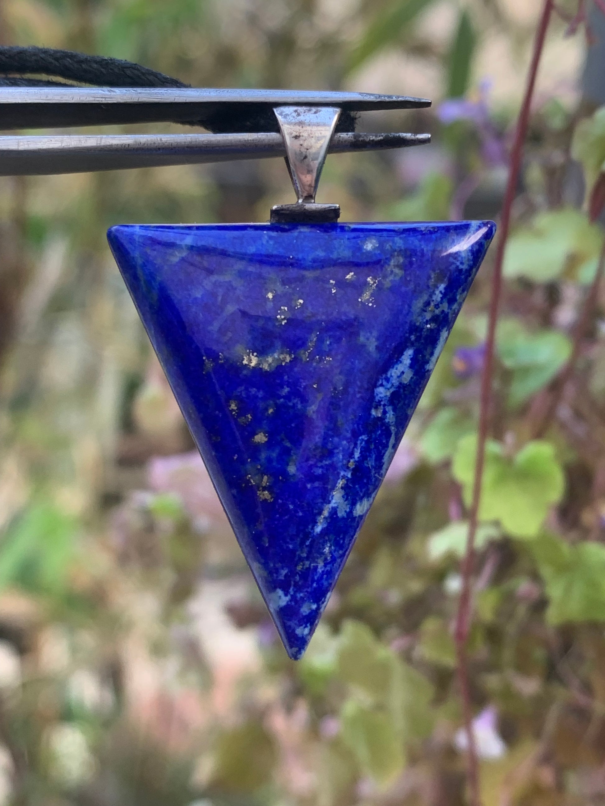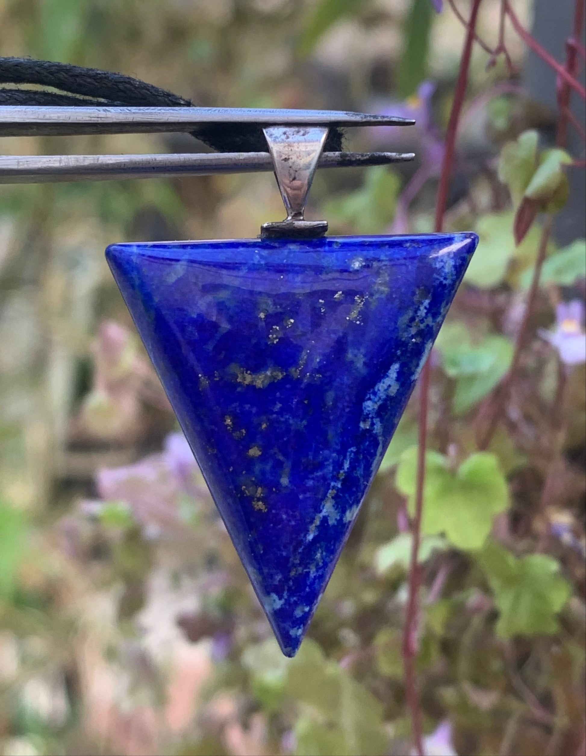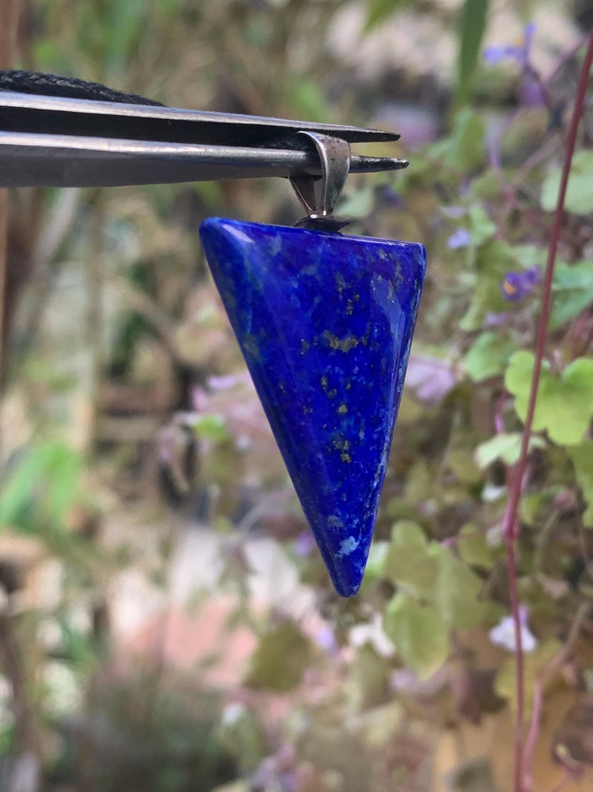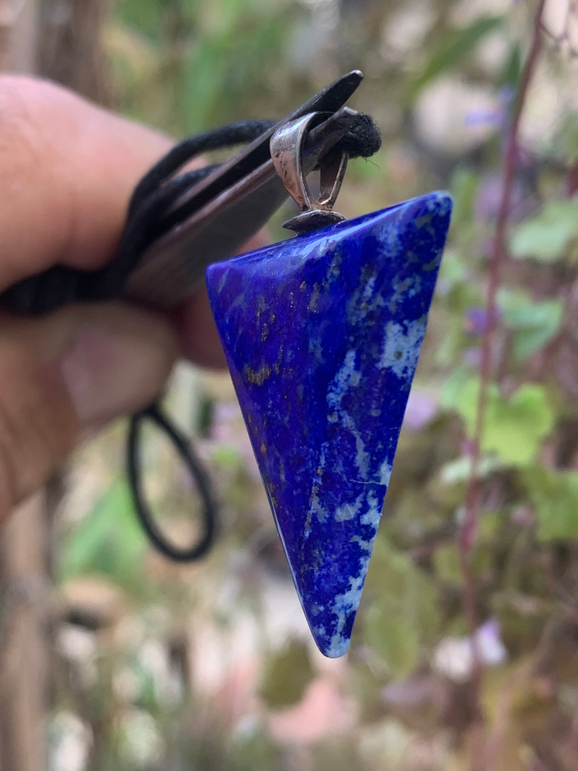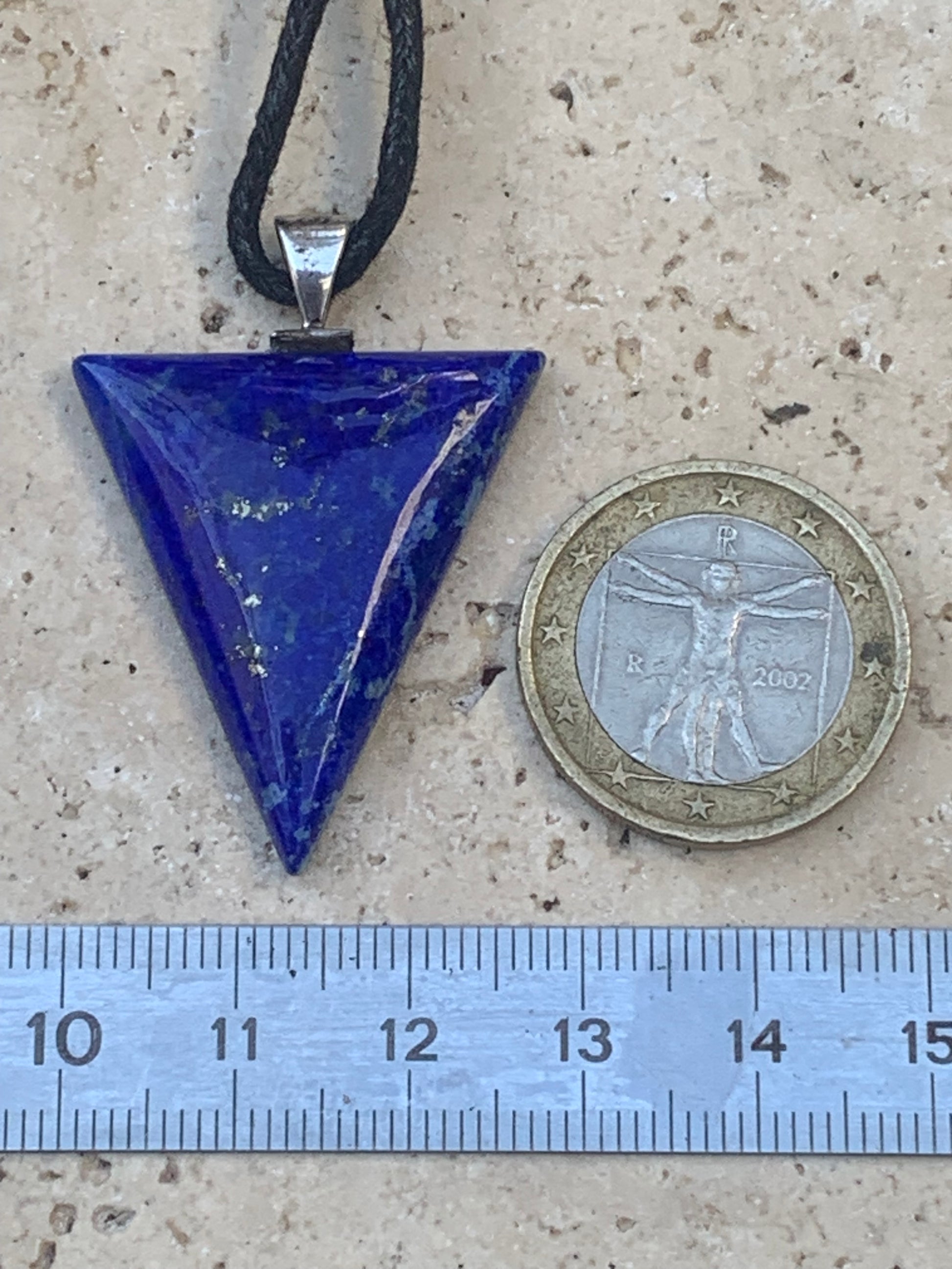 Lapis lazuli, petit pendentif en Argent 925 fait par G & Z, de 40 millimètres de hauteur x 28 millimètres de largeur x 6 d'épaisseur. Vendu avec un cordon réglable de couleur noire !