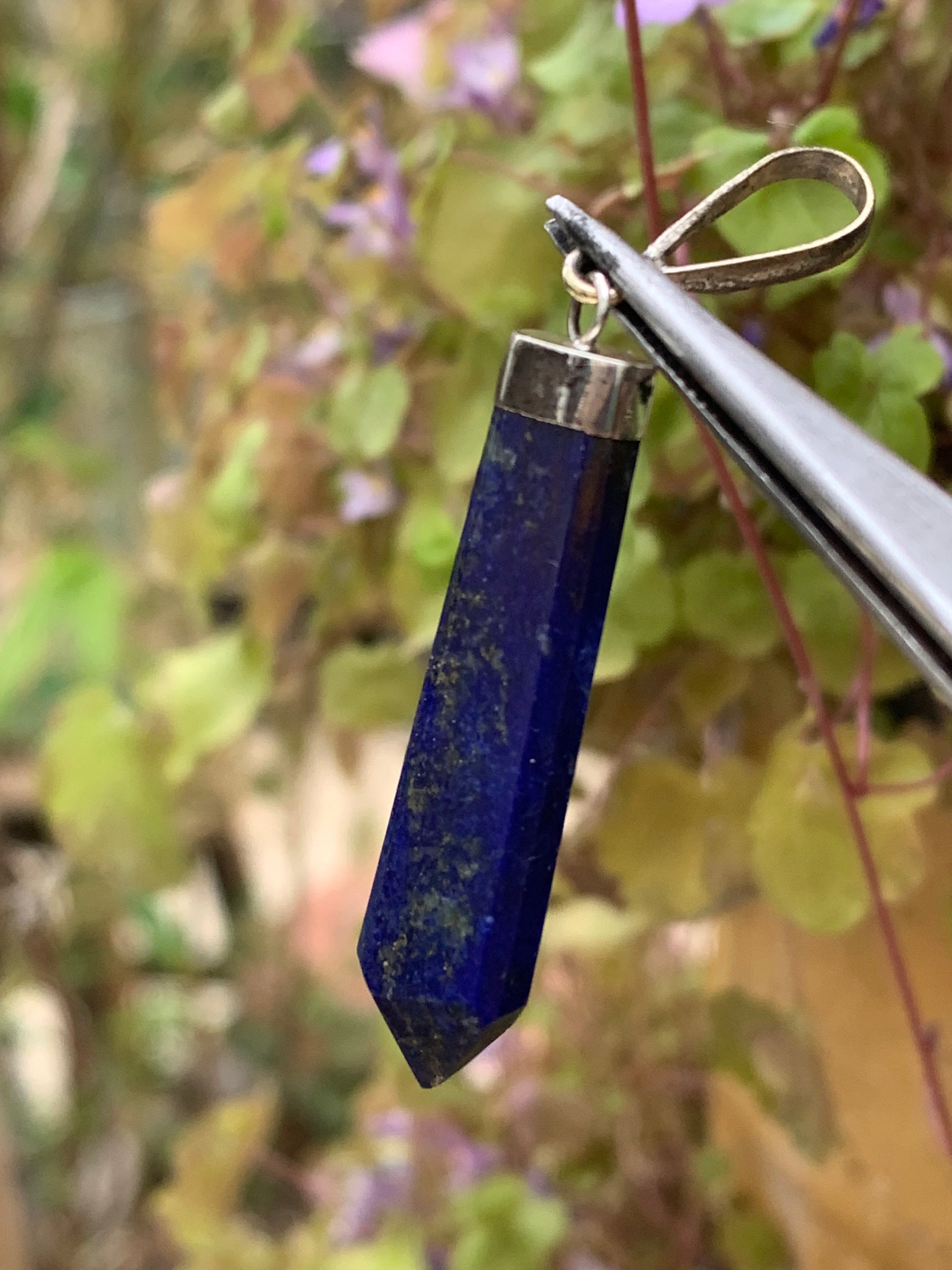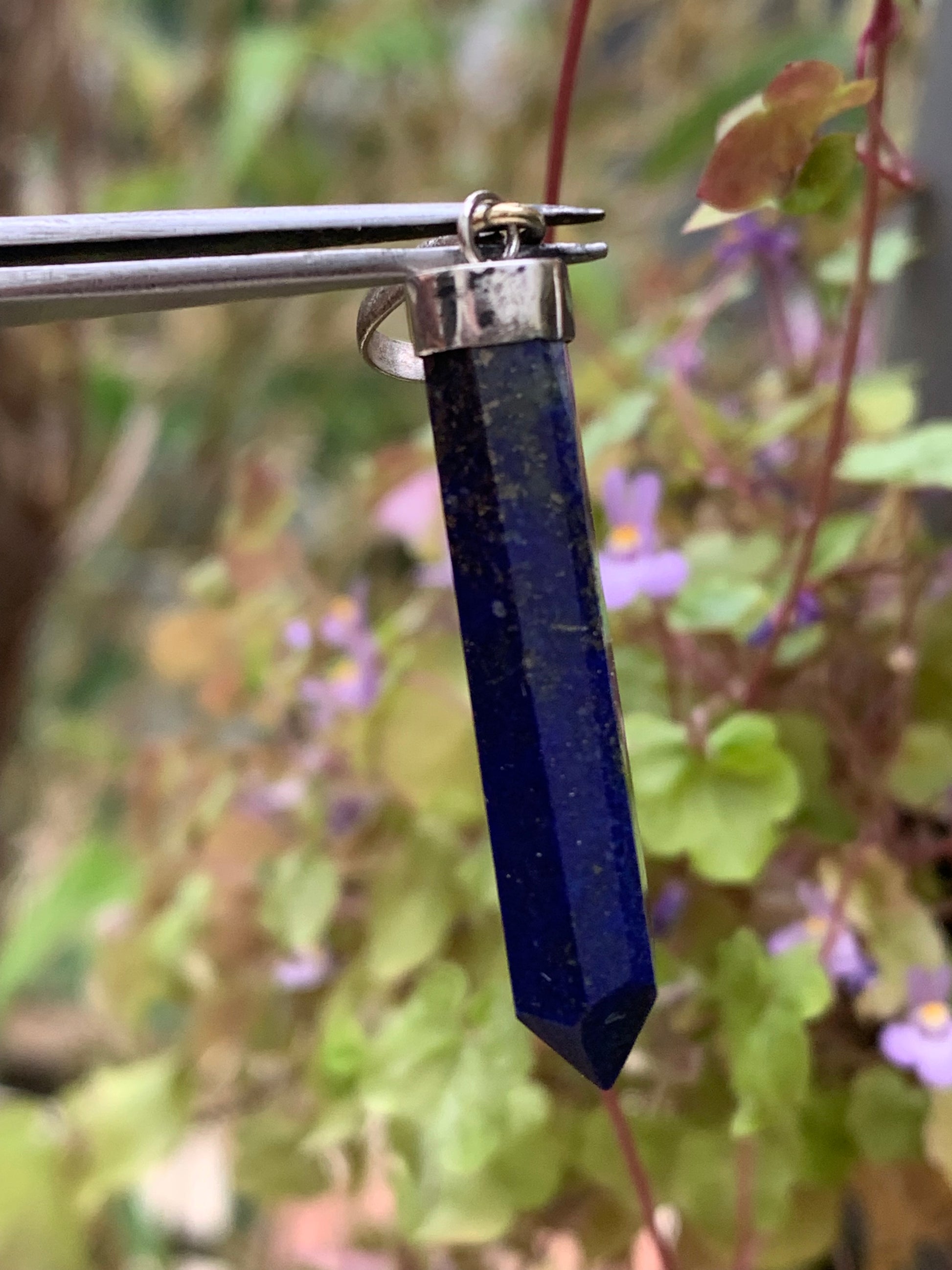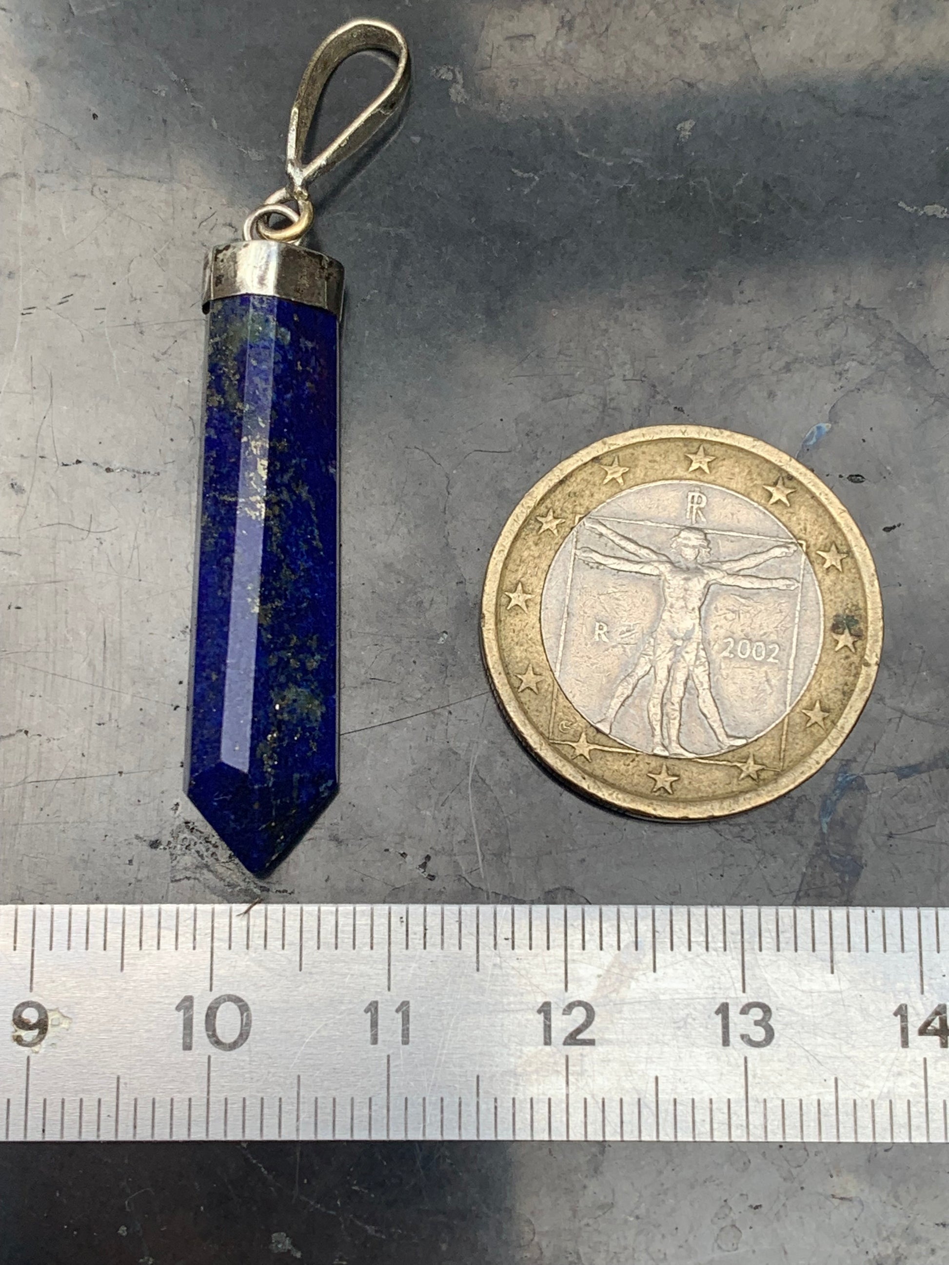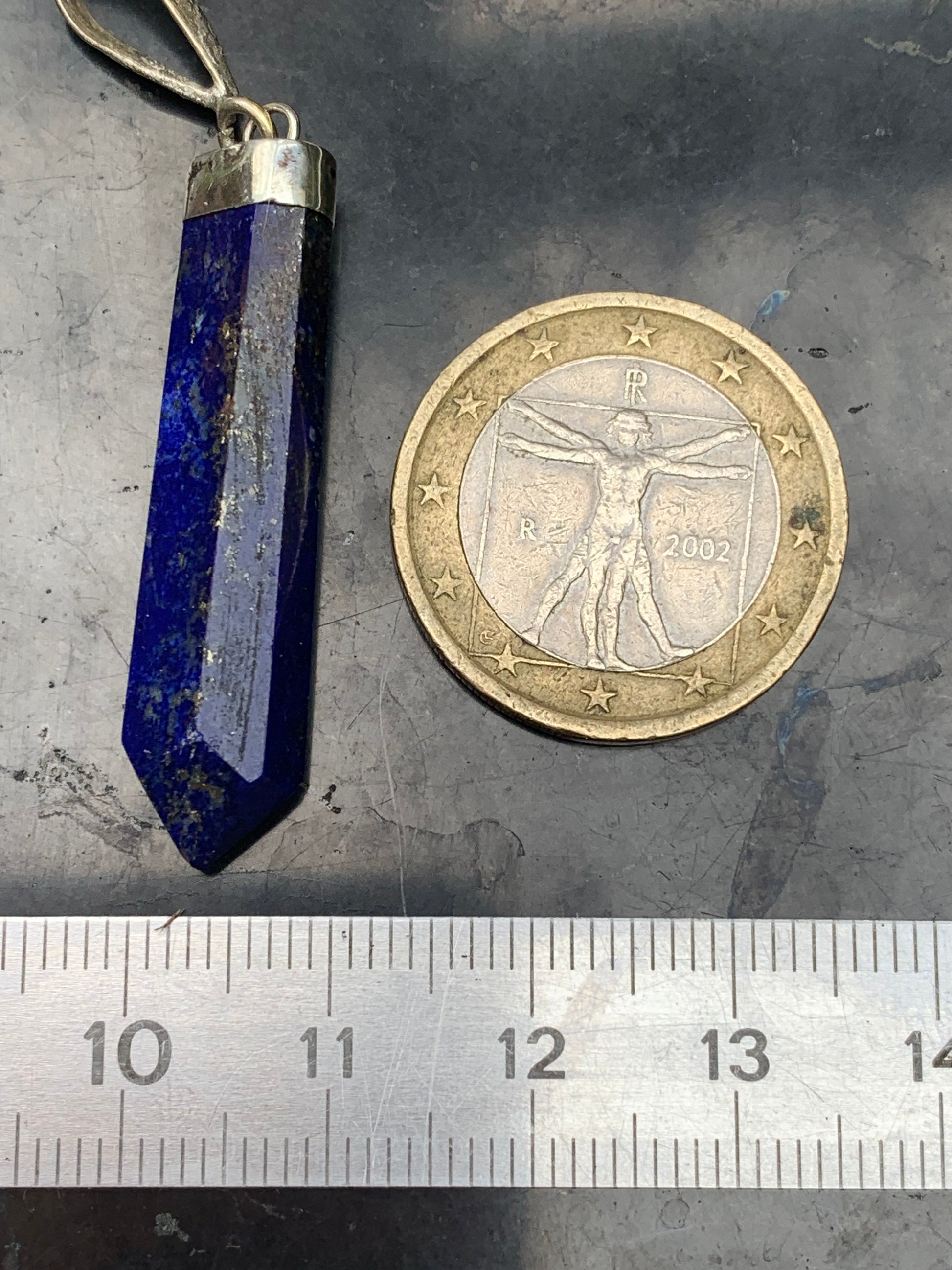 Lapis lazuli, pièce unique en Argent de 52 millimètres de hauteur x 9 millimètres de largeur x 7 d'épaisseur. Vendu avec un cordon réglable de couleur noire !