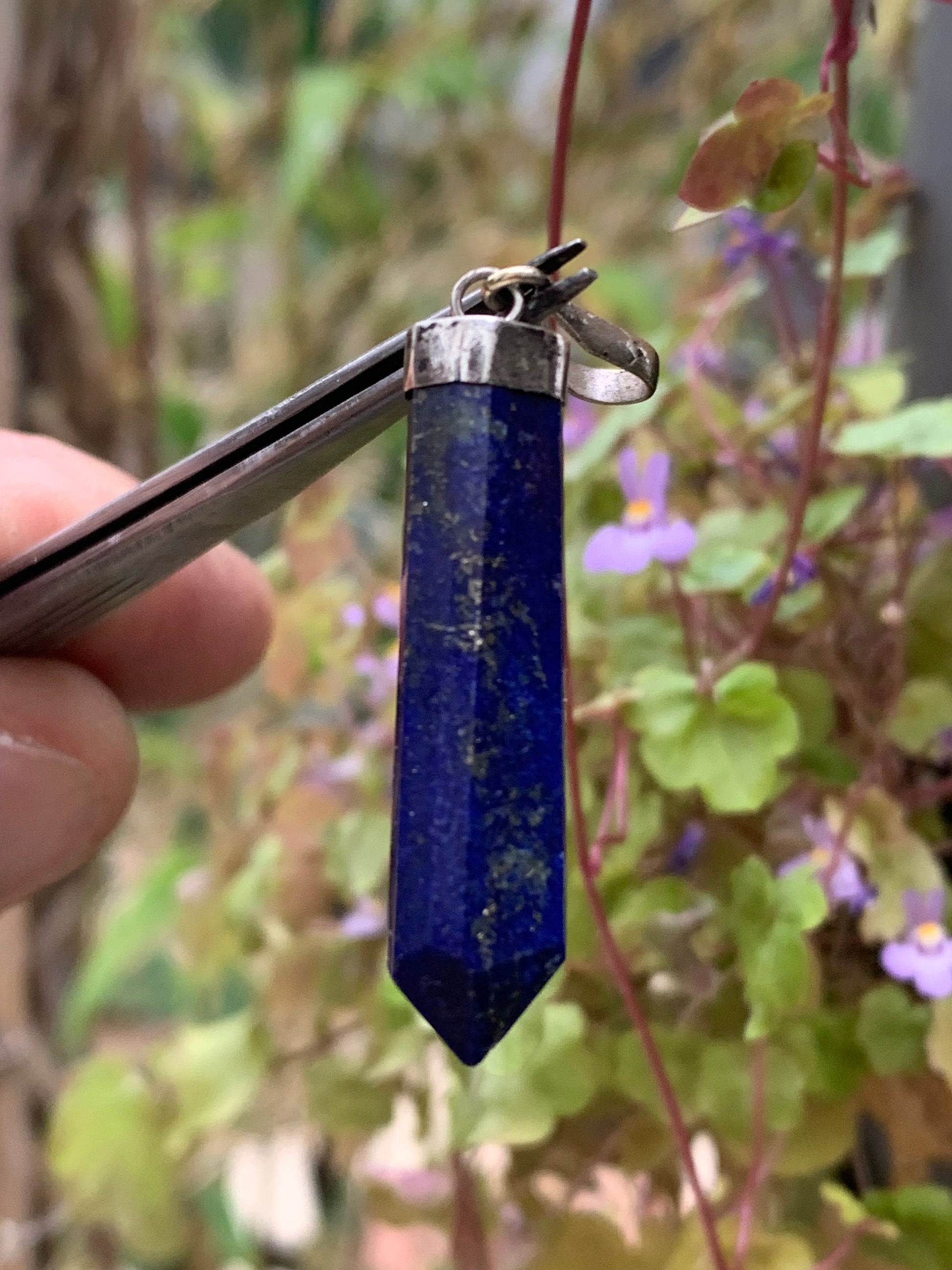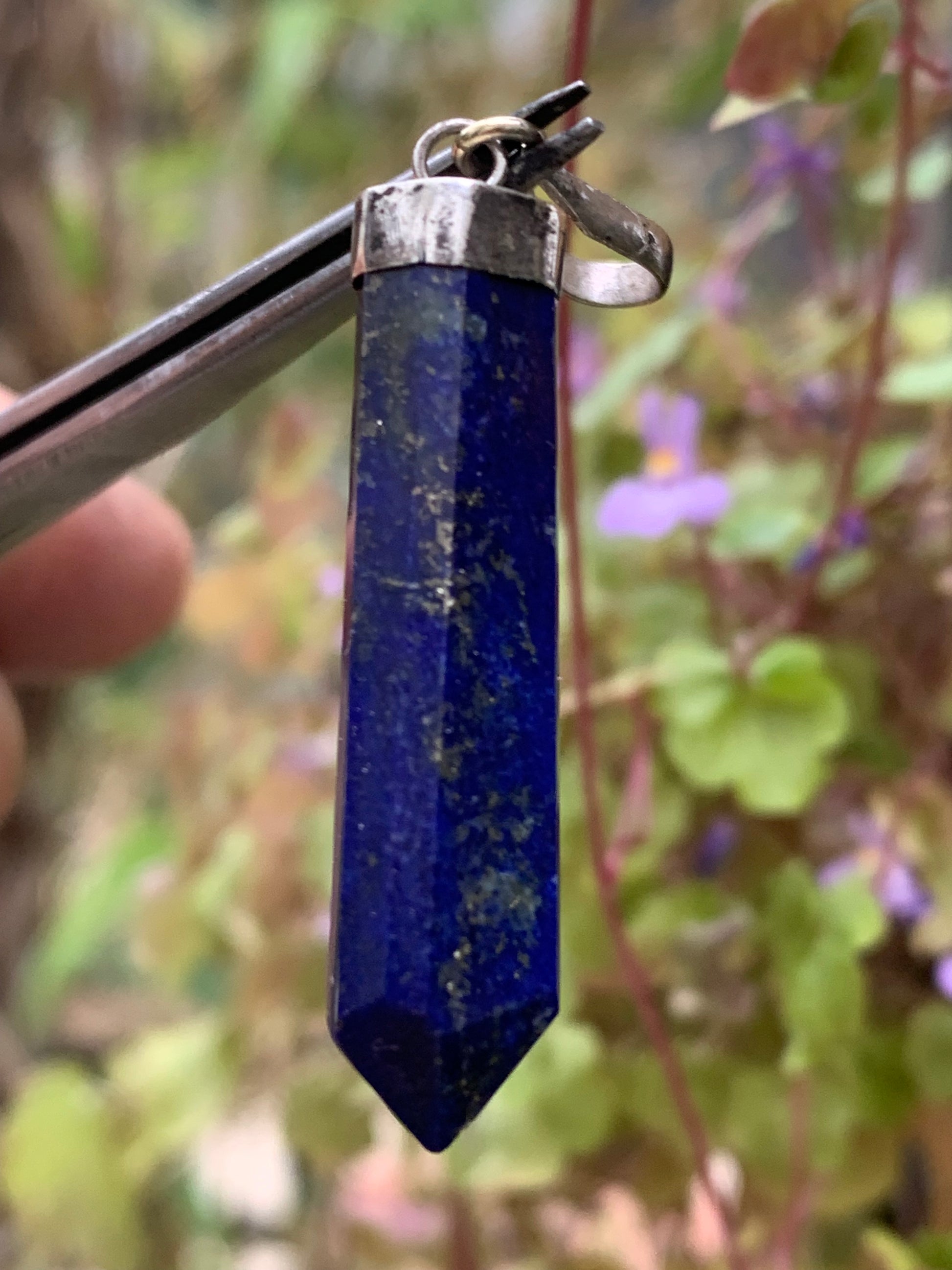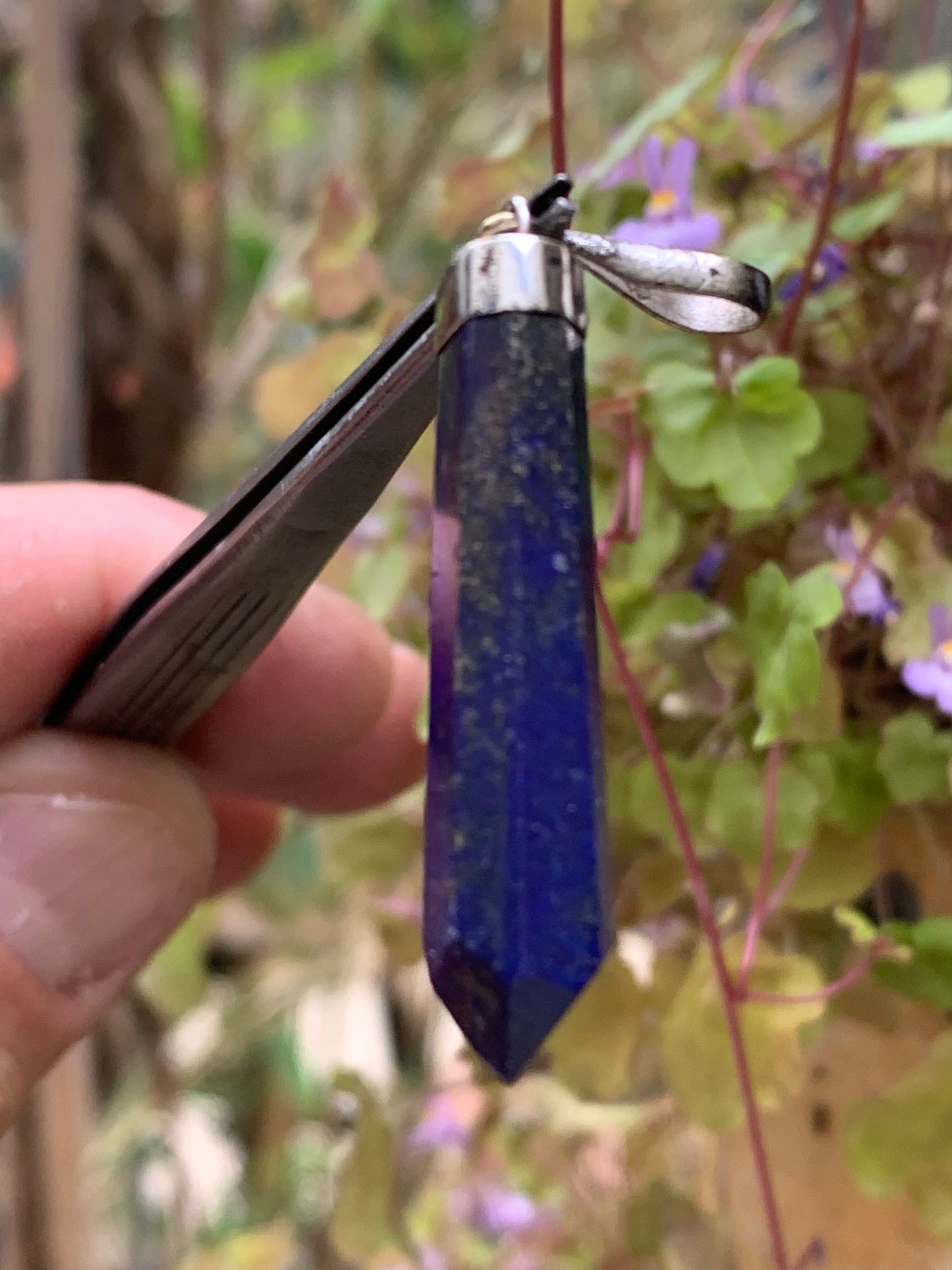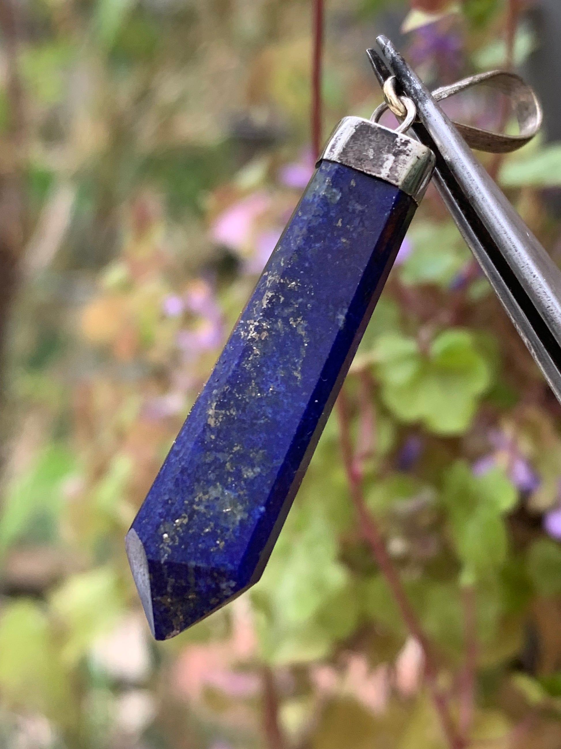 Lapis lazuli, pièce unique en Argent de 52 millimètres de hauteur x 9 millimètres de largeur x 7 d'épaisseur. Vendu avec un cordon réglable de couleur noire !