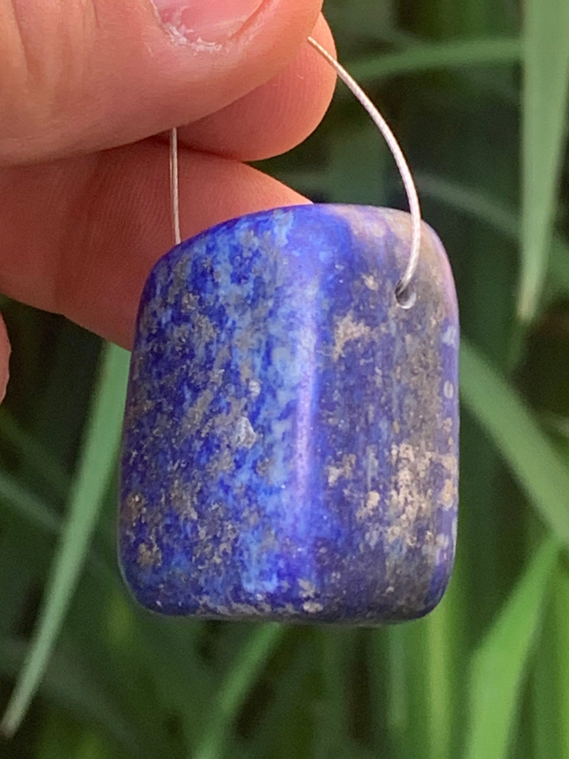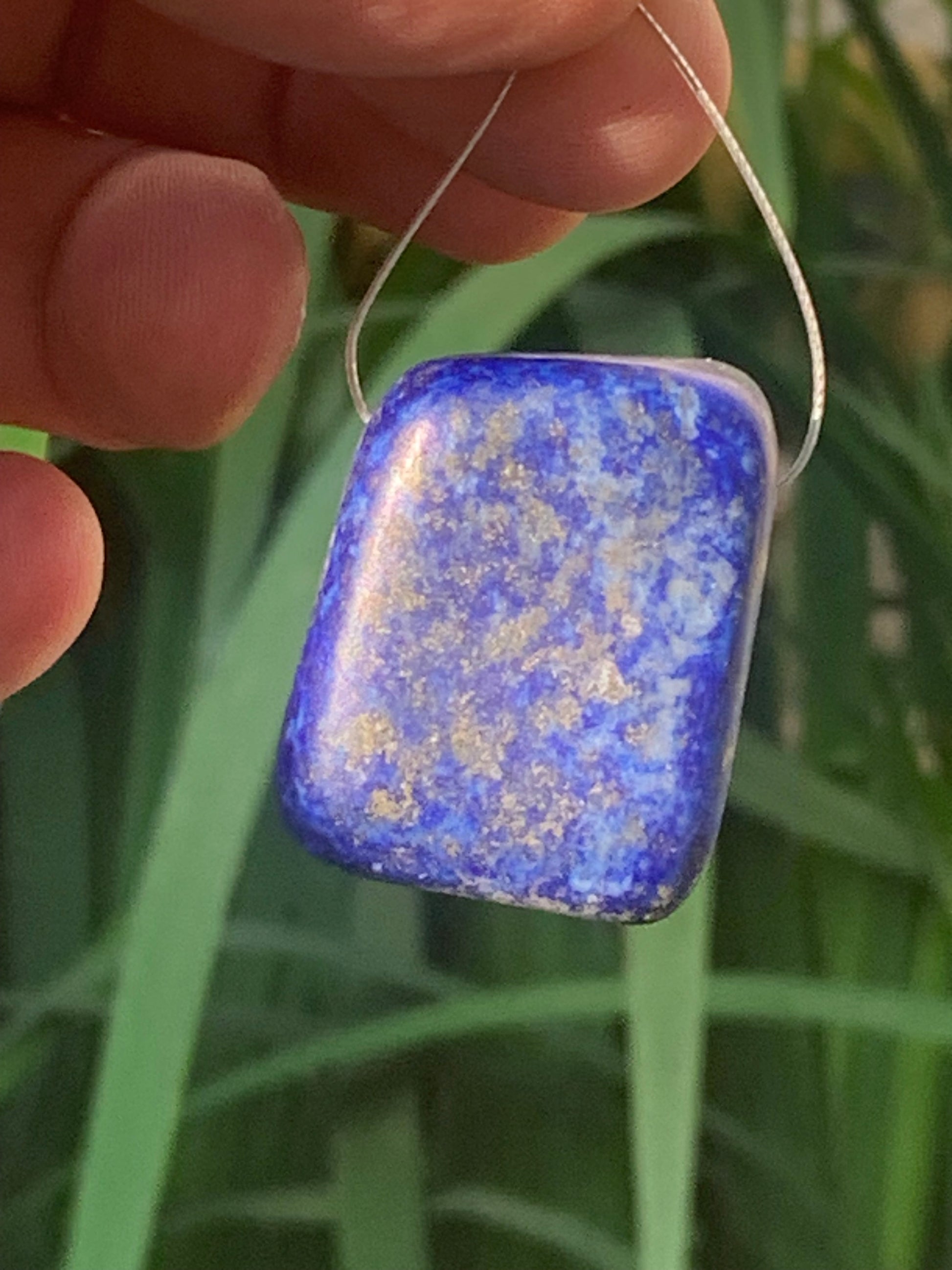 Lapis lazuli, pierre de finition polie et percée en latéral, qualité AA à AAA, 32mm x 26 x 20, parfait pour faire une composition de collier ou en pendentif !