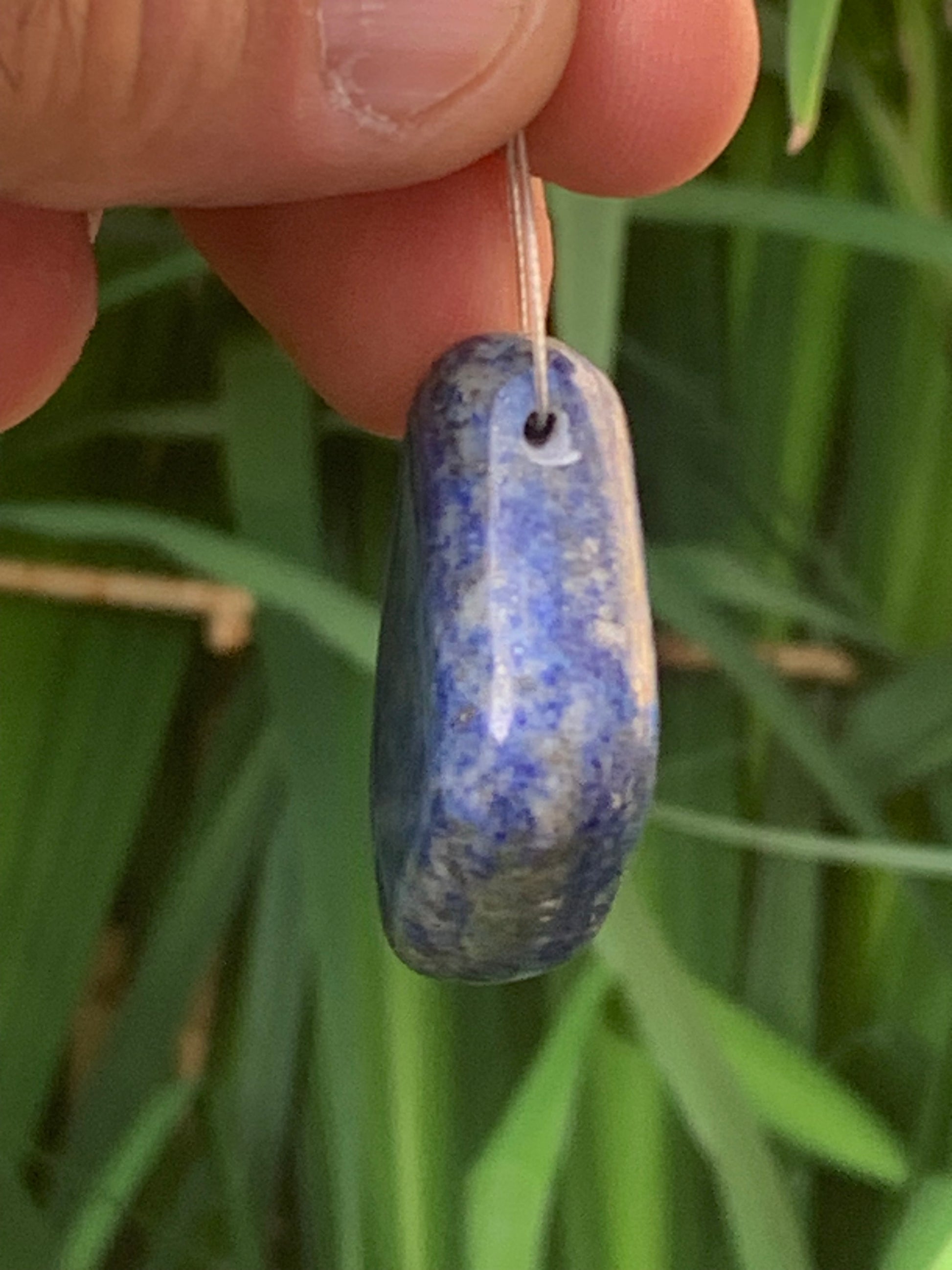 Lapis lazuli, pierre de finition polie et percée en latéral, qualité AA à AAA, 32mm x 30 x 13, parfait pour faire une composition de collier ou en pendentif !