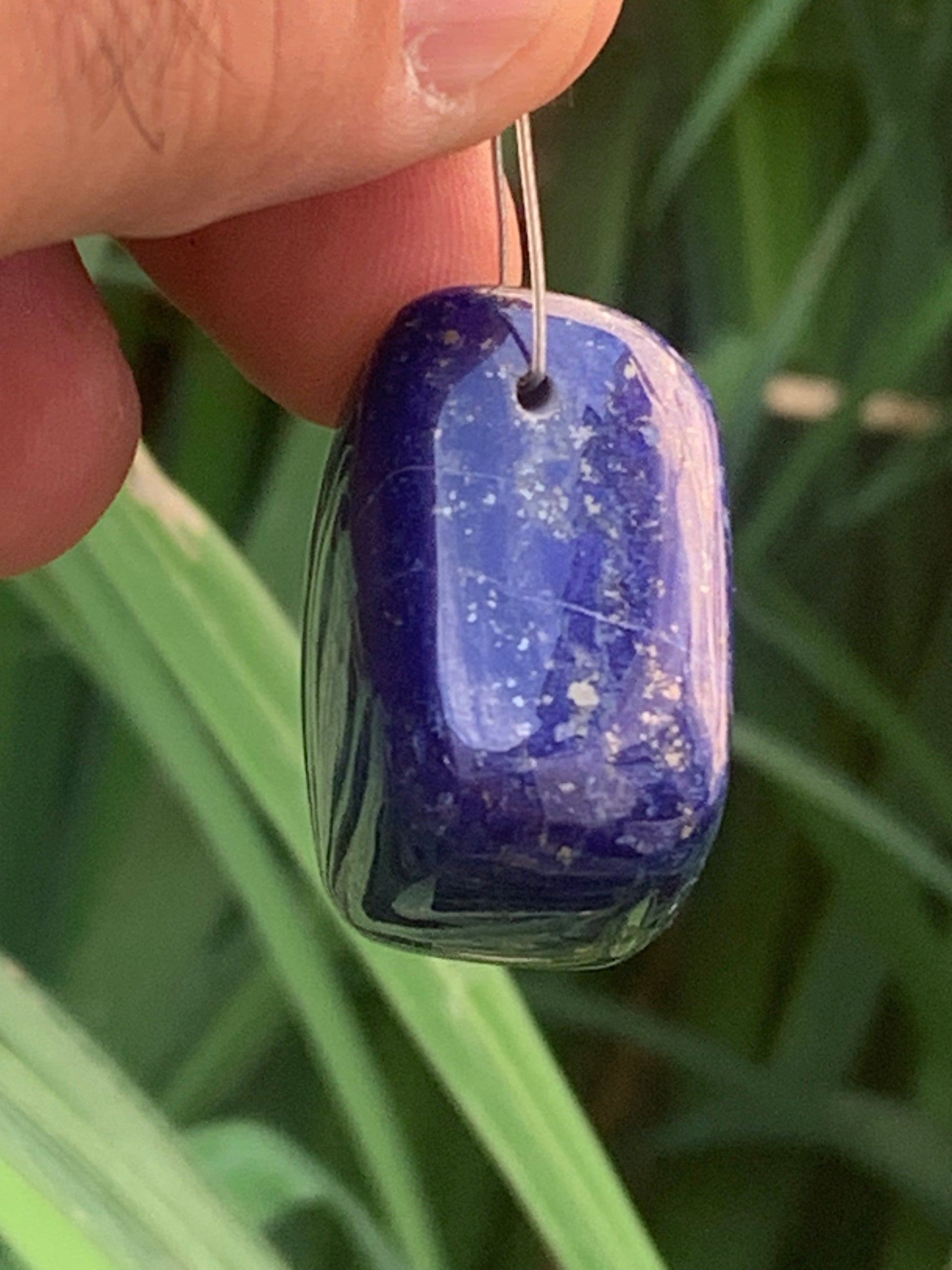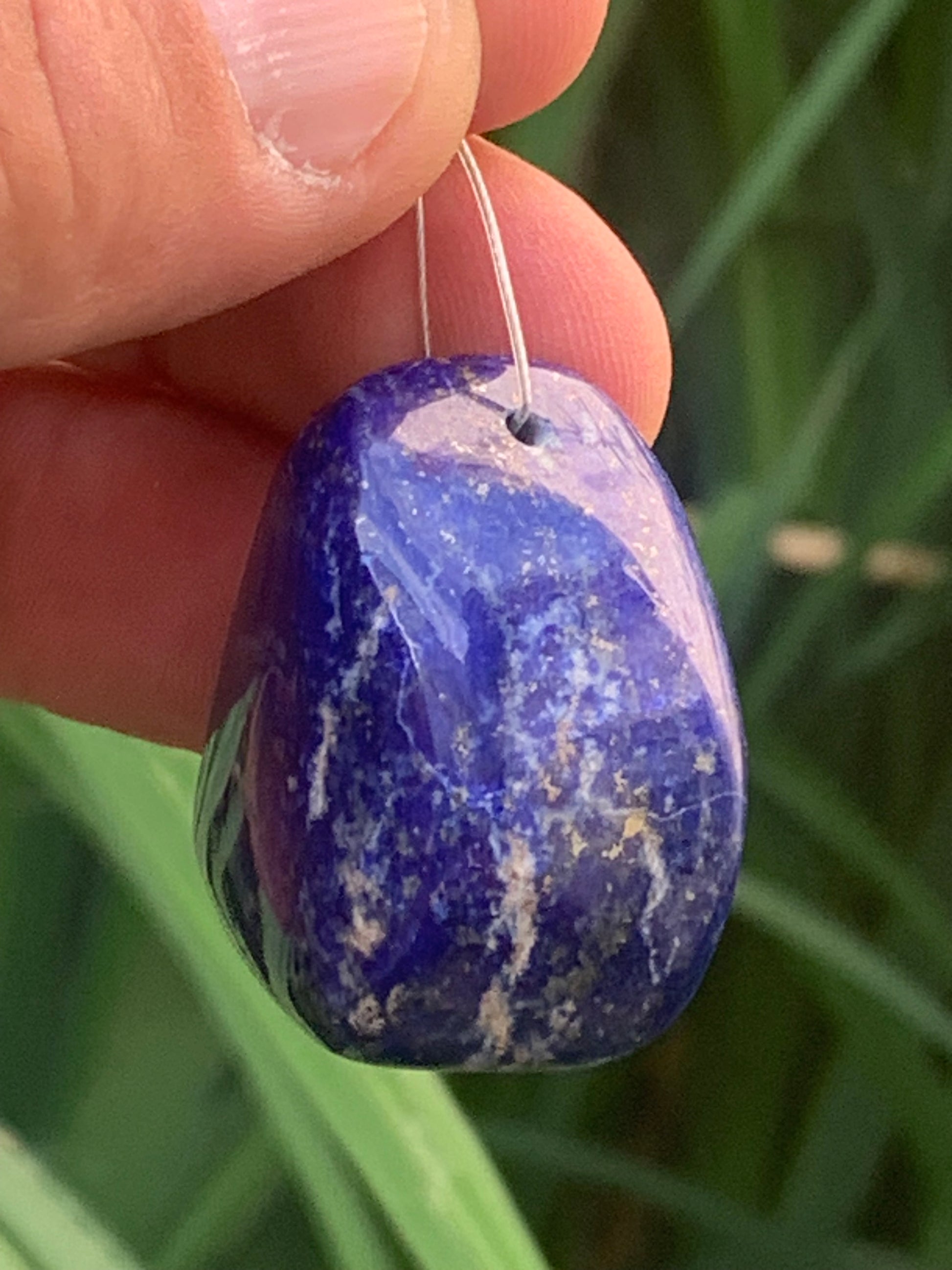 Lapis lazuli, pierre de finition polie et percée en latéral, qualité AA à AAA, 32mm x 30 x 25, parfait pour faire une composition de collier ou en pendentif !