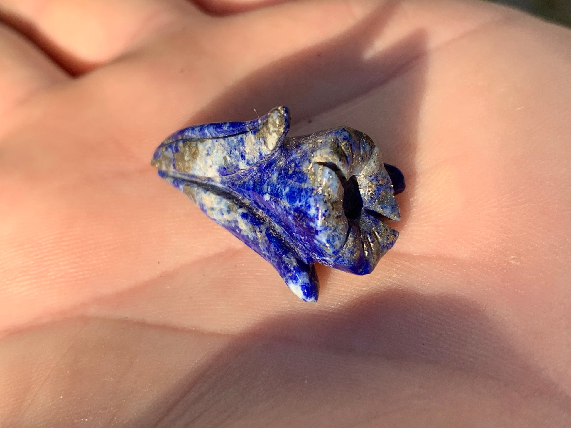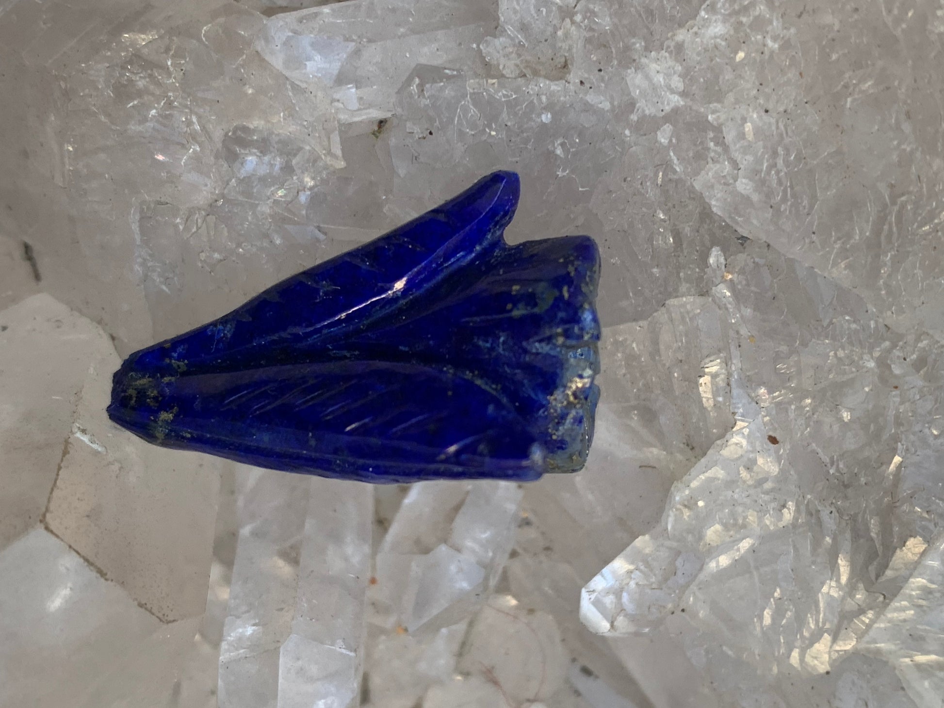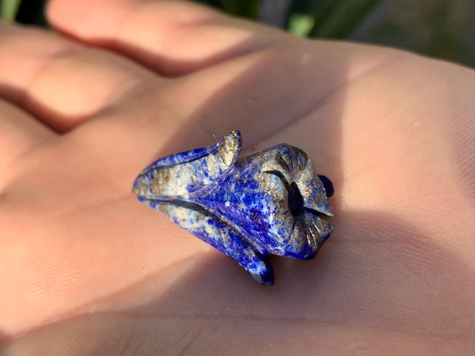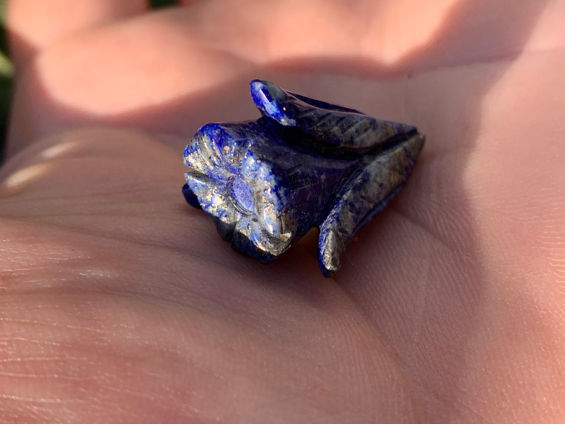 Lapis lazuli, pièce unique d'une fleur sculptée, qualité AA à AAA, 30mm x 18 de diamètre environ, parfait pour la bijouterie ou collection !