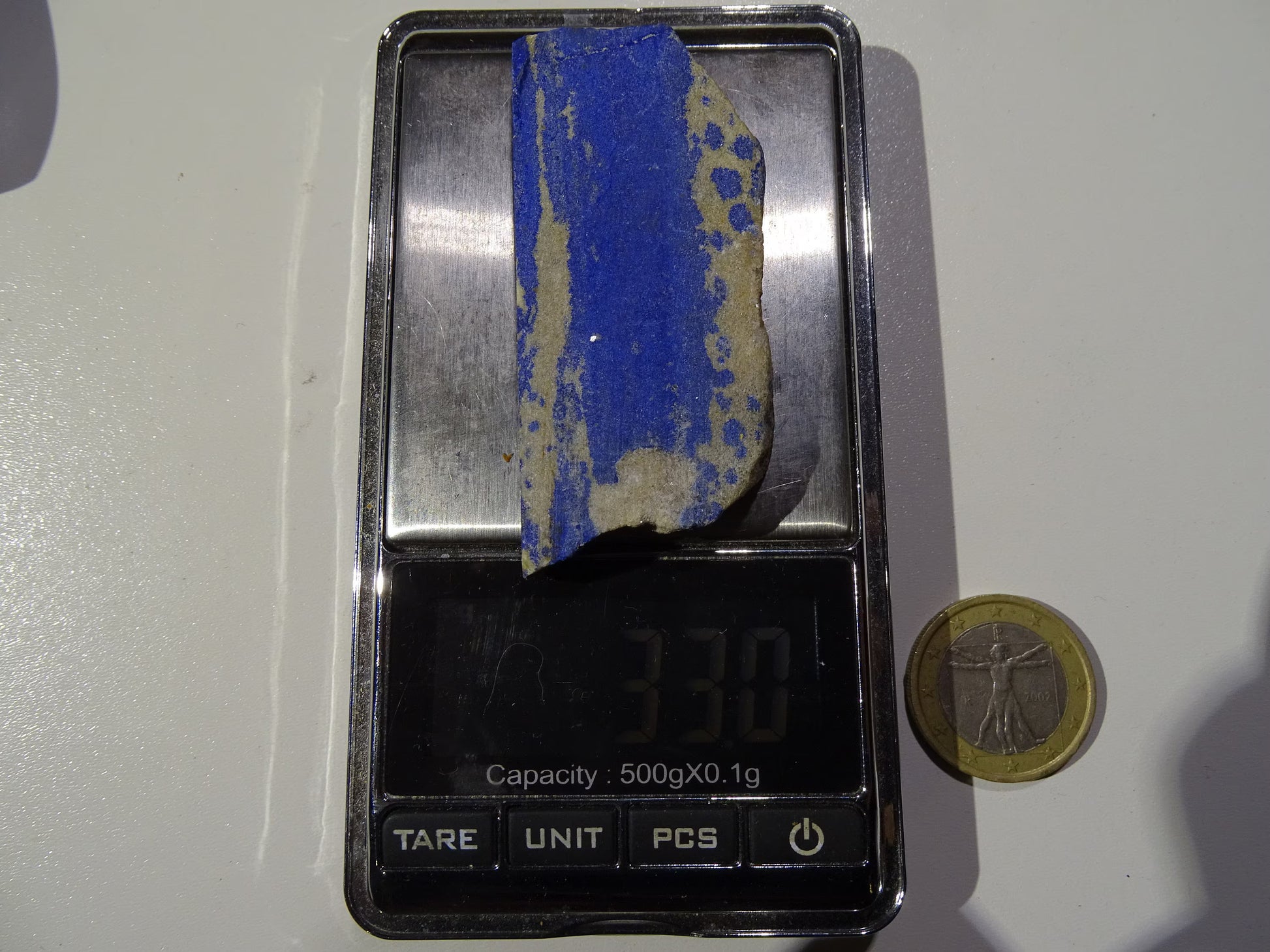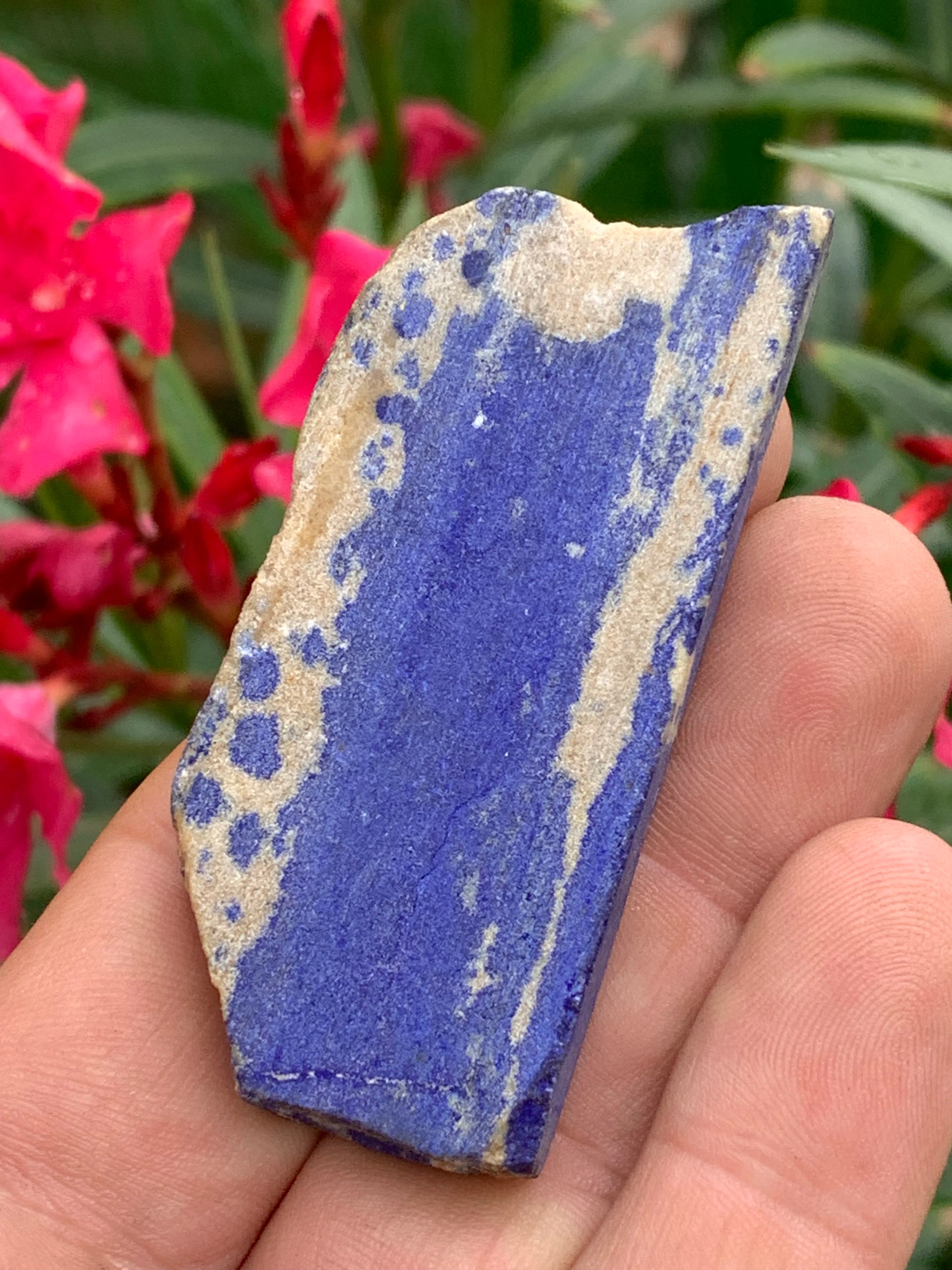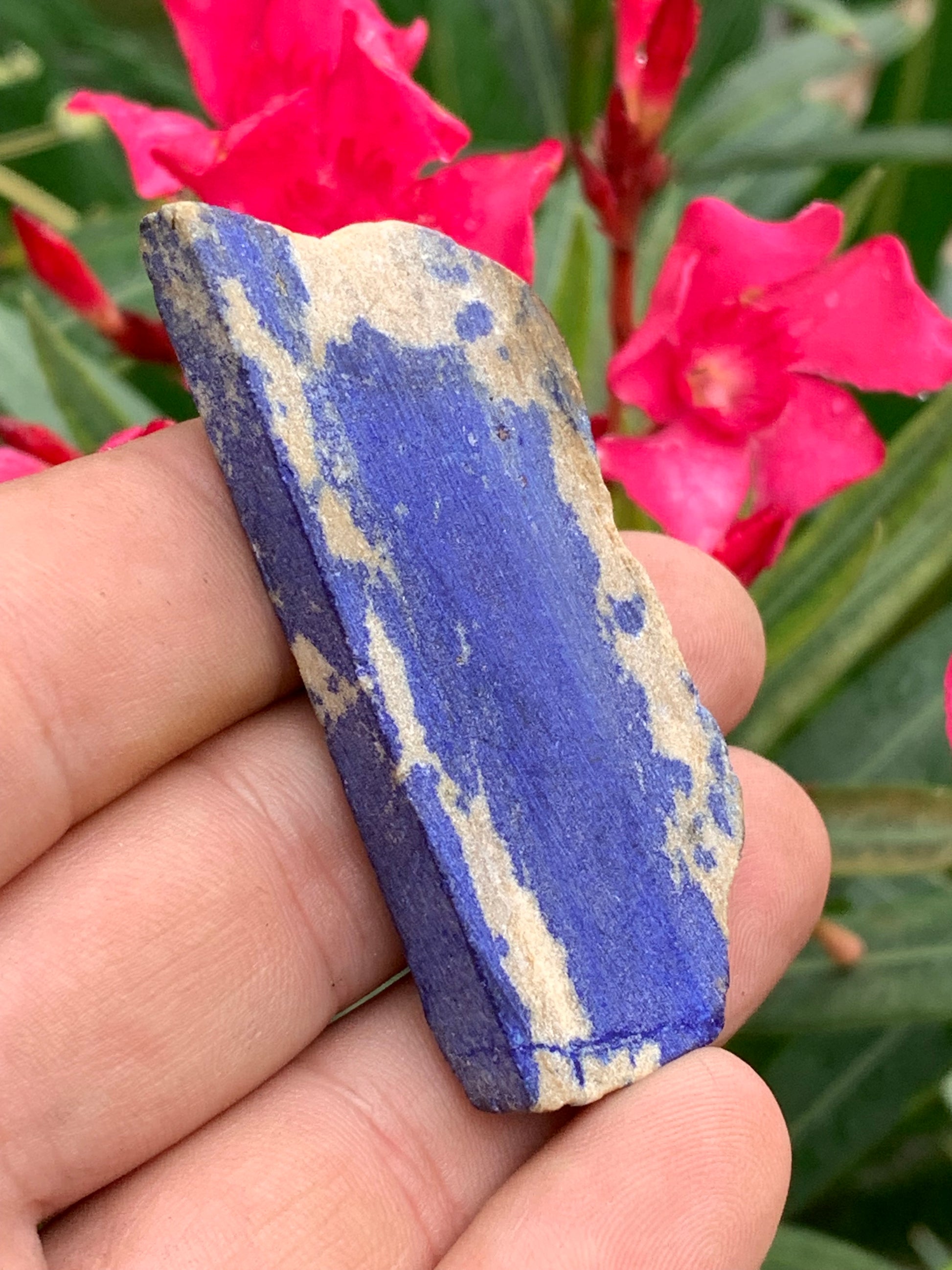 Lapis lazuli, tranche brute et natruelle de 65 x 30 x 9 mm - 33 grammes. Un bleu envoûtant et fascinant, pierre des pharaons !