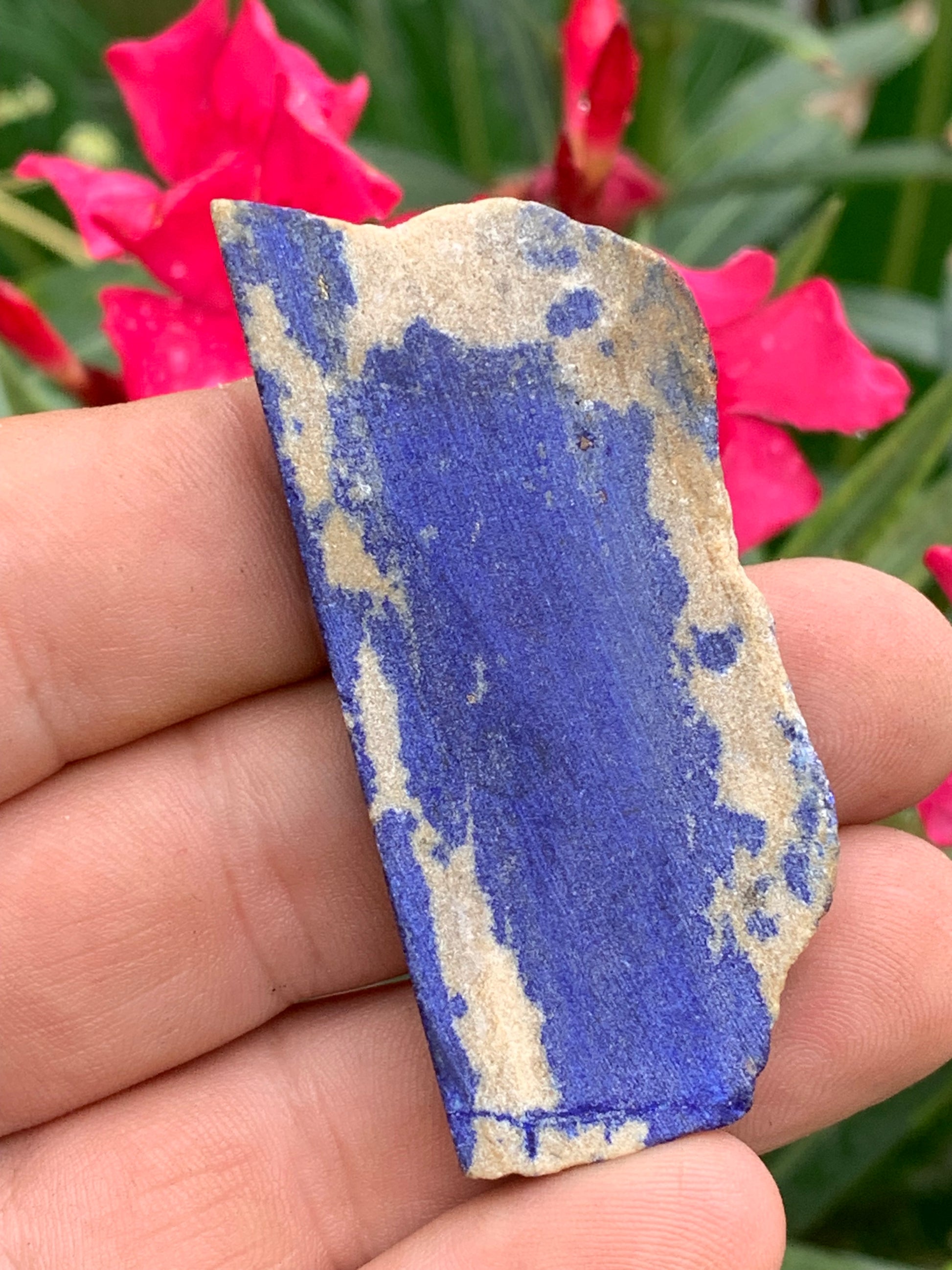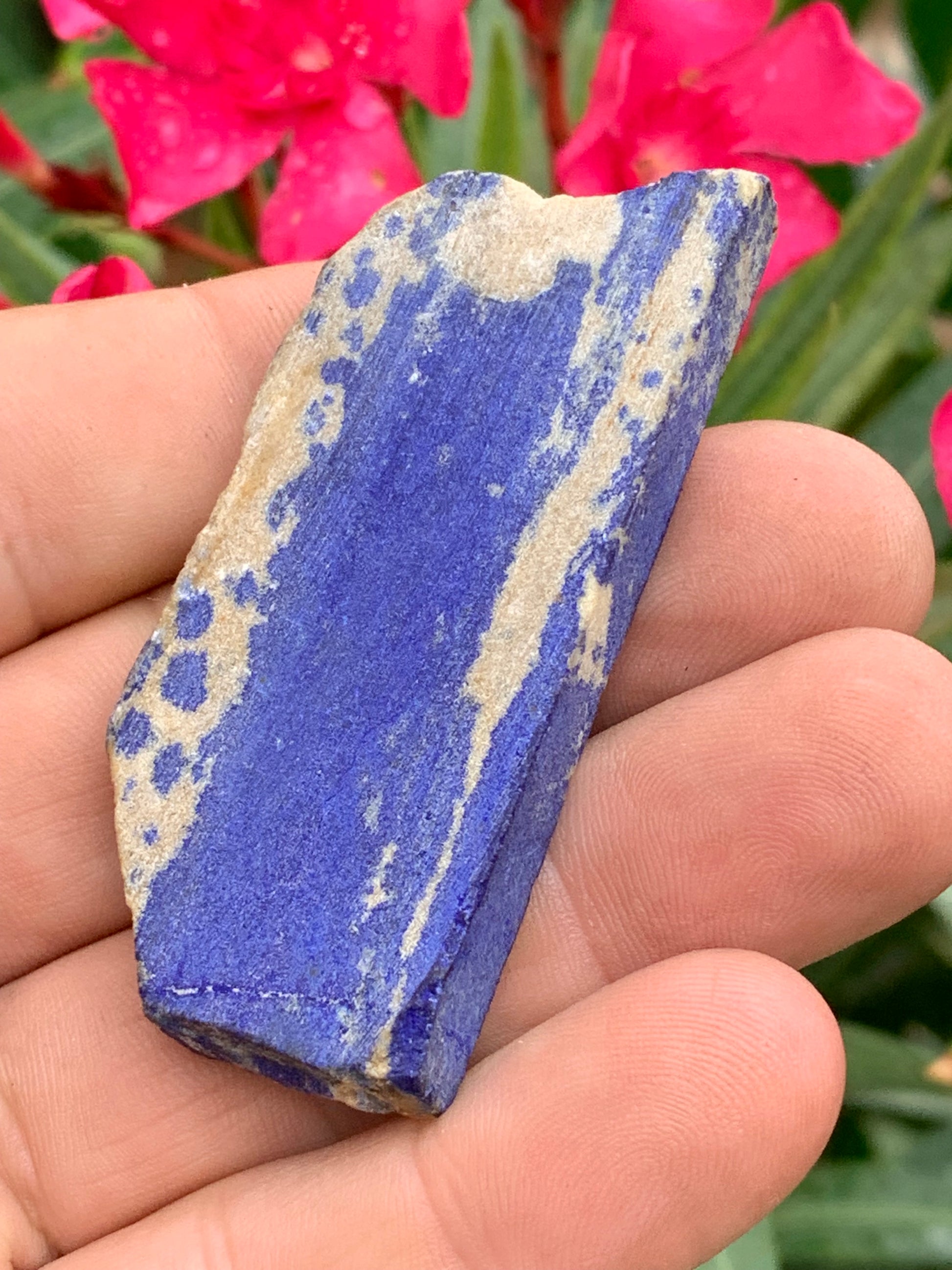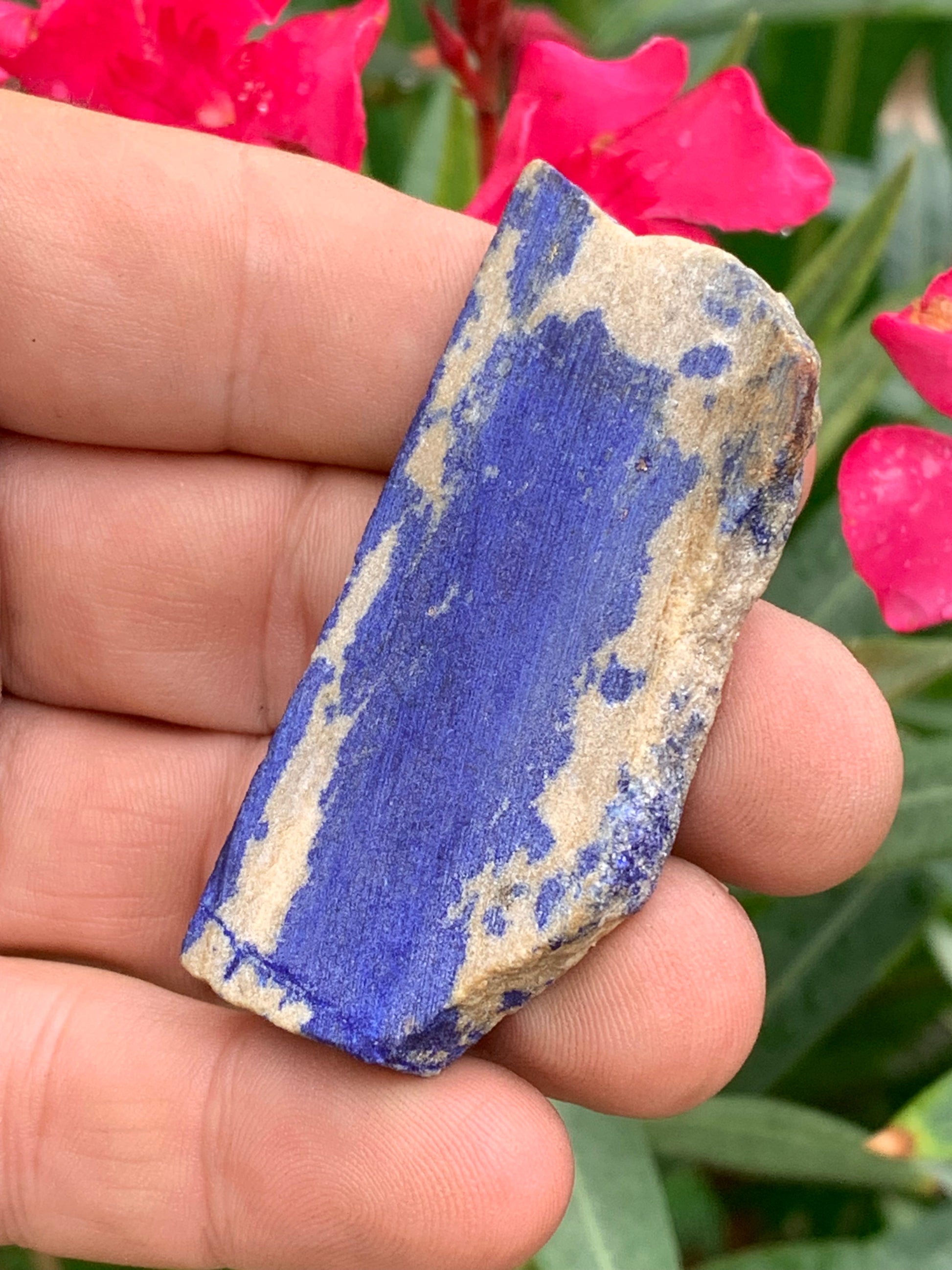 Lapis lazuli, tranche brute et natruelle de 65 x 30 x 9 mm - 33 grammes. Un bleu envoûtant et fascinant, pierre des pharaons !
