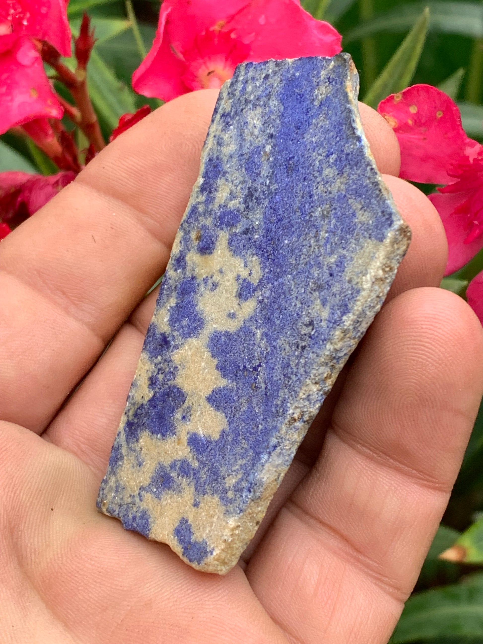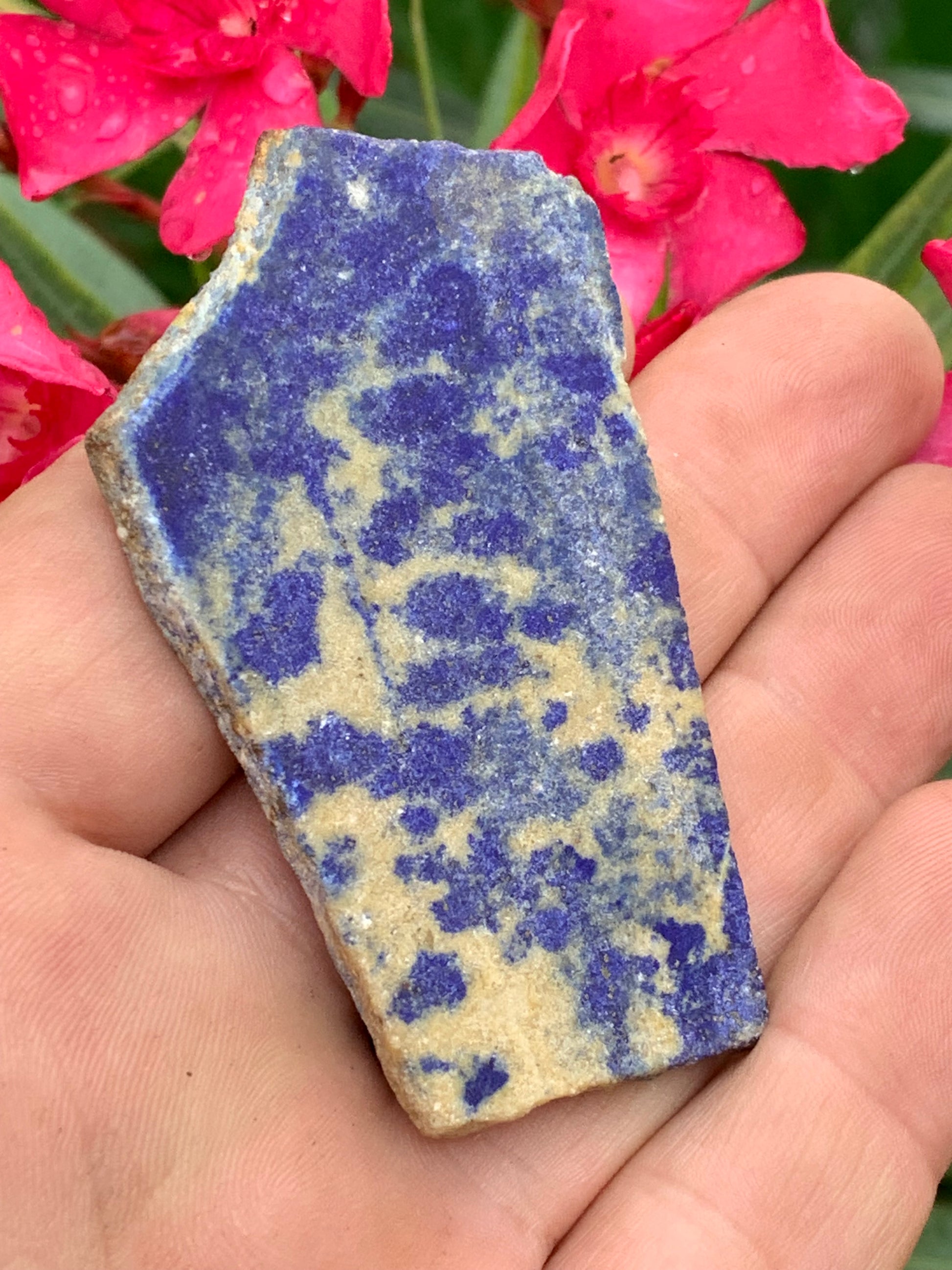 Lapis lazuli, tranche brute et natruelle de 70 x 42 x 5 mm - 29,5 grammes. Un bleu envoûtant et fascinant, pierre des pharaons !
