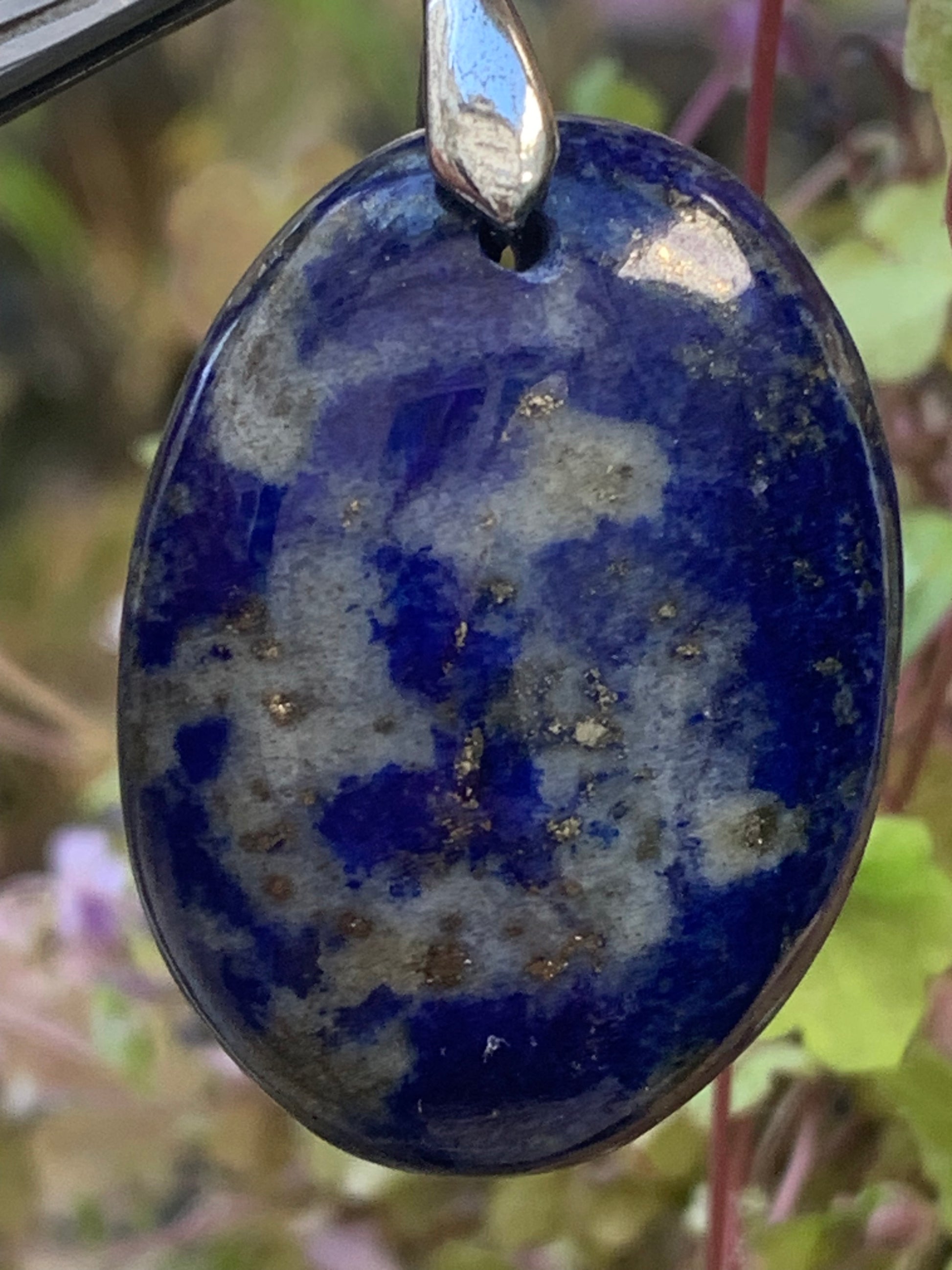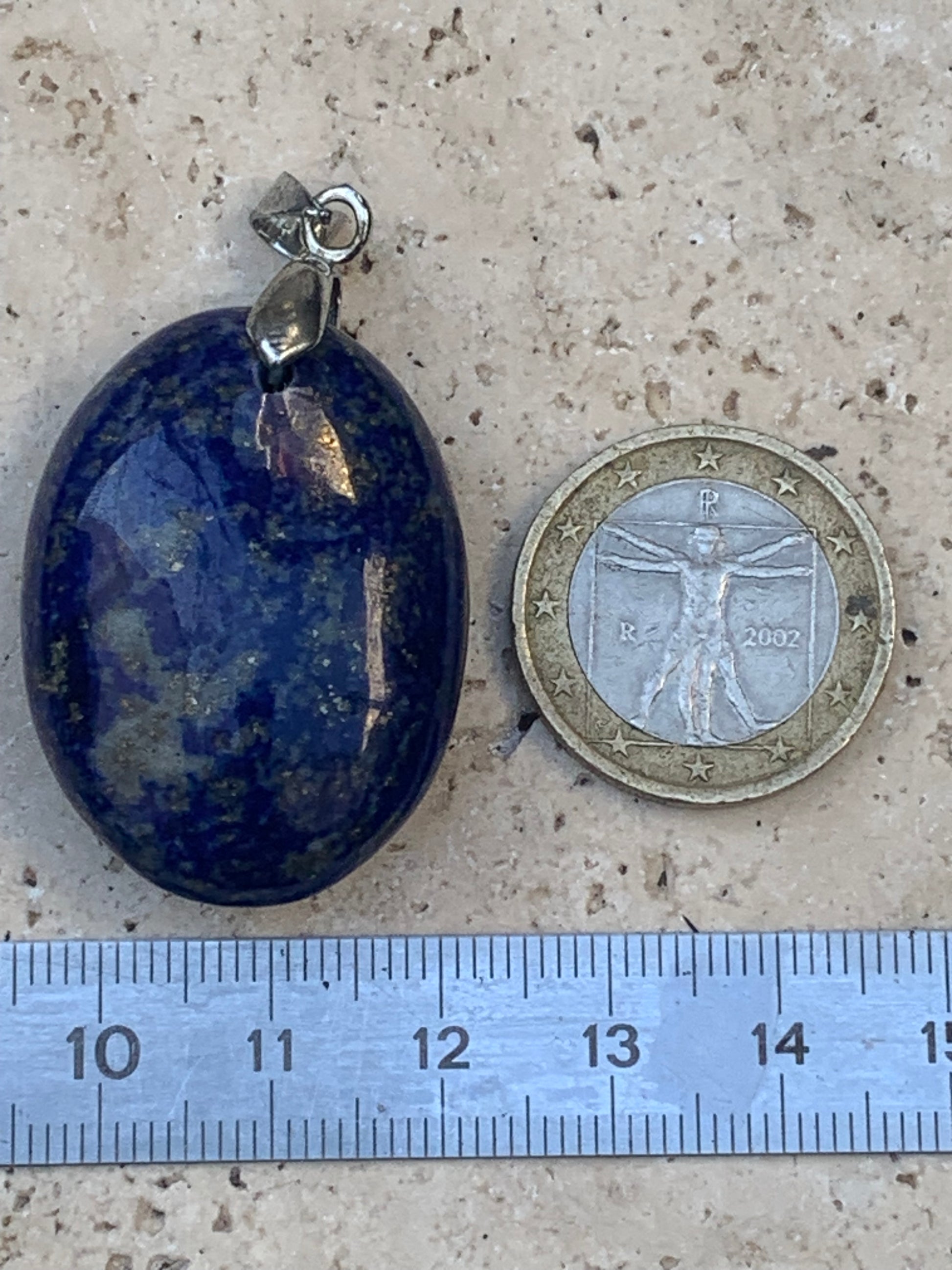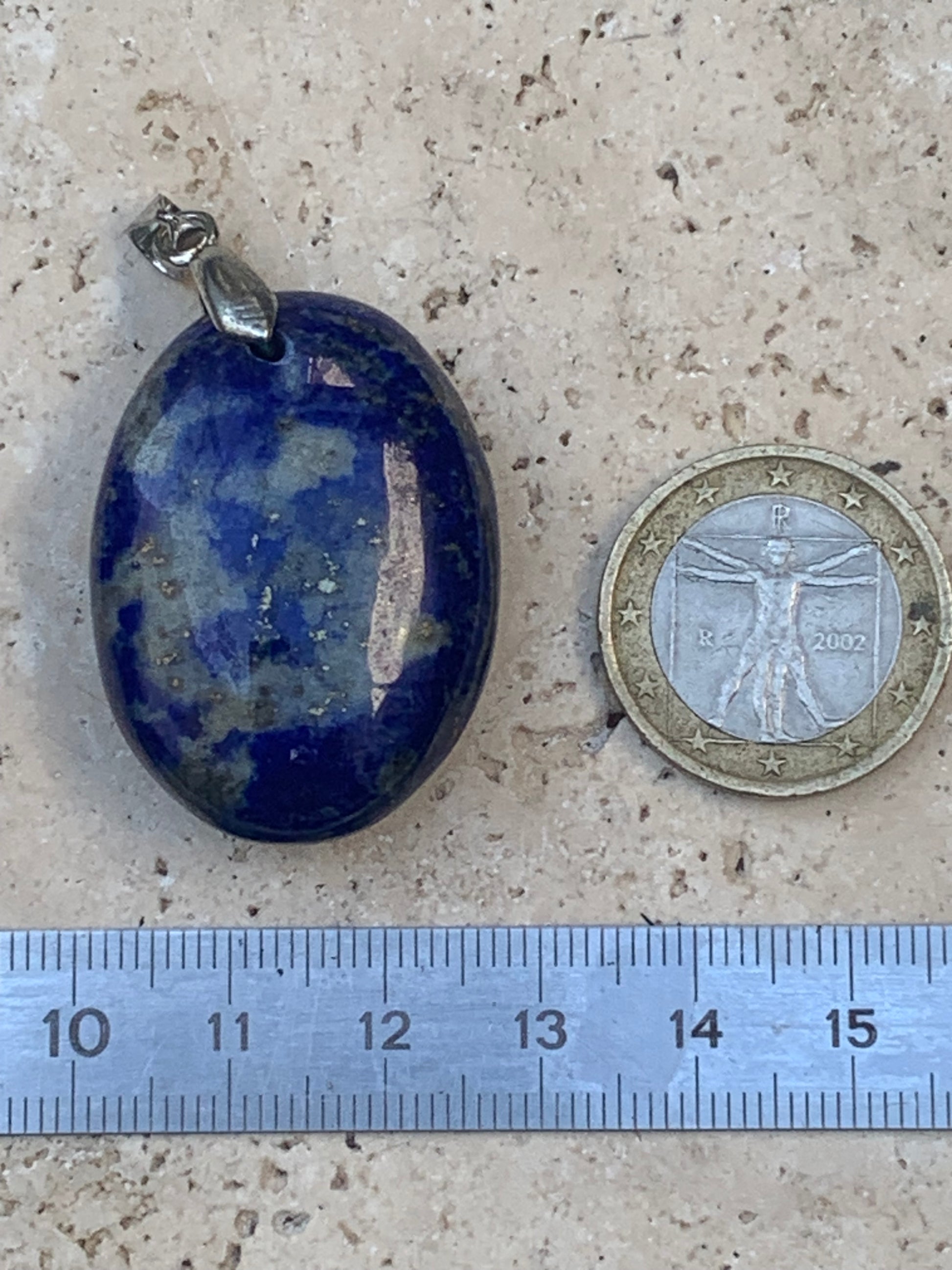 Lapis lazuli, superbe pendentif de 48 millimètres de hauteur x 26 millimètres de largeur x 14 d'épaisseur. Vendu avec un cordon réglable de couleur noire !