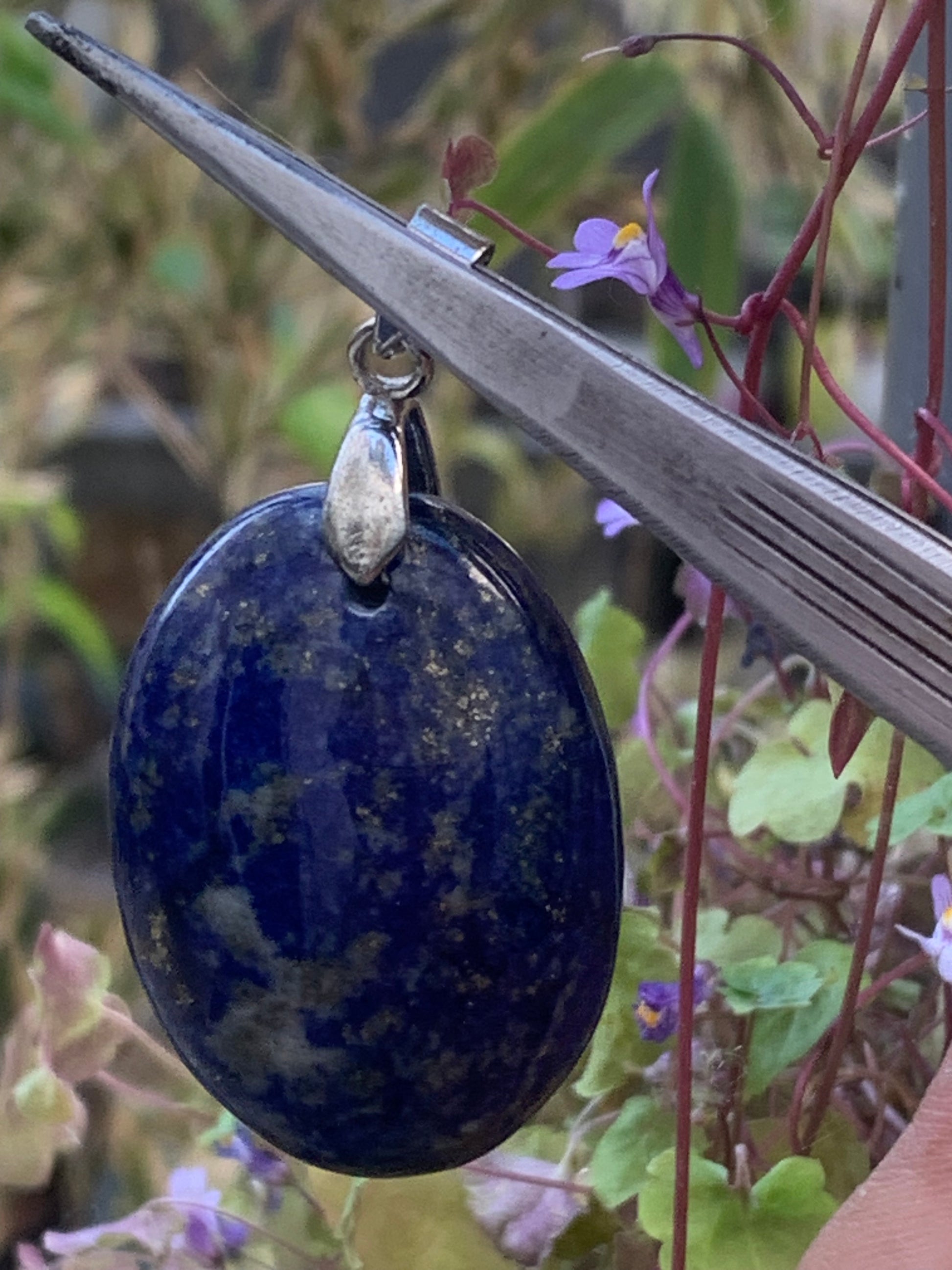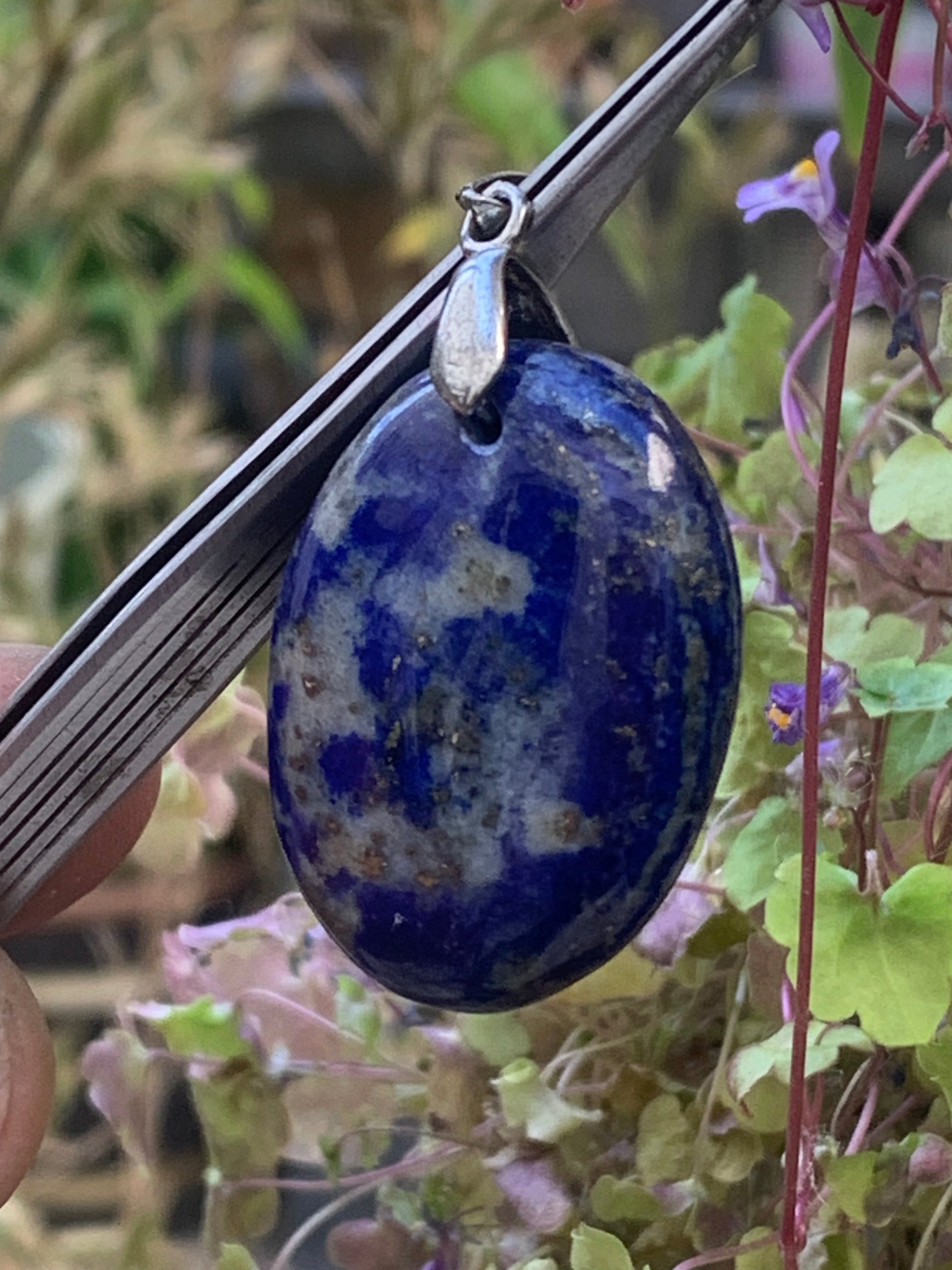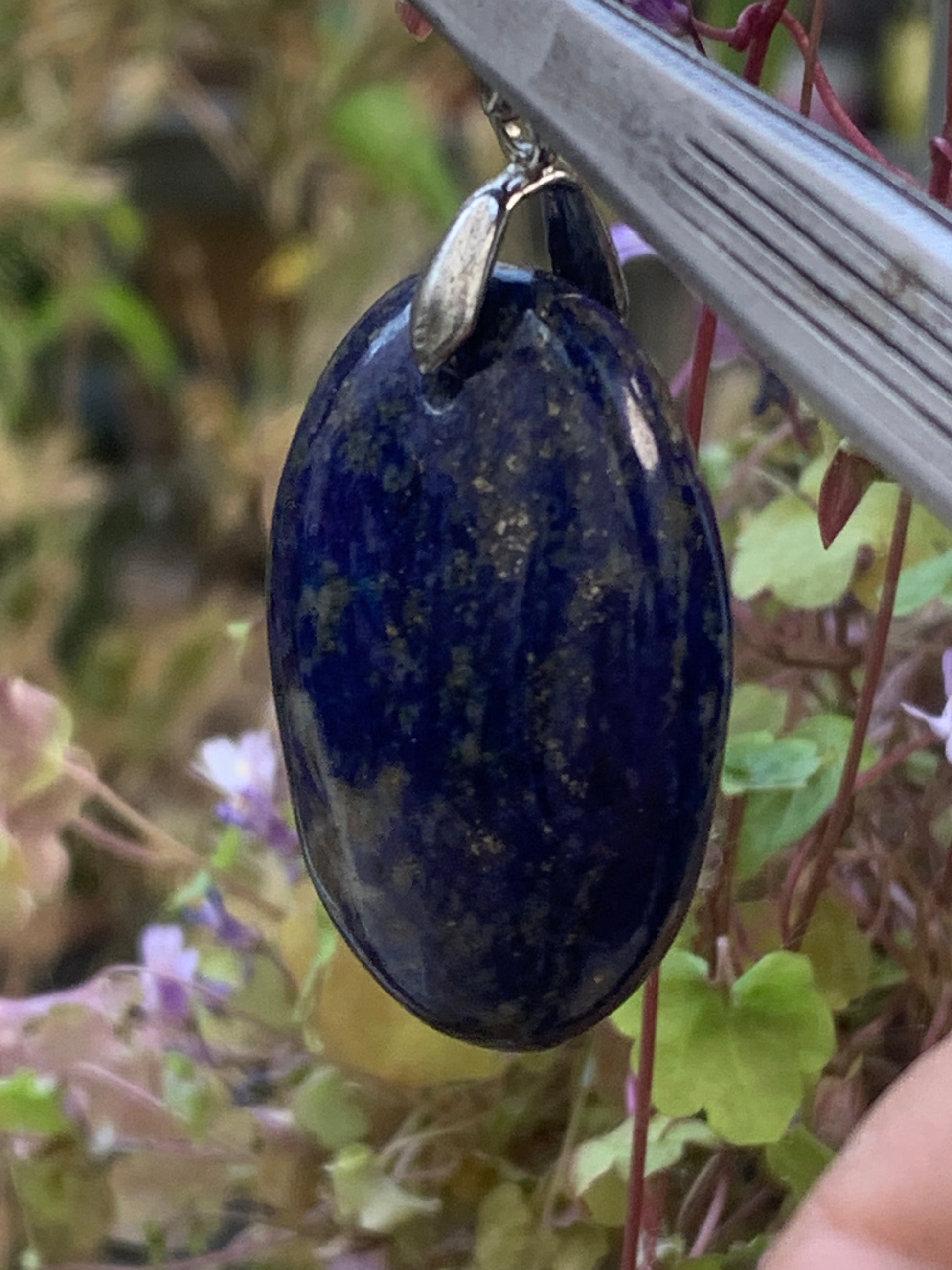Lapis lazuli, superbe pendentif de 48 millimètres de hauteur x 26 millimètres de largeur x 14 d'épaisseur. Vendu avec un cordon réglable de couleur noire !