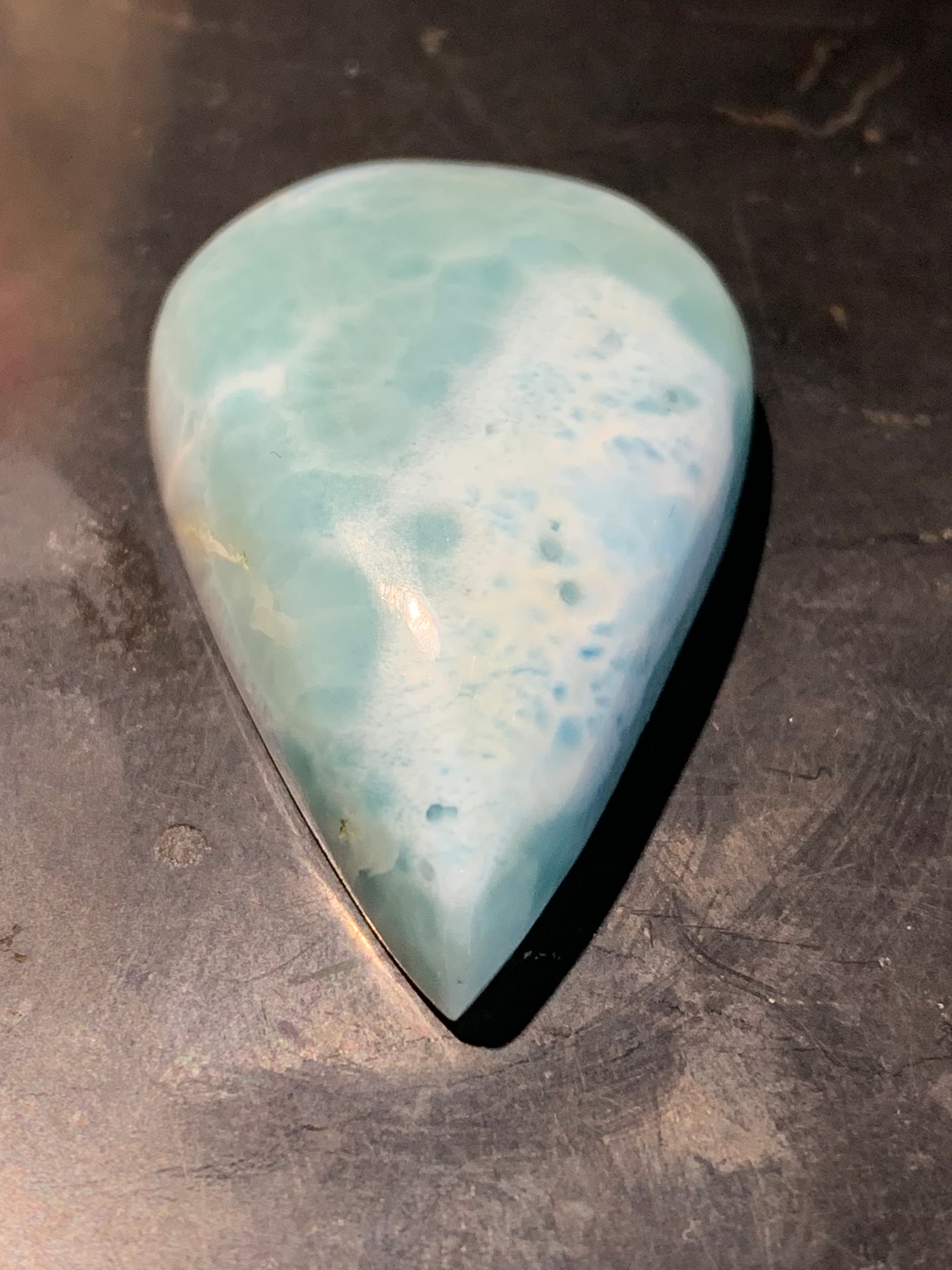 Larimar – Cabochon en forme de goutte de 36 × 24 × 9 mm - 11,2 gr. - Nuances naturelles magnifiques, parfait pour bijoux raffinés, collectionneur passionné ou exposition