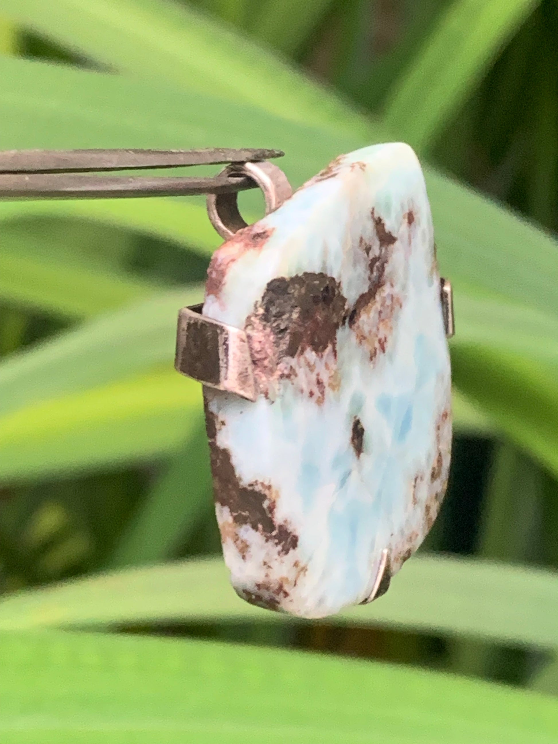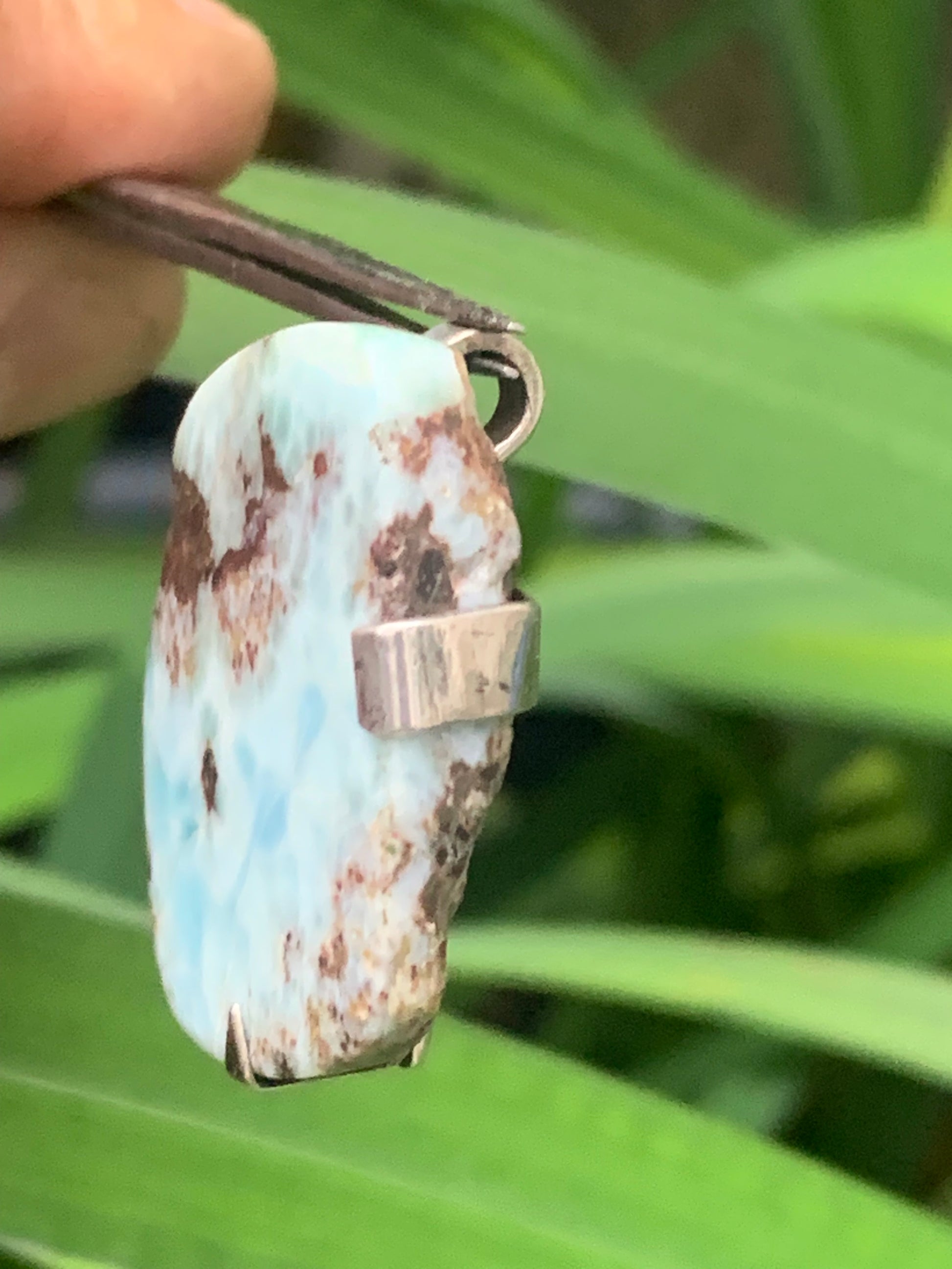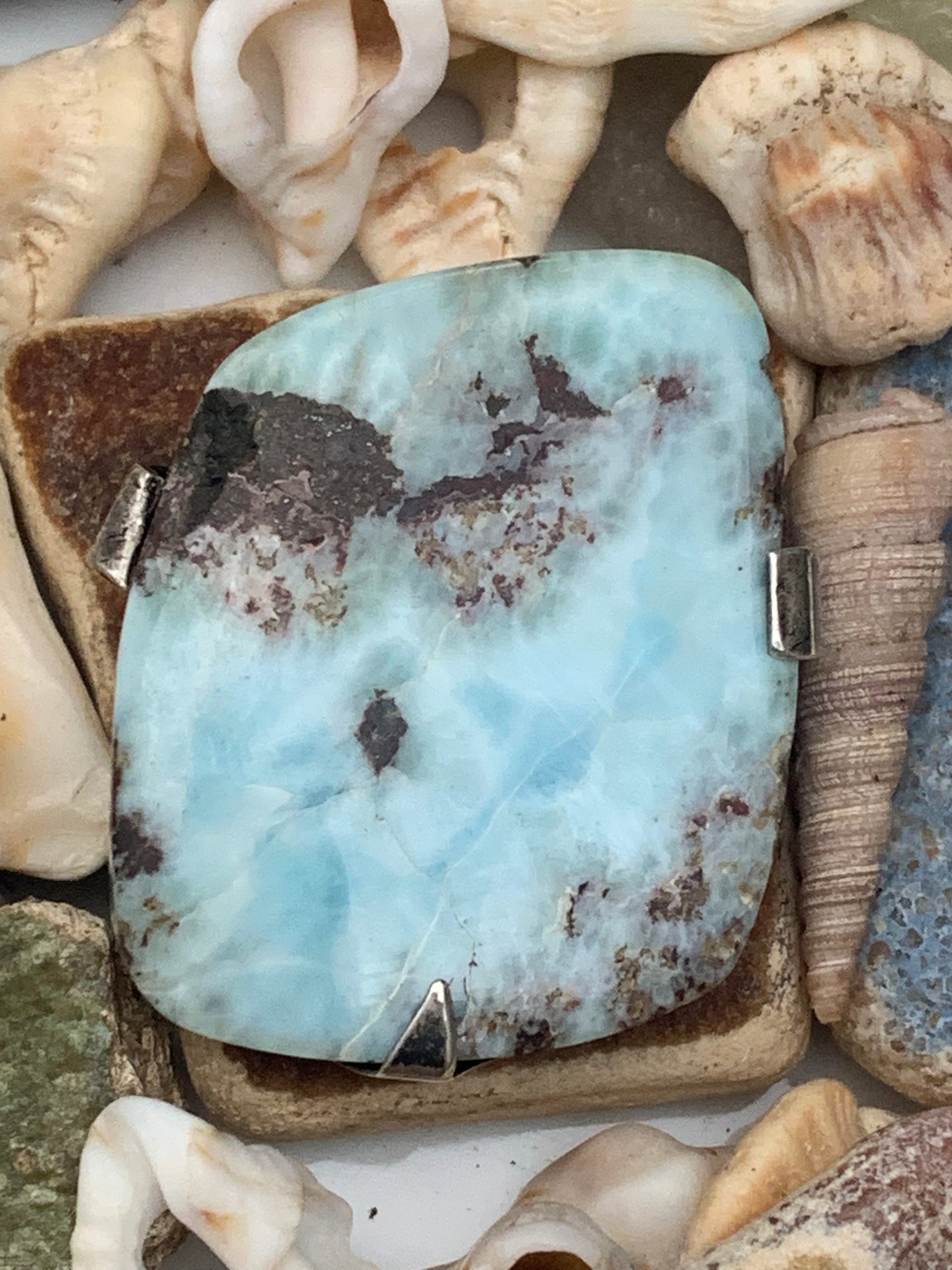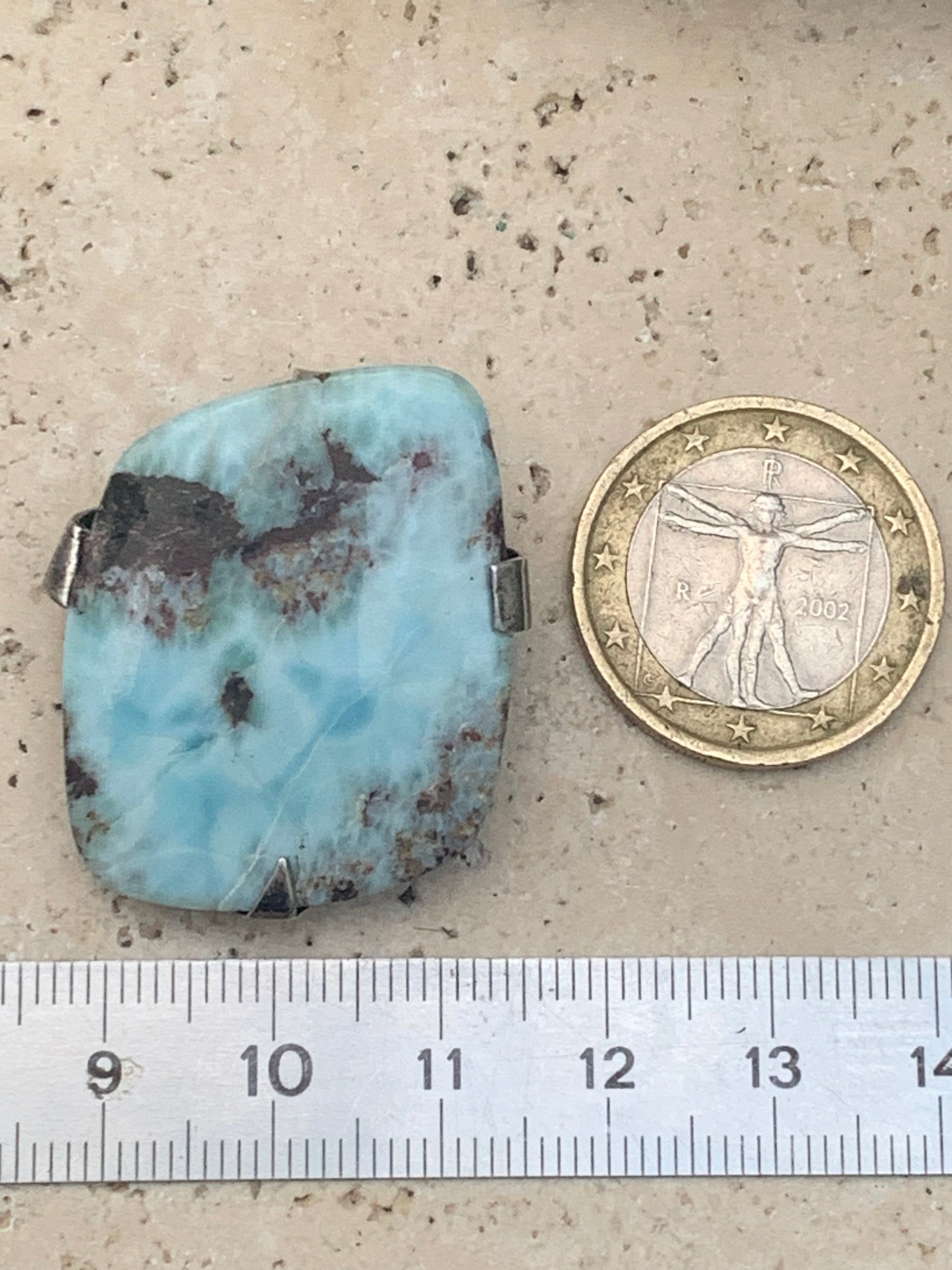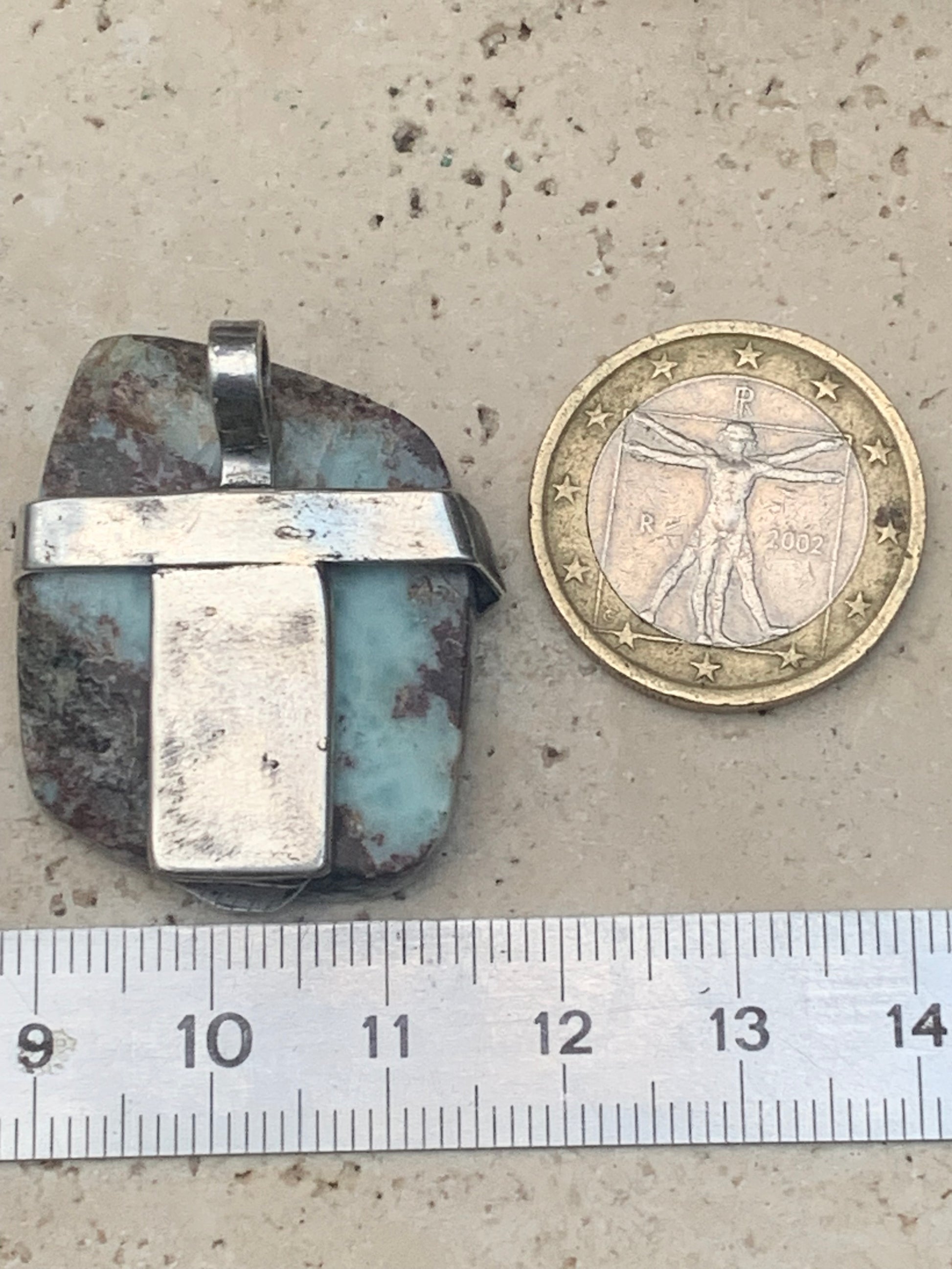Larimar, pendentif en Argent de 32 mm de hauteur x 27 de largeur x 8 d'épaisseur. Vendu avec cordon réglable de couleur noire offert !