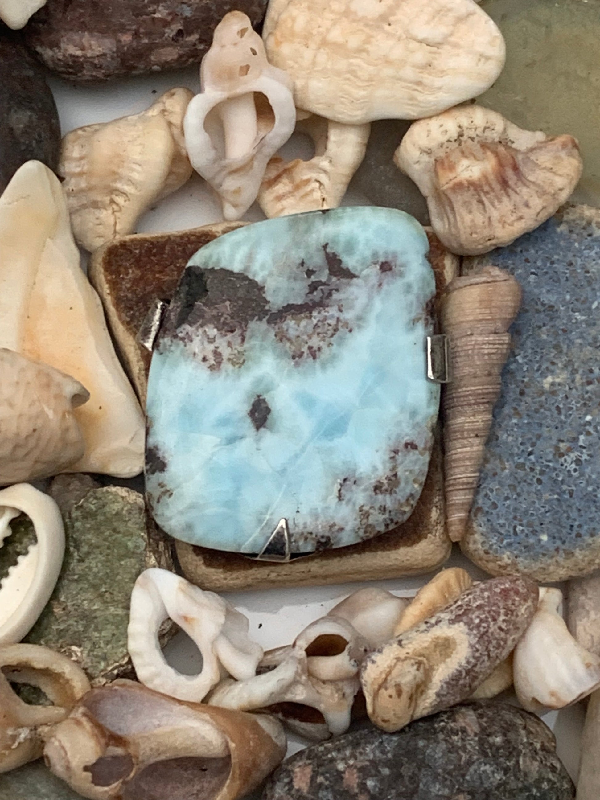 Petite histoire / particularité | Découvert exclusivement en République Dominicaine, le Larimar est parfois appelé « pierre Atlantide » ou « pierre du dauphin ». Son nom combine « Larissa » (fille du découvreur) et « mar » (mer en espagnol). Elle évoque les vagues et l’énergie de l’océan, favorisant paix intérieure et connexion à la nature. |
