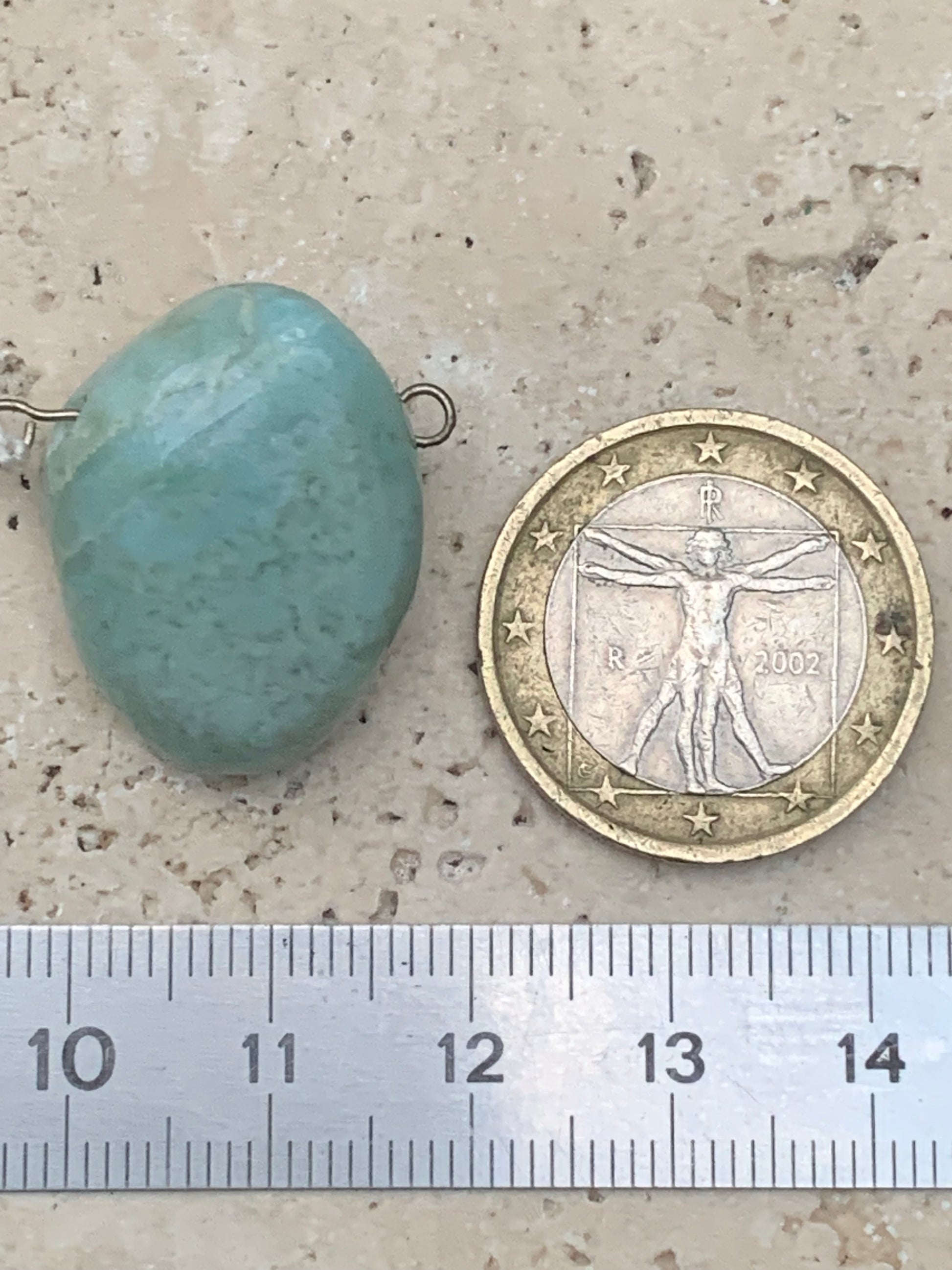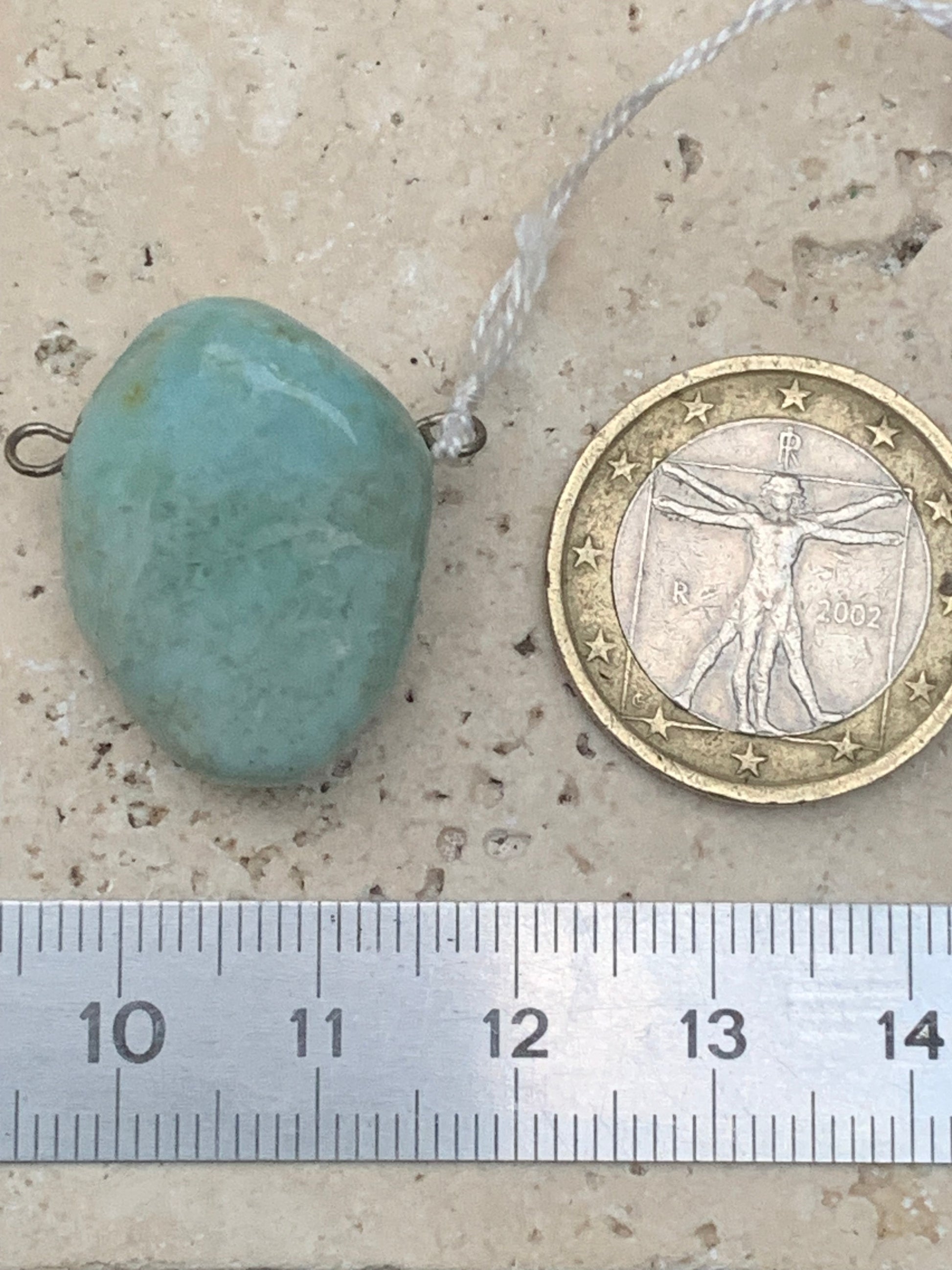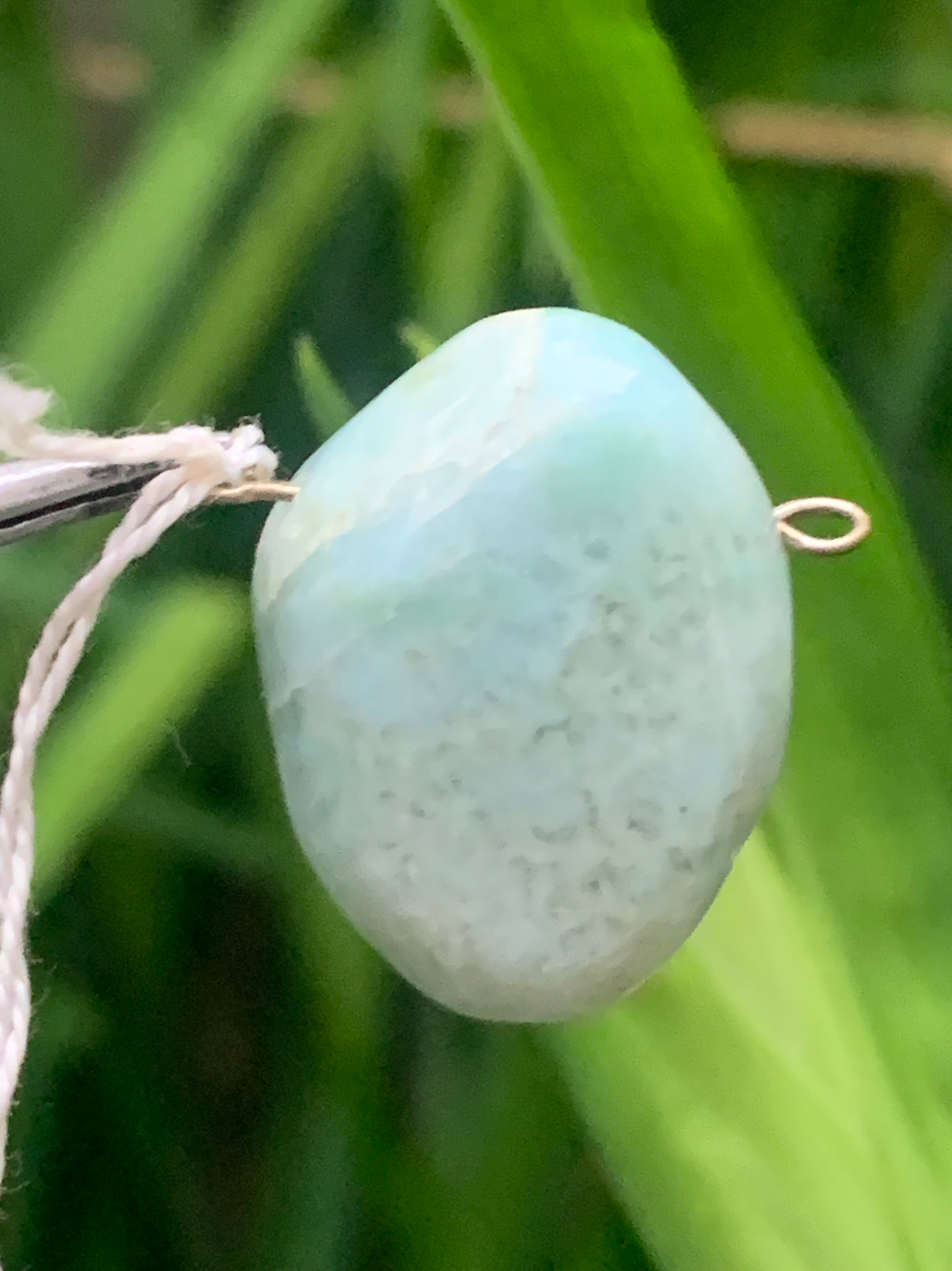 Larimar, pendentif en pierre naturelle à percement latéral. De 24 mm de hauteur x 18 de largeur x 13 d'épaisseur. Option chainette !