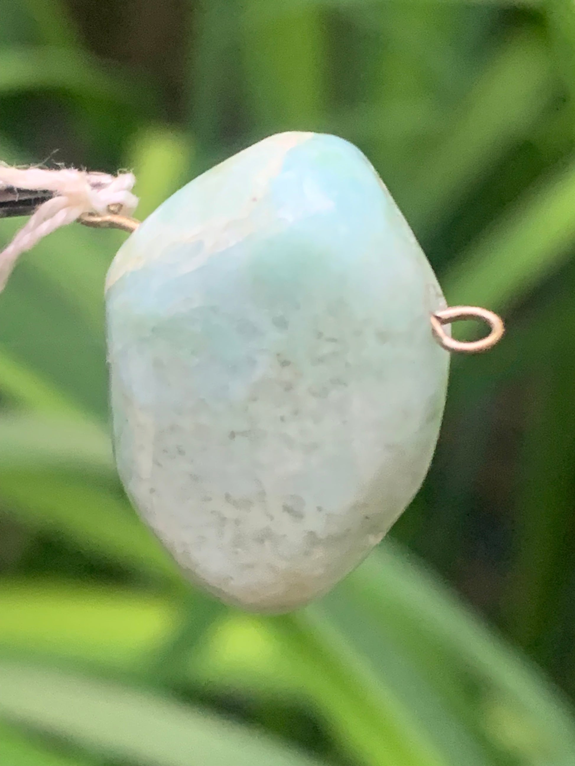Petite histoire / particularité | Découvert exclusivement en République Dominicaine, le Larimar est parfois appelé « pierre Atlantide » ou « pierre du dauphin ». Son nom combine « Larissa » (fille du découvreur) et « mar » (mer en espagnol). Elle évoque les vagues et l’énergie de l’océan, favorisant paix intérieure et connexion à la nature. |