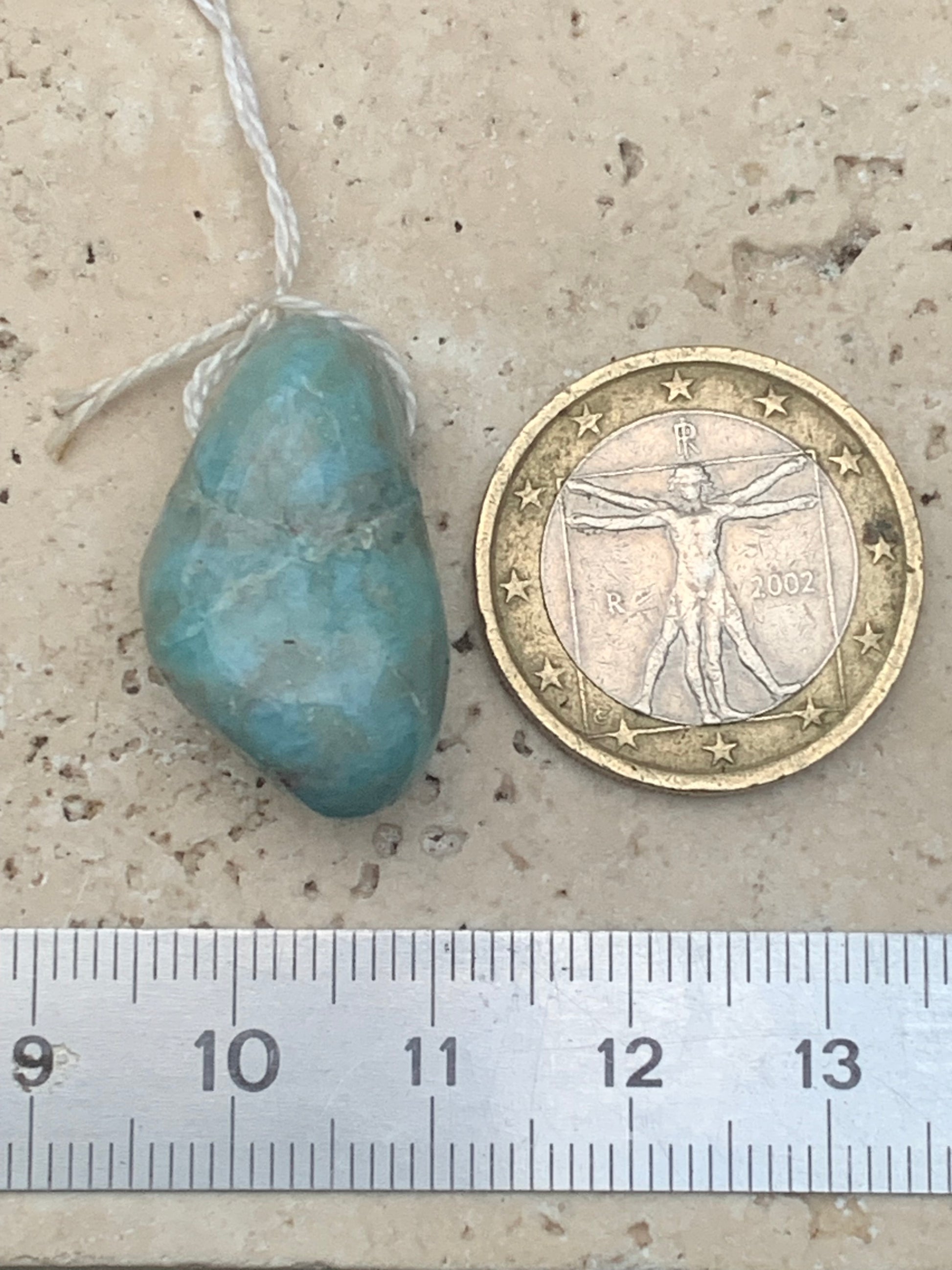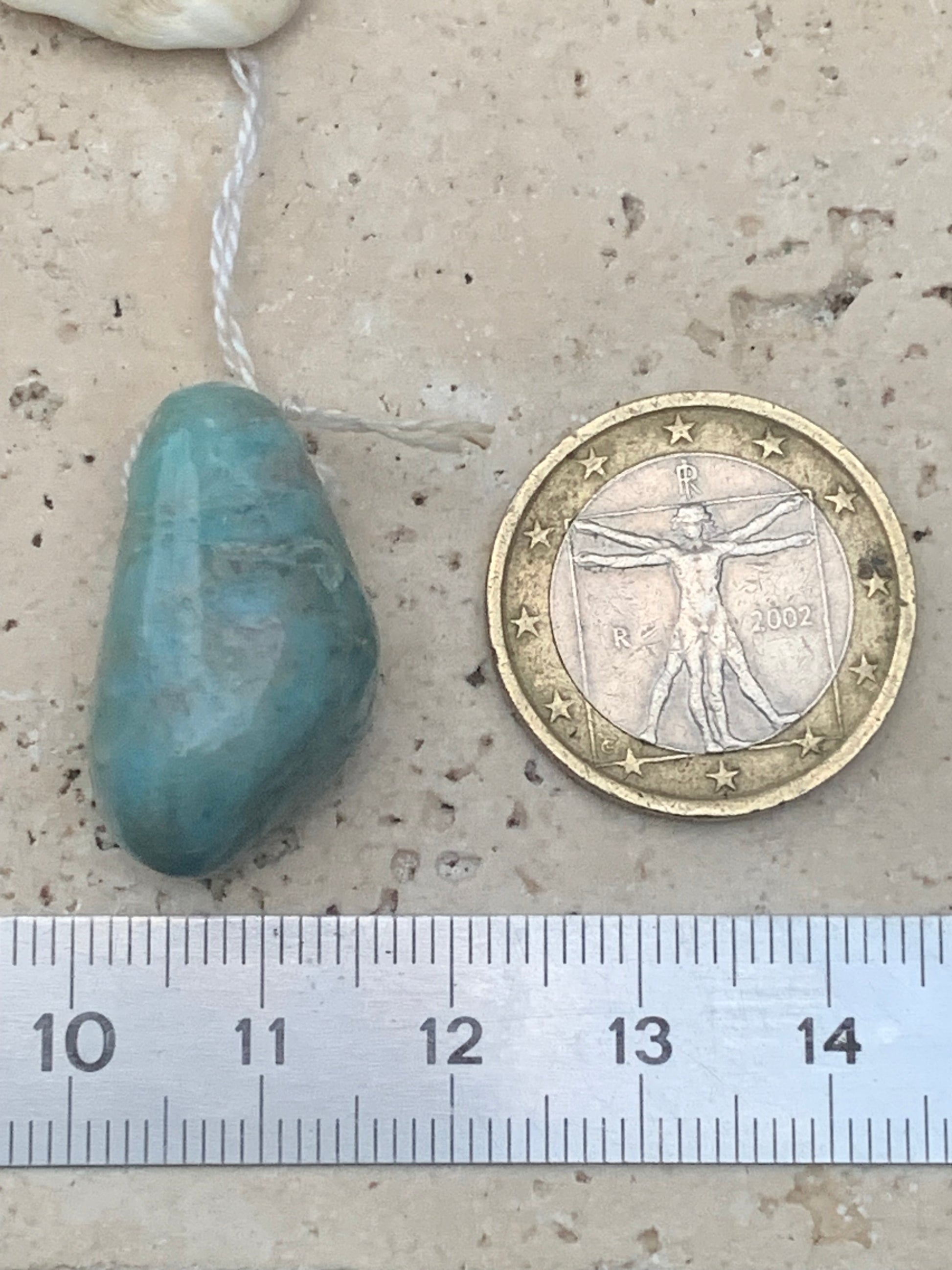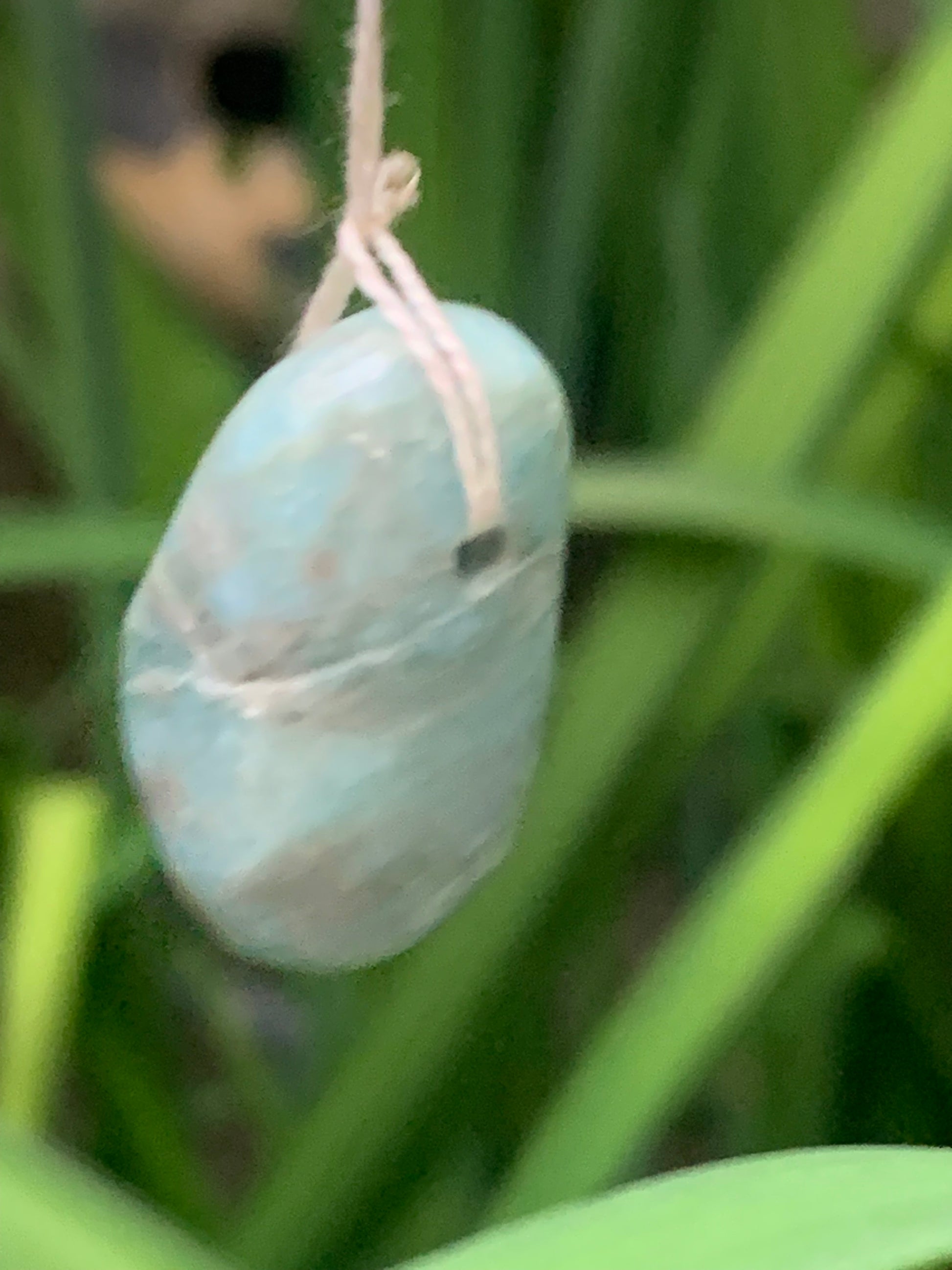 Larimar, pendentif en pierre naturelle à percement latéral. De 26 mm de hauteur x 16 de largeur x 14 d'épaisseur. Vendu avec cordon noir réglable !