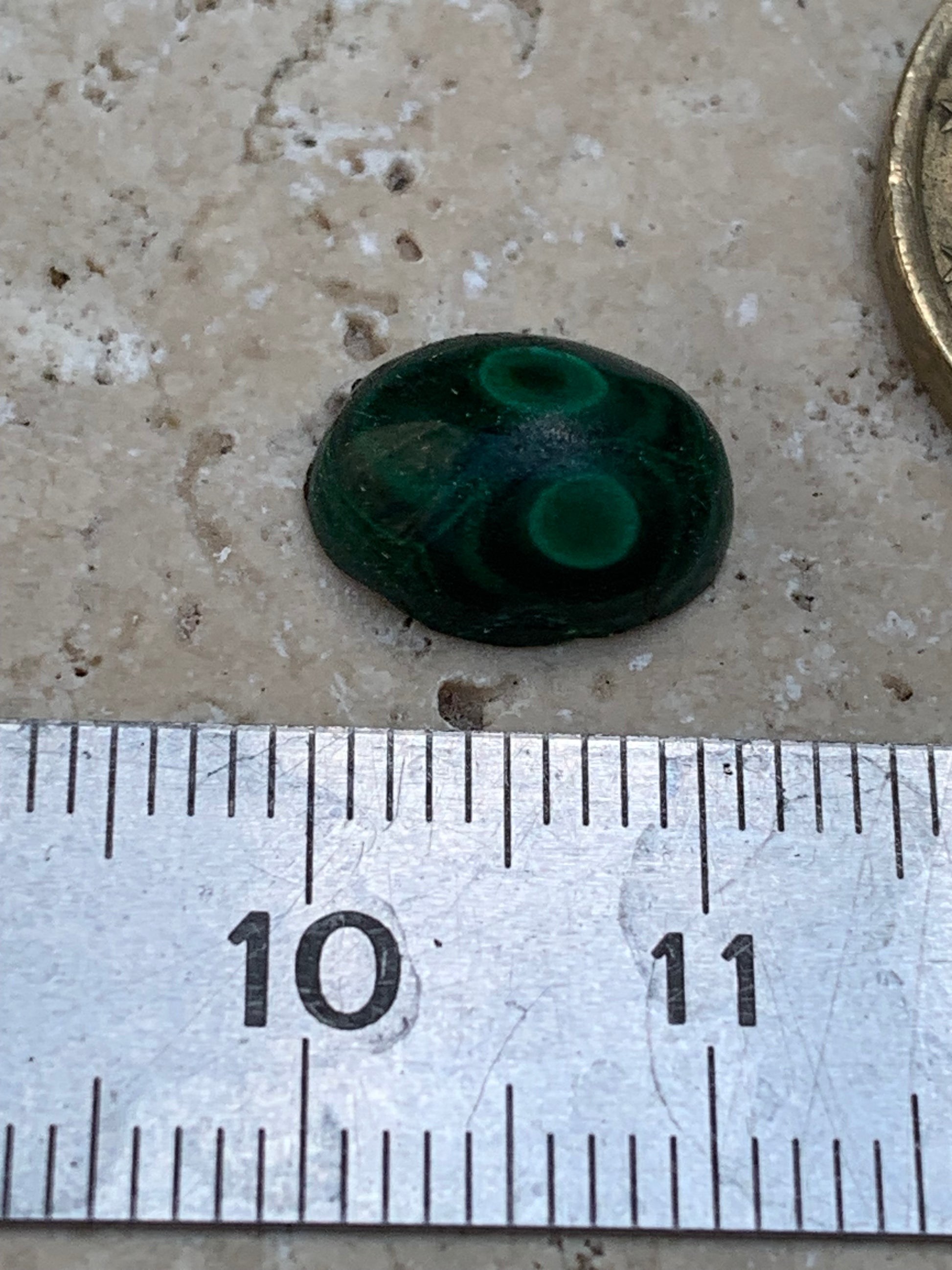 Malachite, cabochon de 12mm x9 x5 - 2,5 carats. Parfait en bijouterie, collection ,exposition...