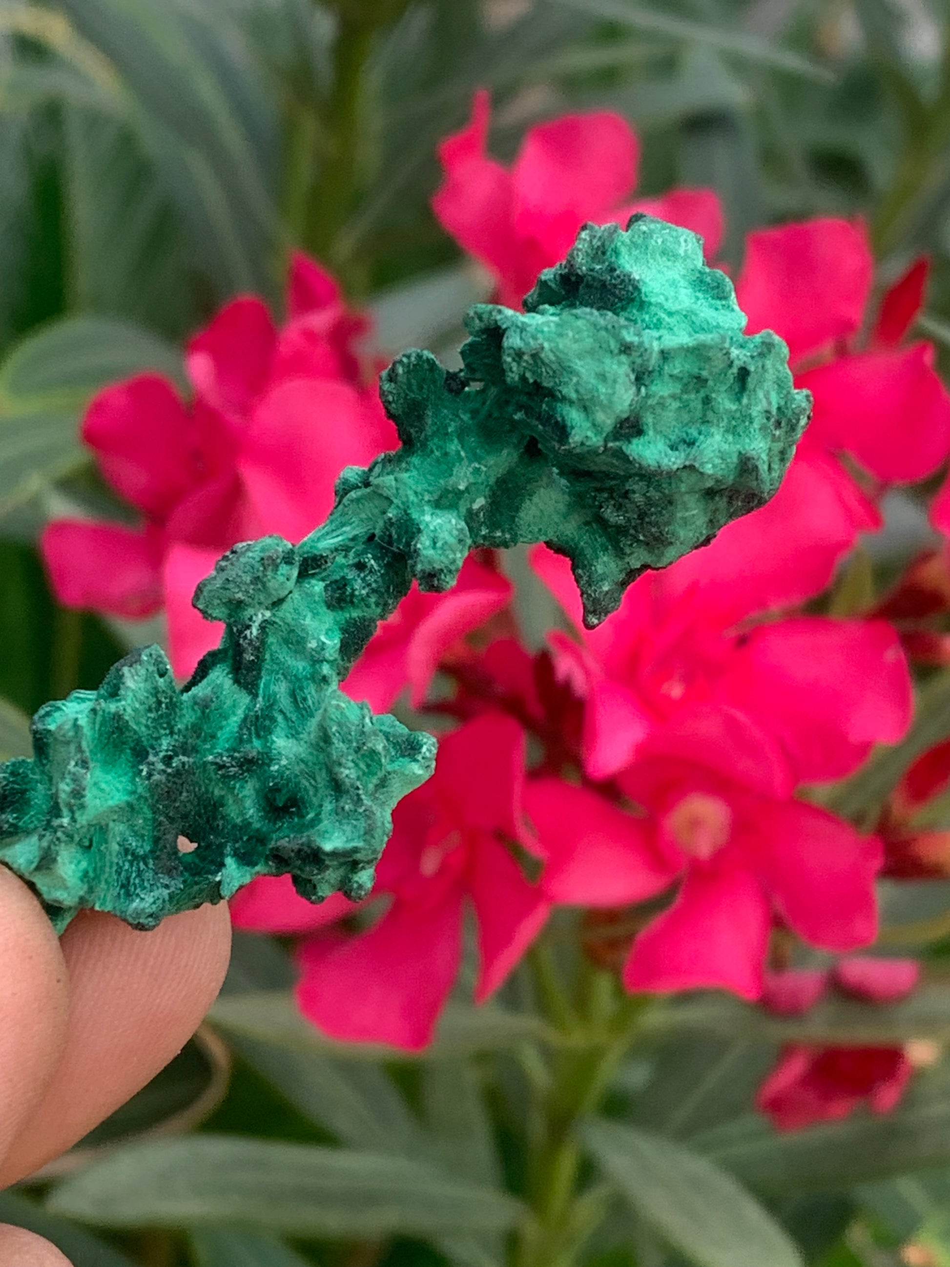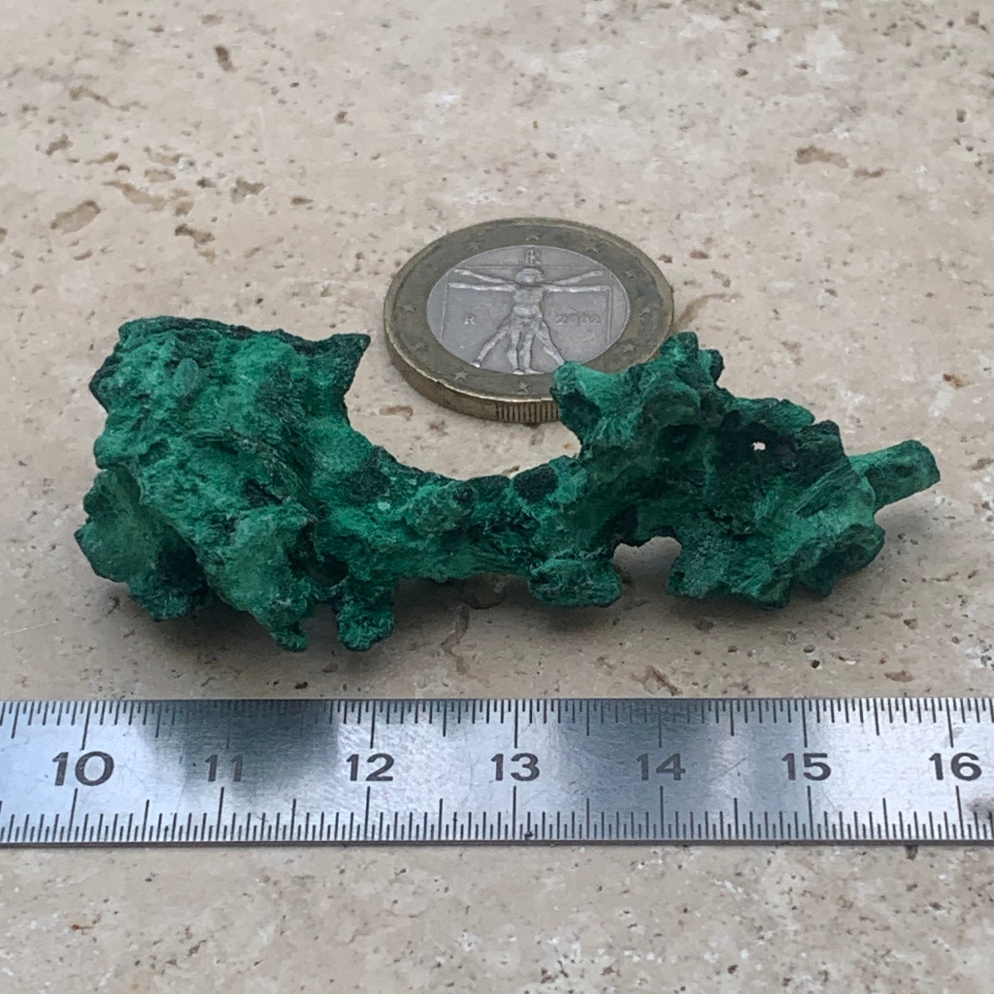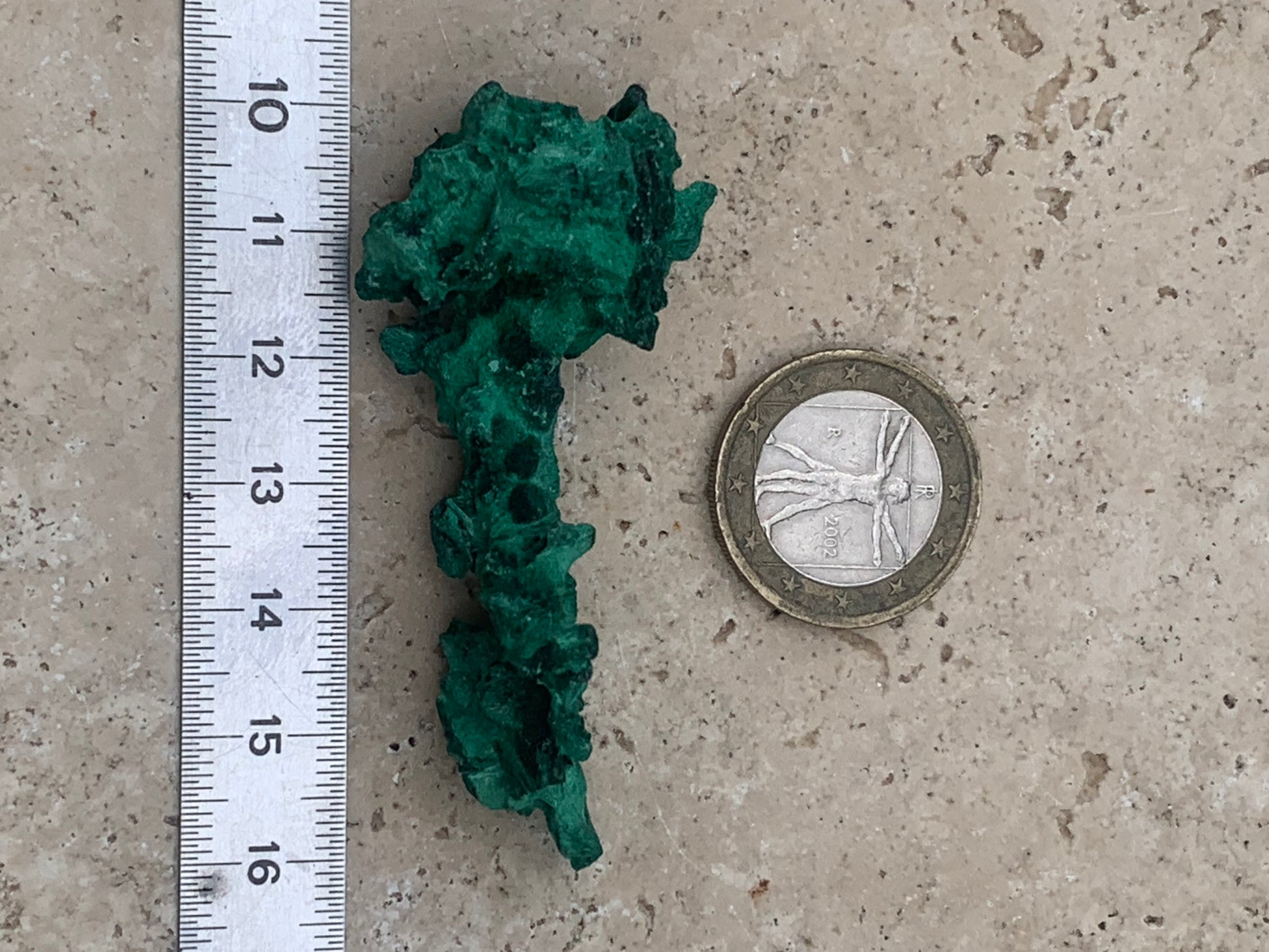 Malachite fibreuse, spécimen brut de 62mm x 27 x 24 - 17,3 grammes. Parfait pour une collection, exposition ou bijouterie, du velour naturel !