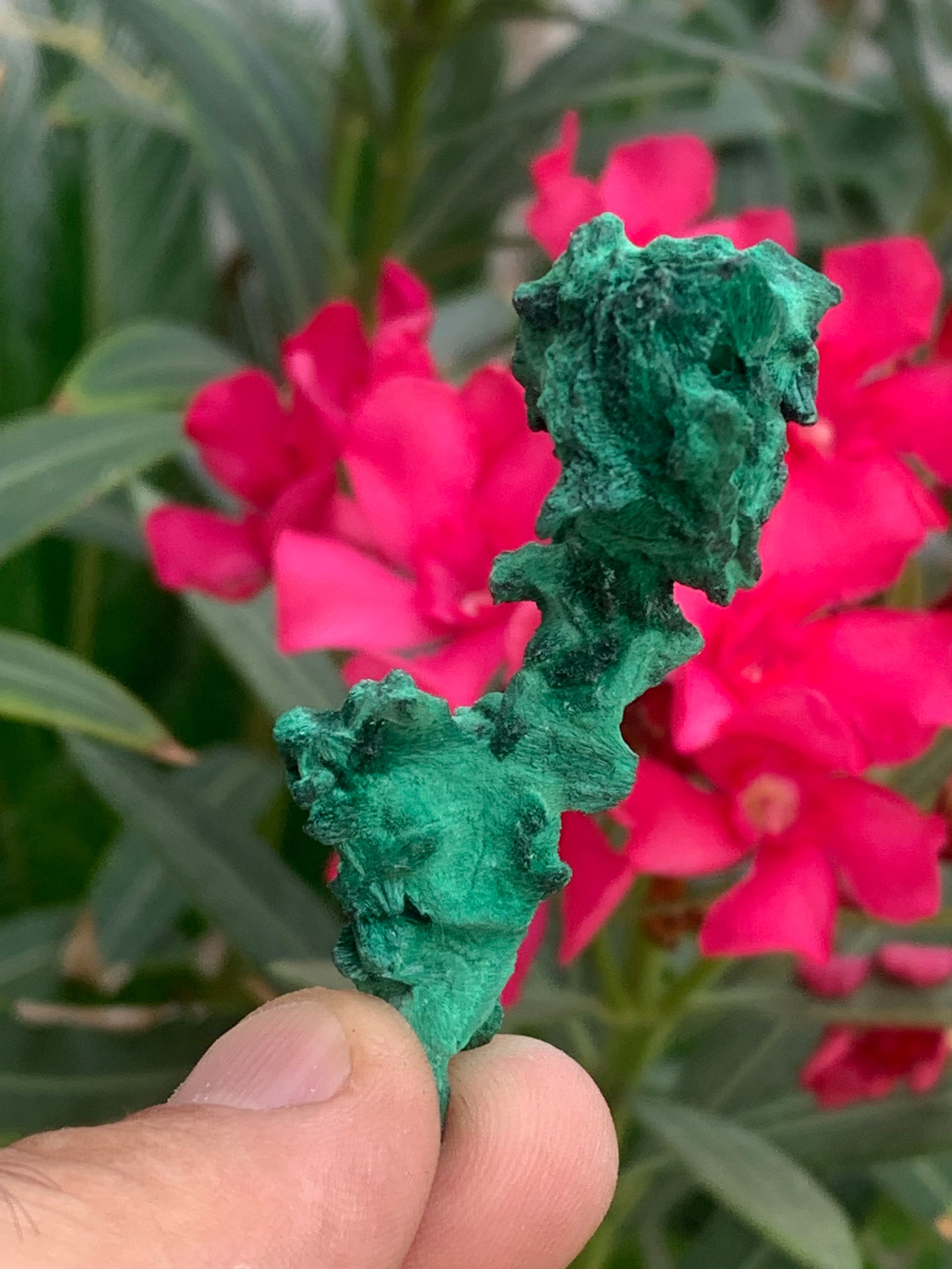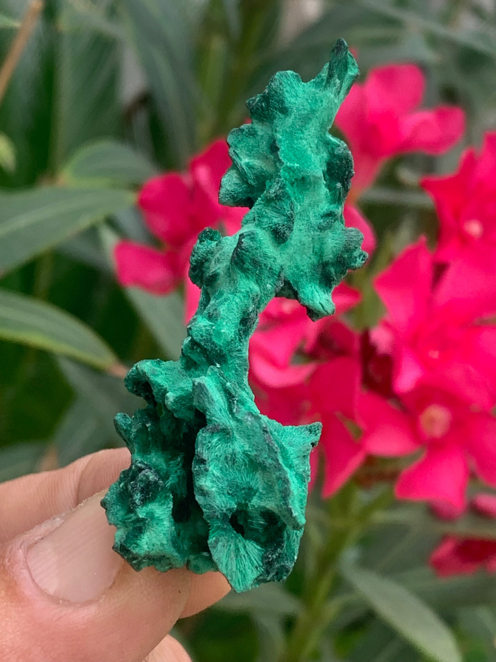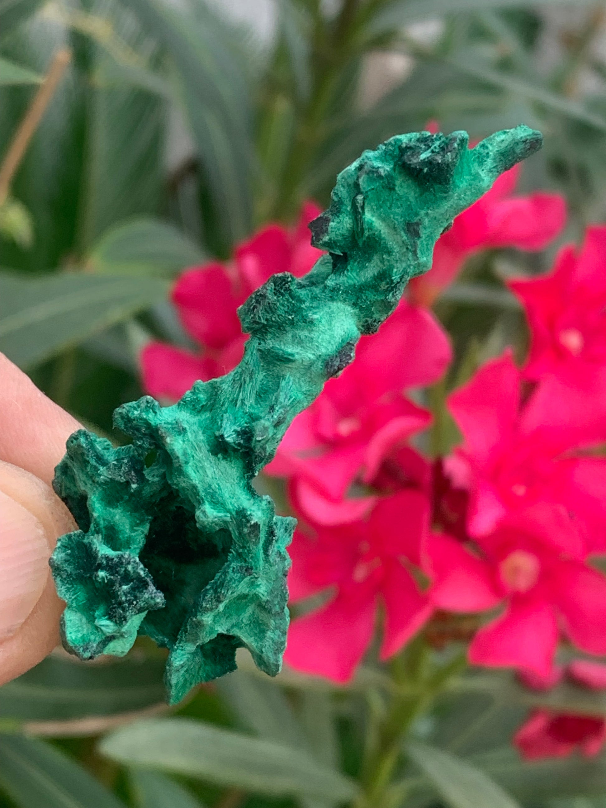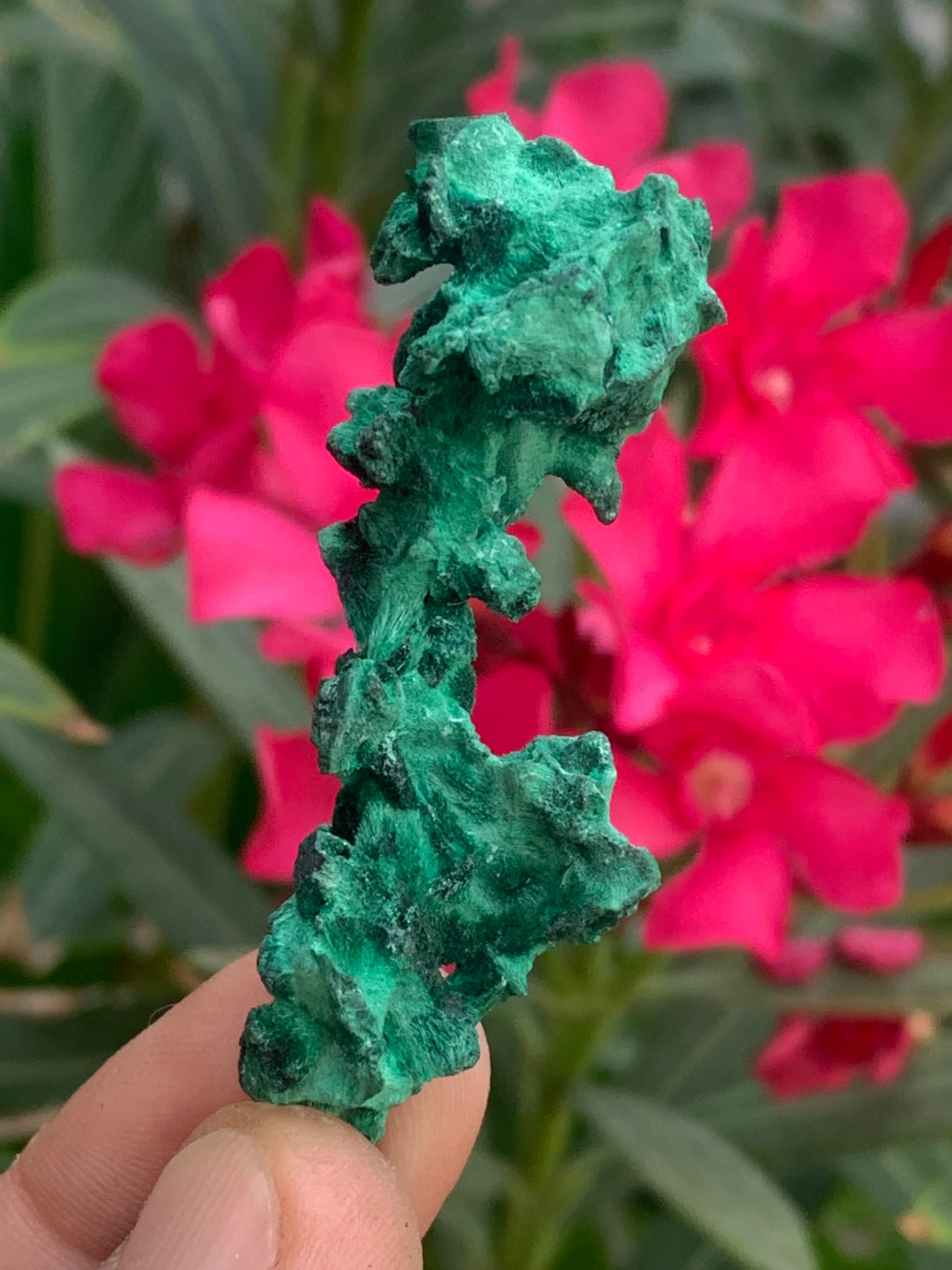 Malachite fibreuse, spécimen brut de 62mm x 27 x 24 - 17,3 grammes. Parfait pour une collection, exposition ou bijouterie, du velour naturel !