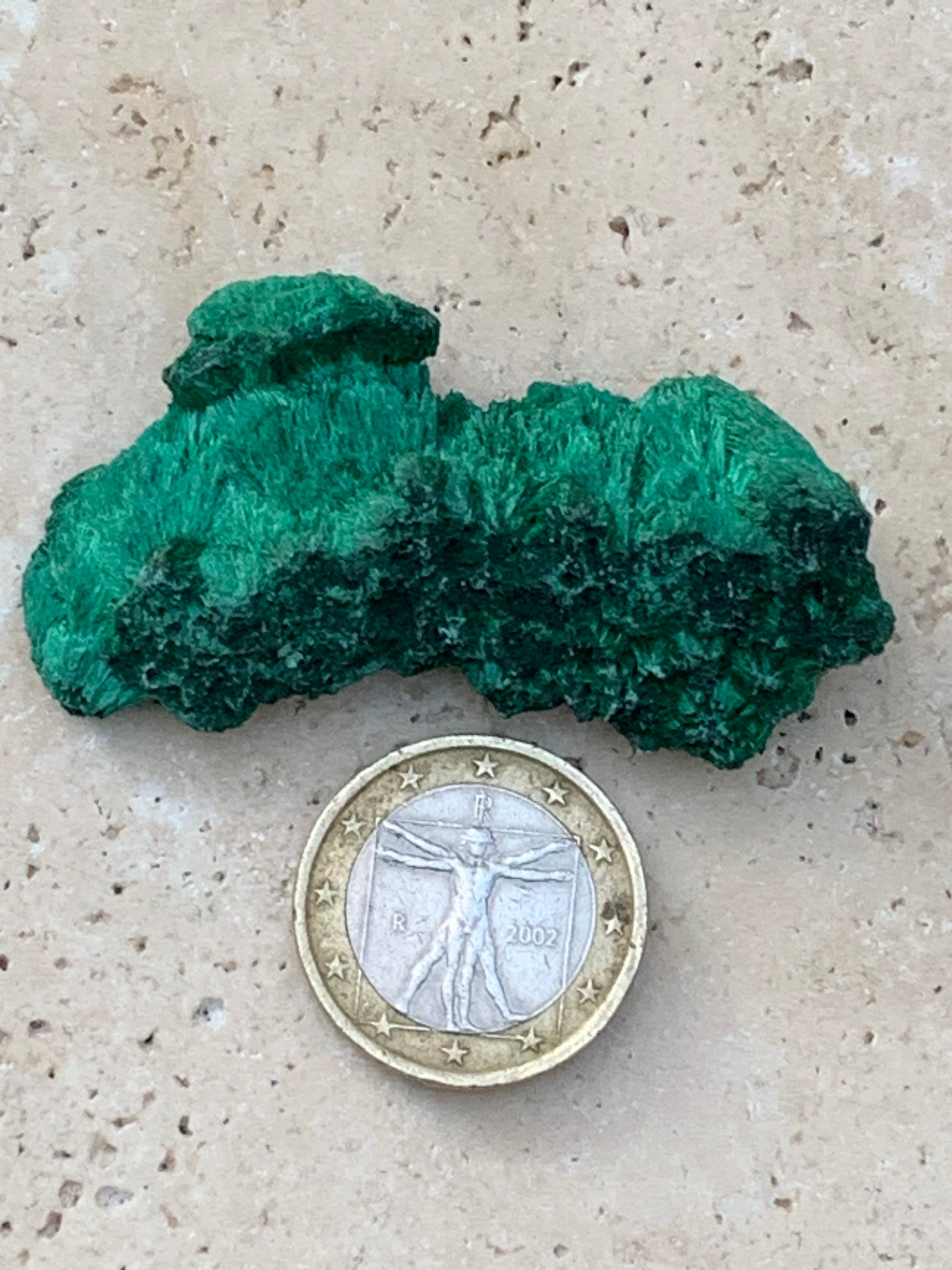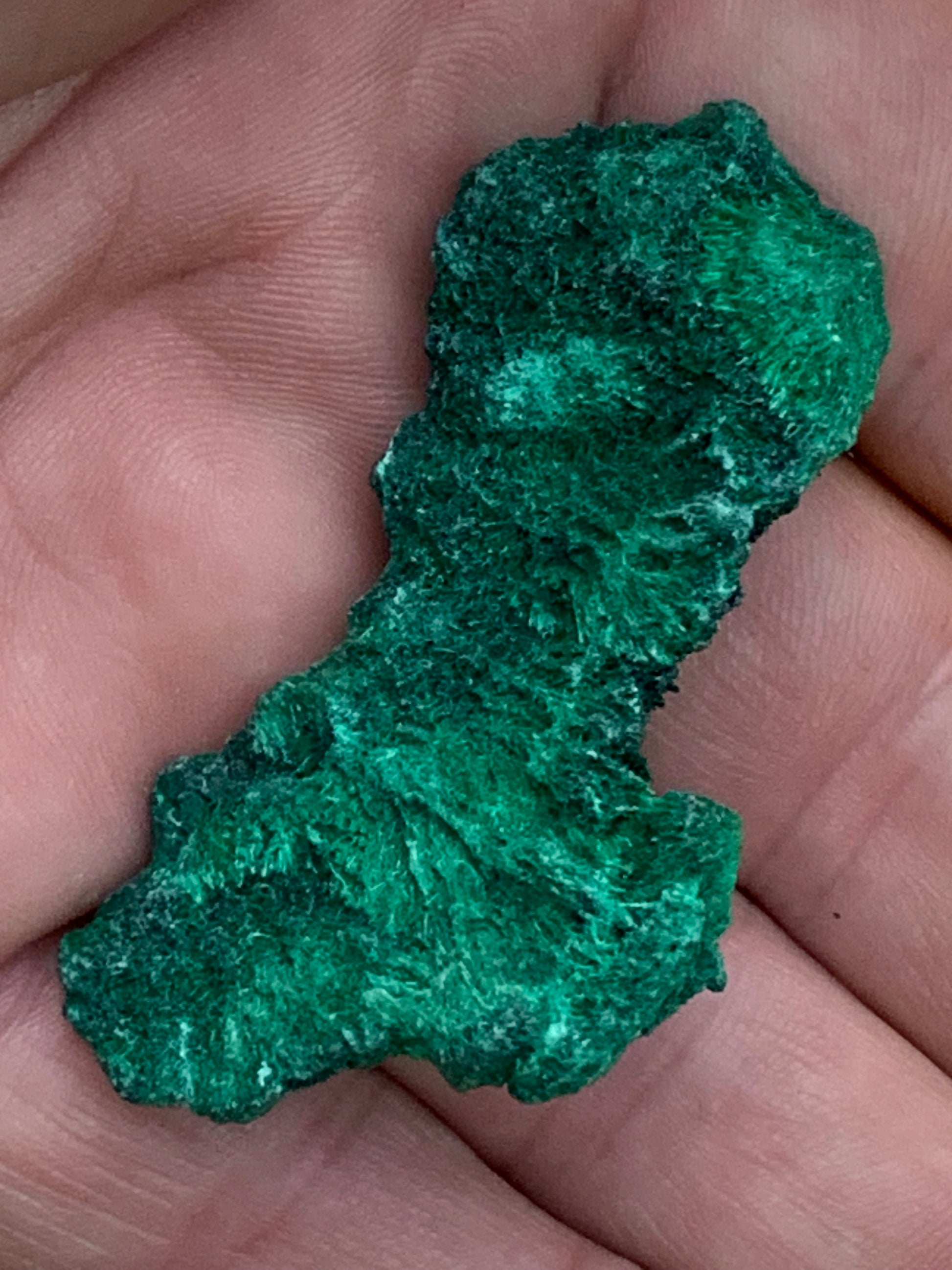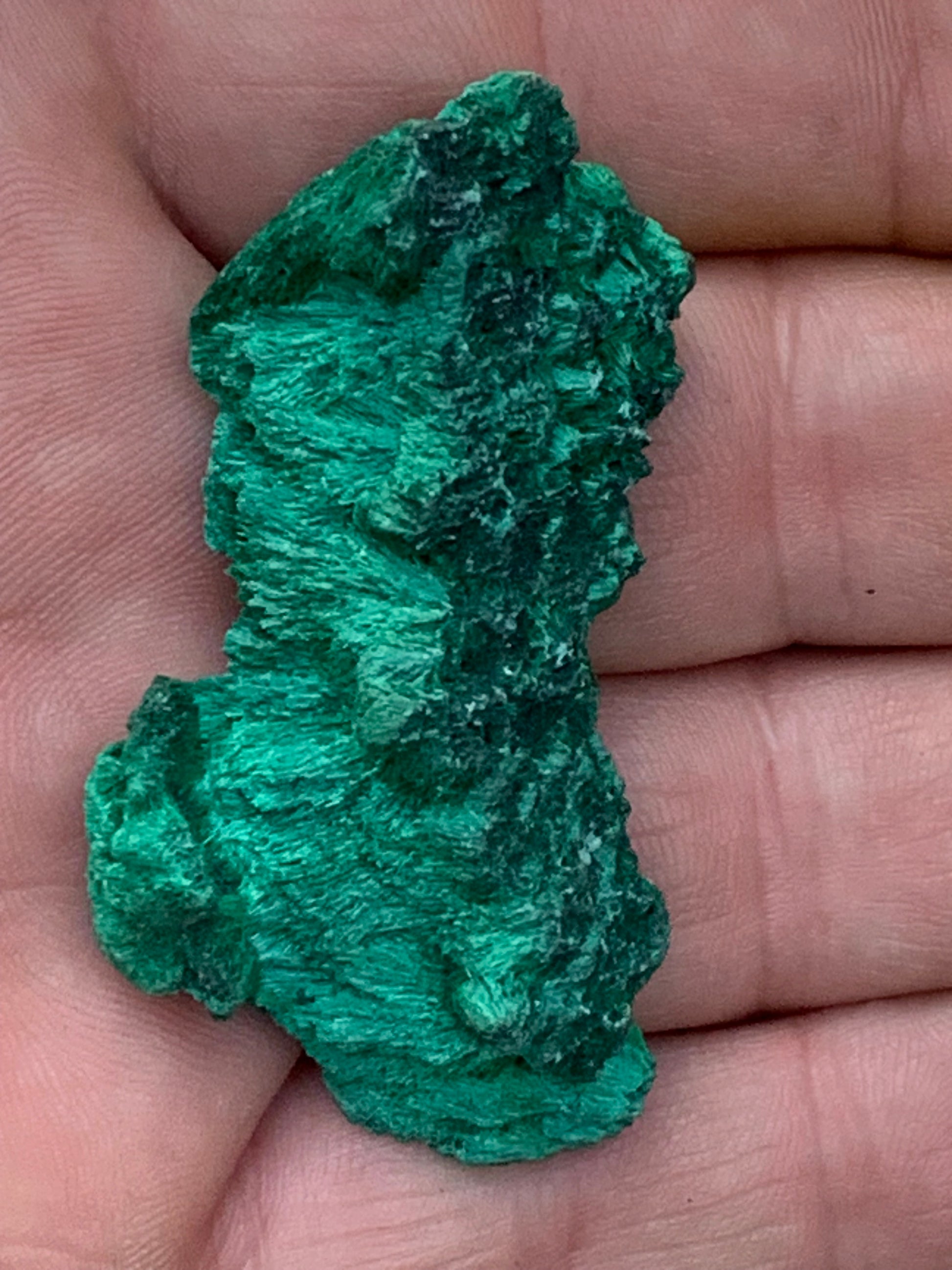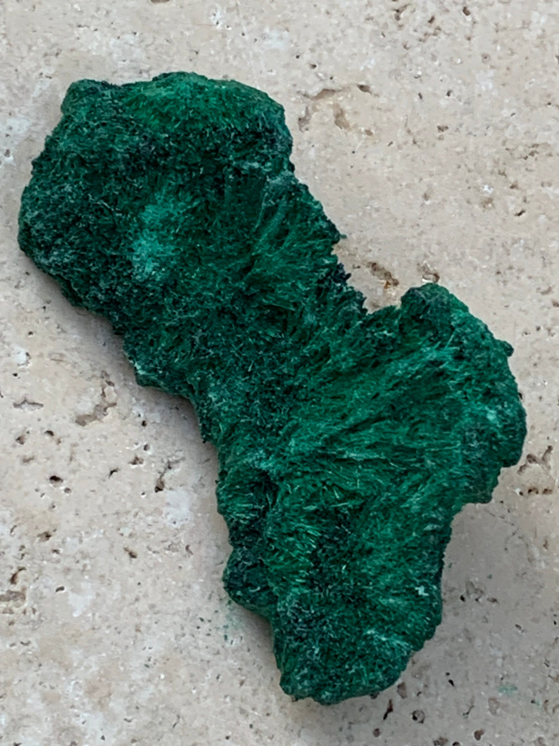 Malachite fibreuse, spécimen brut du Congo de 22,3 grammes. Parfait pour une collection ou la bijouterie, du velour naturel !