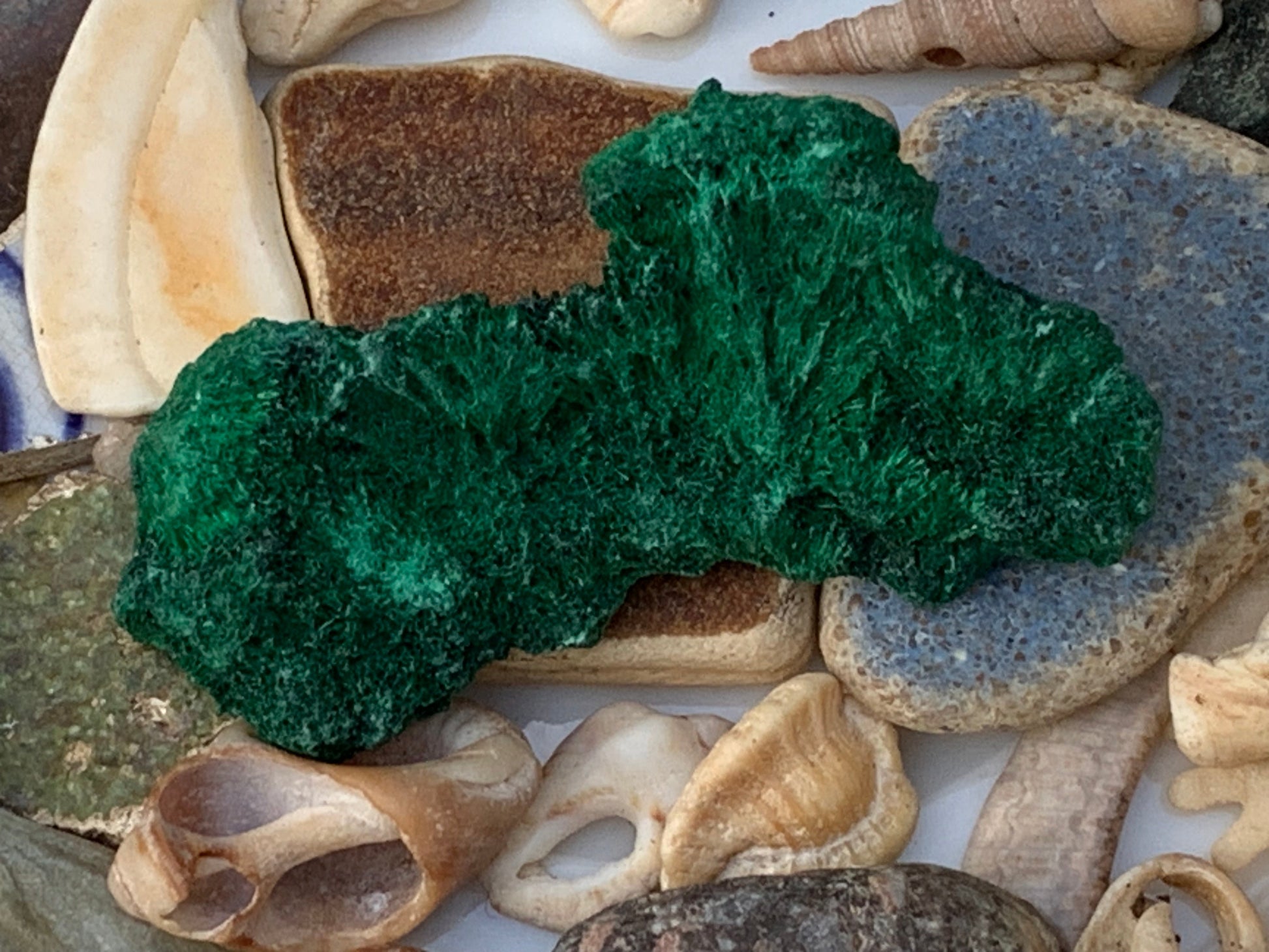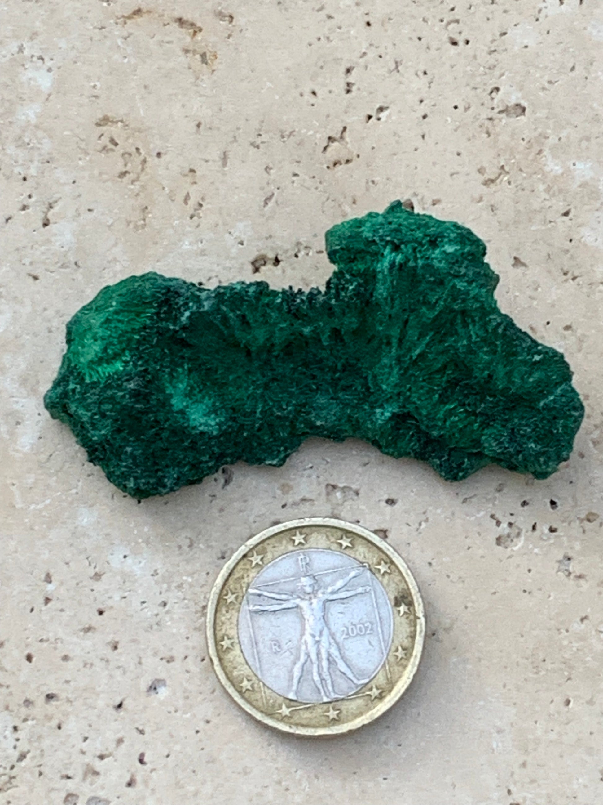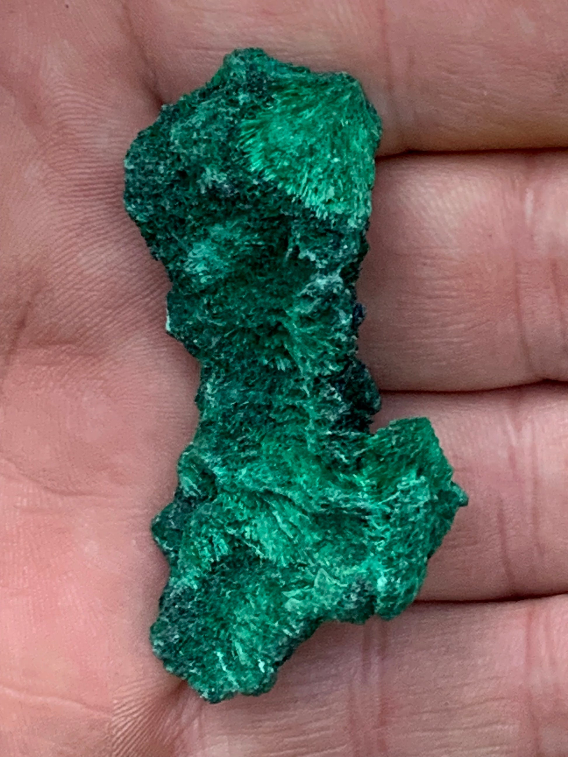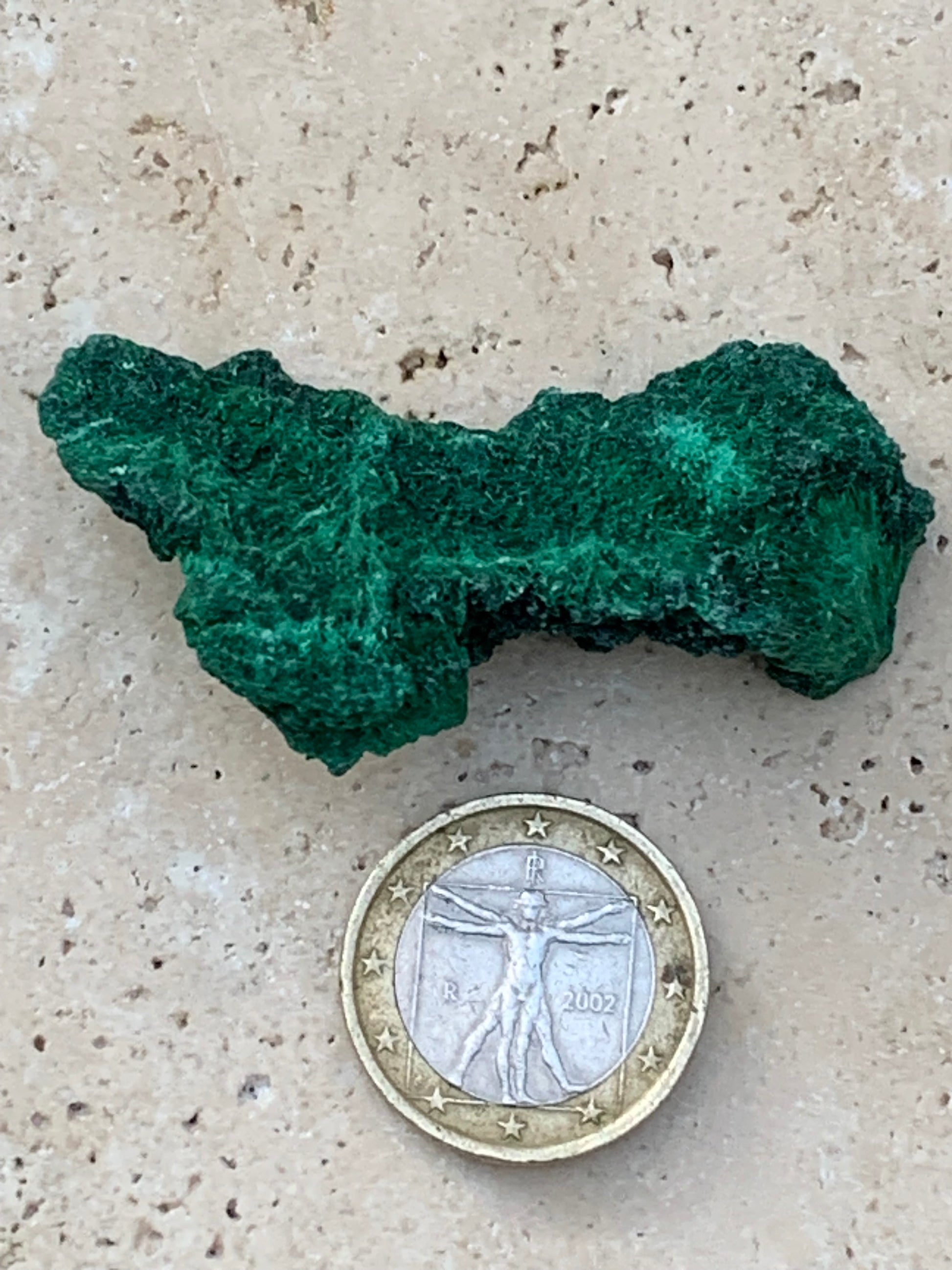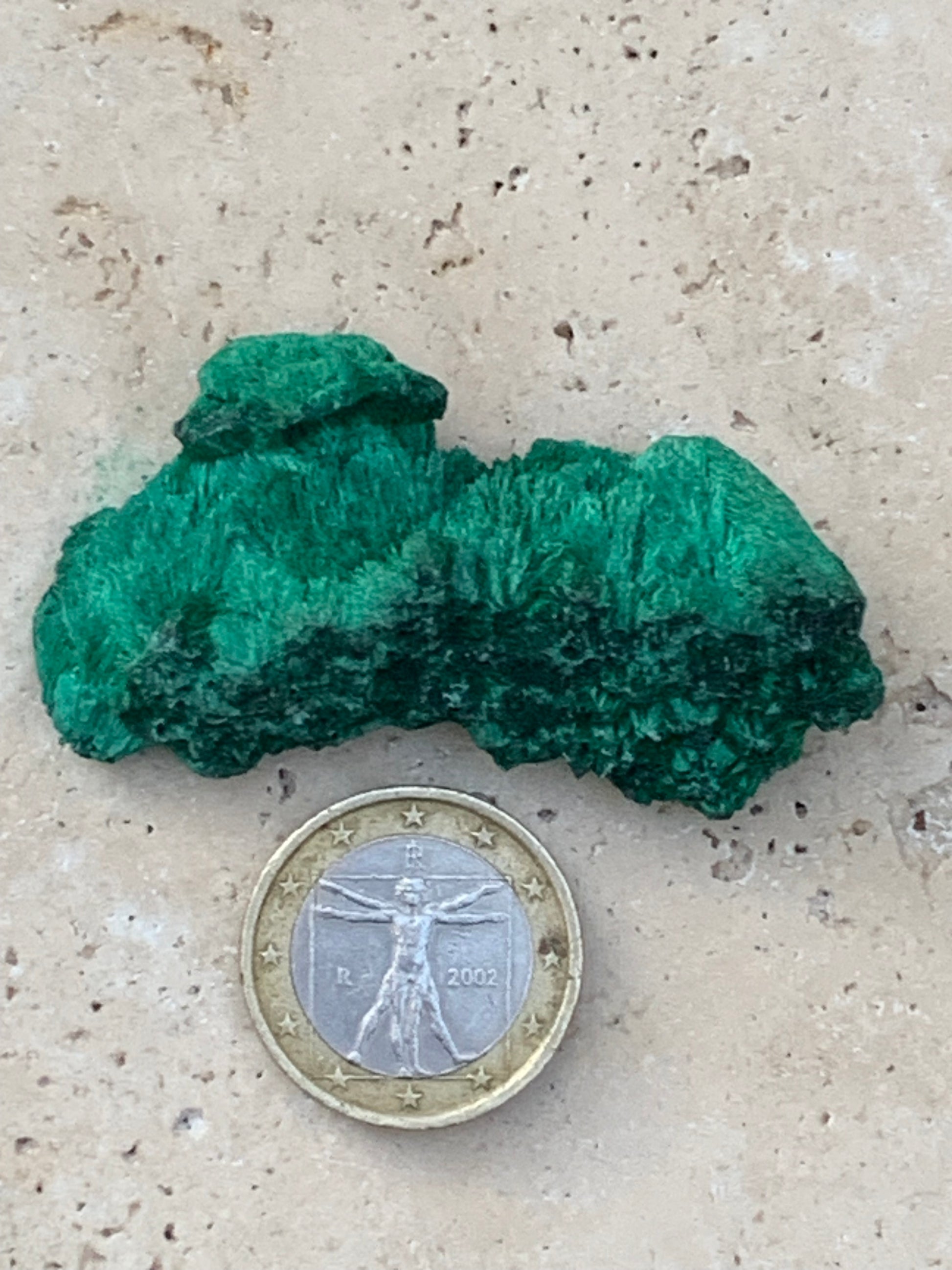 Malachite fibreuse, spécimen brut du Congo de 22,3 grammes. Parfait pour une collection ou la bijouterie, du velour naturel !