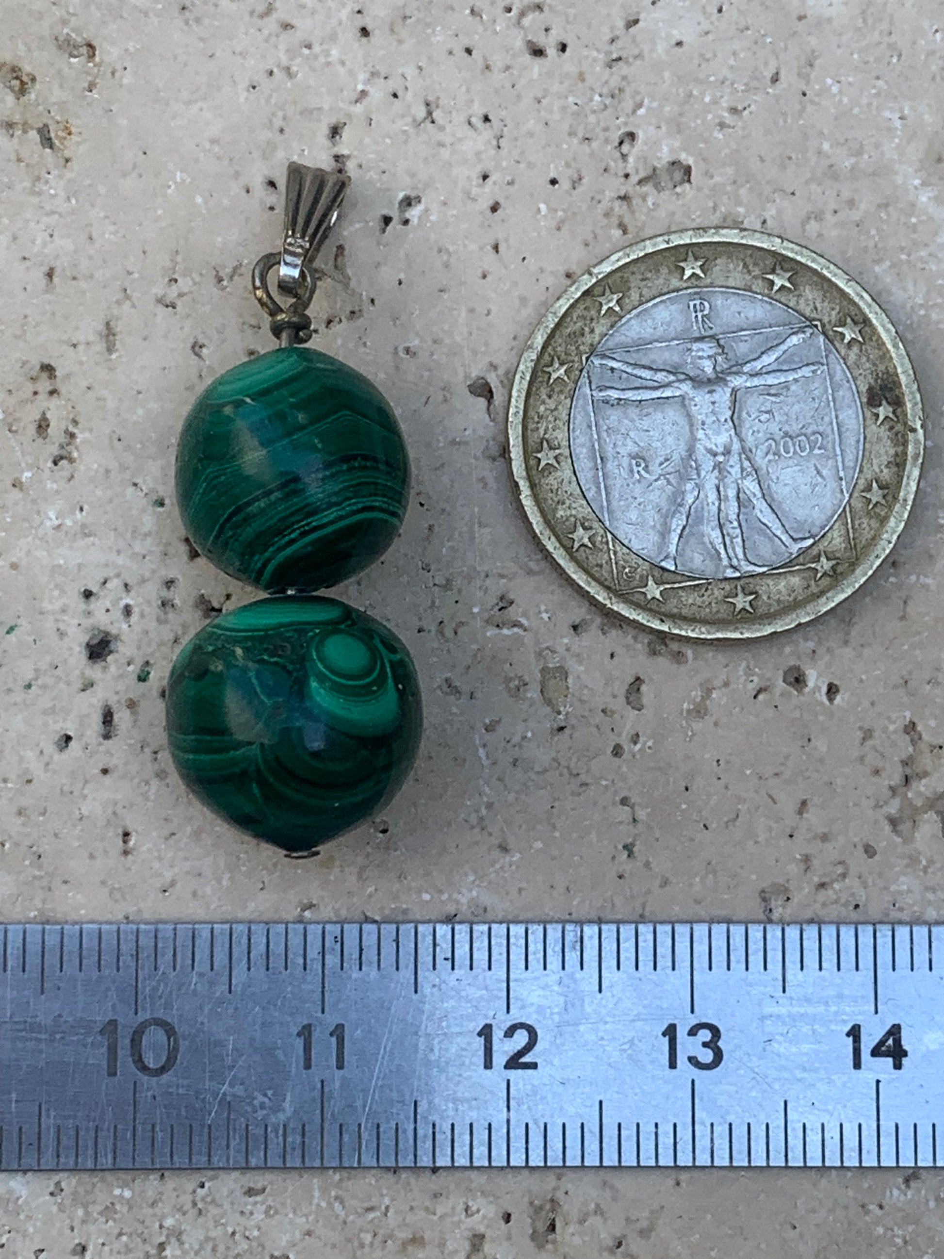 Malachite, pendentif en perle, de 45 mm de hauteur x 13 de largeur x 13 d'épaisseur. Vendu avec cordon réglable de couleur noire offert !