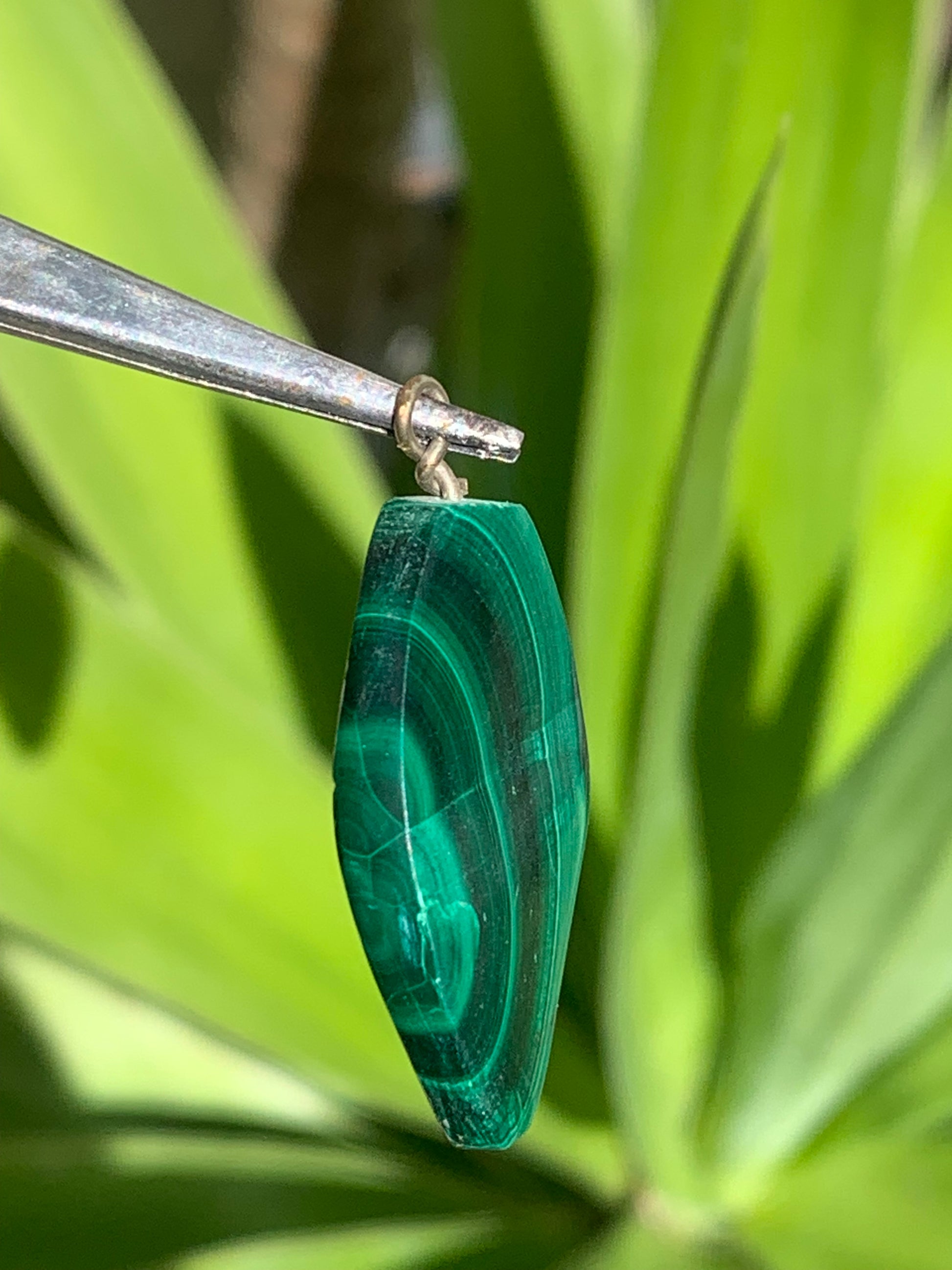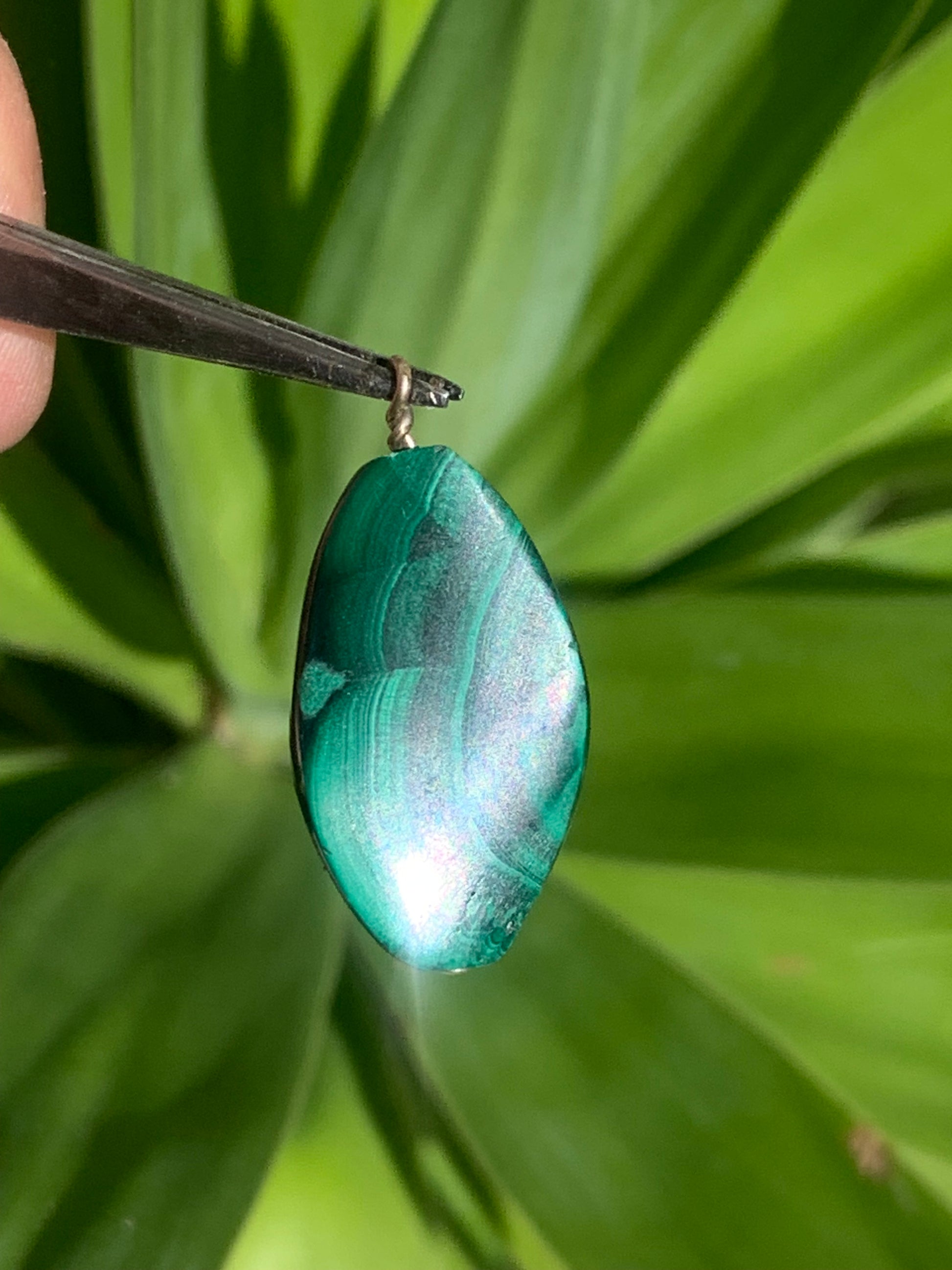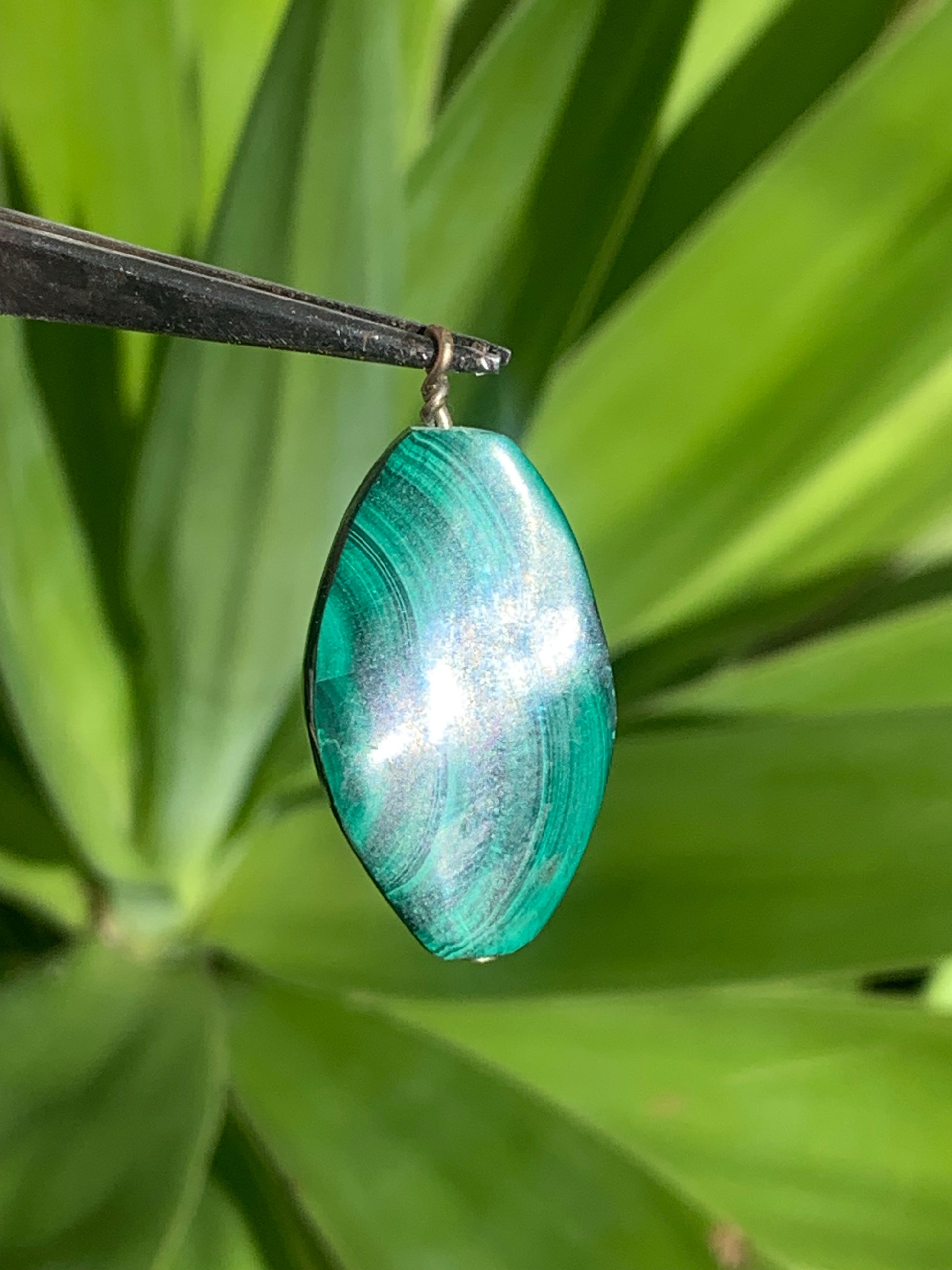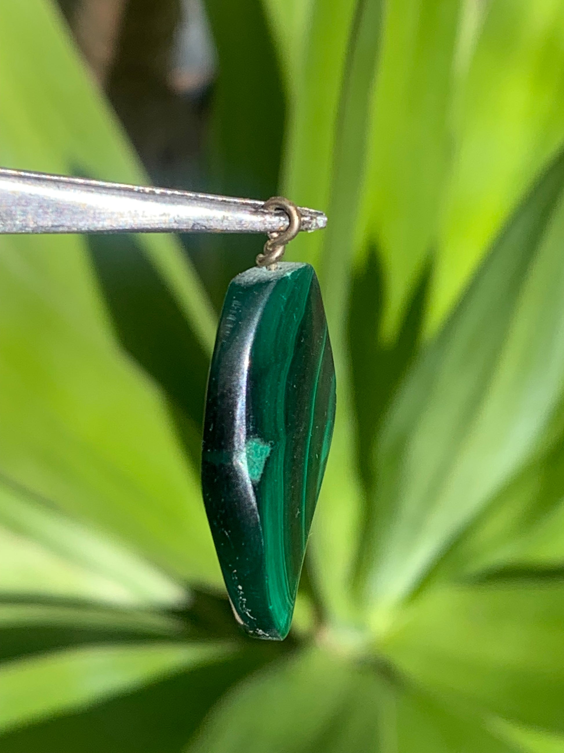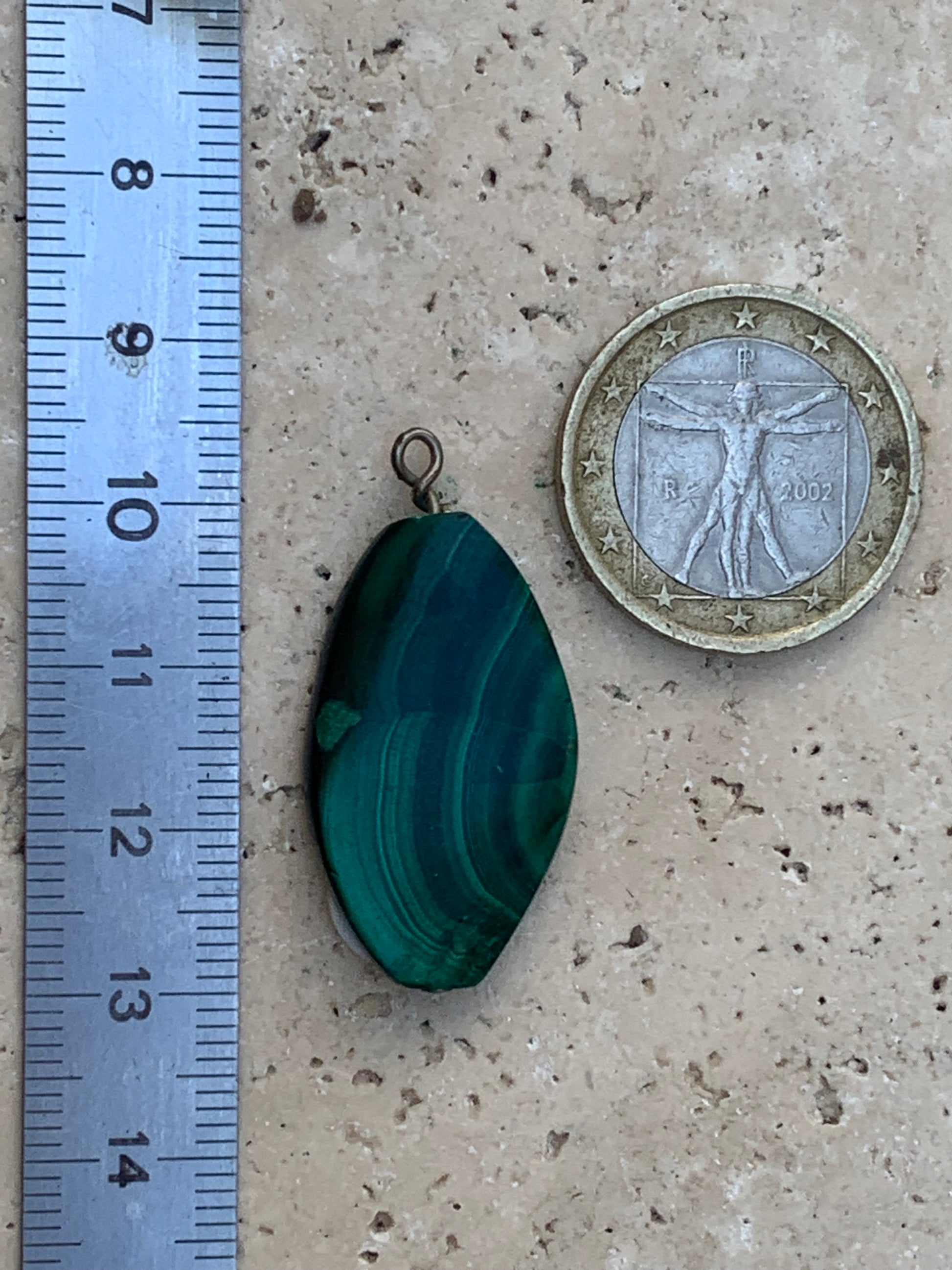 Malachite, pendentif en perle, de 35mm de hauteur x 17 de largeur x 5 d'épaisseur. Vendu avec cordon réglable de couleur noire offert !
