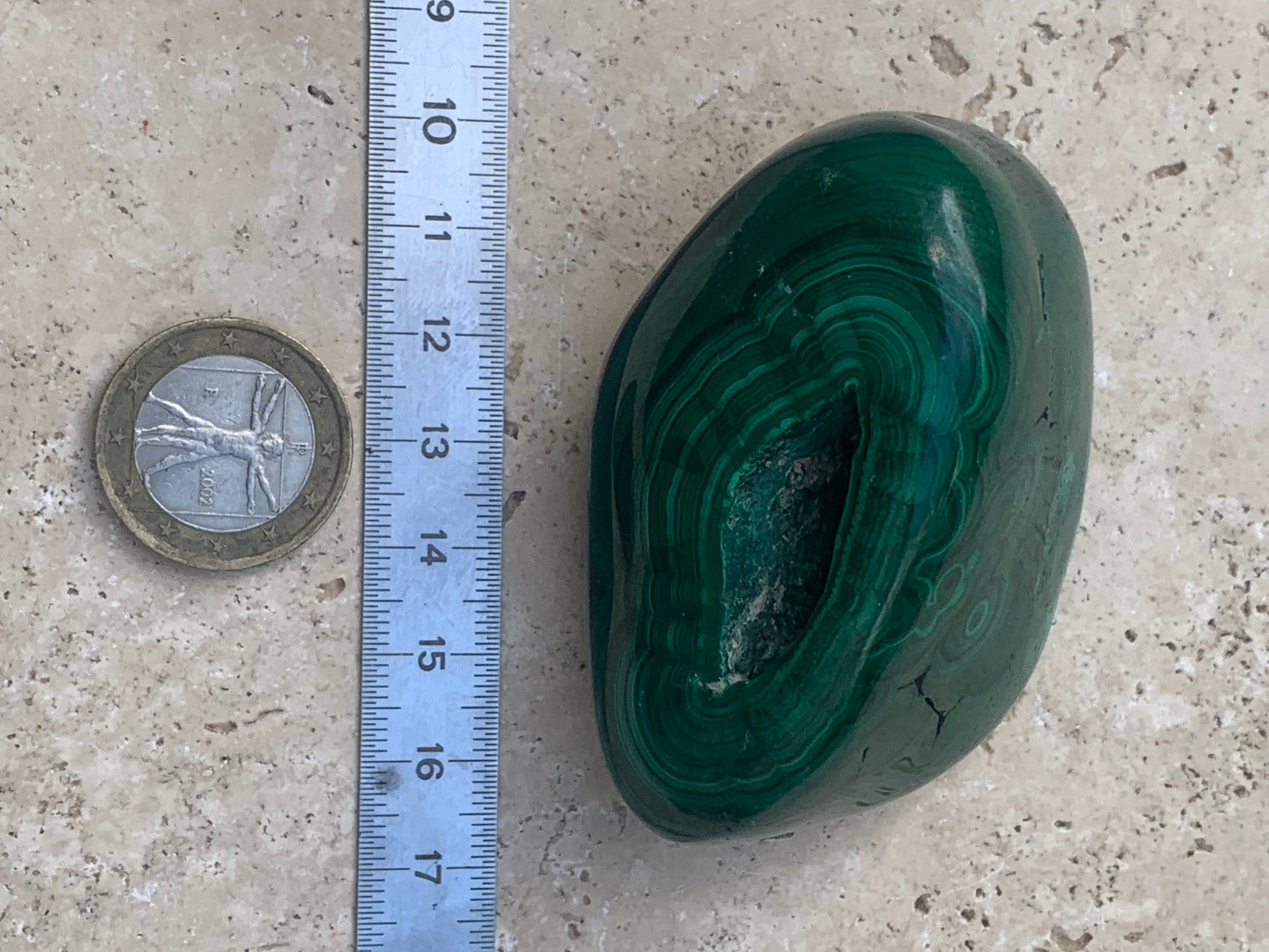 Particularité | Bandes concentriques vertes caractéristiques, trÚs décoratif en pierres polies |