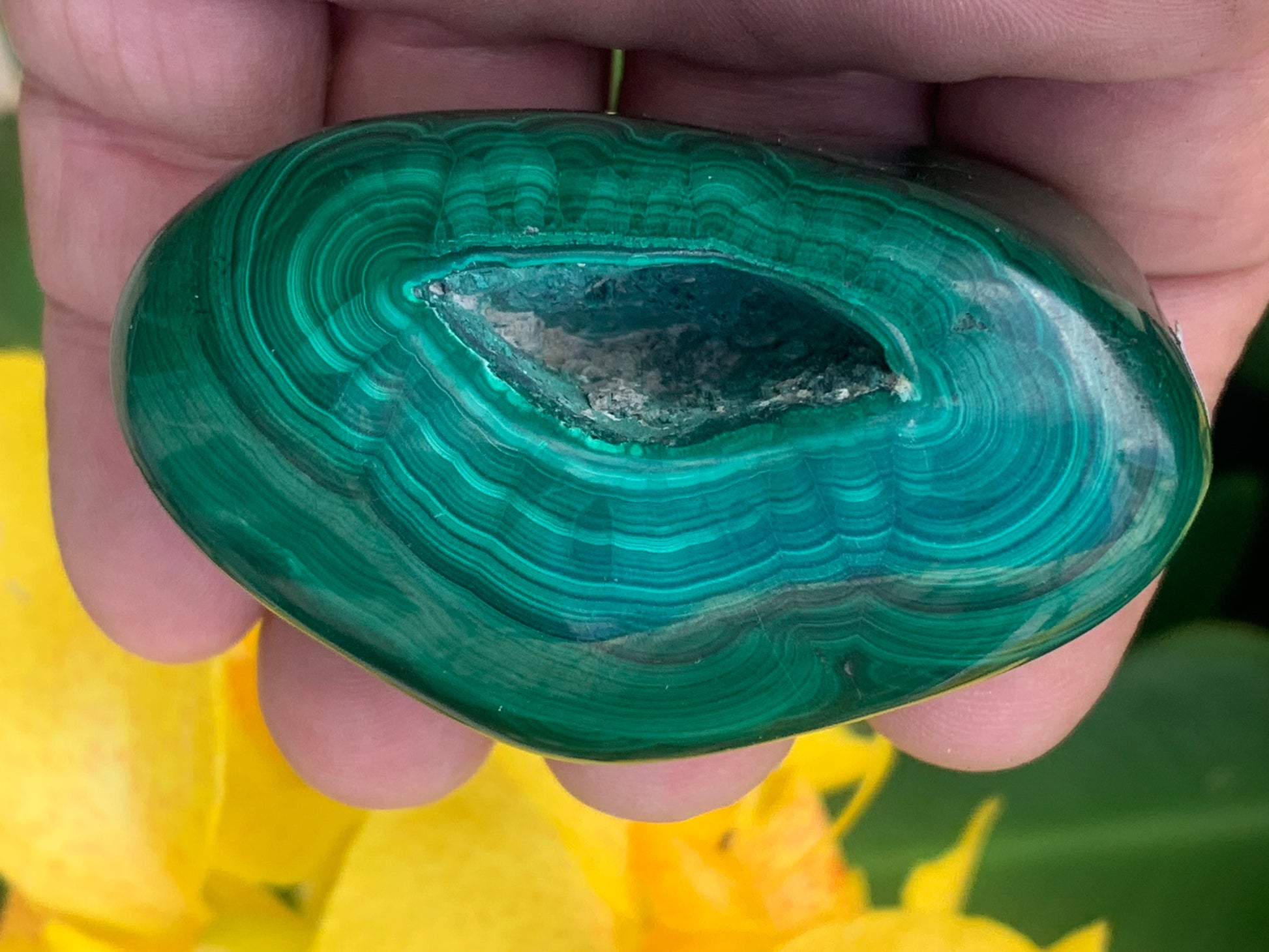 đ Type de minĂ©ral / Gemme : Malachite avec une trĂ©s belle ouverture façon gĂ©ode de façon Ă aller au fond de son coeur.