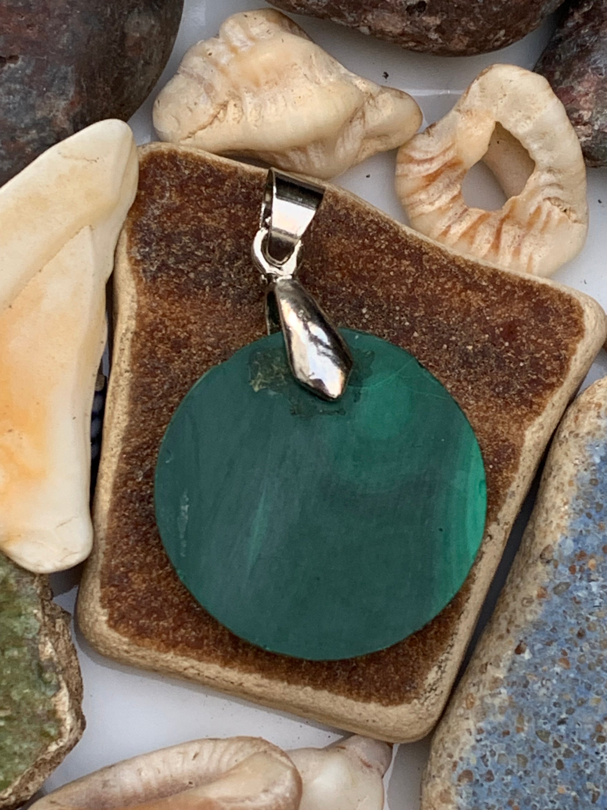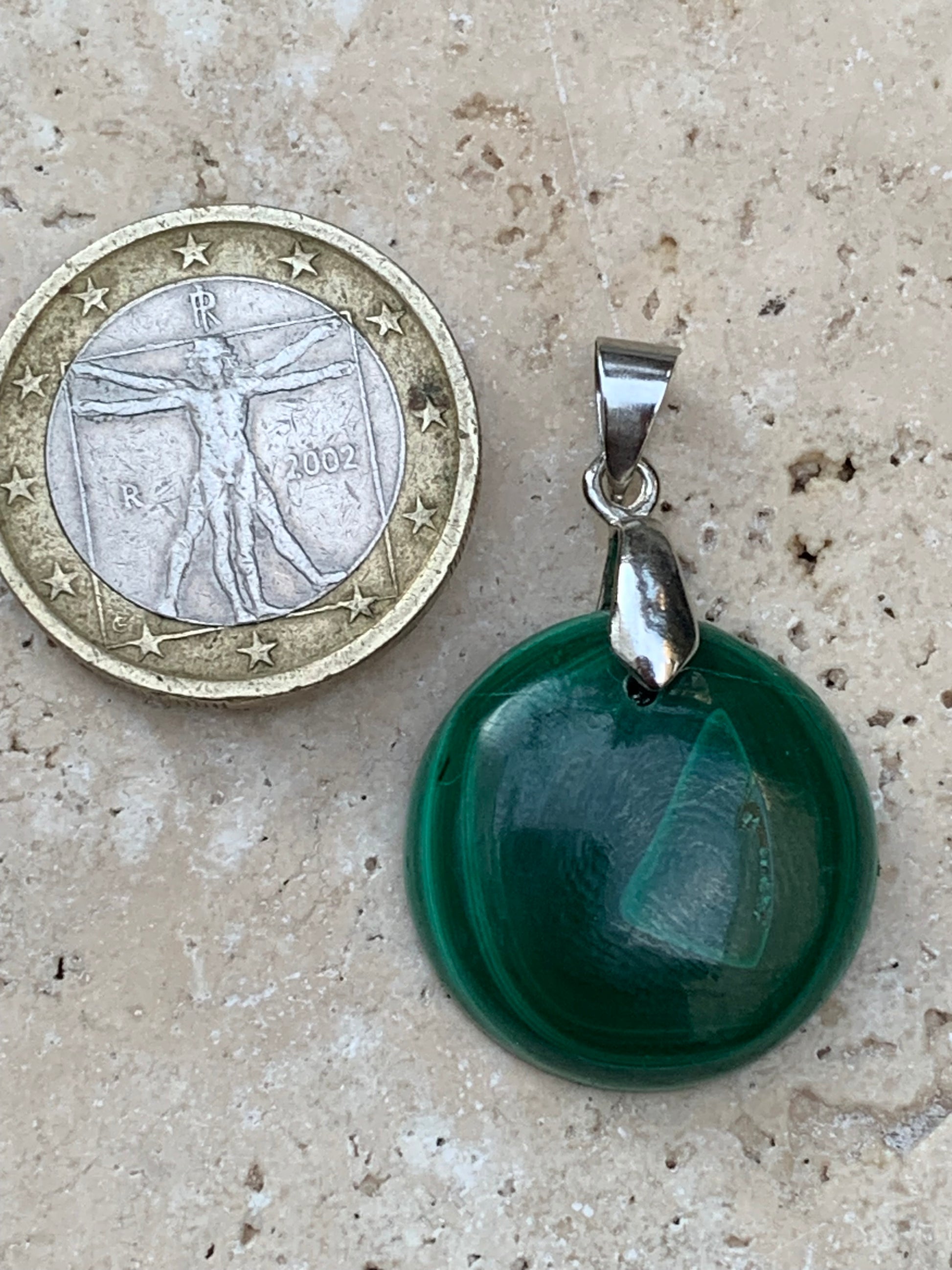 Malachite, superbe pendentif de 35mm de hauteur x 20 de largeur x 6 d'épaisseur. Vendu avec cordon réglable de couleur noire.