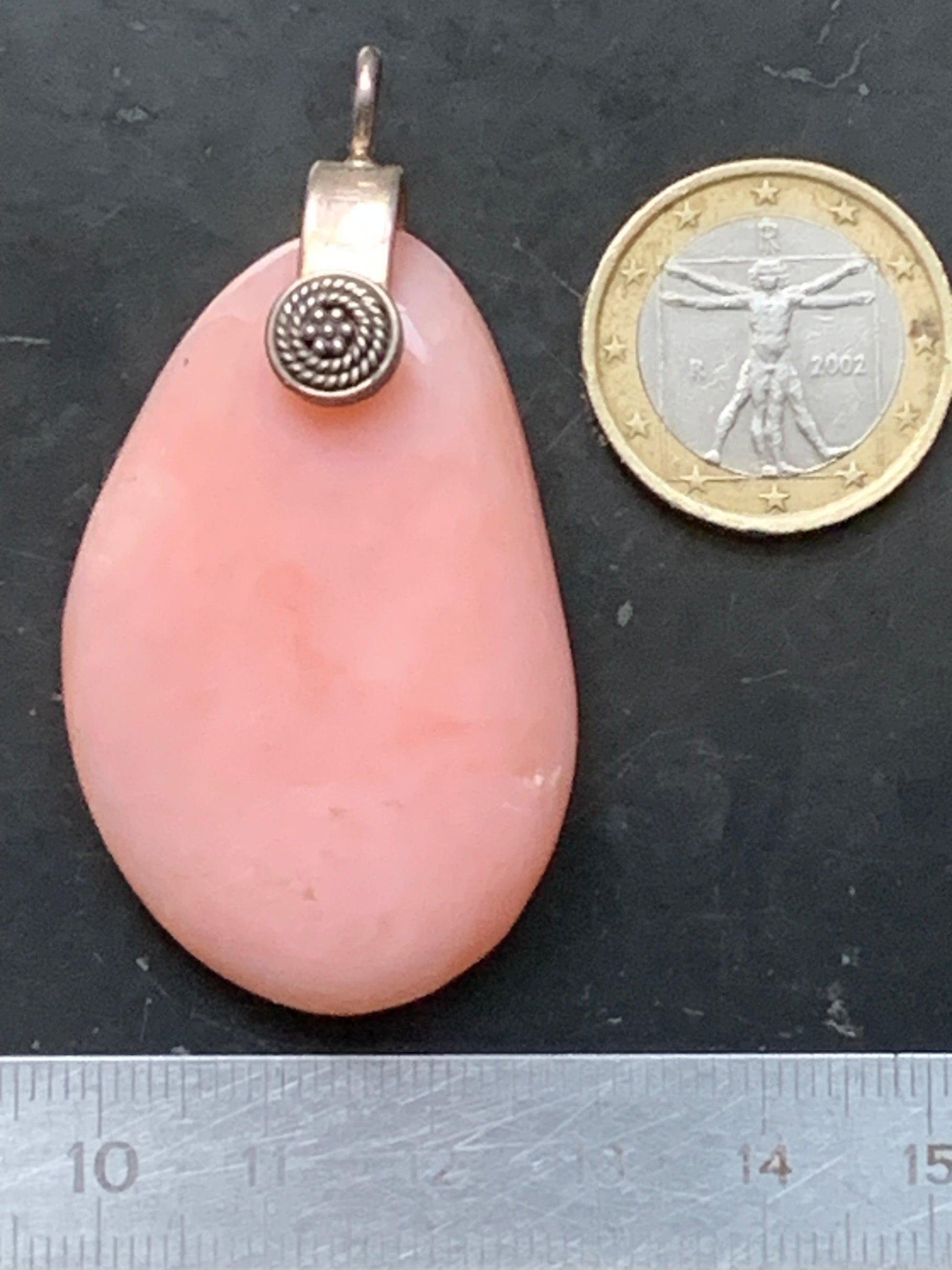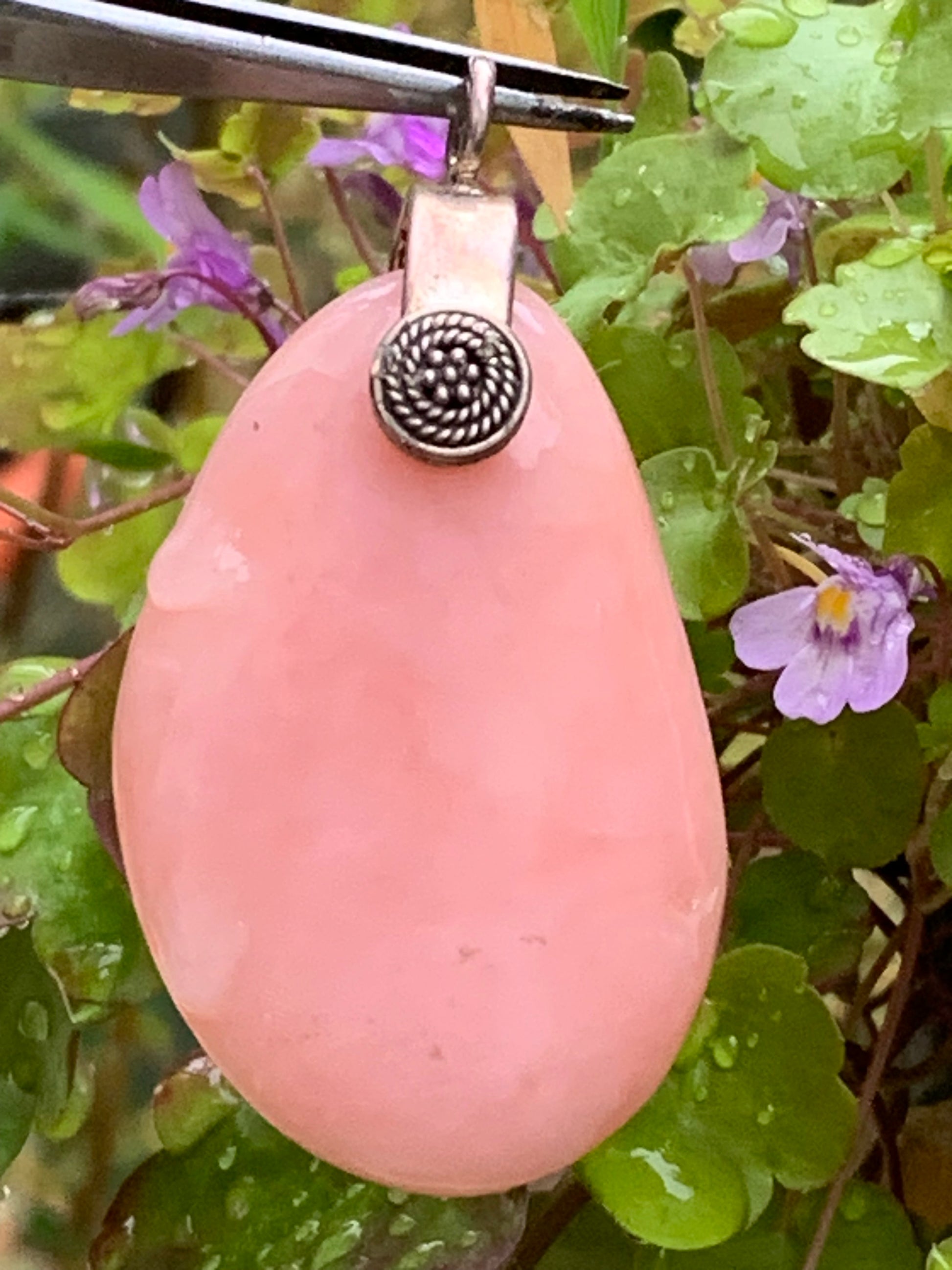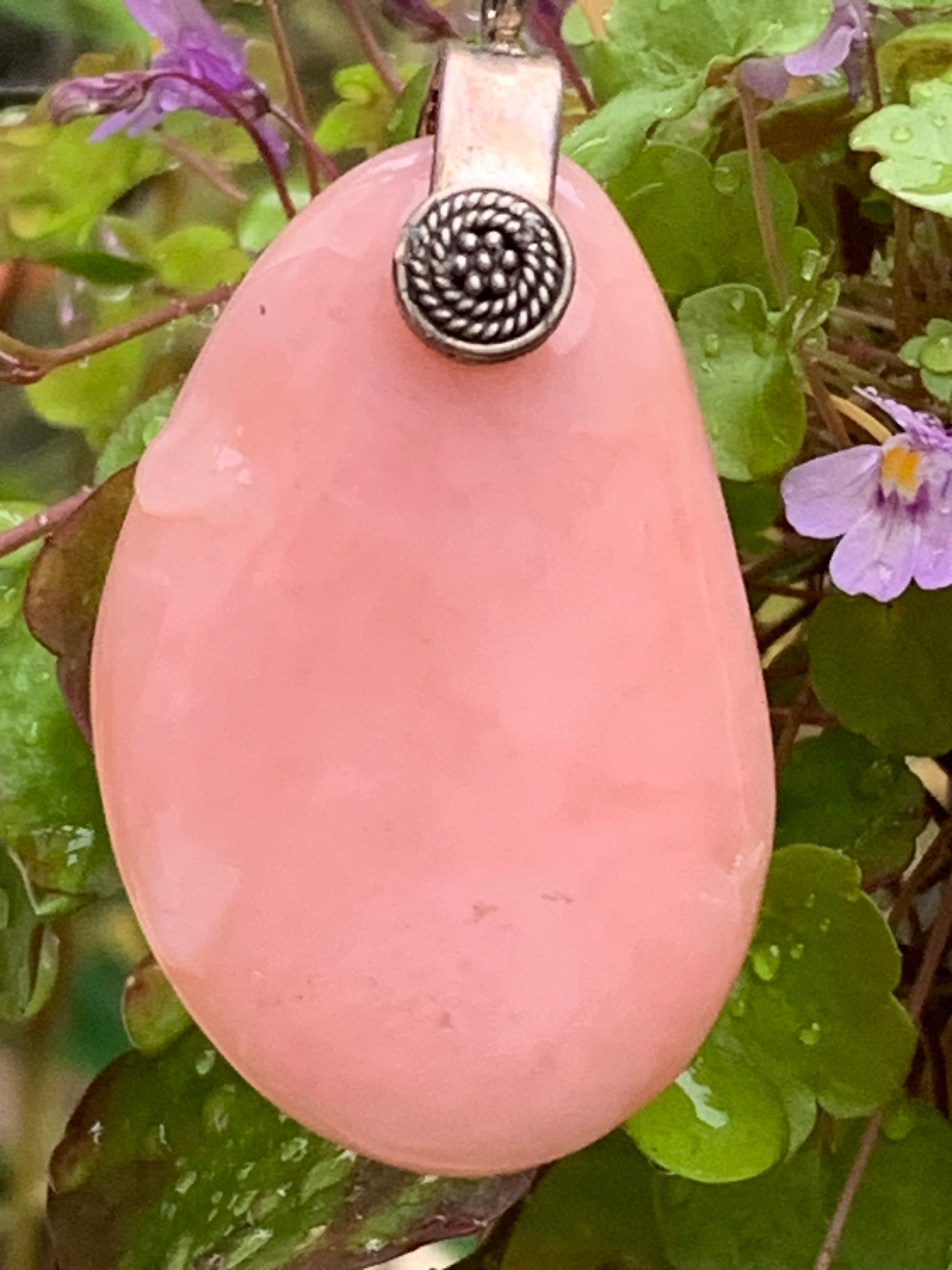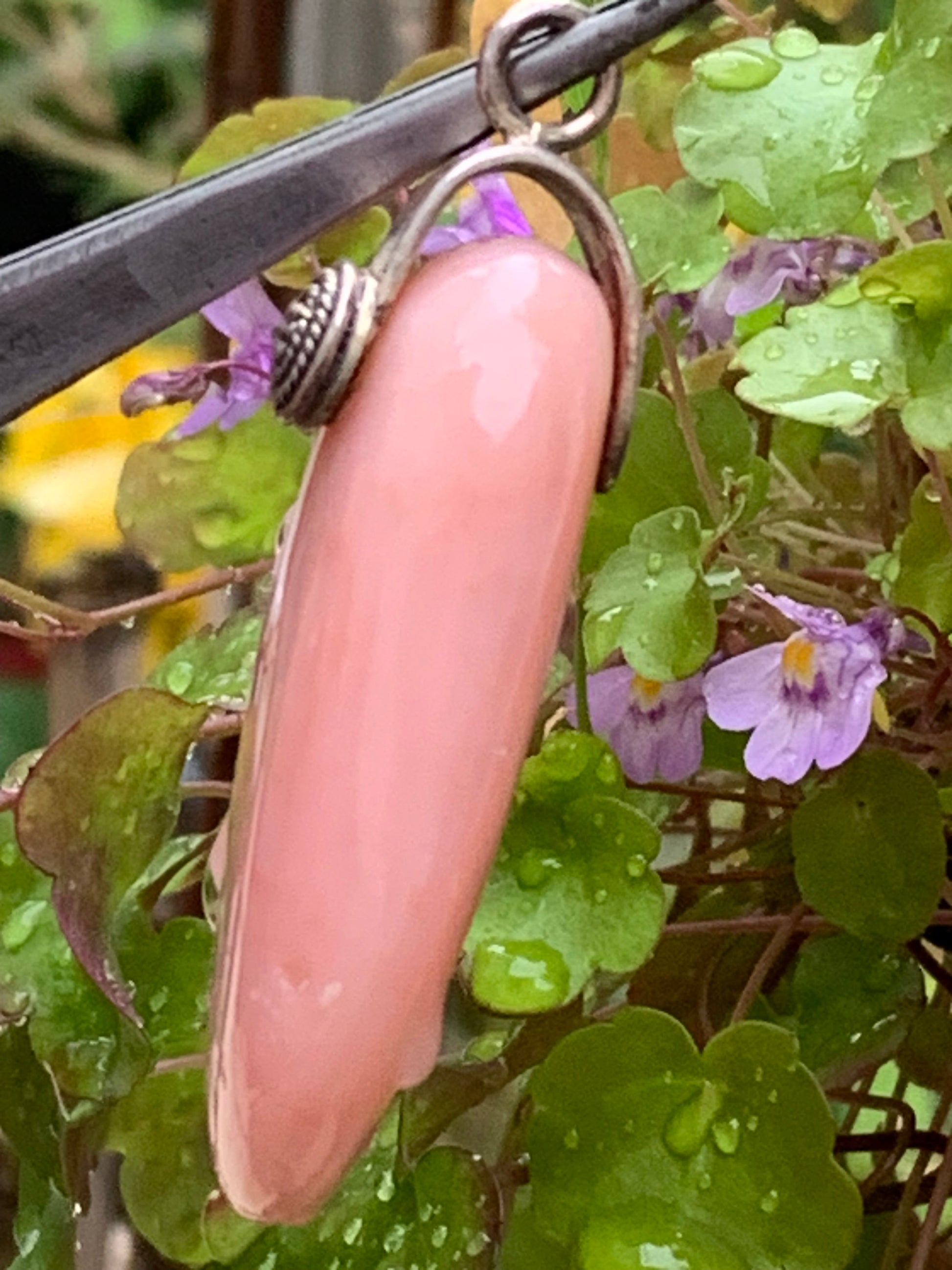 Mangano-calcite, pendentif en Argent 925 de 60mm de hauteur x 30 de largeur x 15 d'épaisseur. Vendu avec cordon réglable de couleur noire !