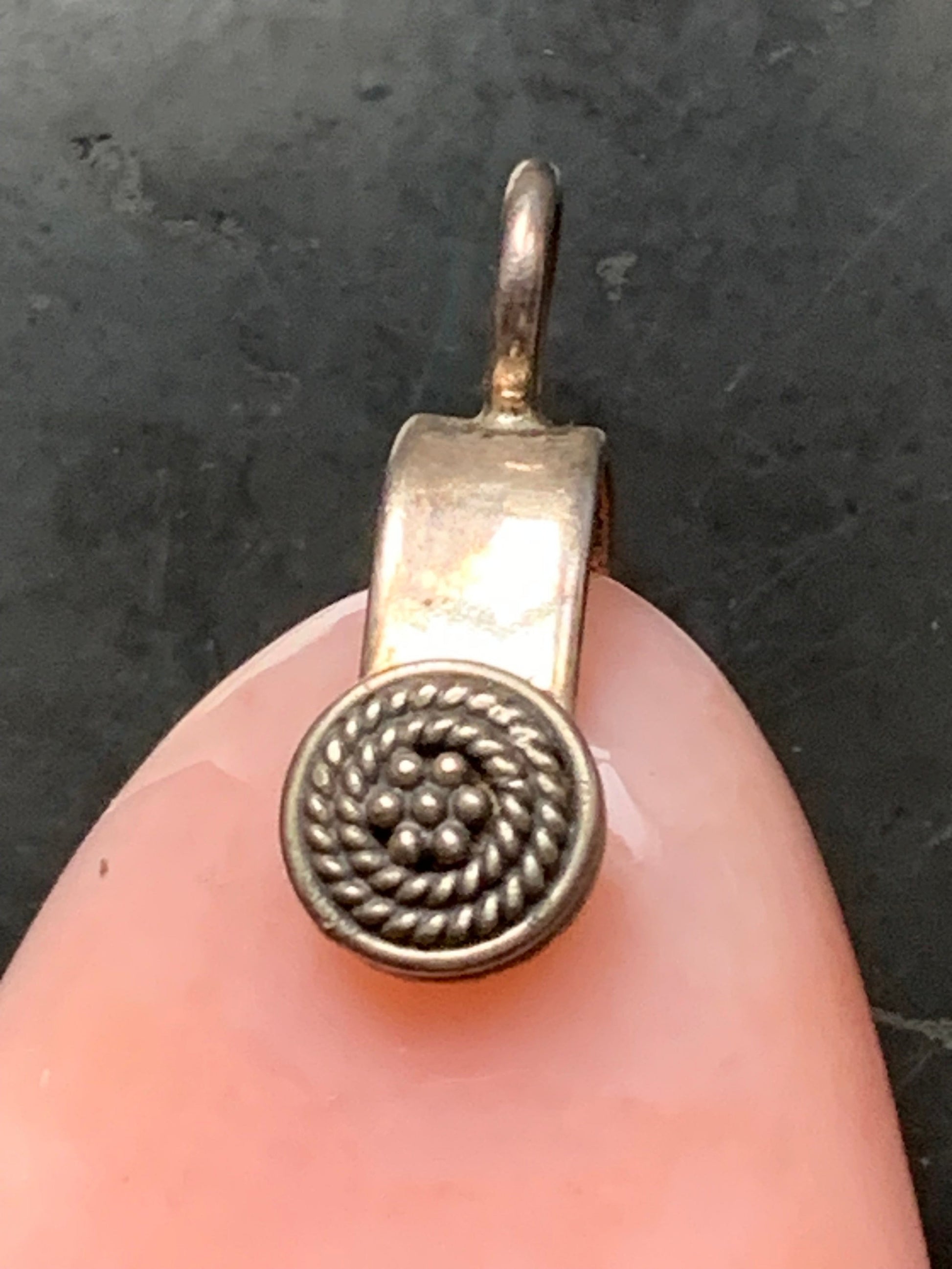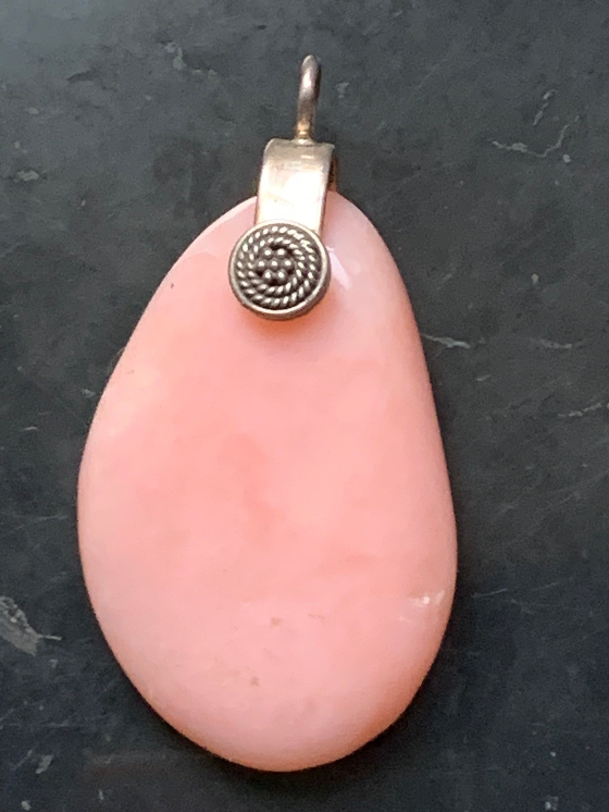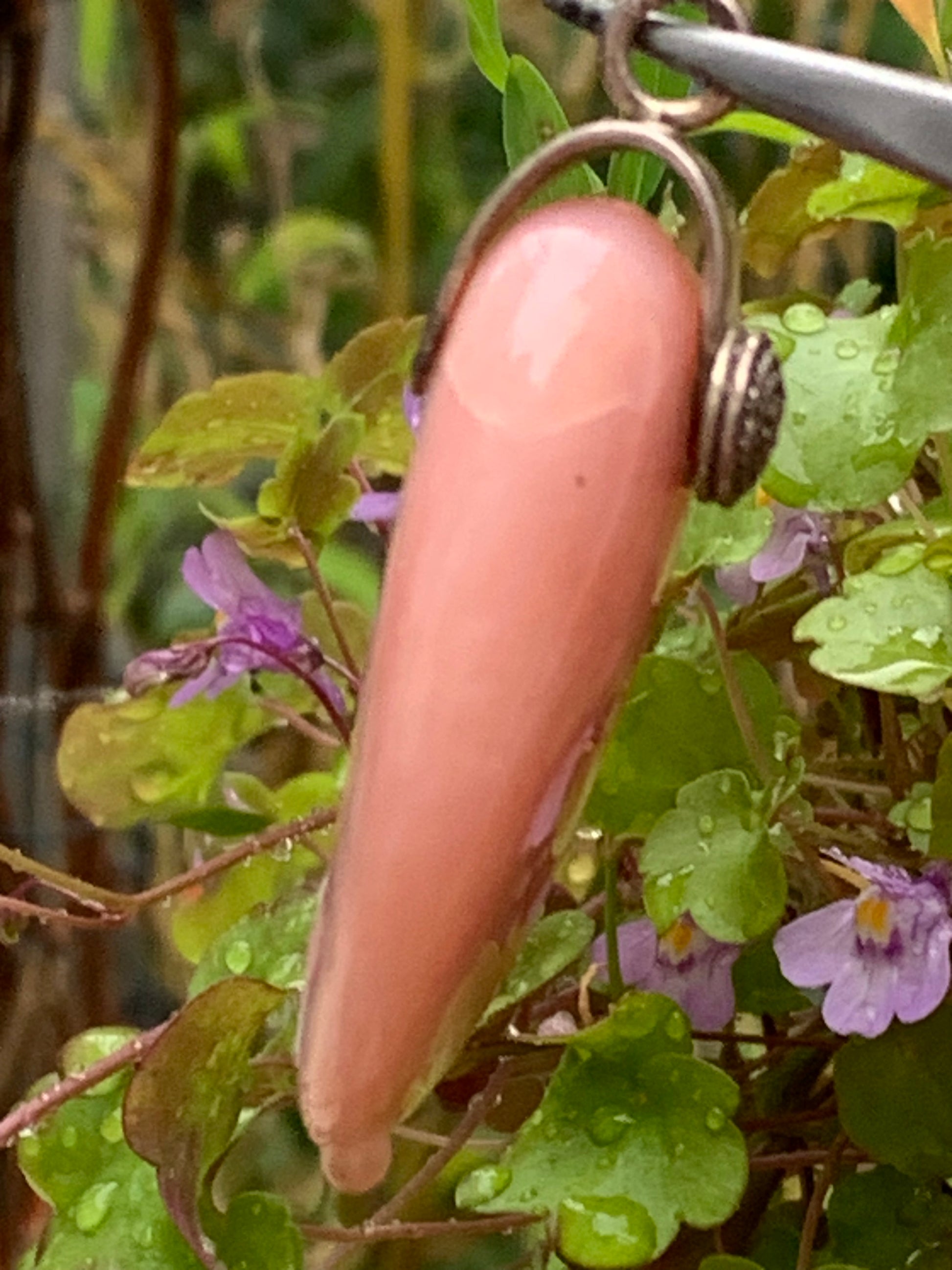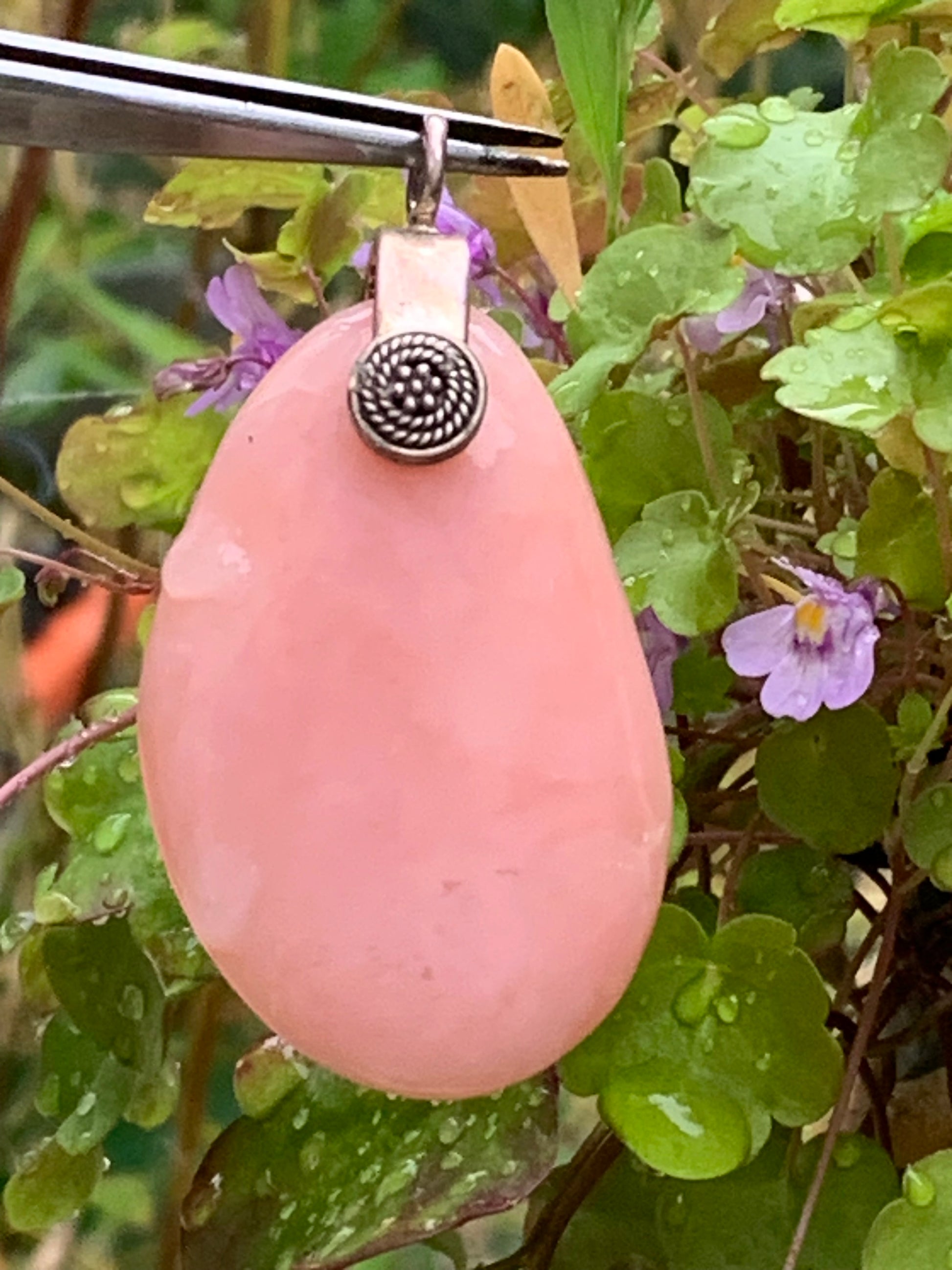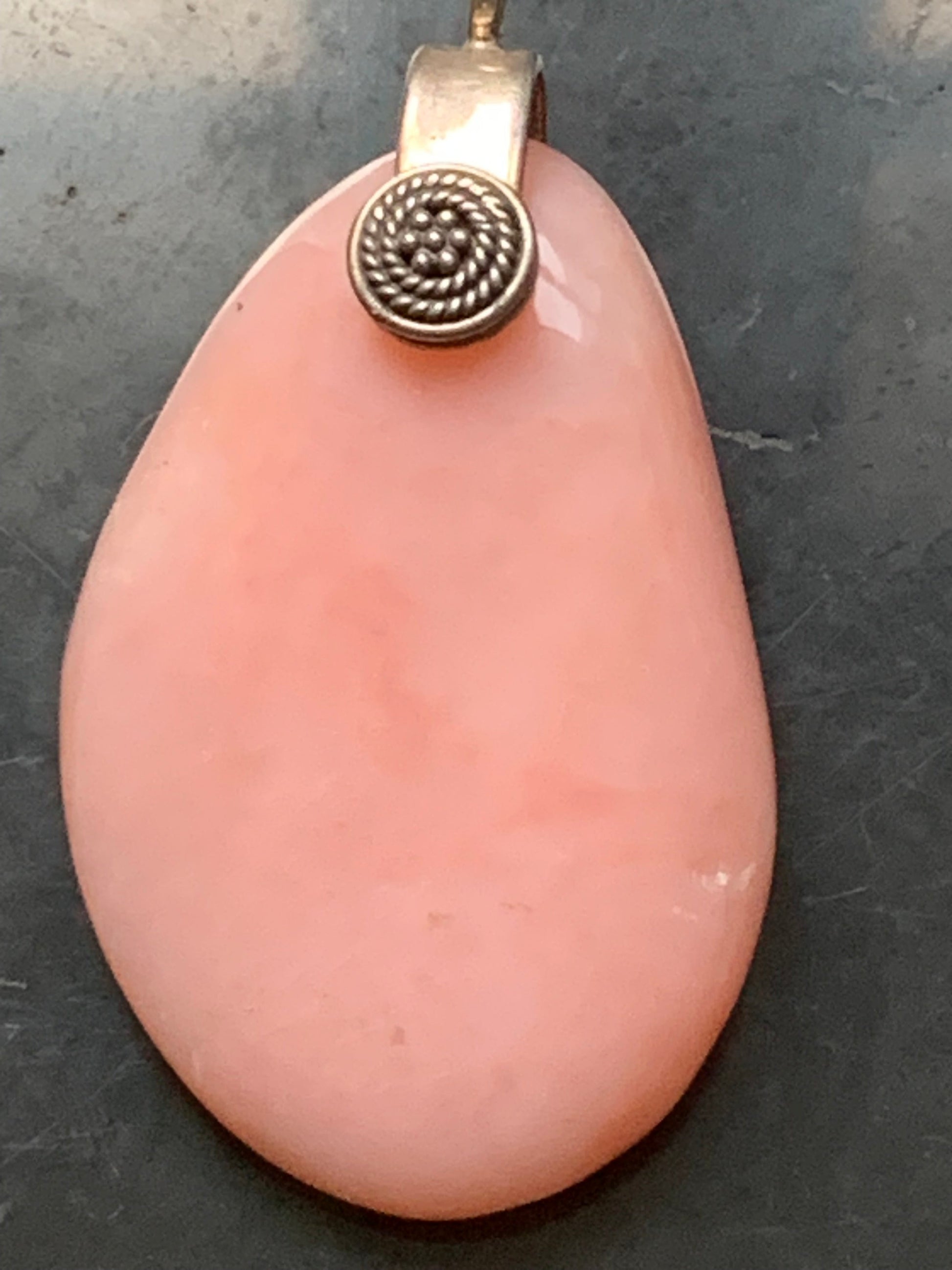 Mangano-calcite, pendentif en Argent 925 de 60mm de hauteur x 30 de largeur x 15 d'épaisseur. Vendu avec cordon réglable de couleur noire !