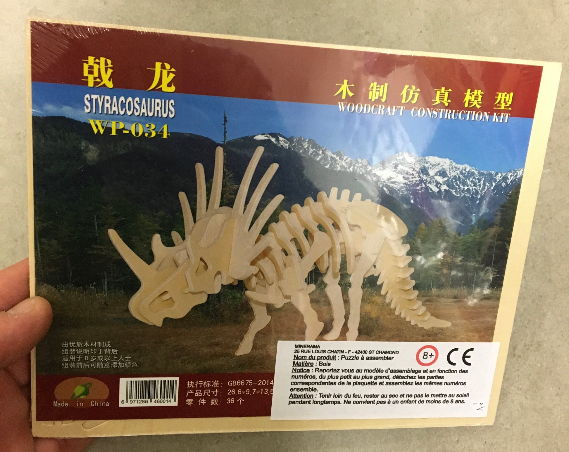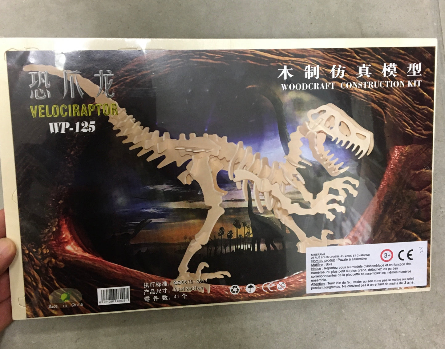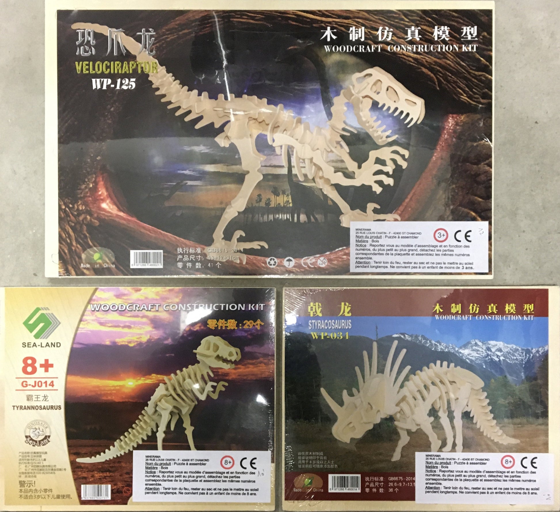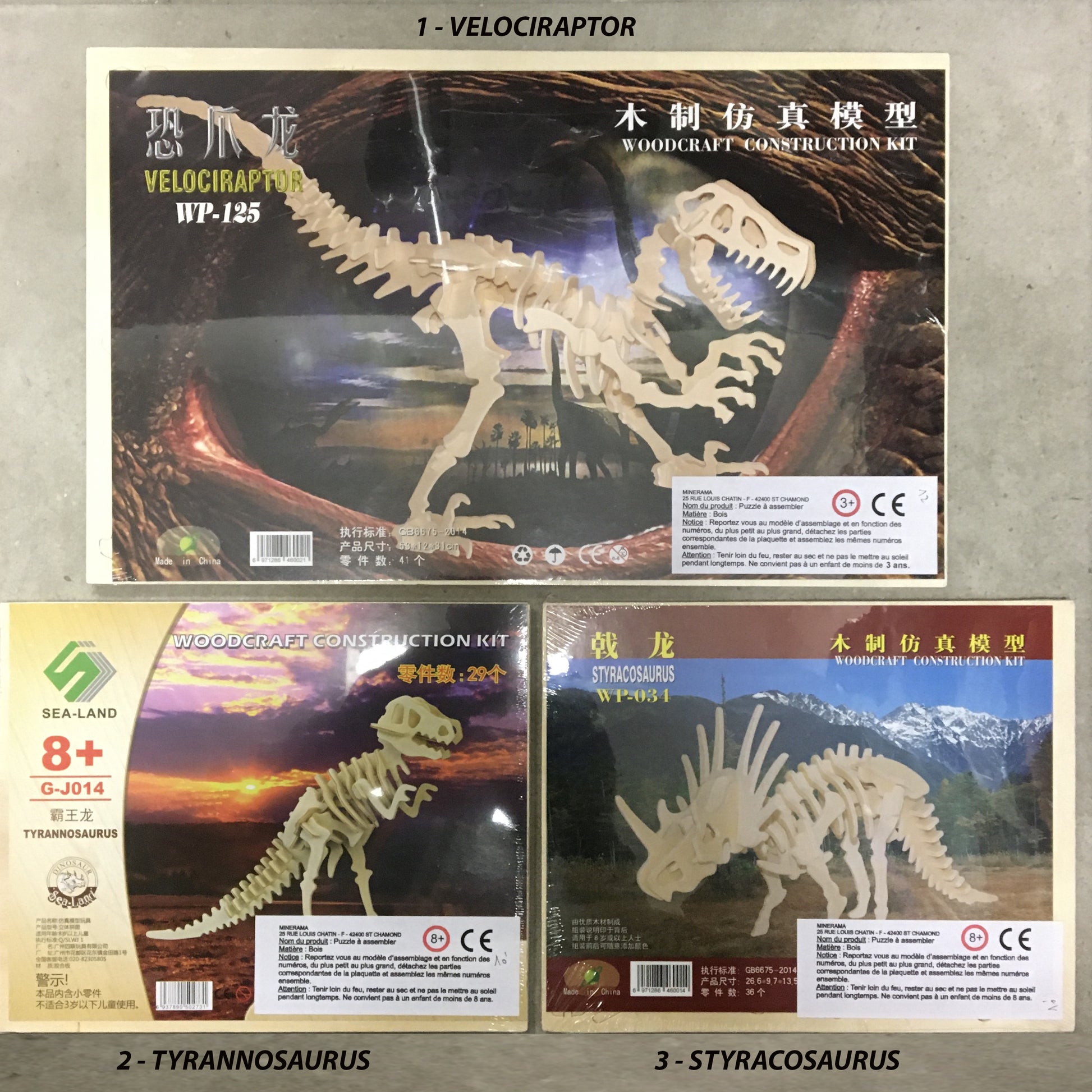 Dinosaure (Velociraptor - Tyrannosaurus - Styracosaurus), maquette en bois, de 15 à 20 cm. Parfait pour collection, exposition...