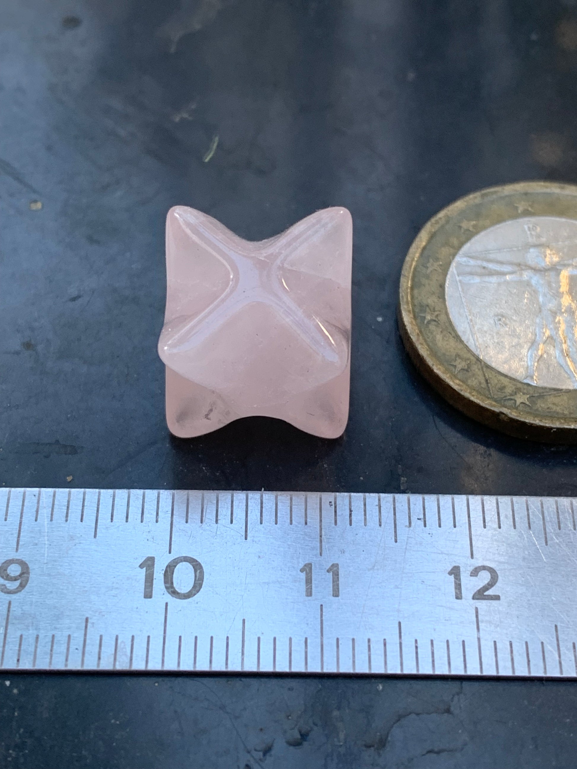 Mercaba/ Mercabah/ Merkabah (étoile à 8 branches), en Quartz rose. De 12x12x12mm - 3,7 grammes. Qualité A à AAA !
