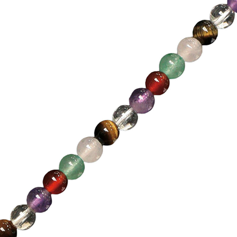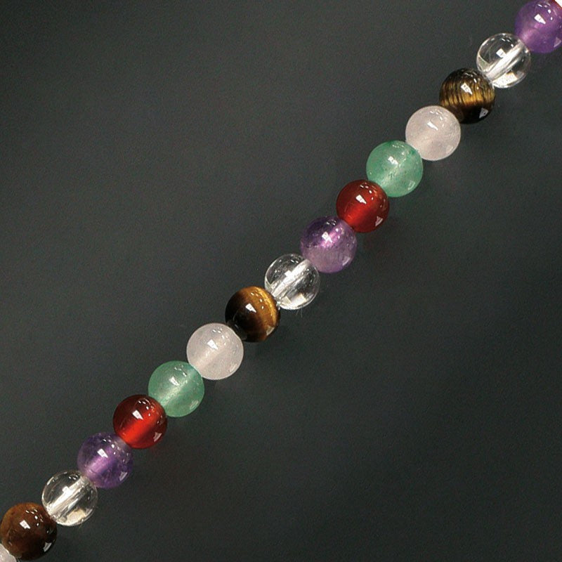 Multi-pierre multicolore, en bracelet de 17 à 21 cm, ou collier de 42 cm. Perles 'rondes' de 4, 6, 8 ou 10 millimètres. Oeil de tigre - cristal/ quartz - améthyste - cornaline - aventurine - quartz rose