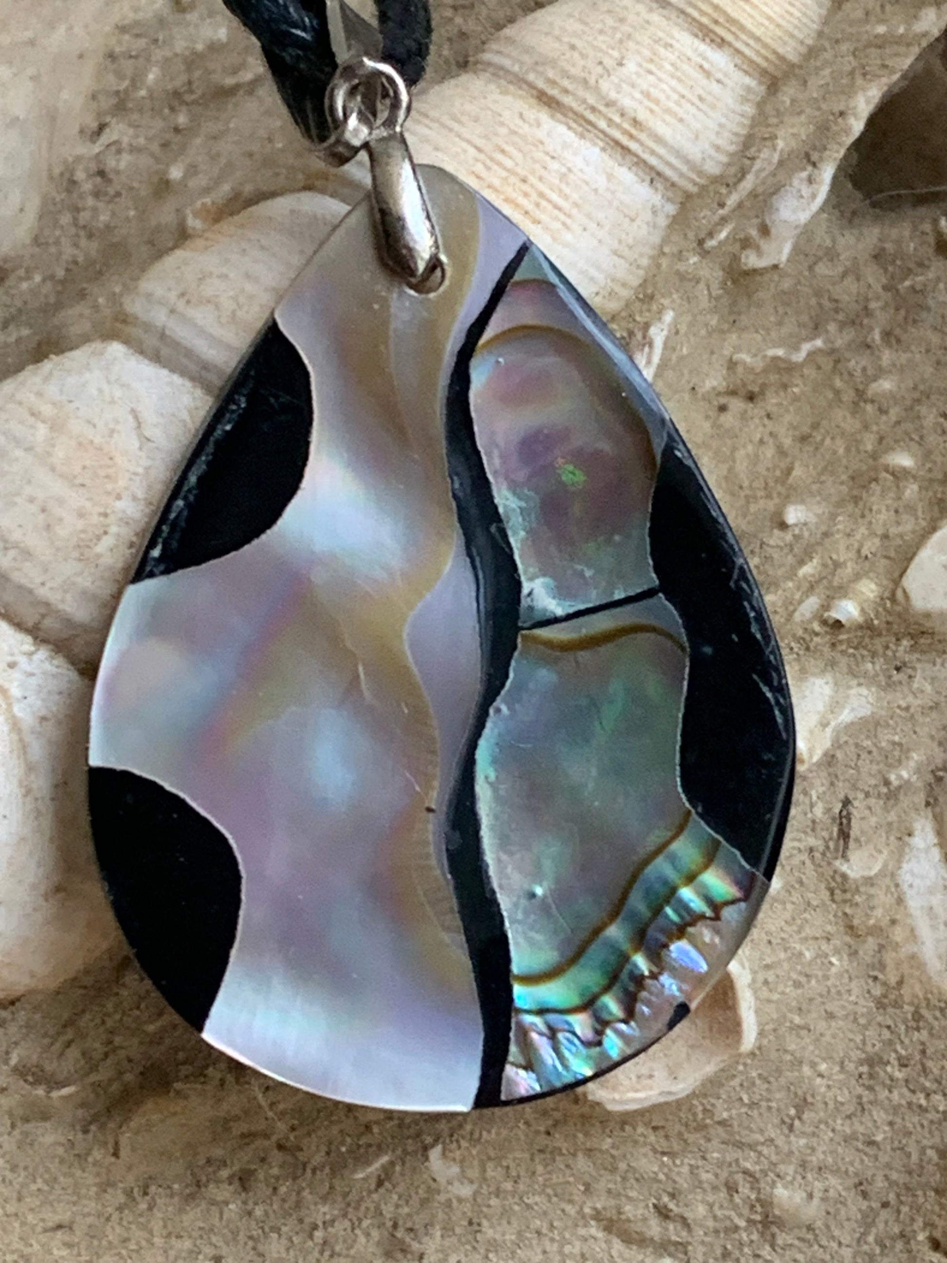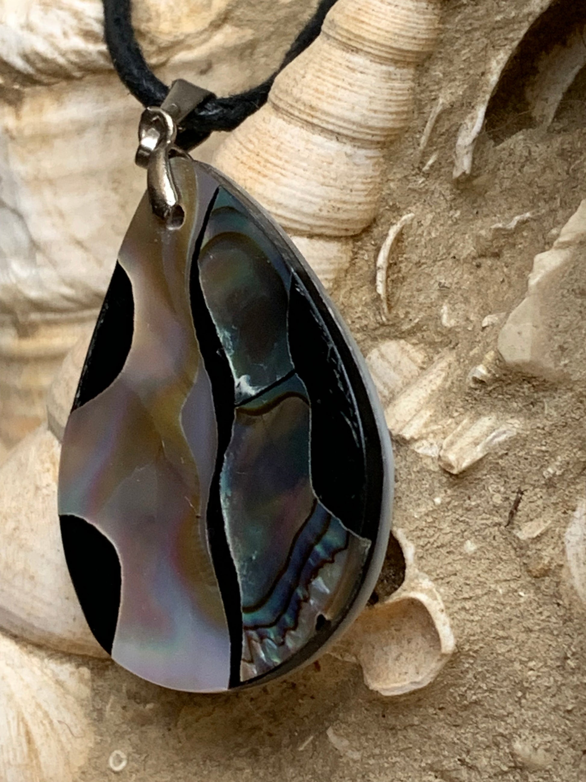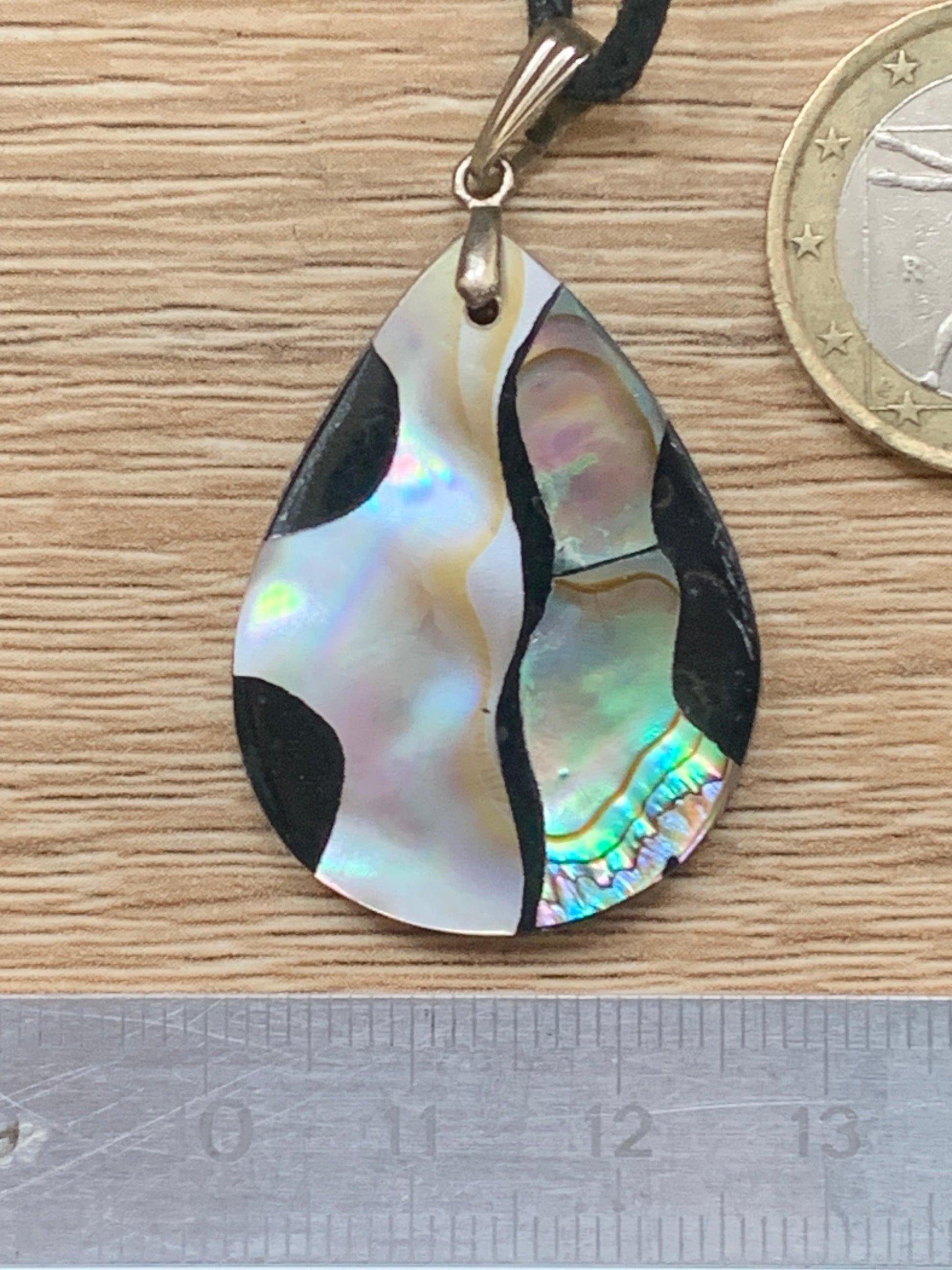 Nacre, pendentif en Ormeau de 45 millimètres x26 x5. Vendu avec ou sans cordon noir et réglable de 60 cm !