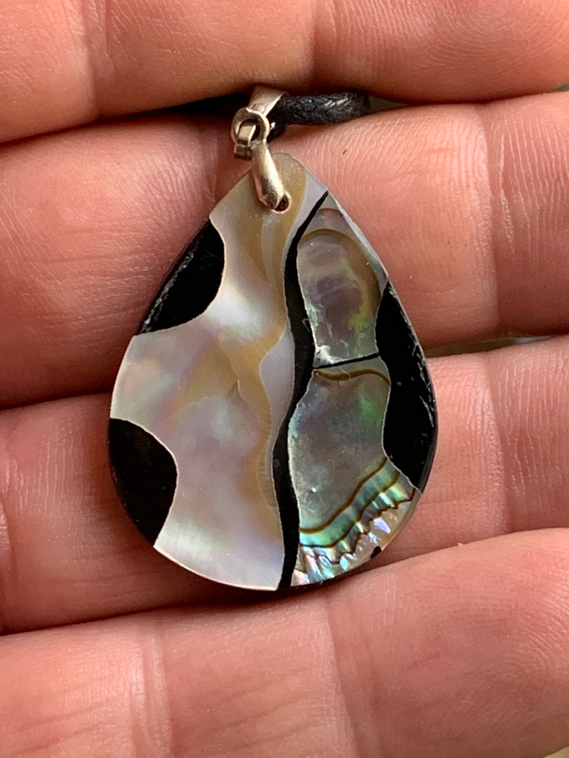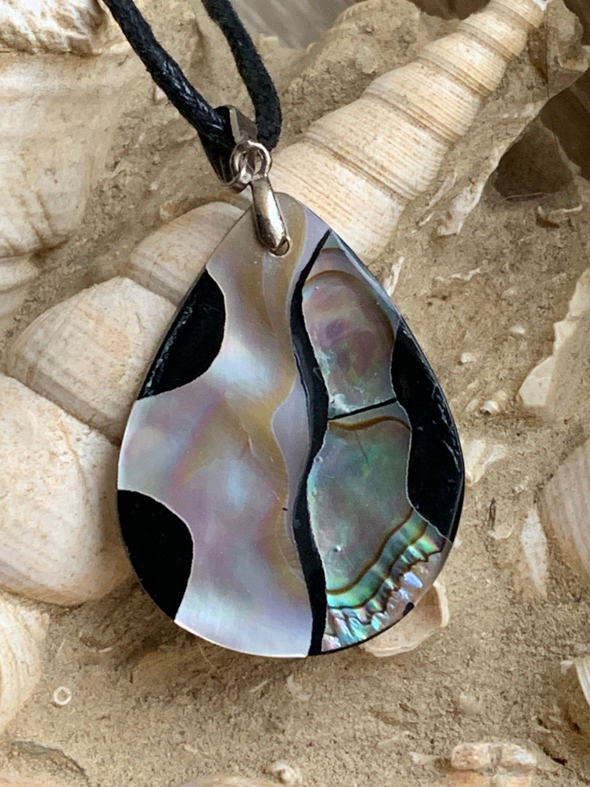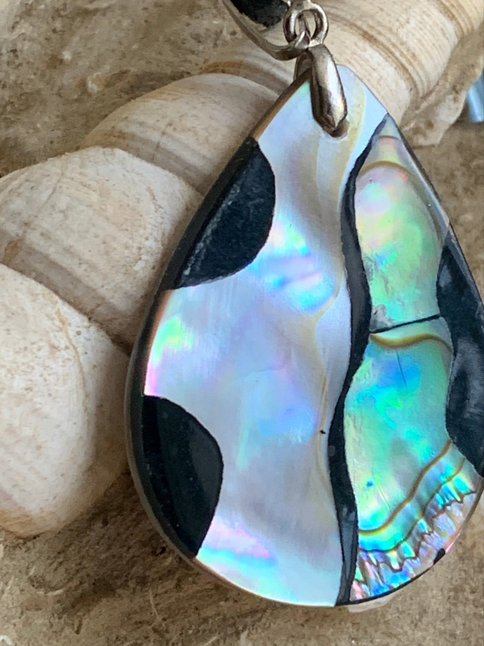 Nacre, pendentif en Ormeau de 45 millimètres x26 x5. Vendu avec ou sans cordon noir et réglable de 60 cm !