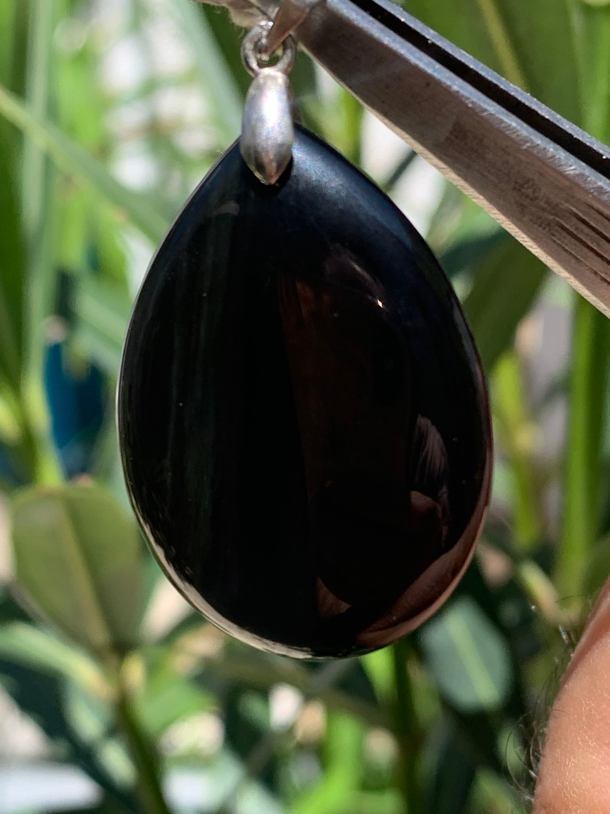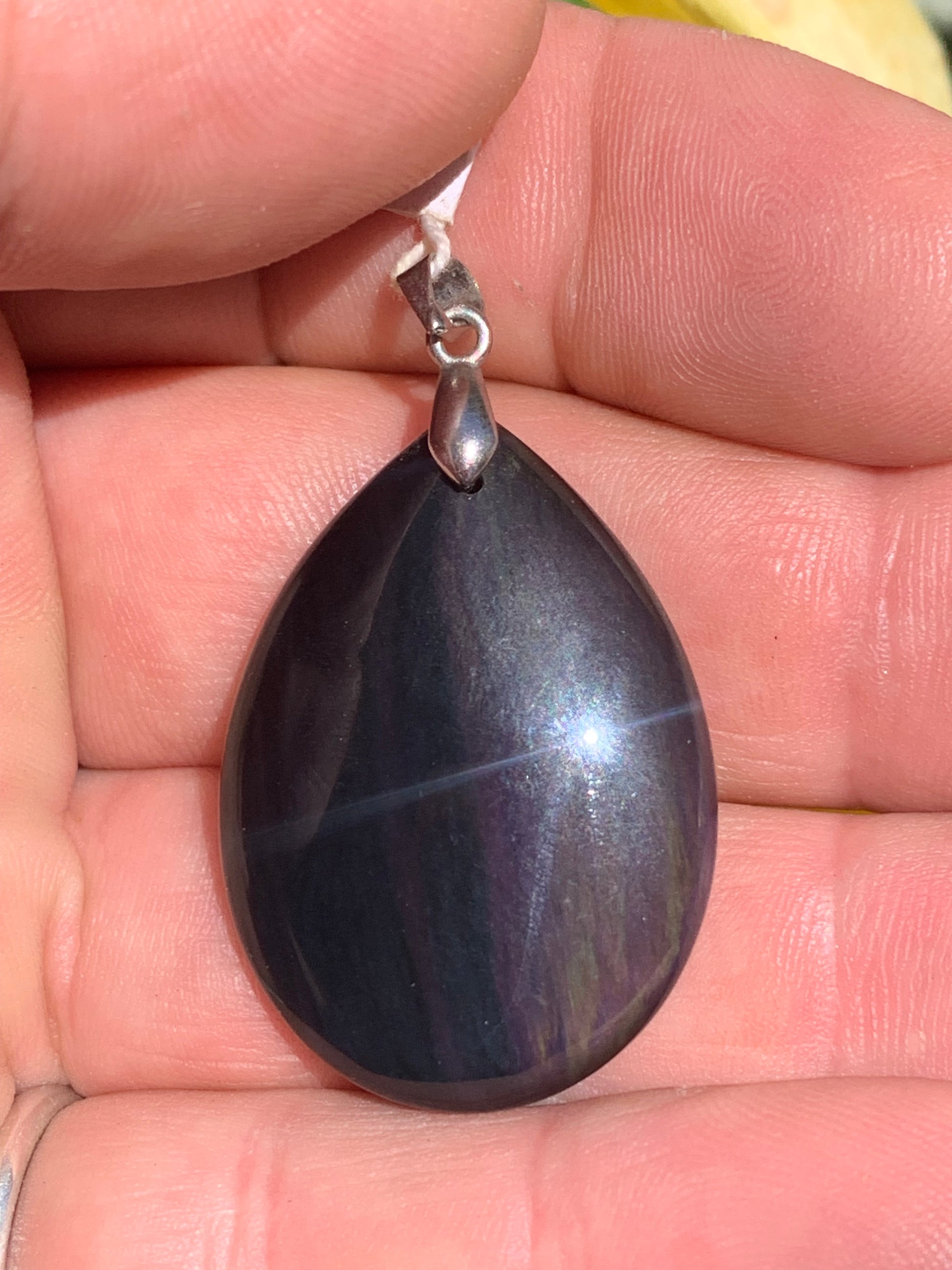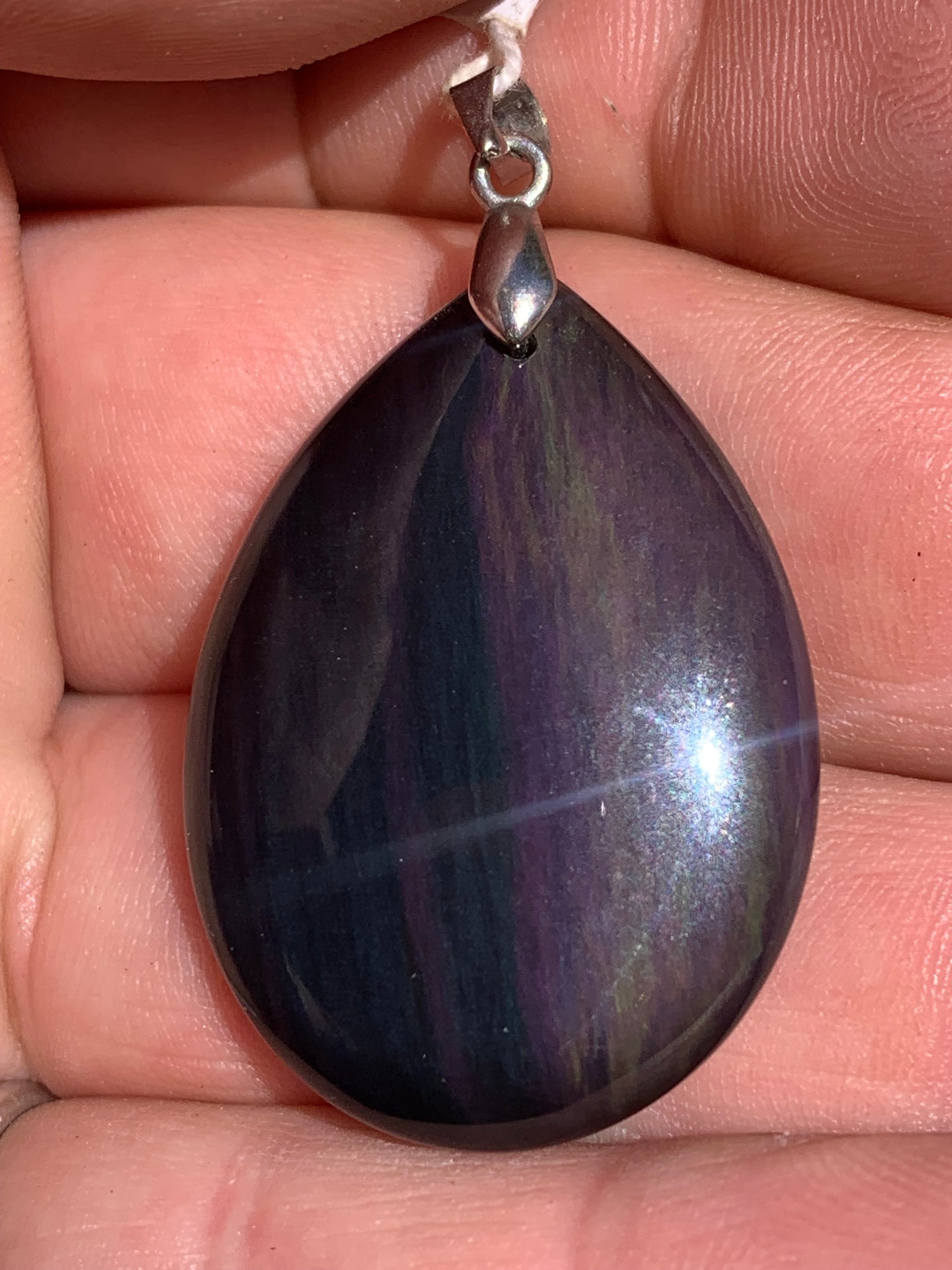 Obsidienne Arc-en-ciel, pendentif de 43 millimètres de hauteur x 25 mm de largeur x 10 millimètres. Vendu avec cordon noir réglable offert !