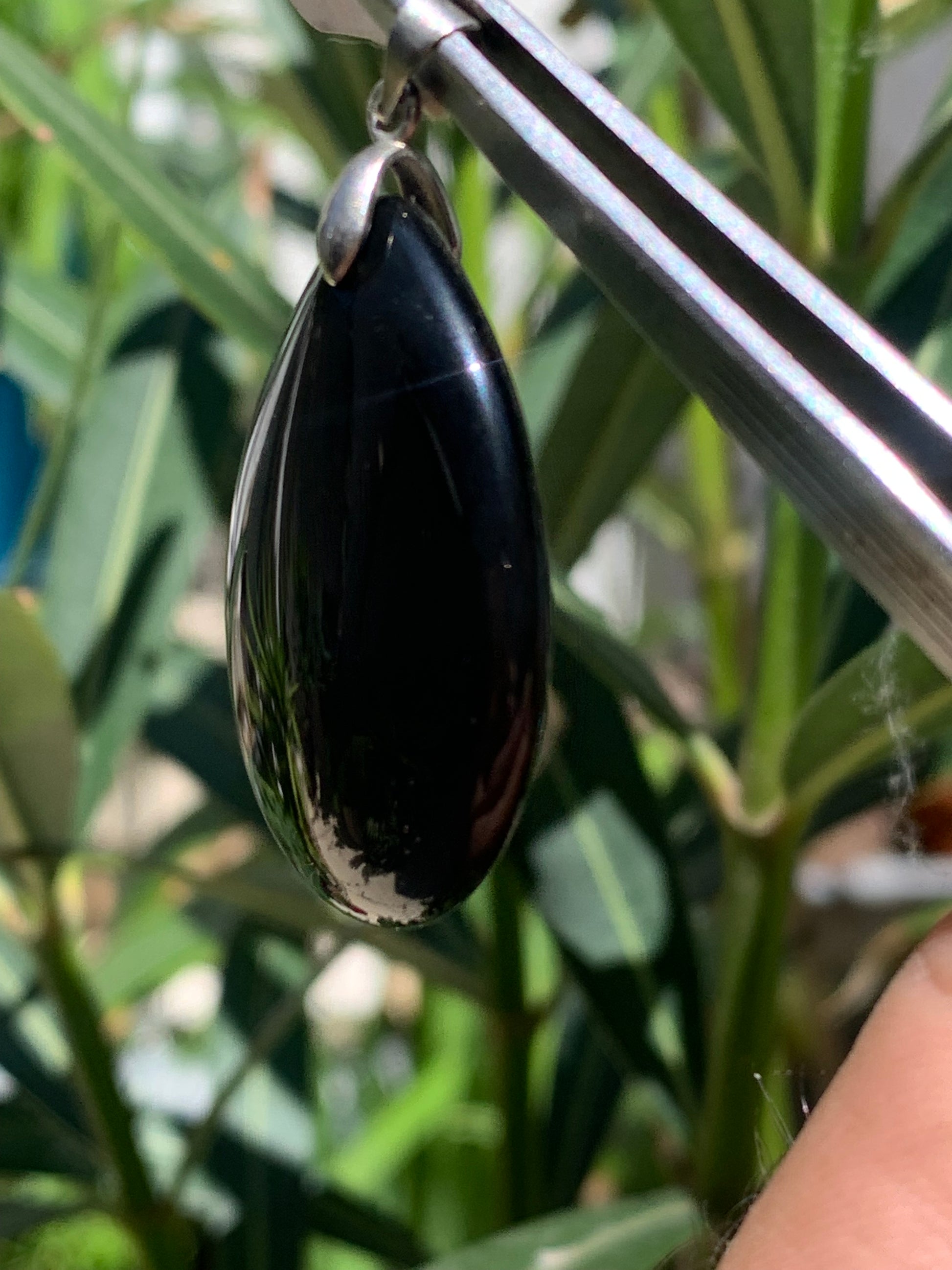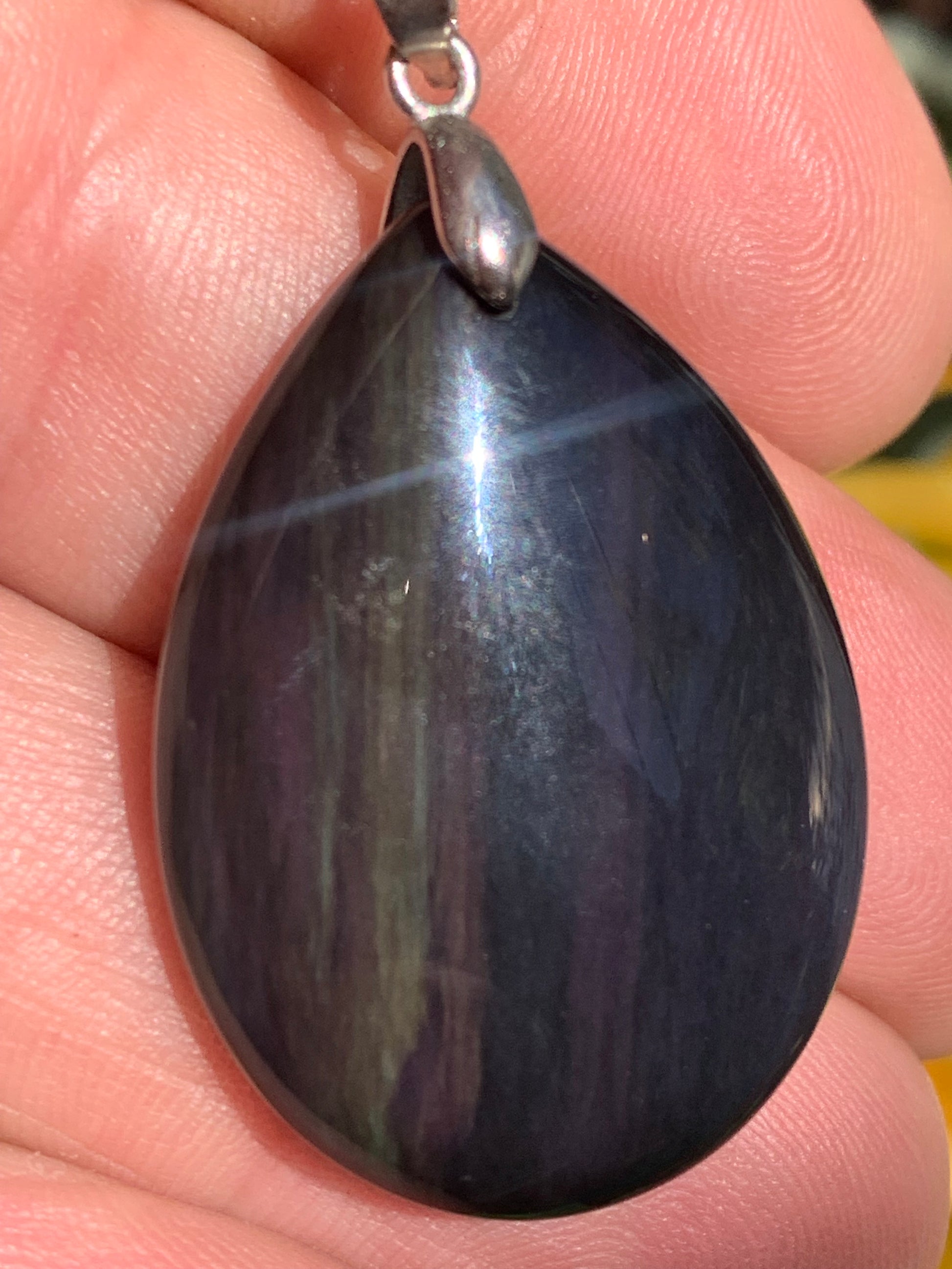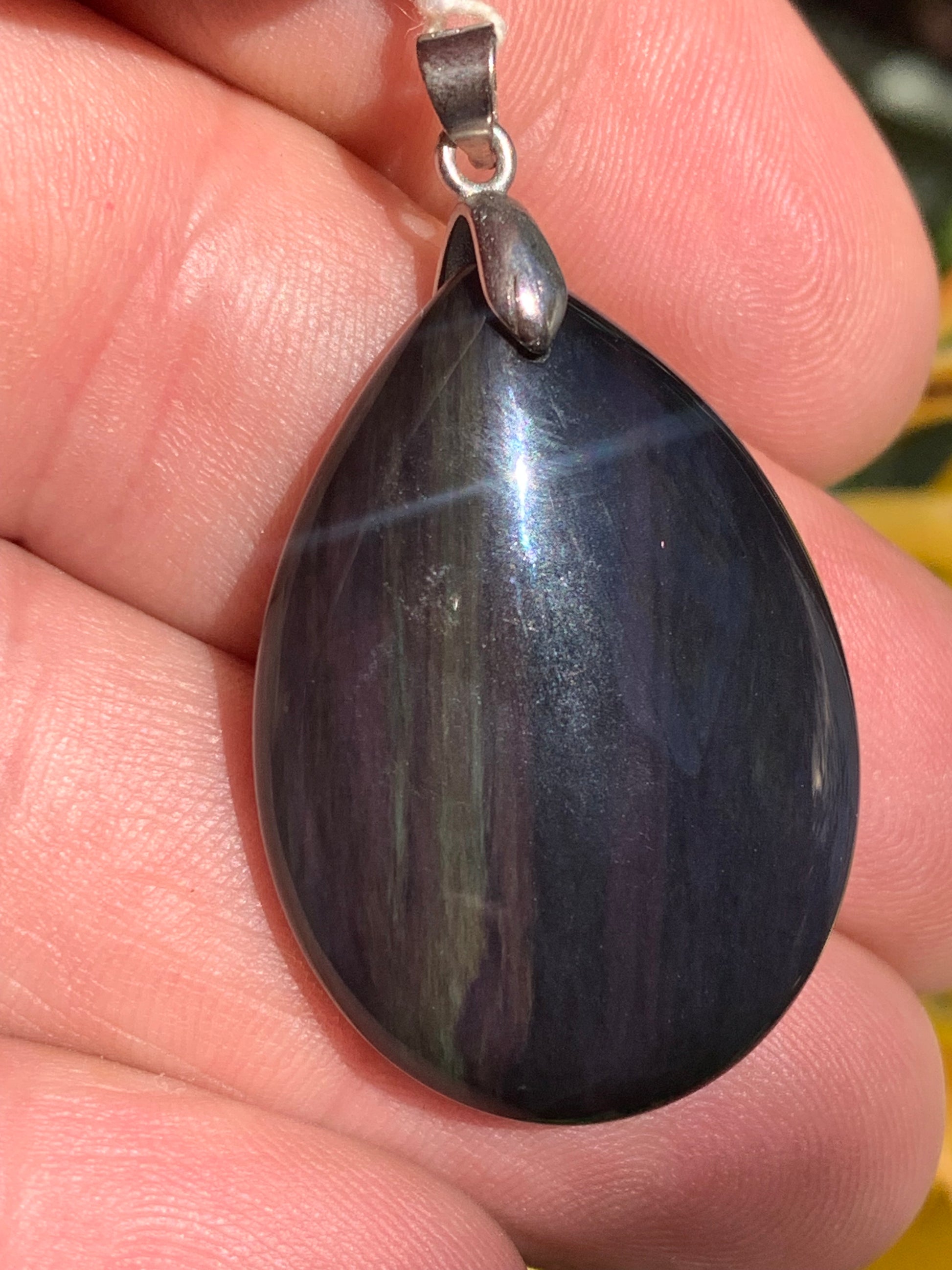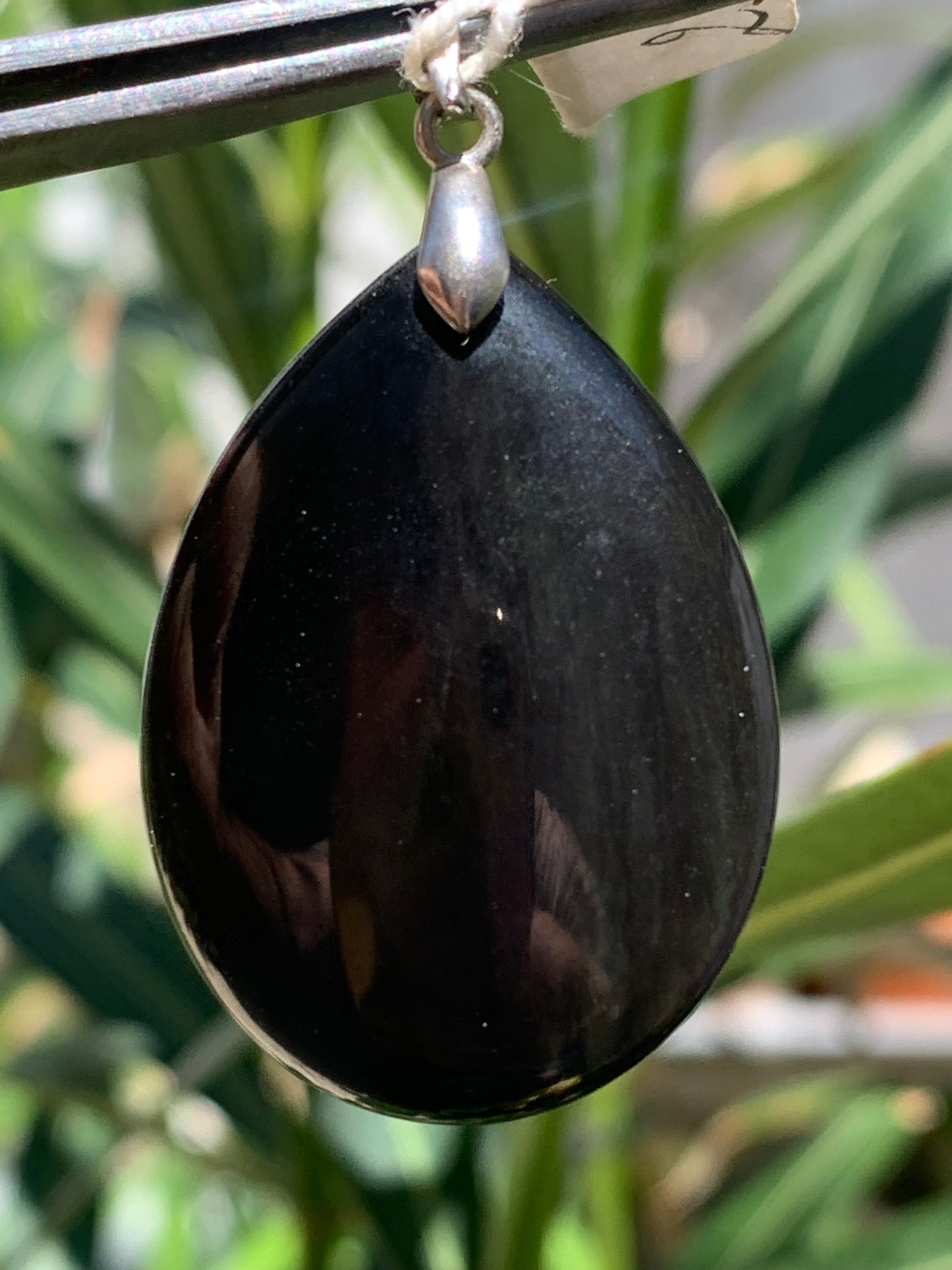 Obsidienne Arc-en-ciel, pendentif de 43 millimètres de hauteur x 25 mm de largeur x 10 millimètres. Vendu avec cordon noir réglable offert !