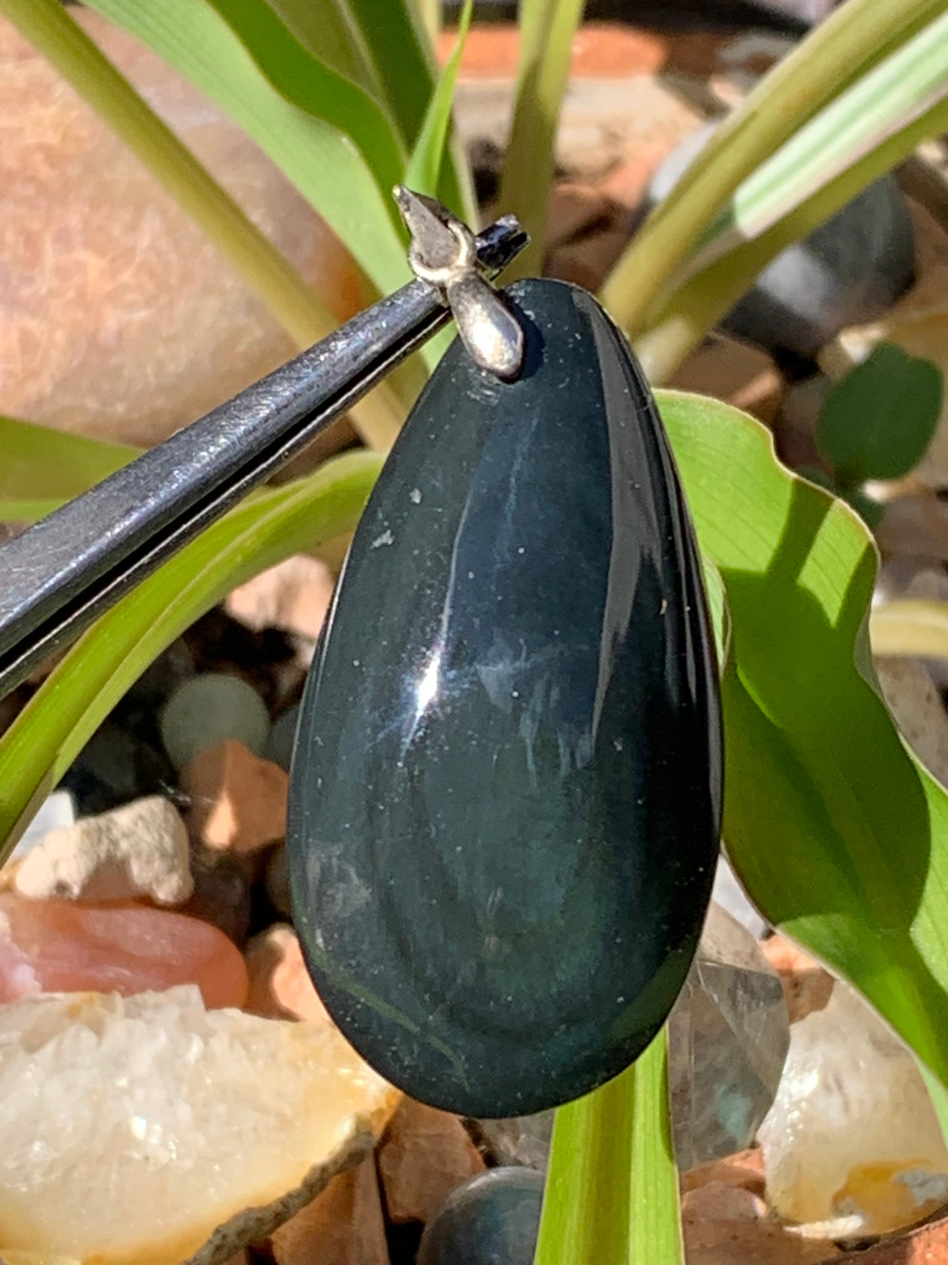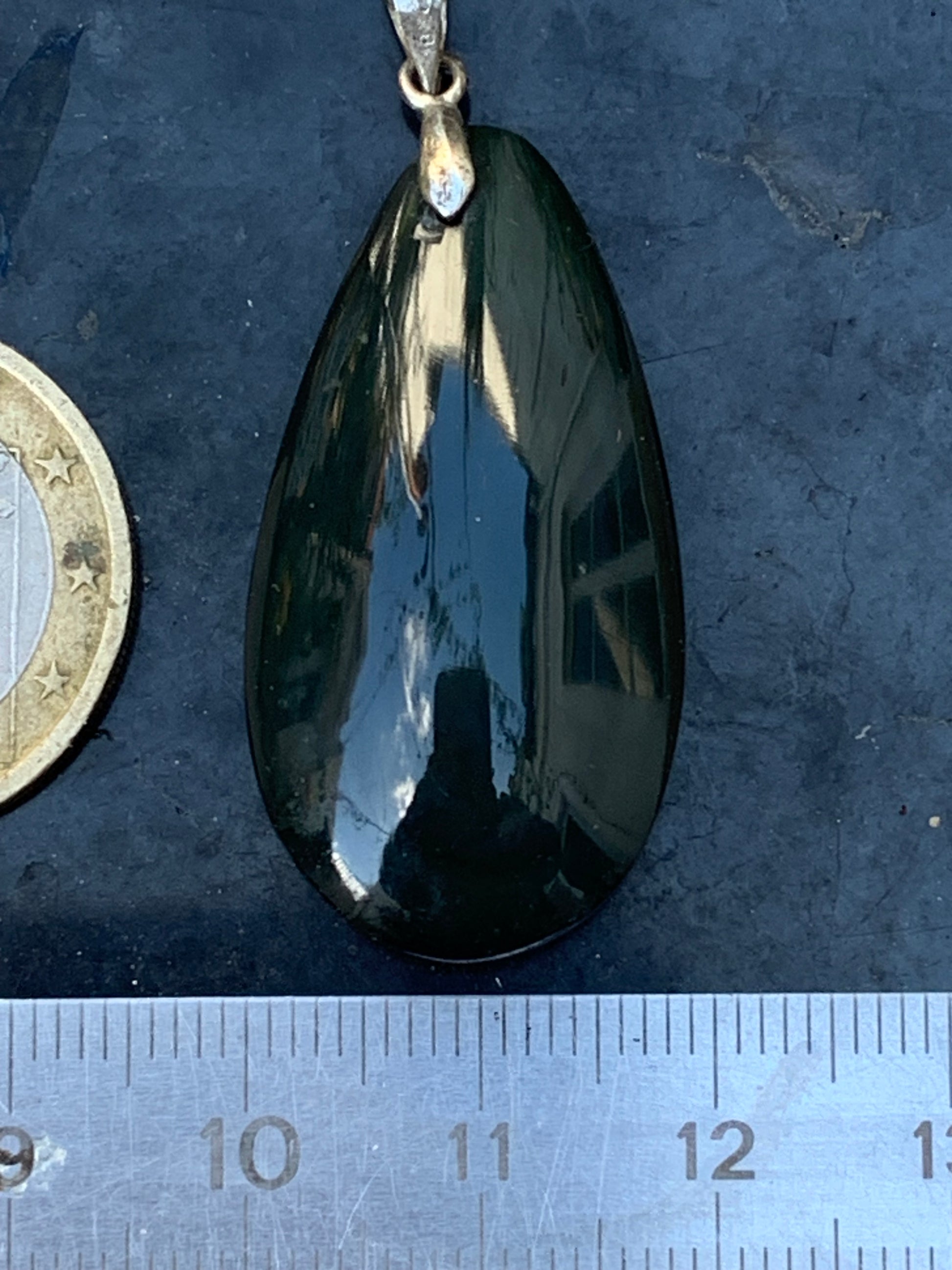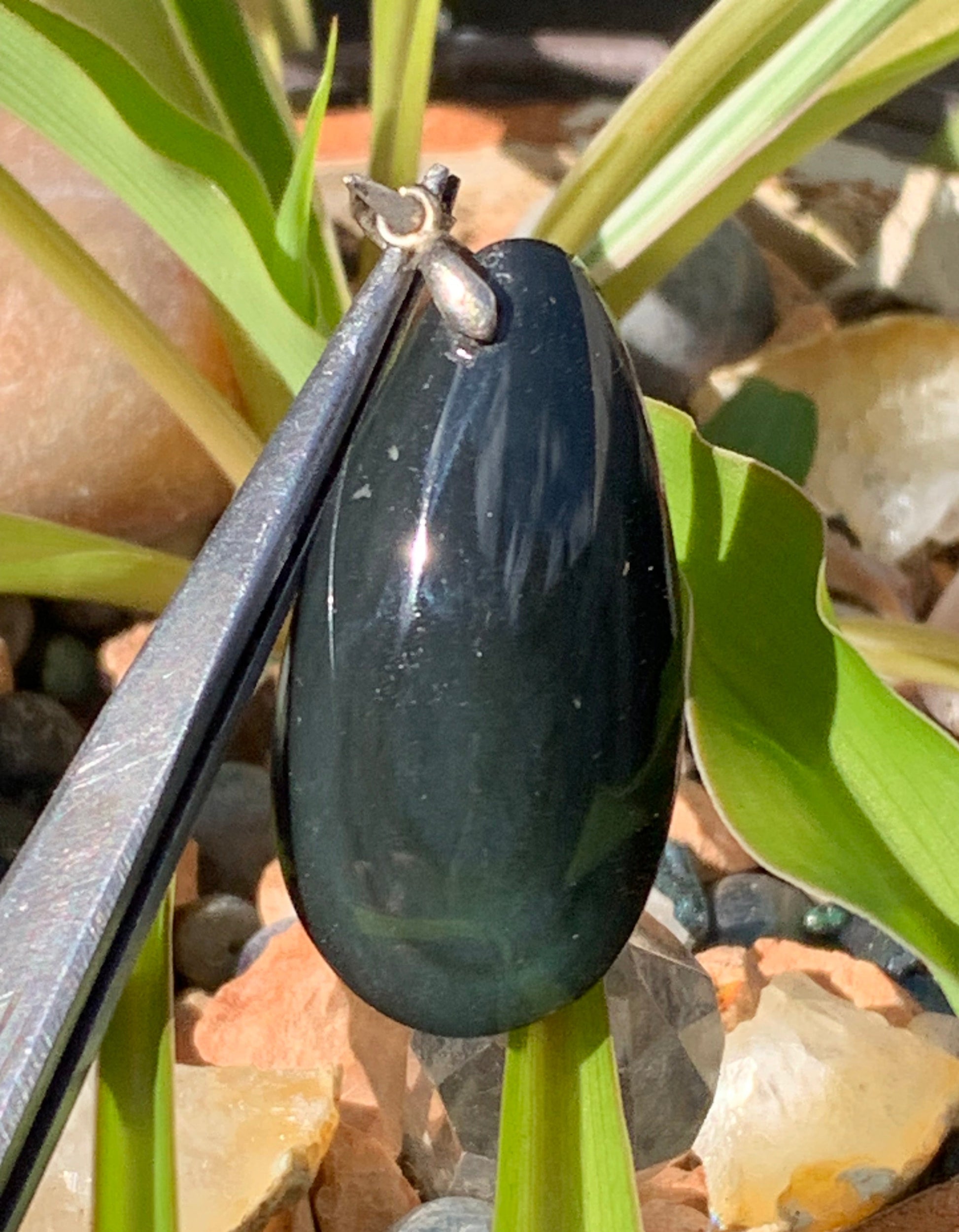 Obsidienne Arc-en-ciel, pendentif de 45 millimètres de hauteur x 18 mm de largeur x 10 millimètres. Vendu avec cordon noir réglable offert !